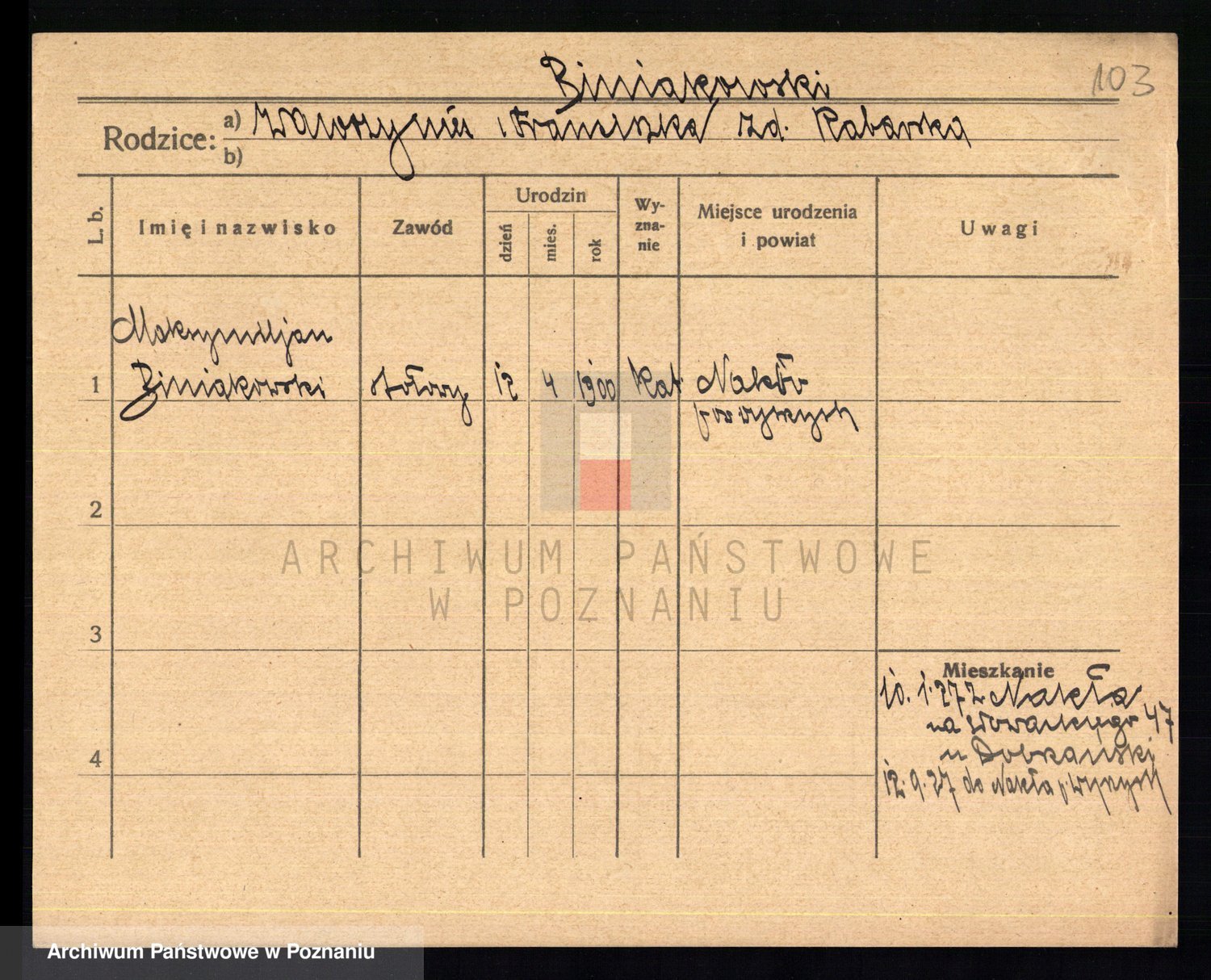 Biniak, Maksymiljan