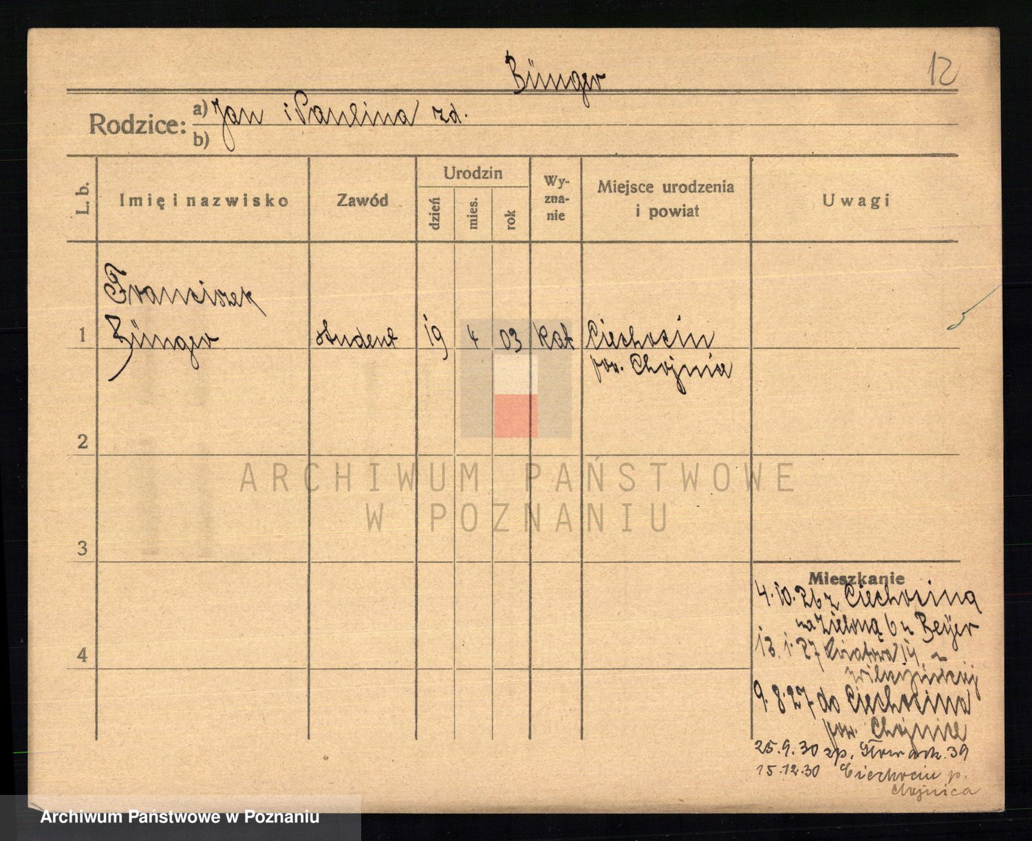 Bünger, Franciszek