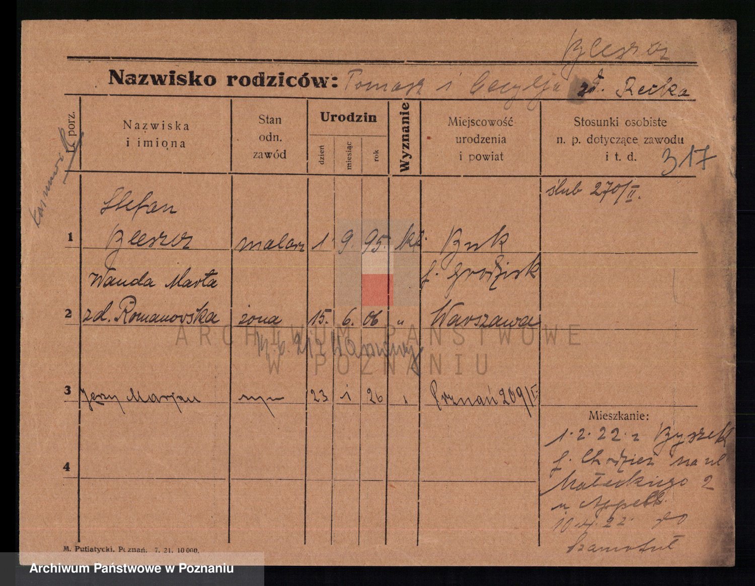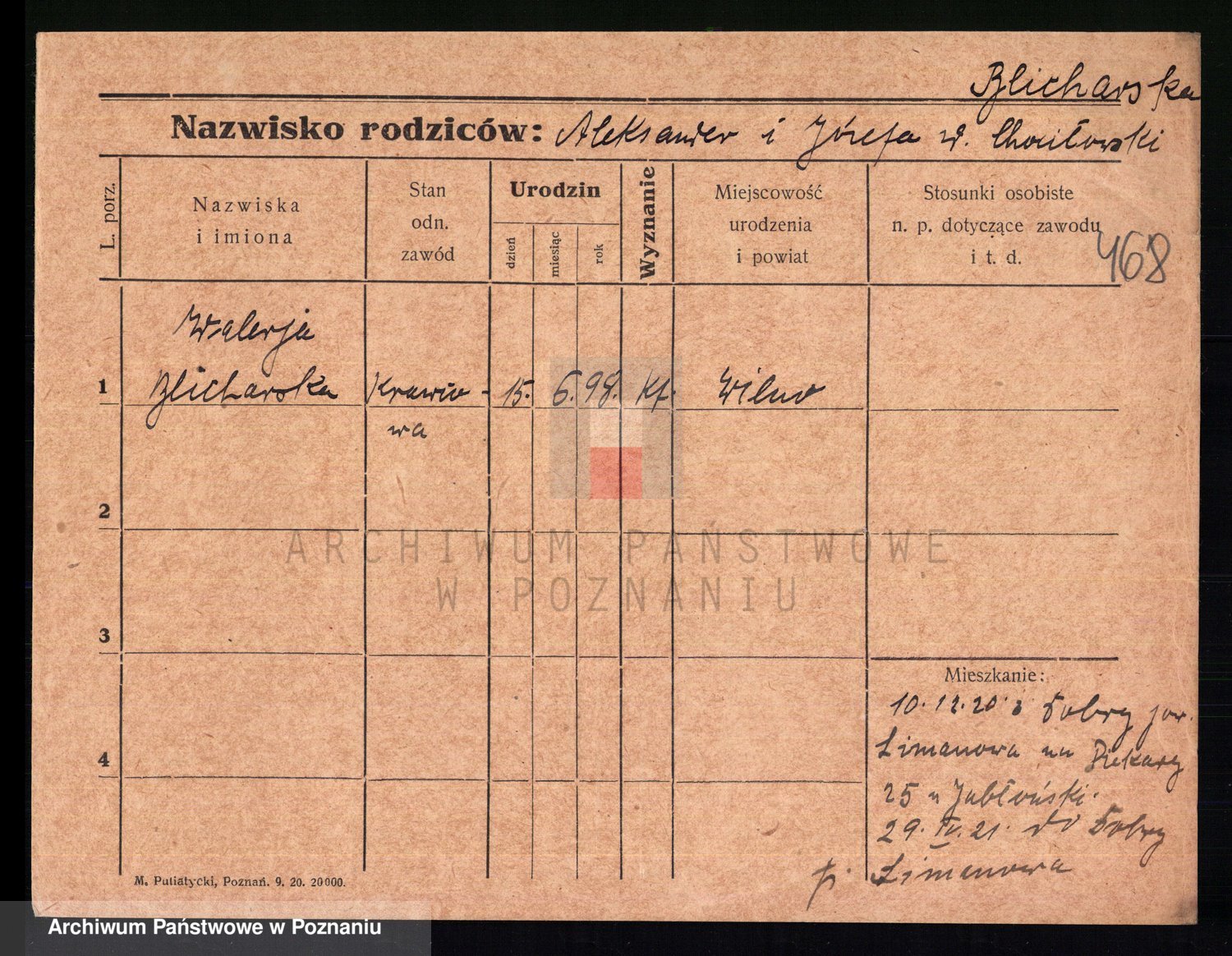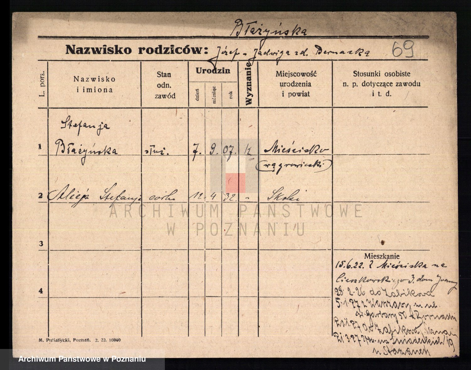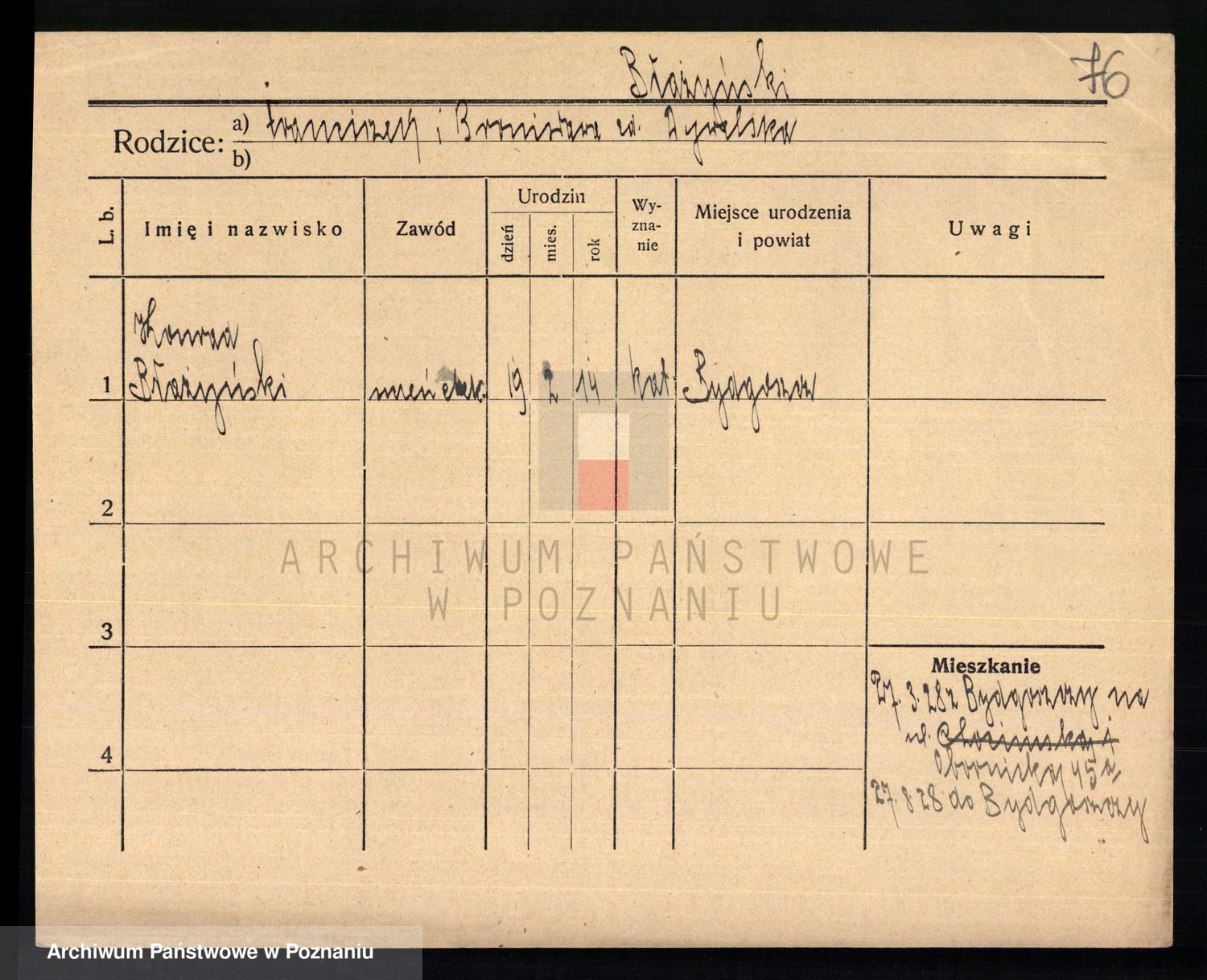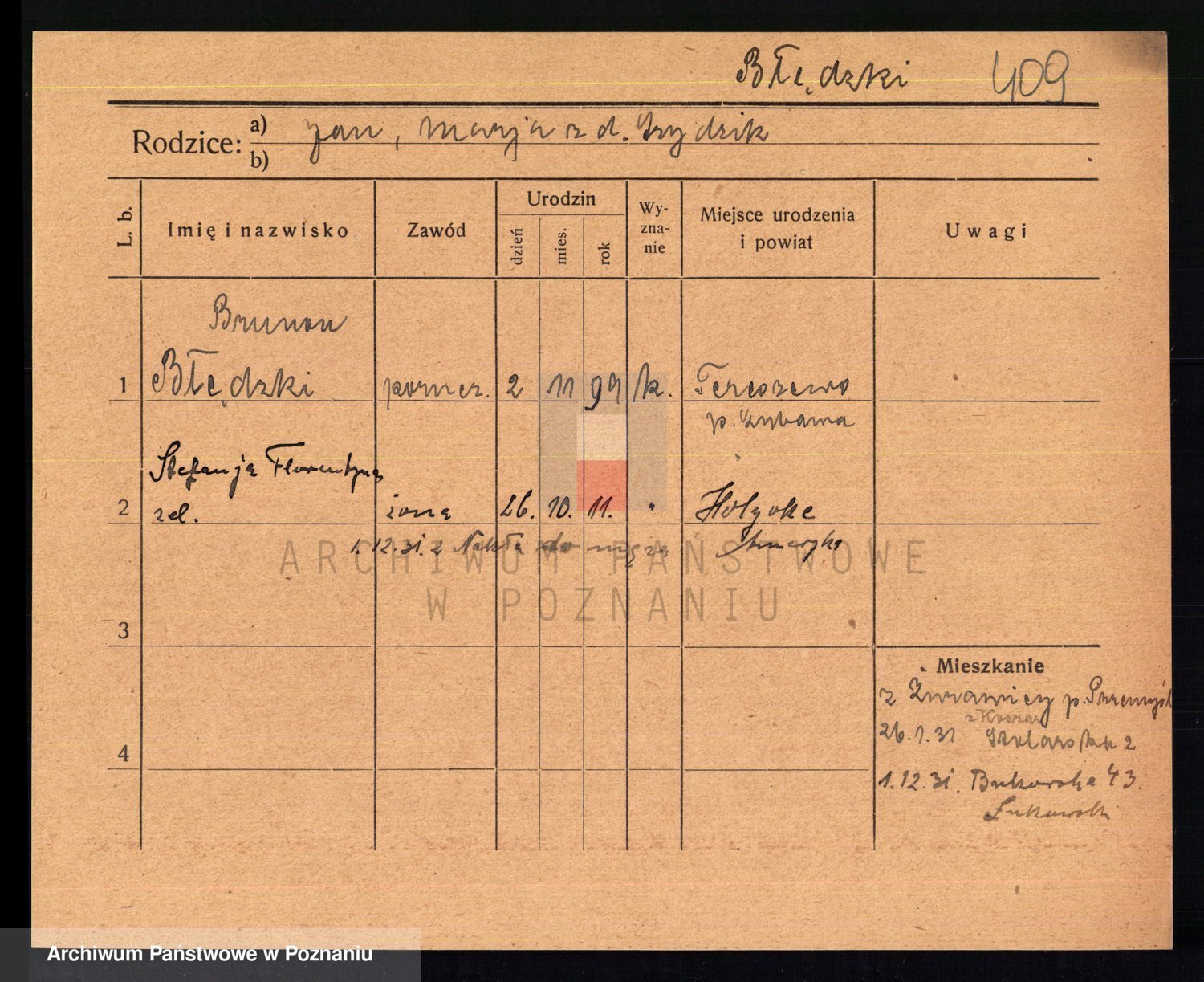 Podgląd karty osobowej dostępny jest po kliknięciu na nazwisko lub ikonkę karty. Można dokonywać powiększenia (ikony na górze) lub przechodzić między kolejnymi skanami (strzałki po bokach).
