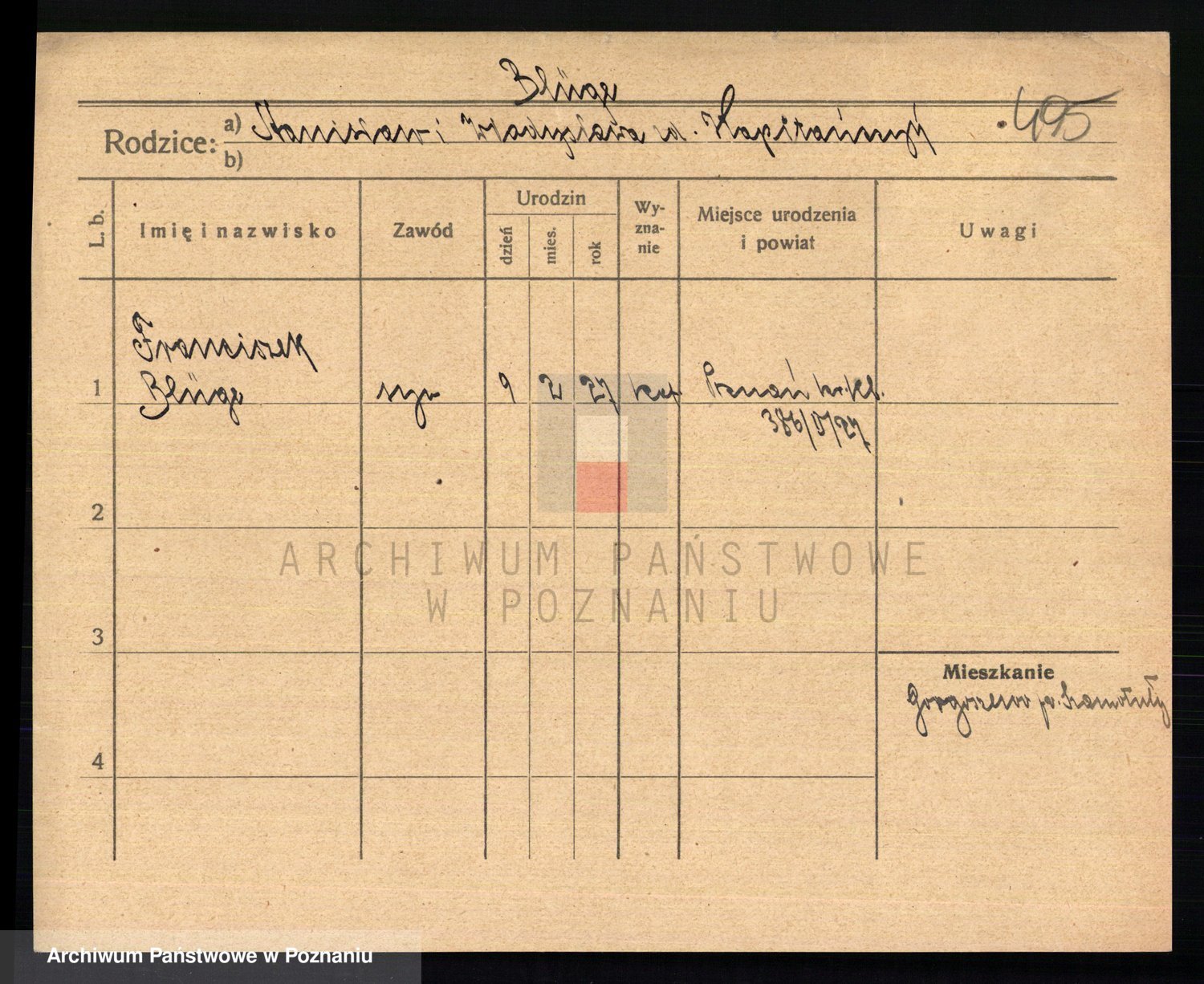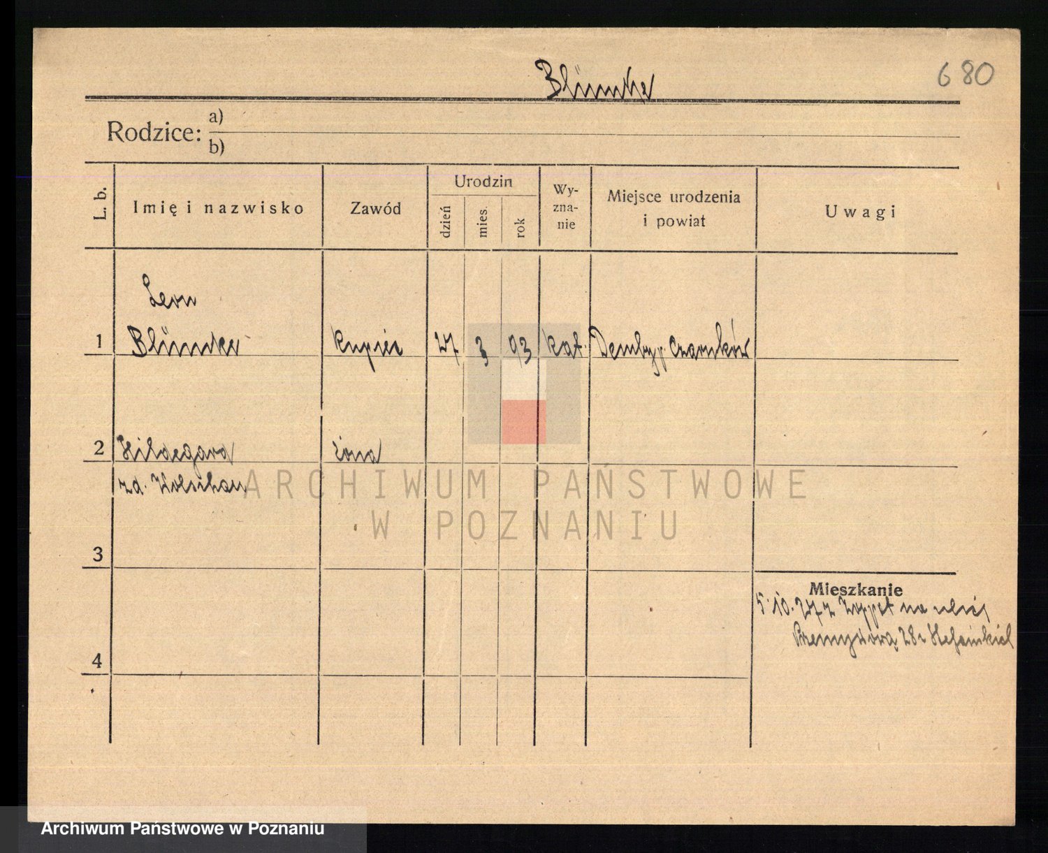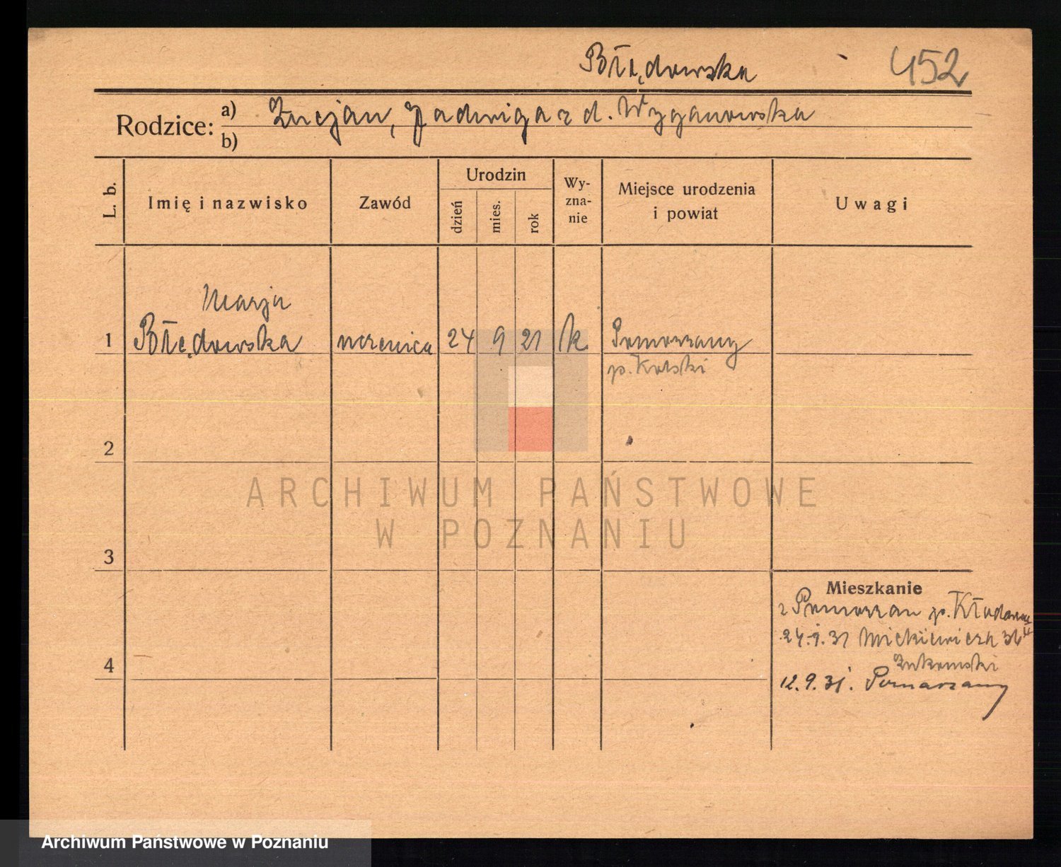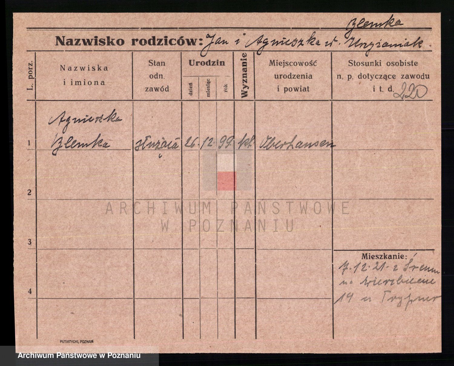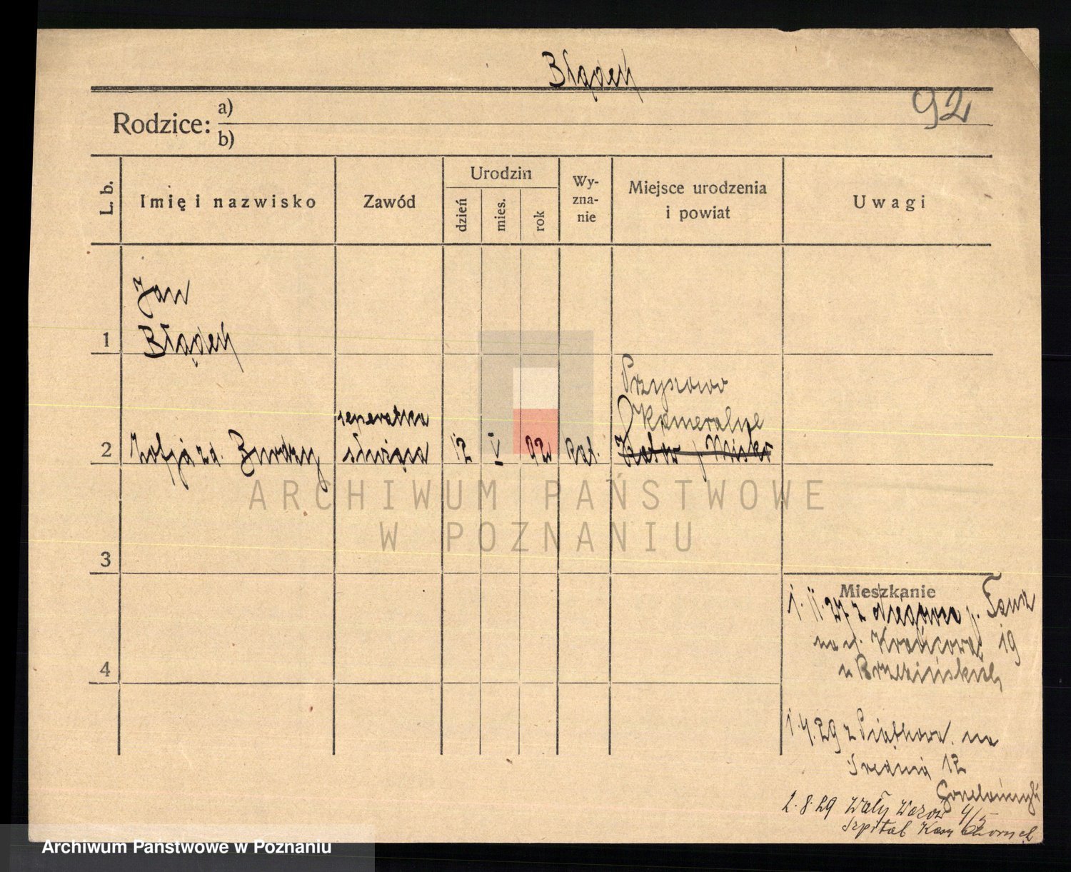 Podgląd karty osobowej dostępny jest po kliknięciu na nazwisko lub ikonkę karty. Można dokonywać powiększenia (ikony na górze) lub przechodzić między kolejnymi skanami (strzałki po bokach).