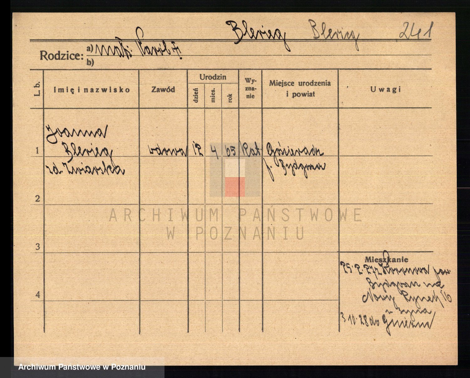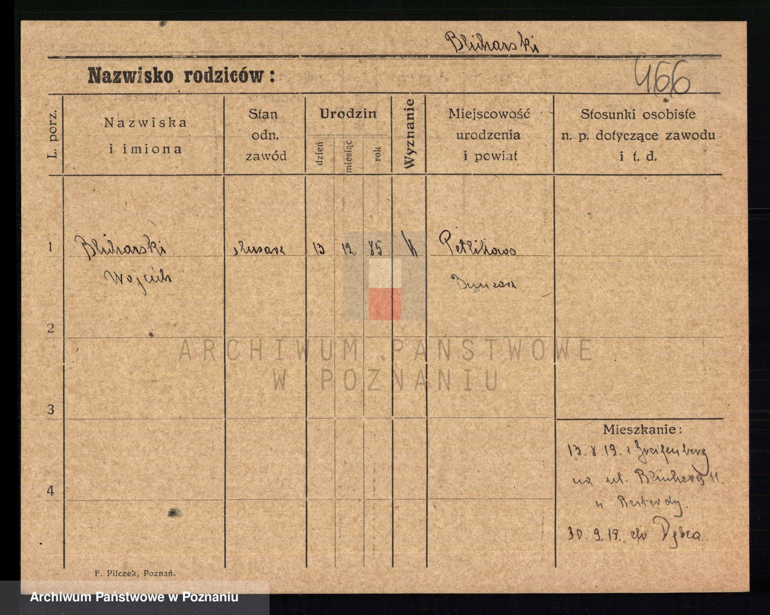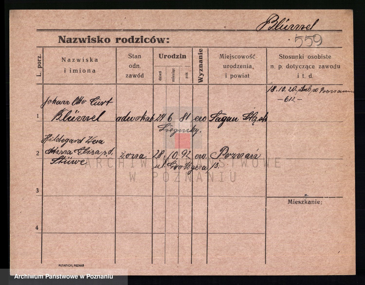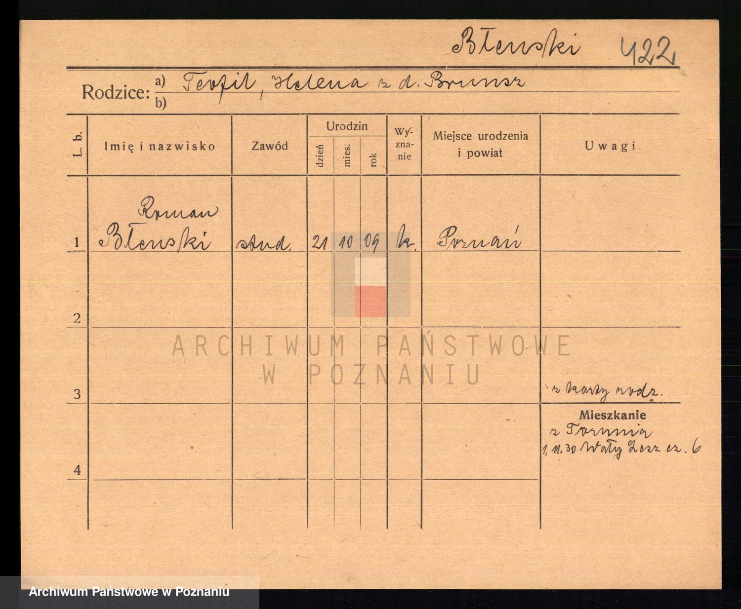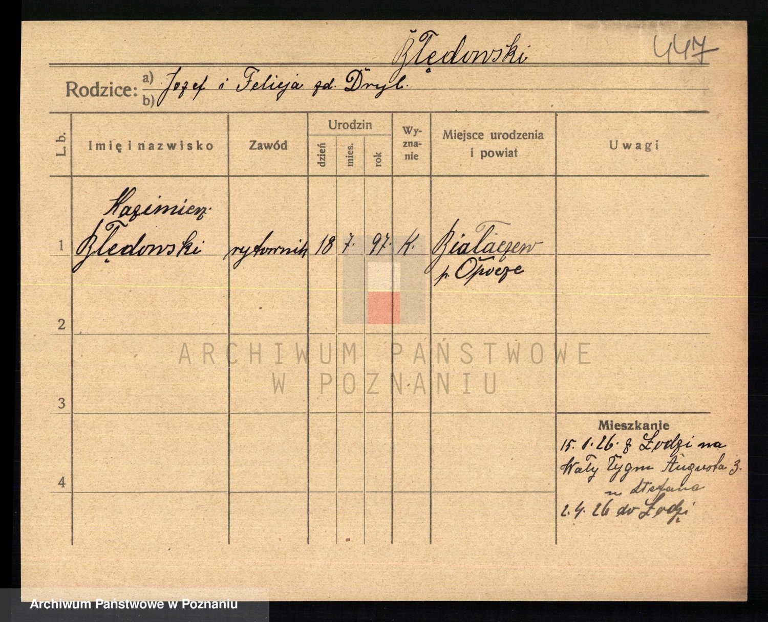 Podgląd karty osobowej dostępny jest po kliknięciu na nazwisko lub ikonkę karty. Można dokonywać powiększenia (ikony na górze) lub przechodzić między kolejnymi skanami (strzałki po bokach).
