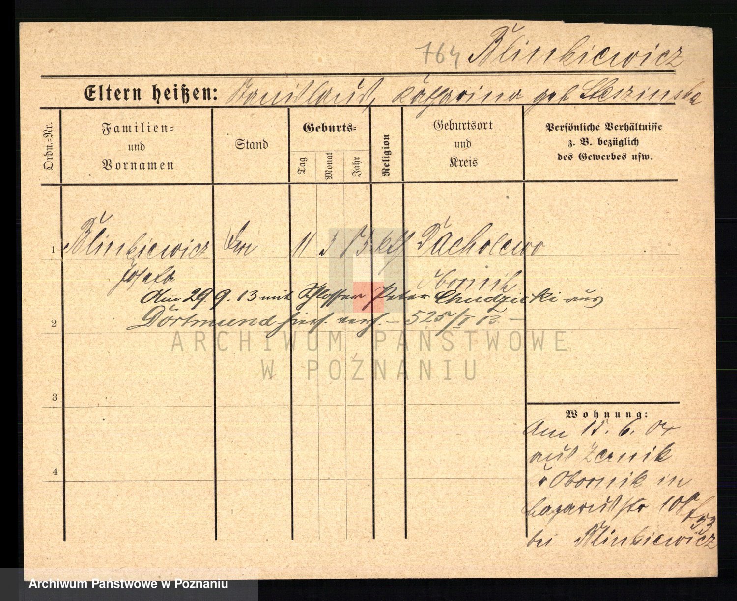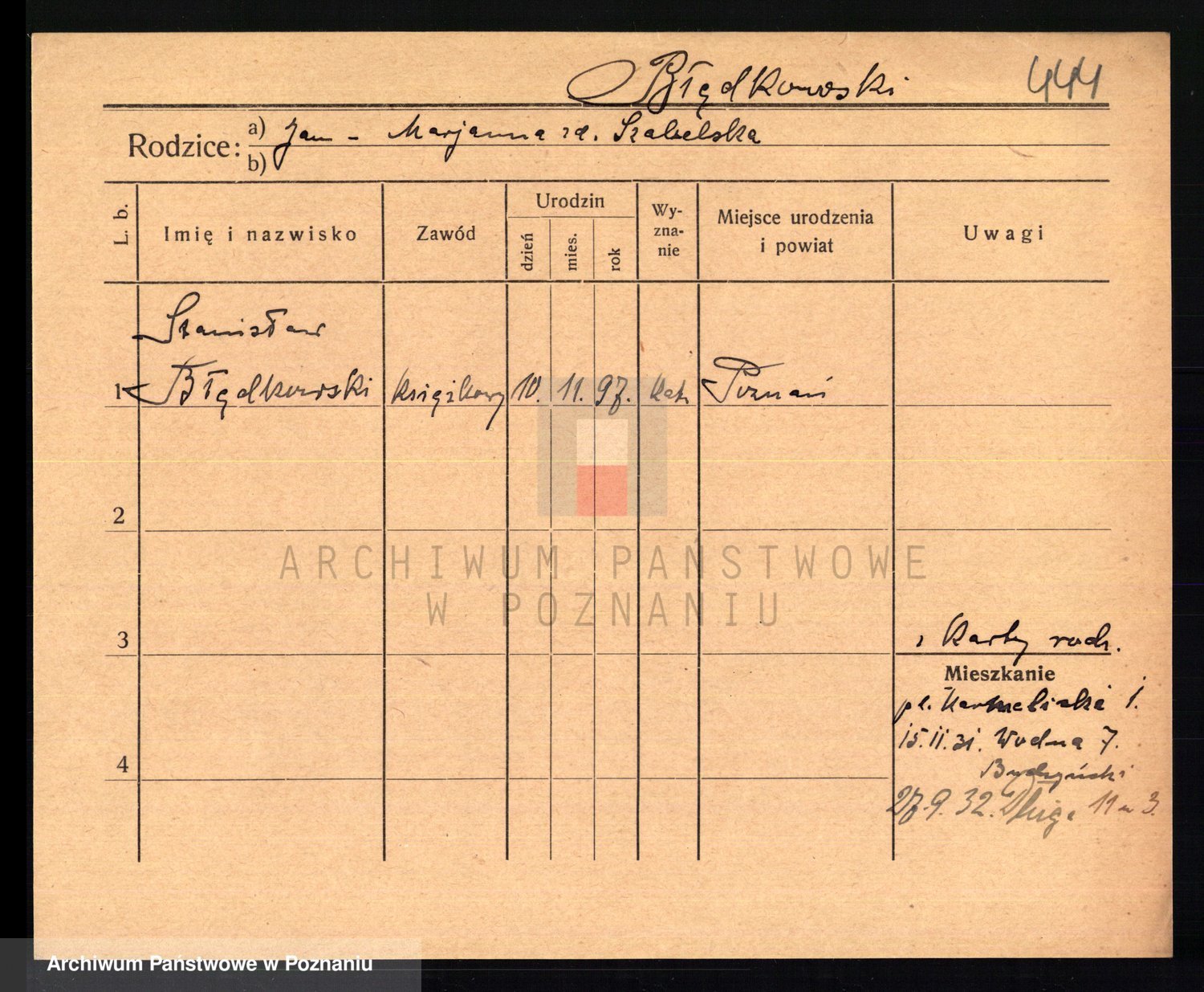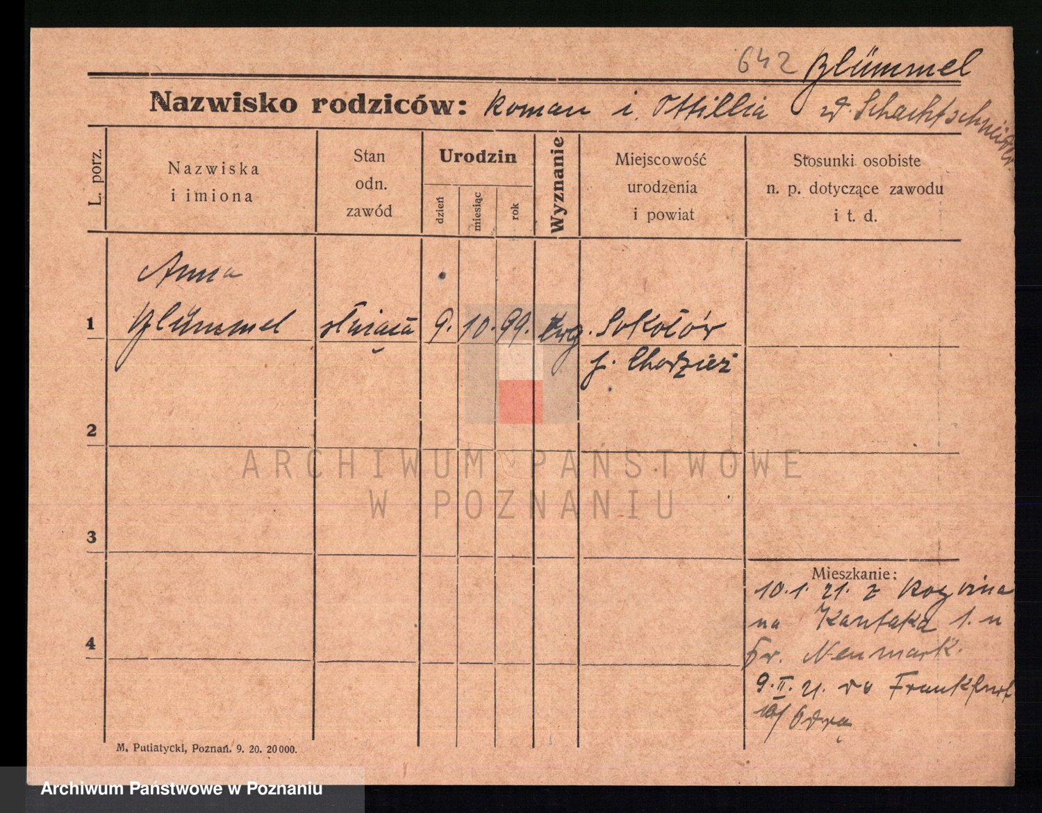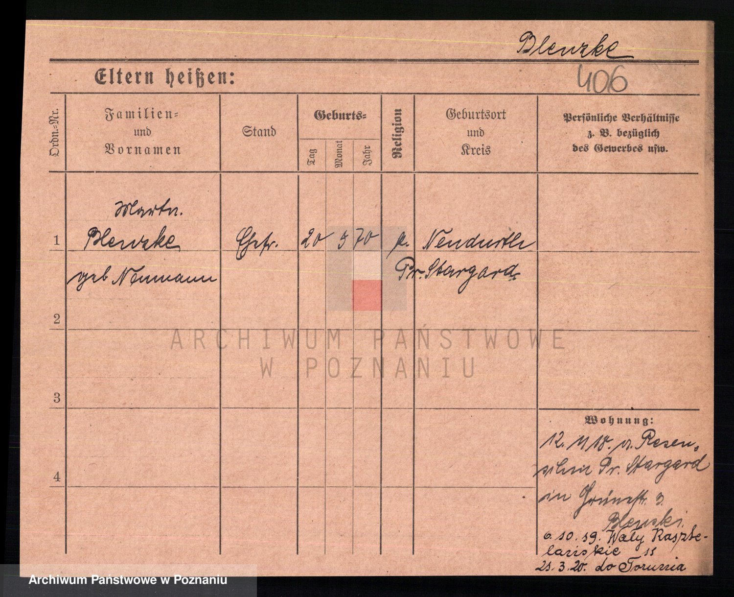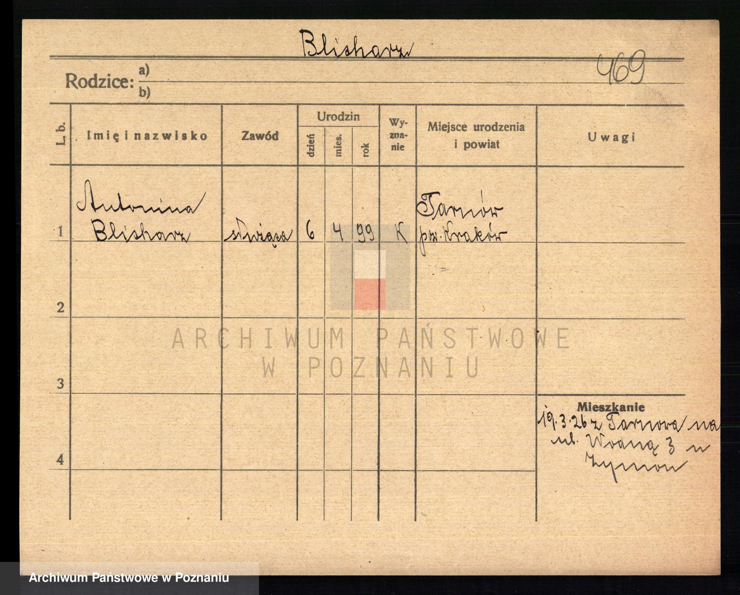 Podgląd karty osobowej dostępny jest po kliknięciu na nazwisko lub ikonkę karty. Można dokonywać powiększenia (ikony na górze) lub przechodzić między kolejnymi skanami (strzałki po bokach).