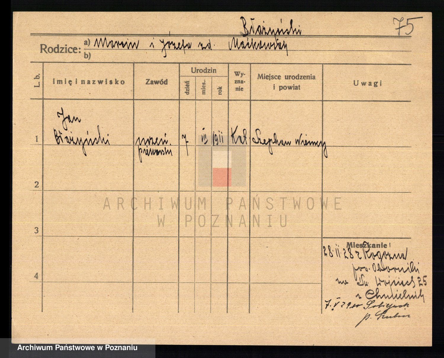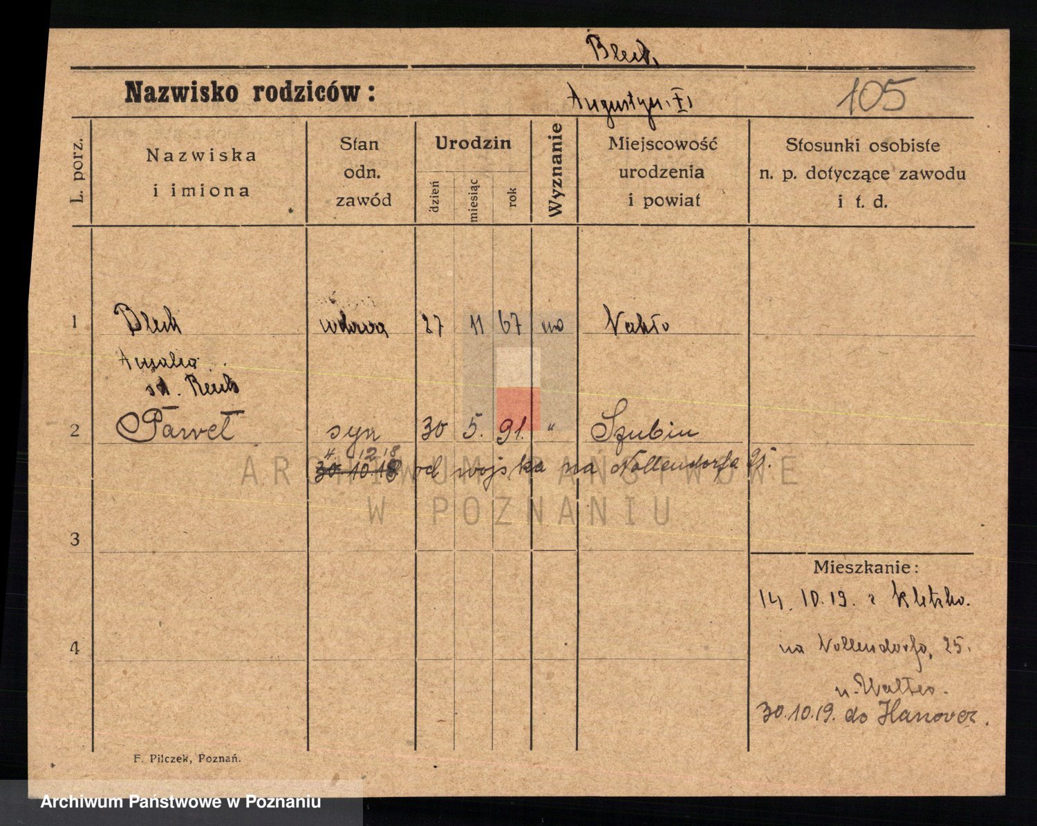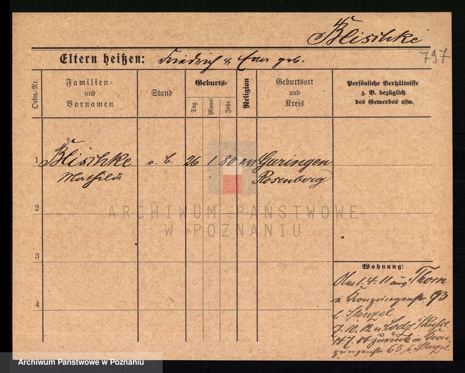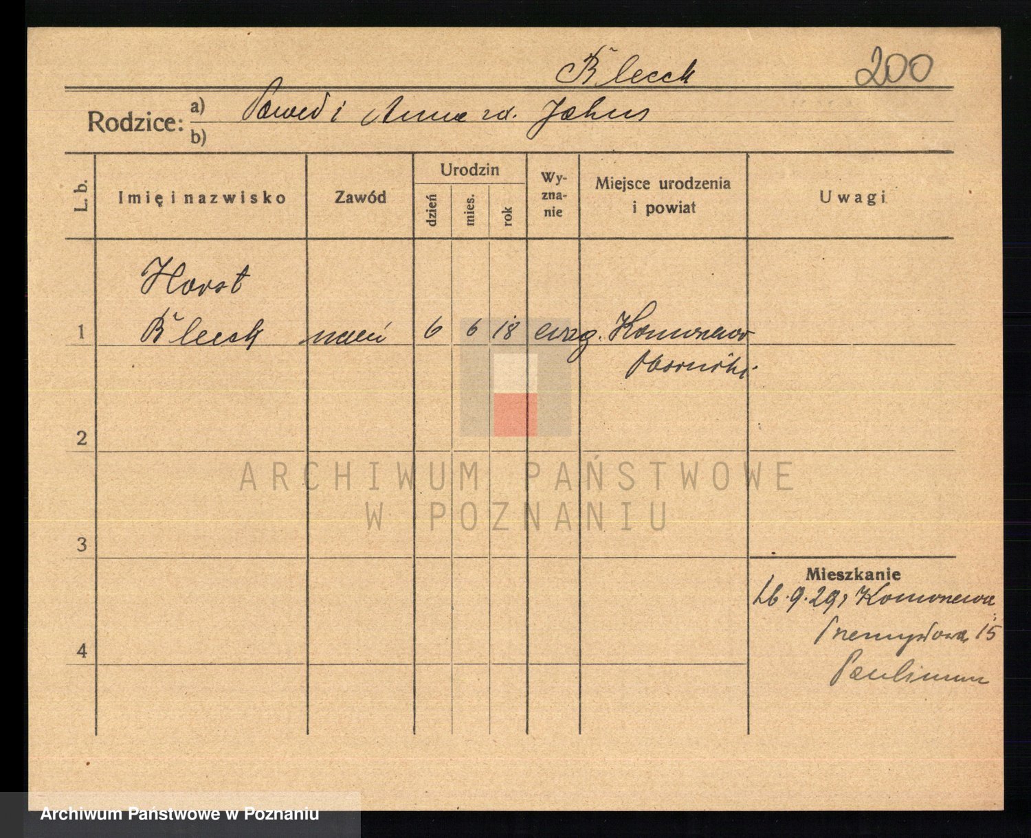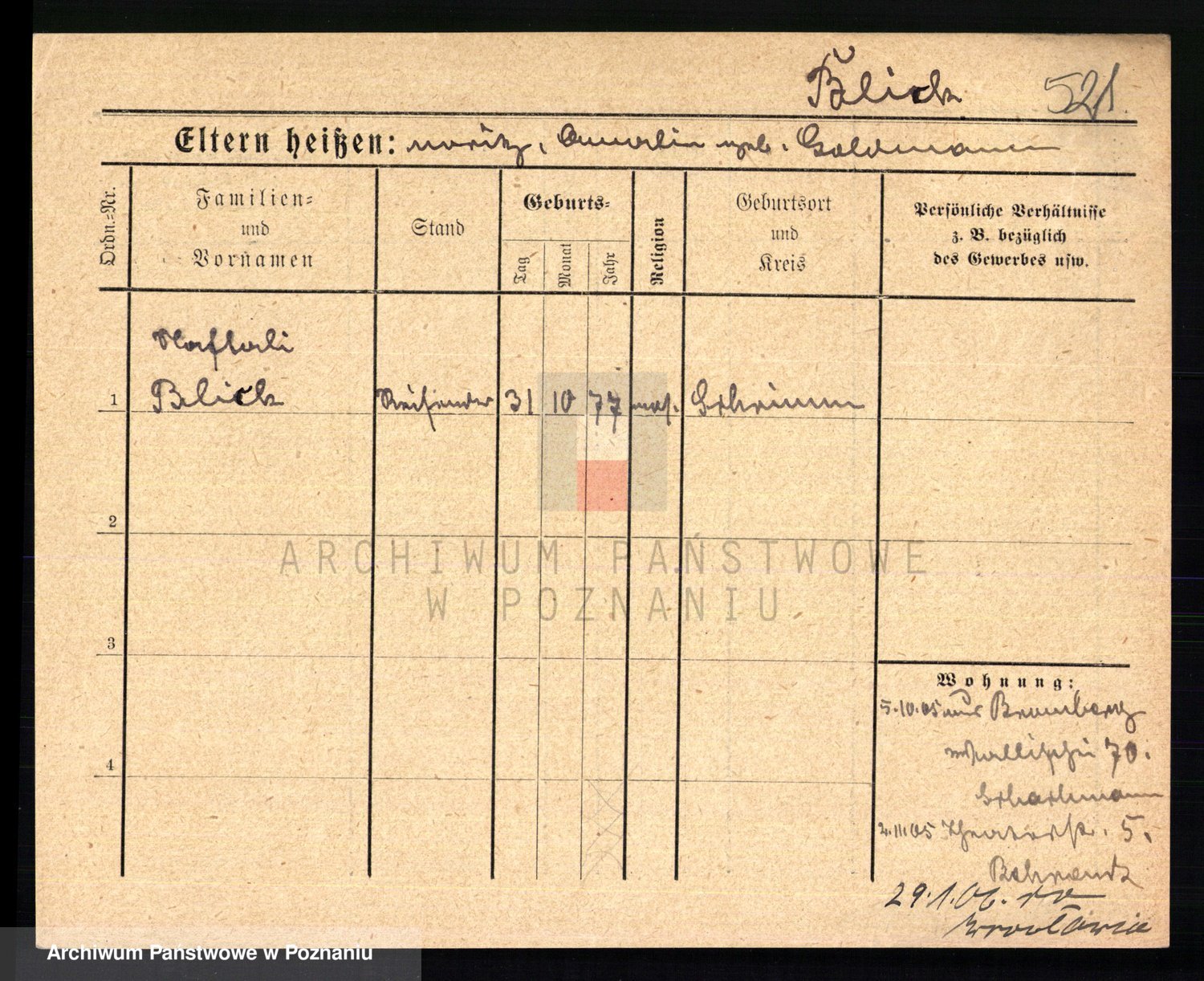 Podgląd karty osobowej dostępny jest po kliknięciu na nazwisko lub ikonkę karty. Można dokonywać powiększenia (ikony na górze) lub przechodzić między kolejnymi skanami (strzałki po bokach).