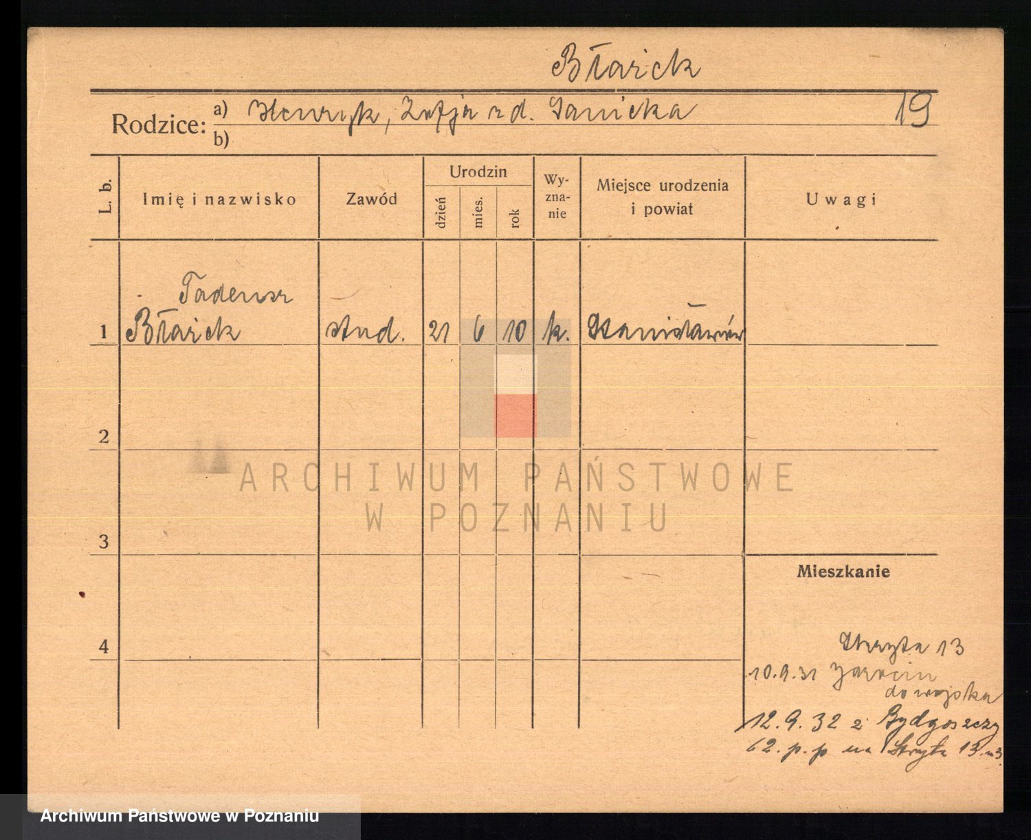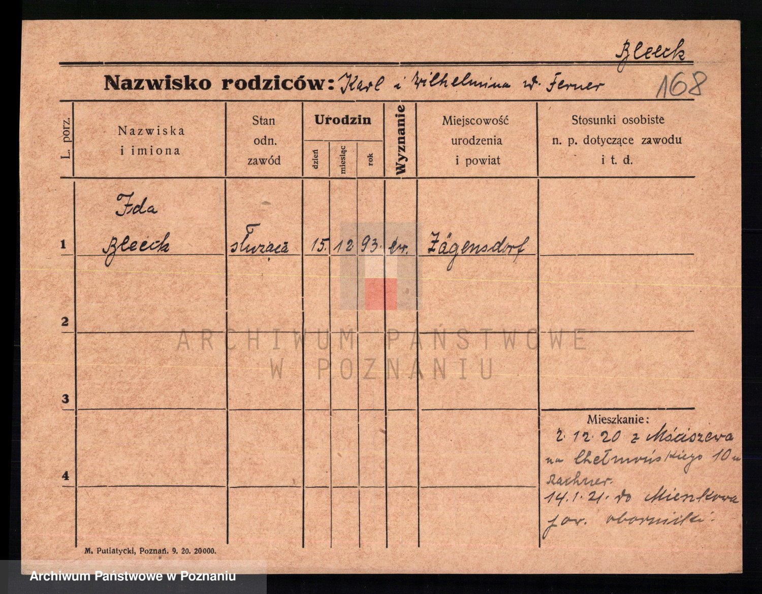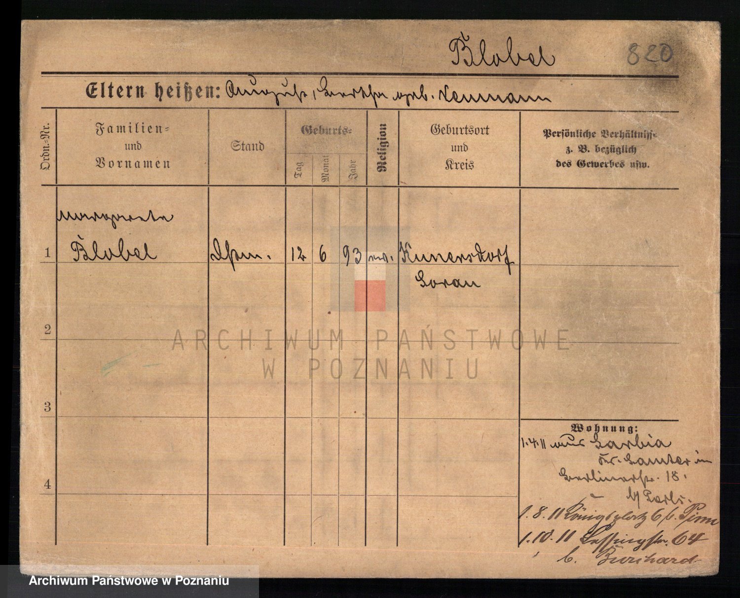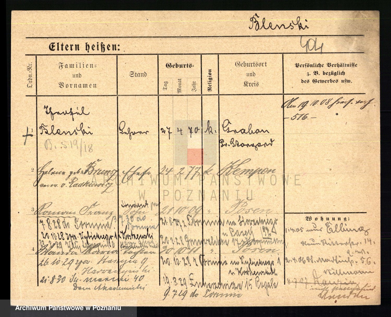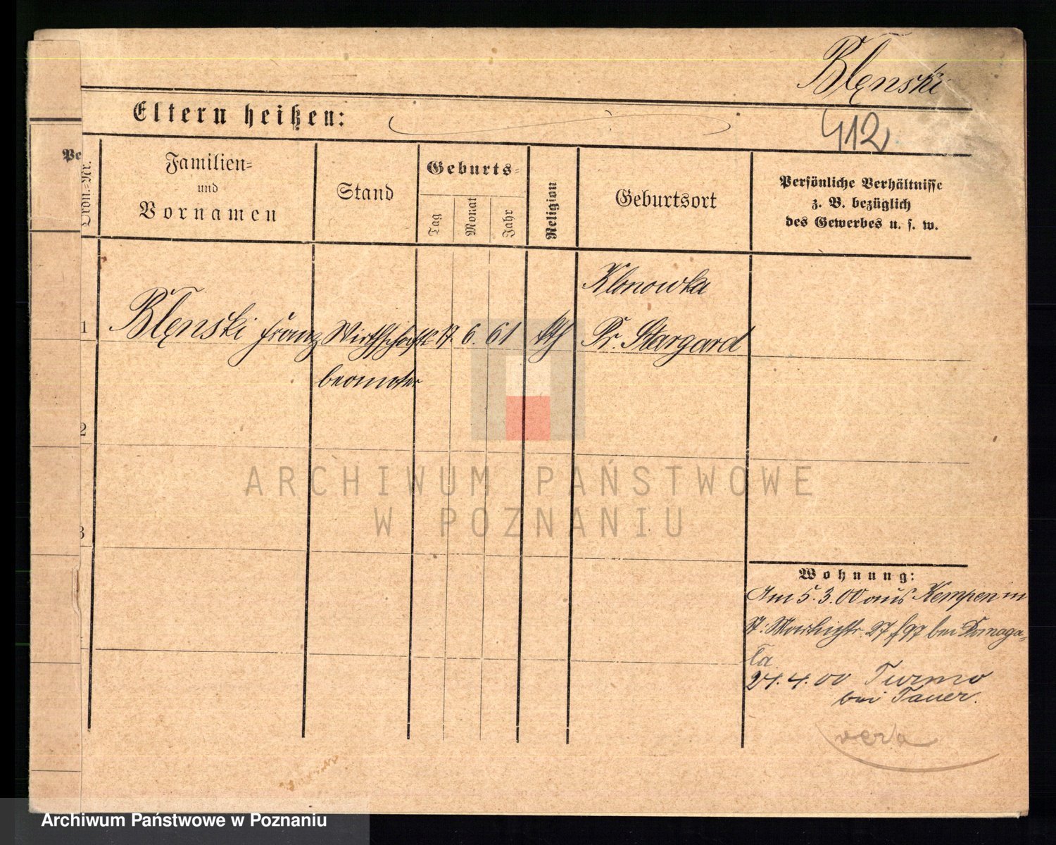 Podgląd karty osobowej dostępny jest po kliknięciu na nazwisko lub ikonkę karty. Można dokonywać powiększenia (ikony na górze) lub przechodzić między kolejnymi skanami (strzałki po bokach).