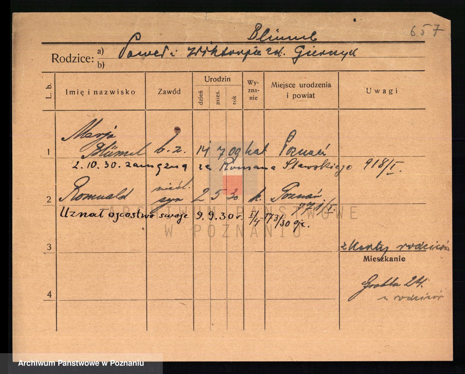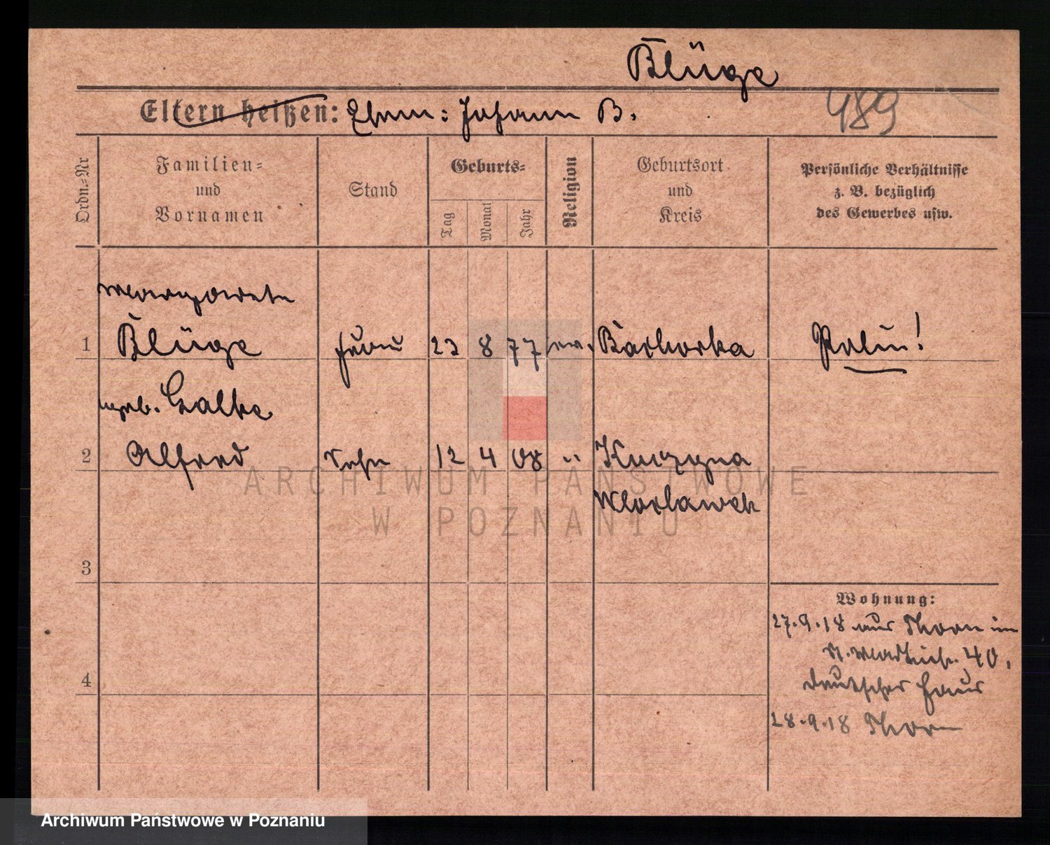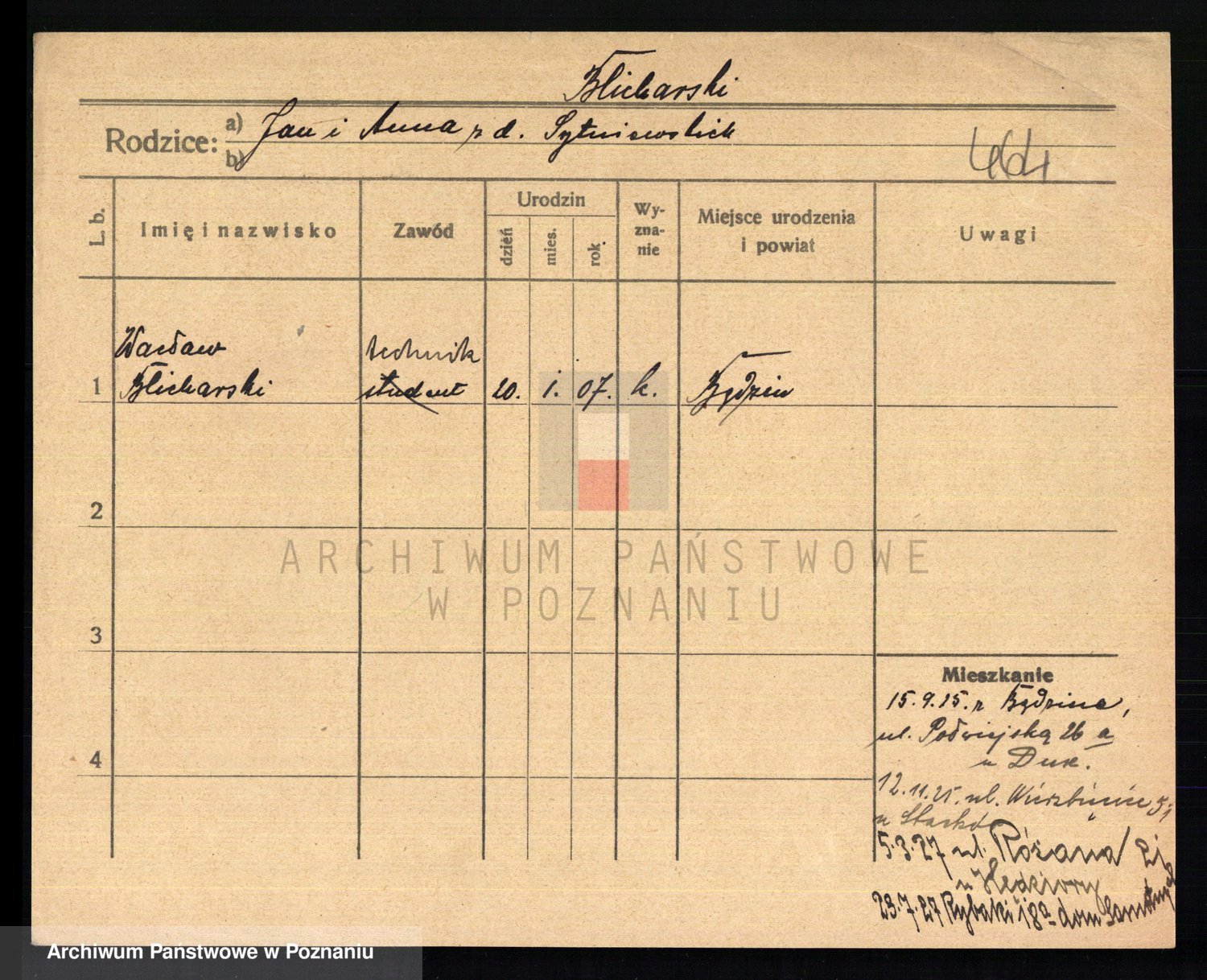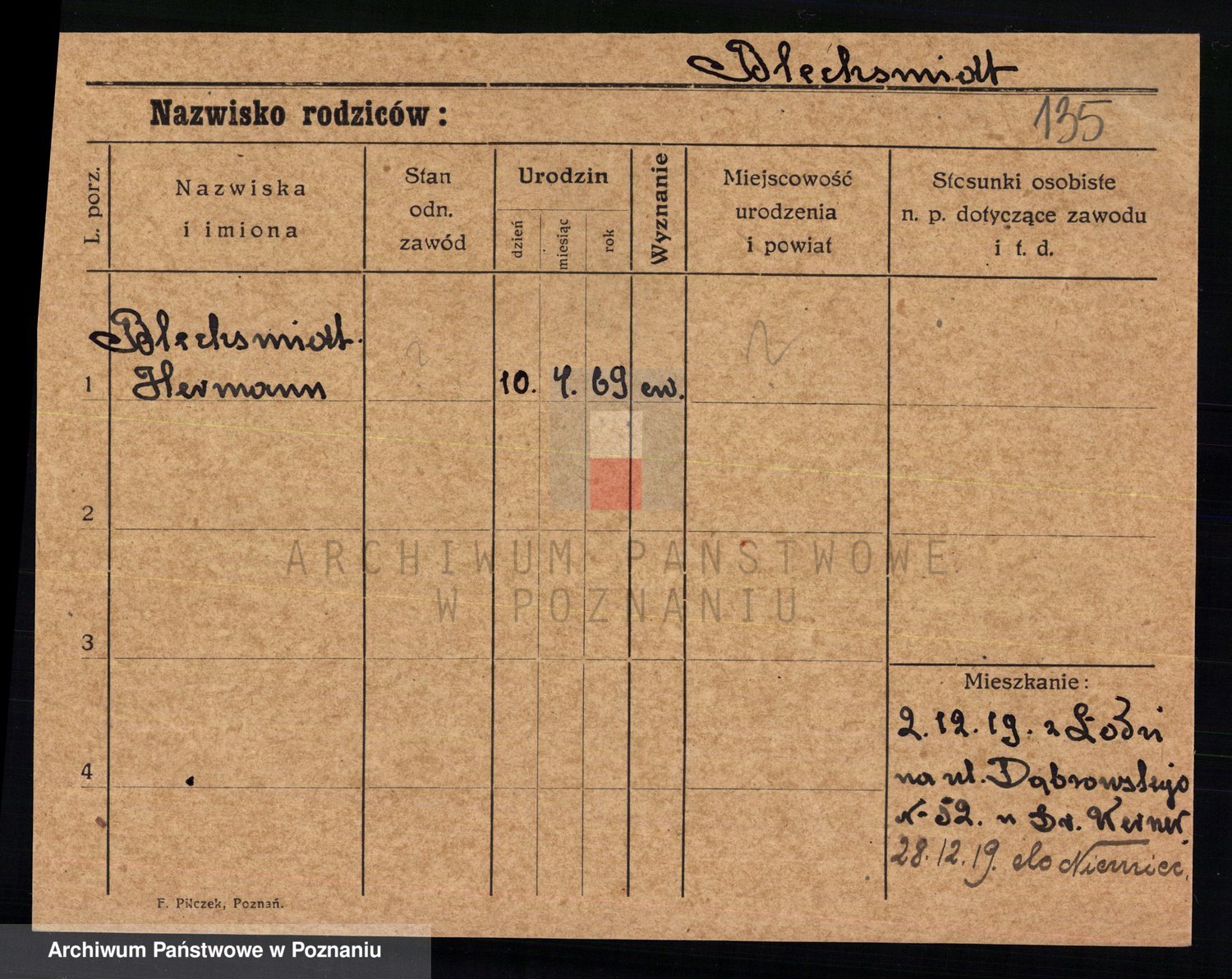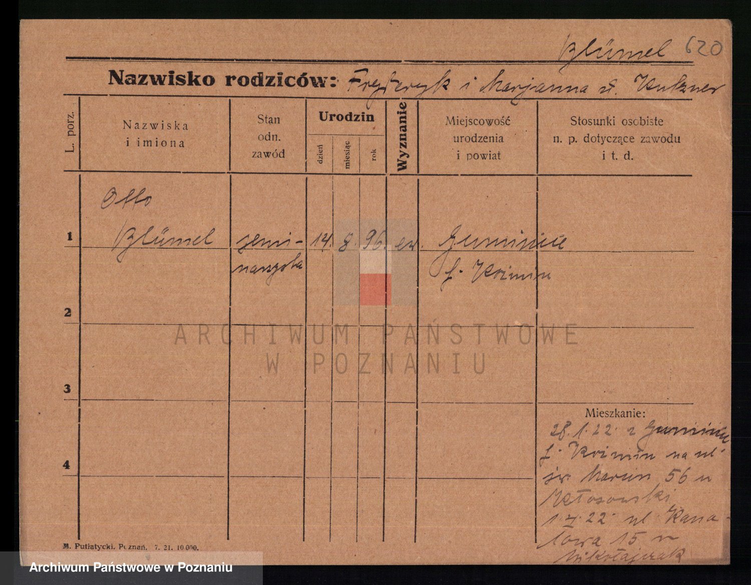 Podgląd karty osobowej dostępny jest po kliknięciu na nazwisko lub ikonkę karty. Można dokonywać powiększenia (ikony na górze) lub przechodzić między kolejnymi skanami (strzałki po bokach).