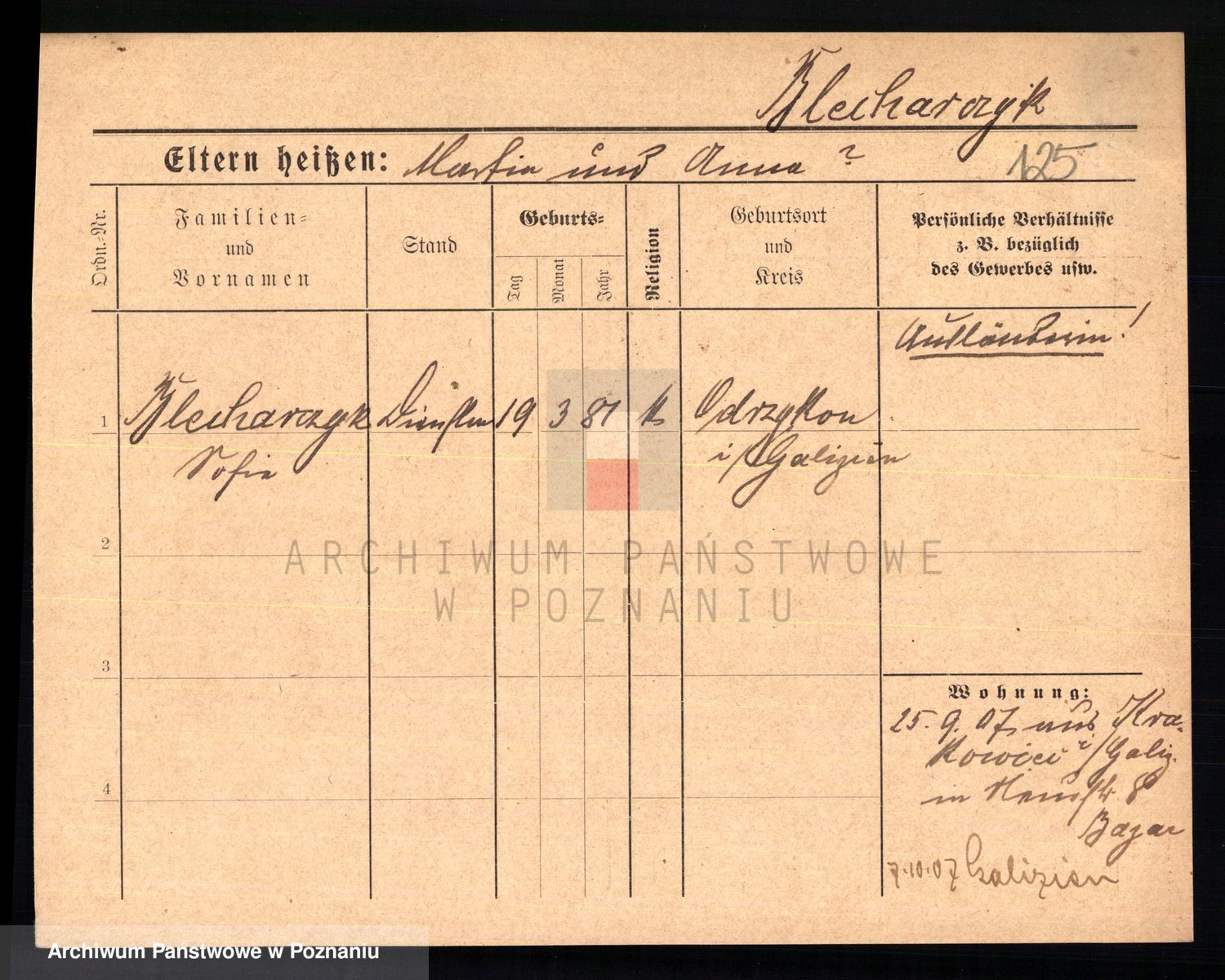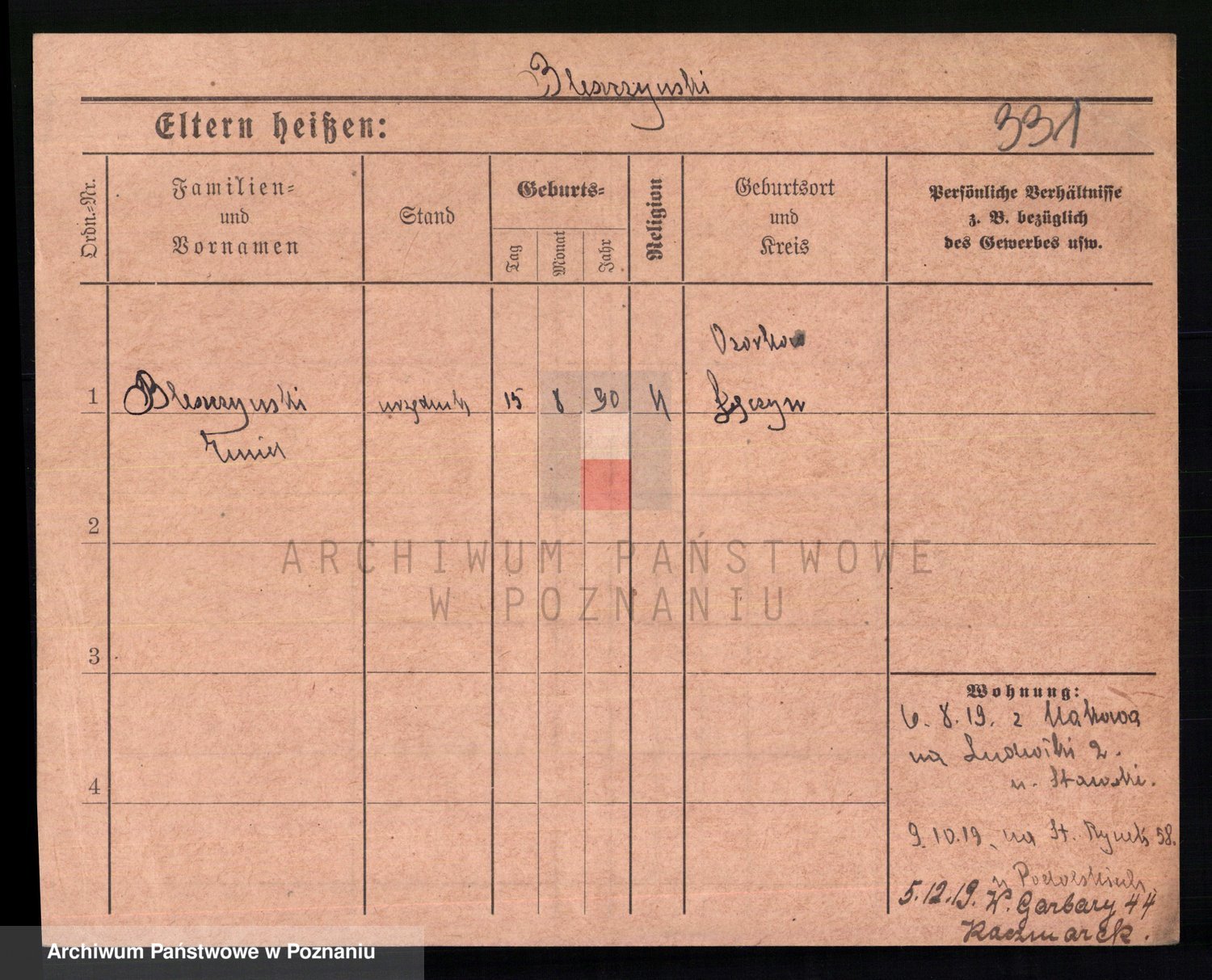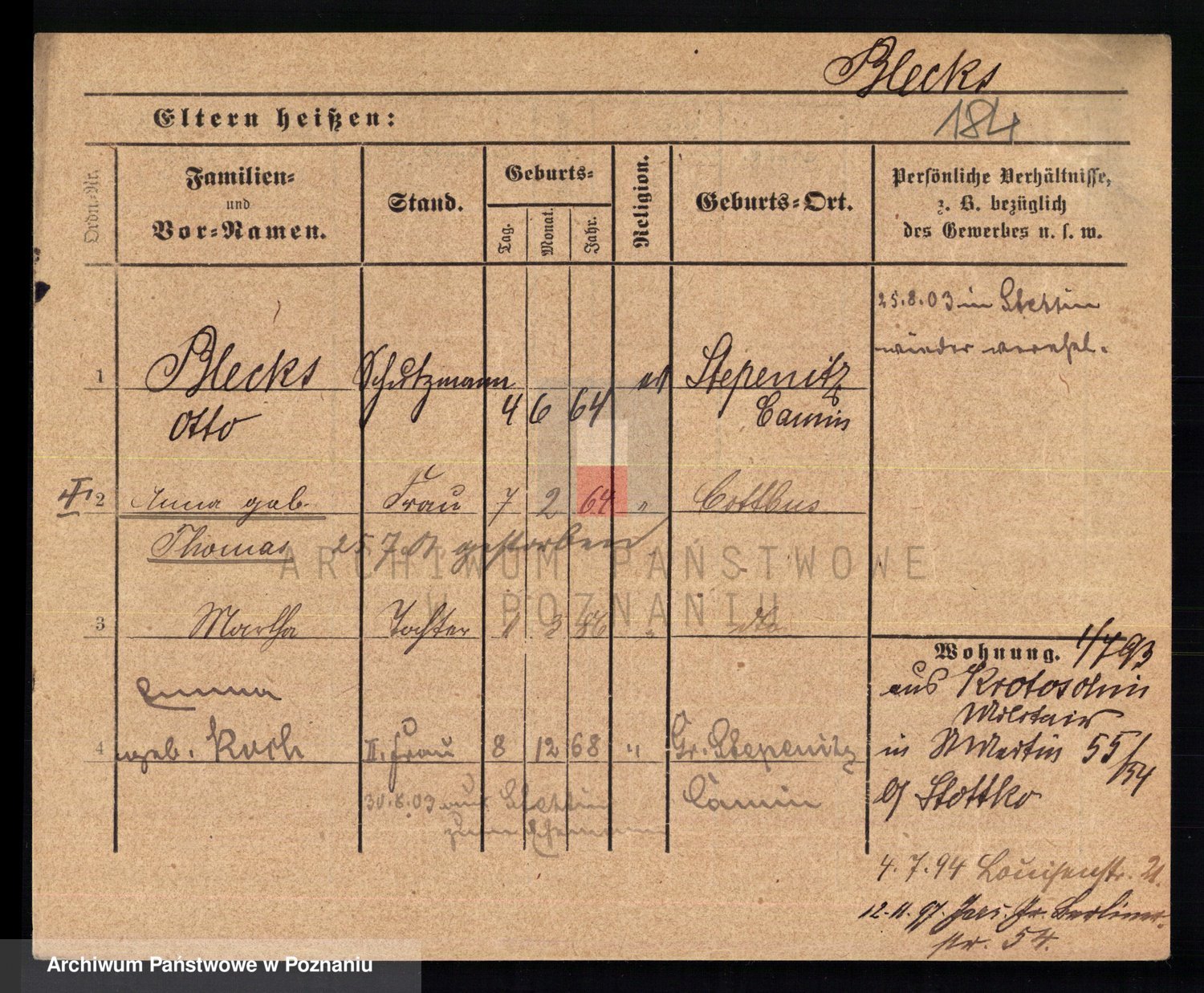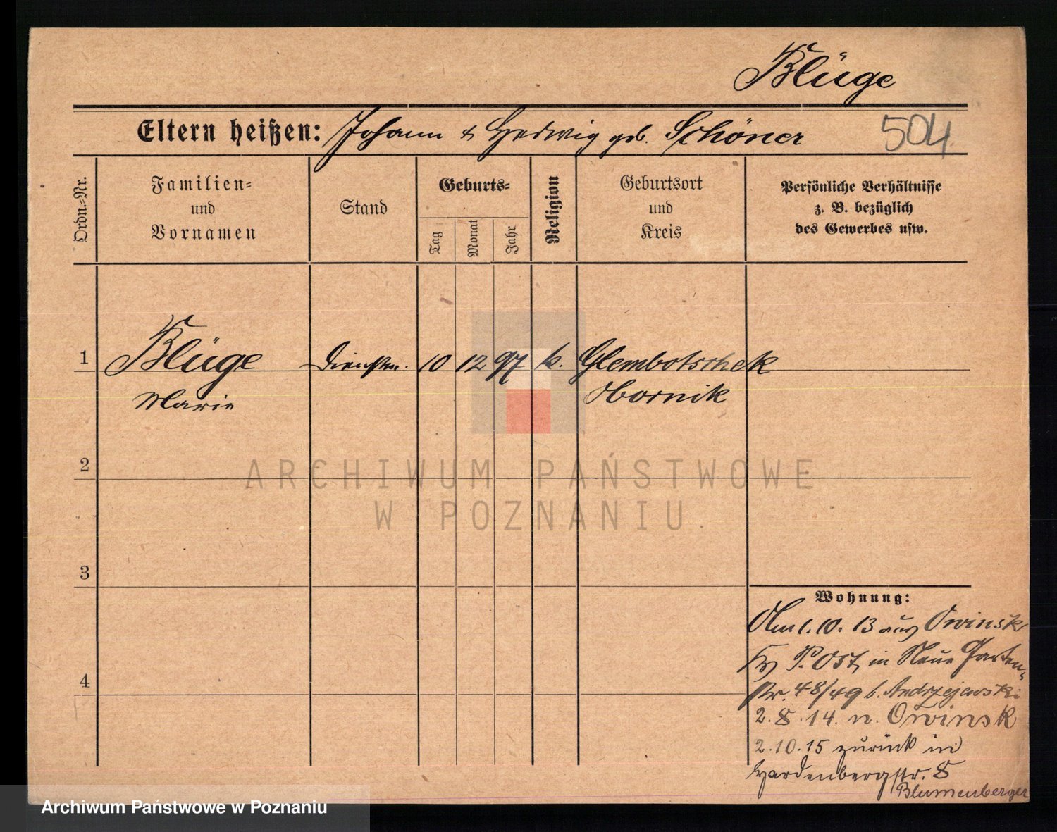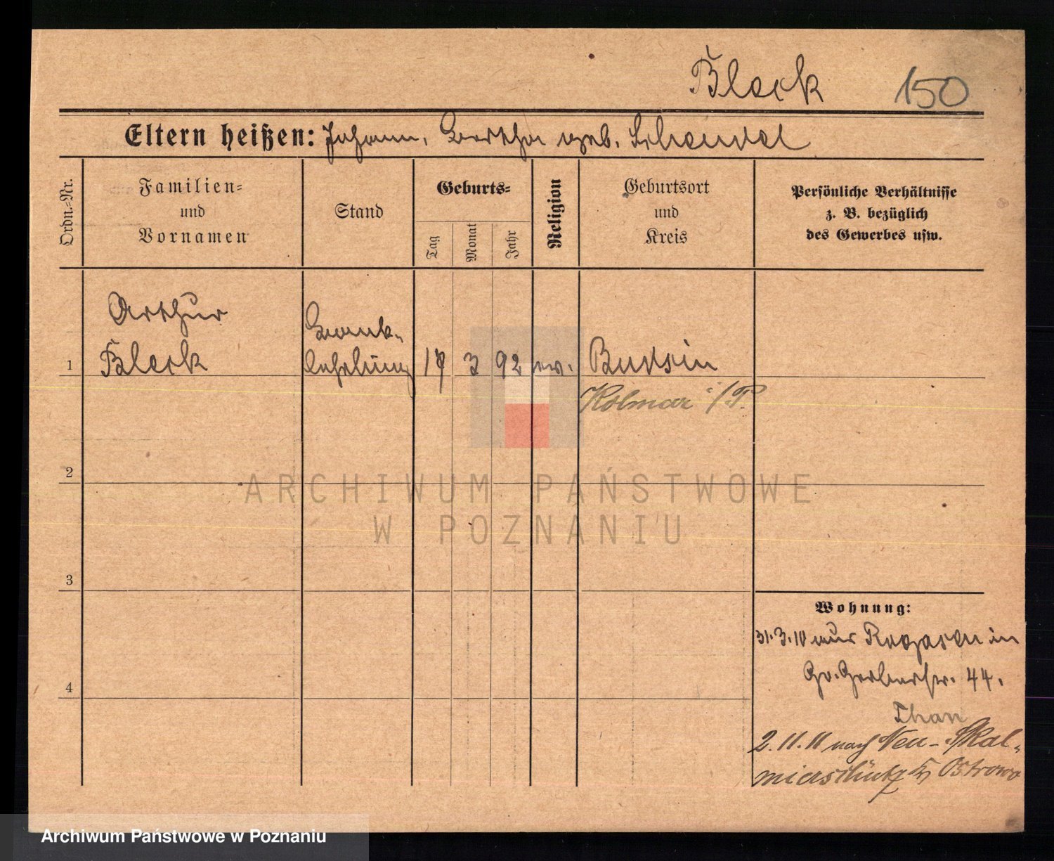 Podgląd karty osobowej dostępny jest po kliknięciu na nazwisko lub ikonkę karty. Można dokonywać powiększenia (ikony na górze) lub przechodzić między kolejnymi skanami (strzałki po bokach).