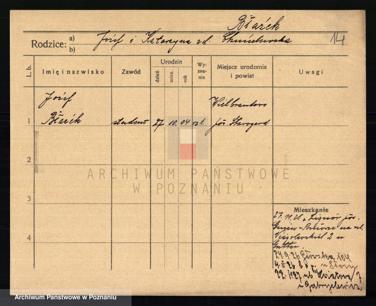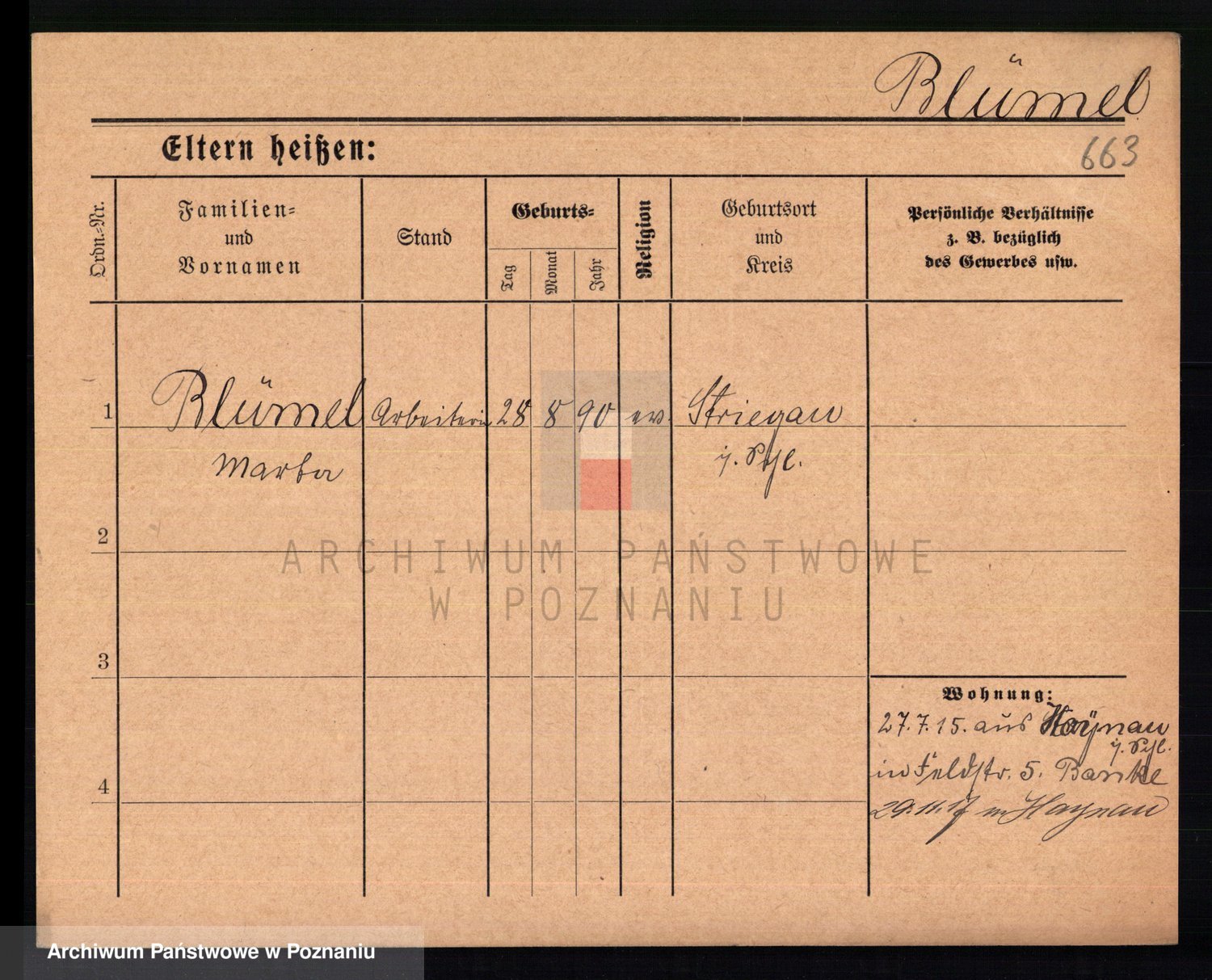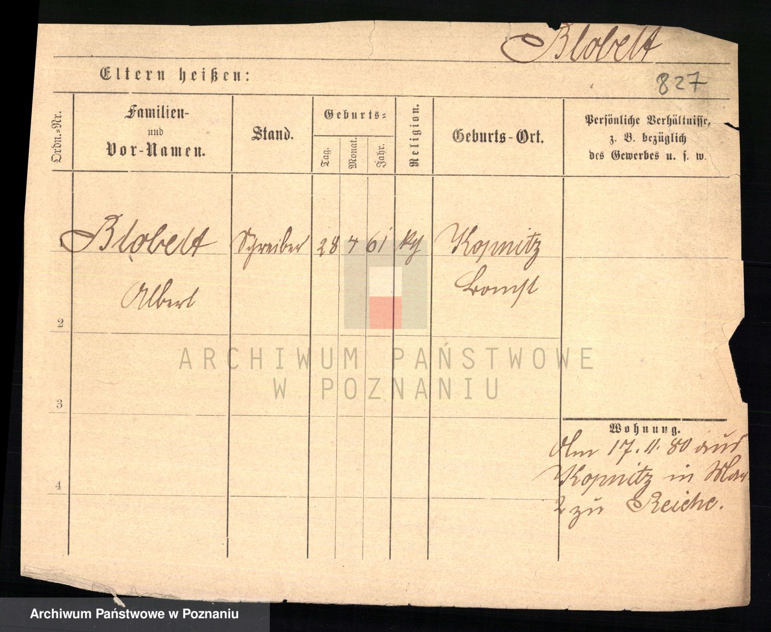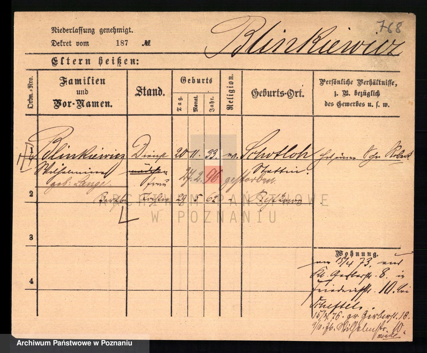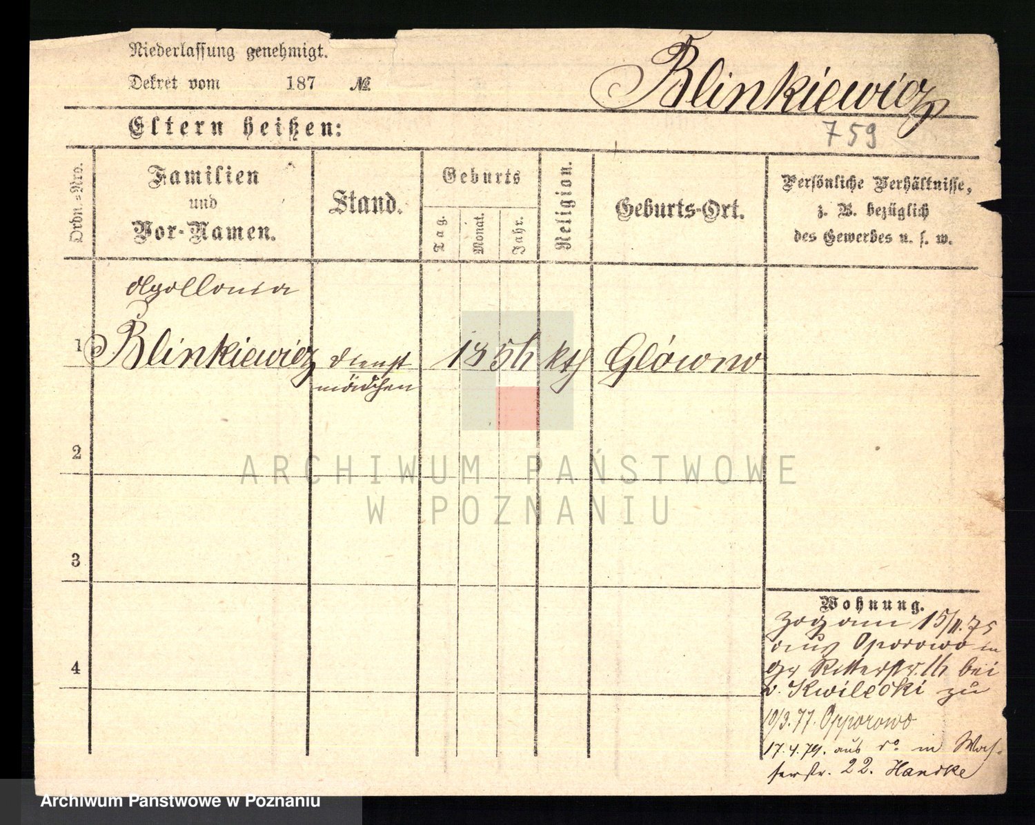 Podgląd karty osobowej dostępny jest po kliknięciu na nazwisko lub ikonkę karty. Można dokonywać powiększenia (ikony na górze) lub przechodzić między kolejnymi skanami (strzałki po bokach).