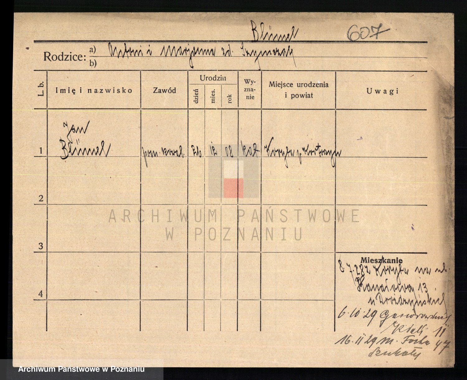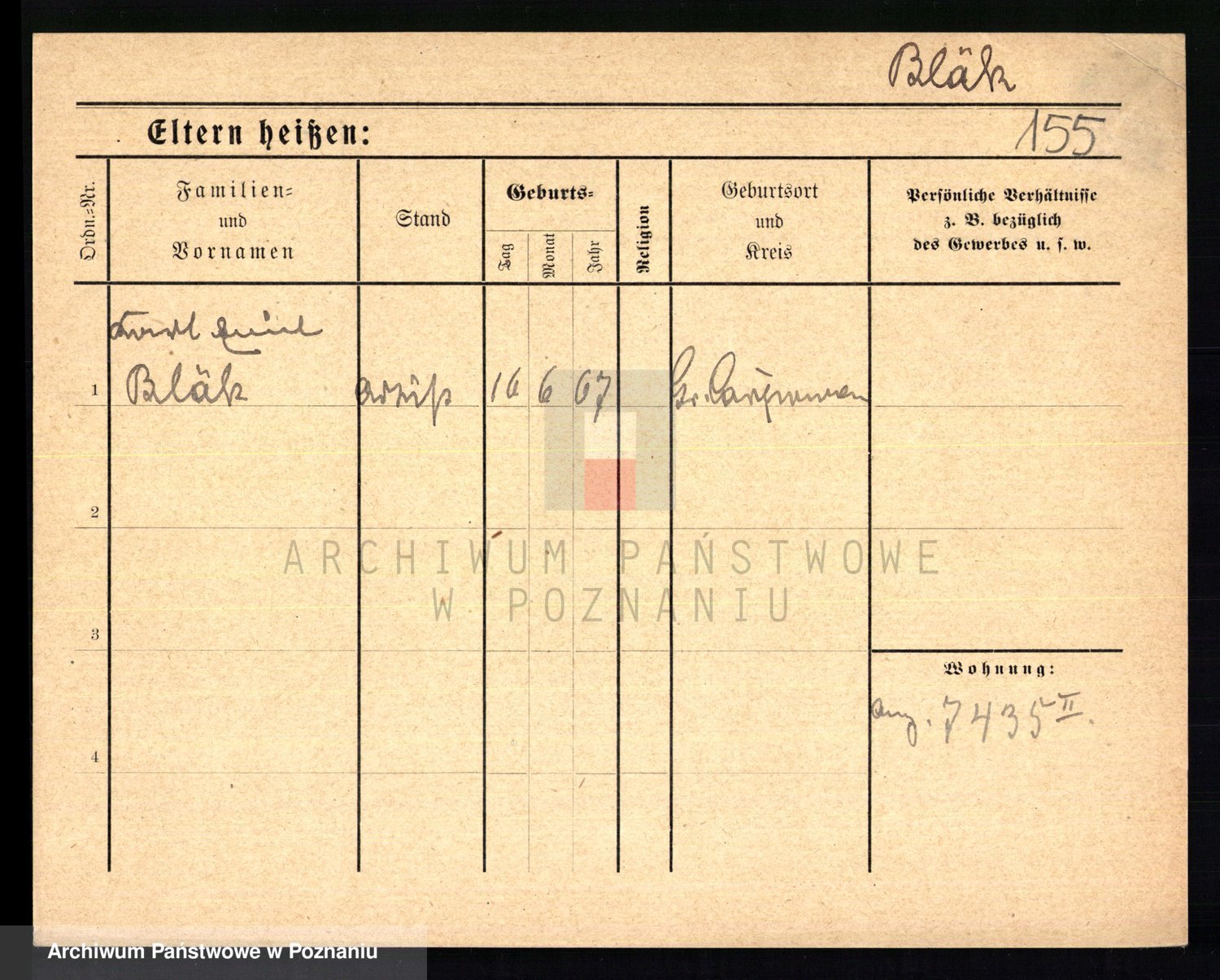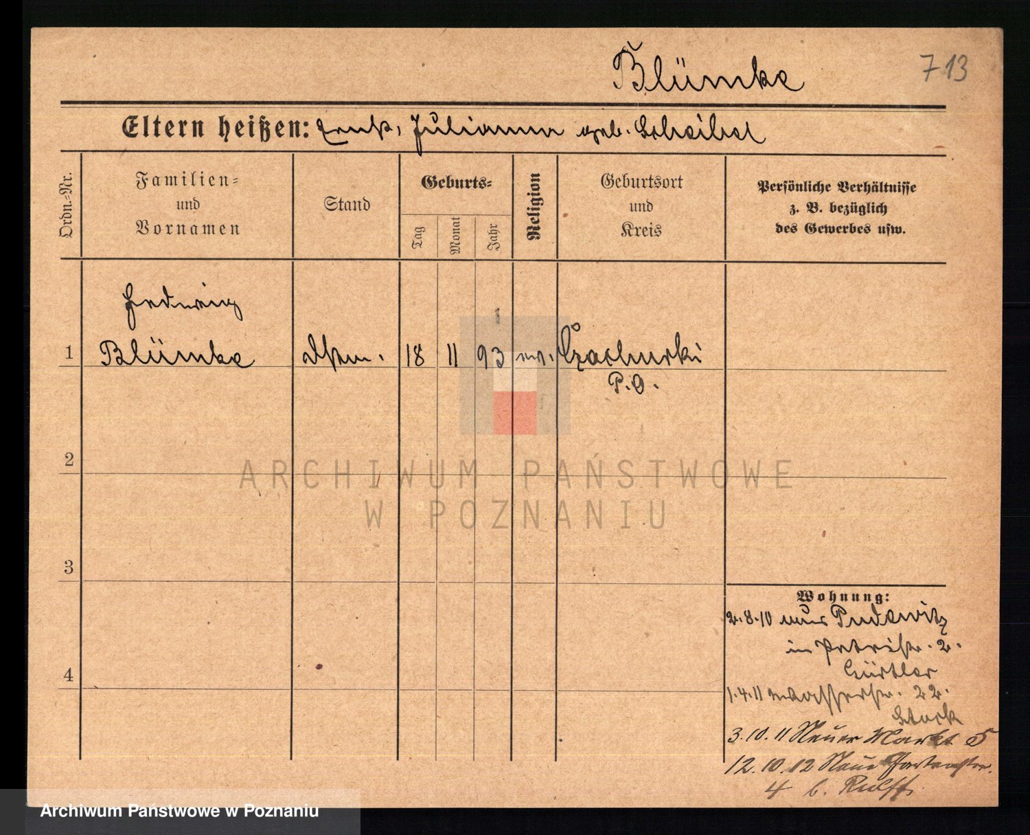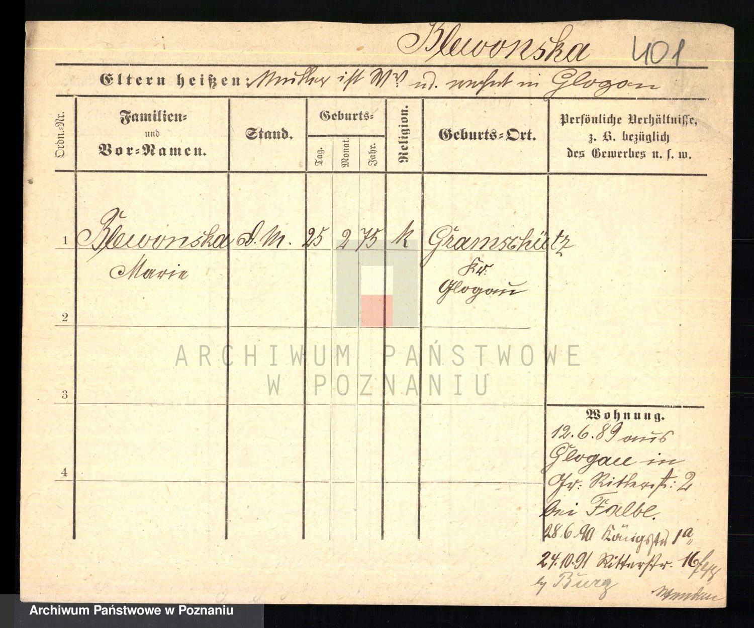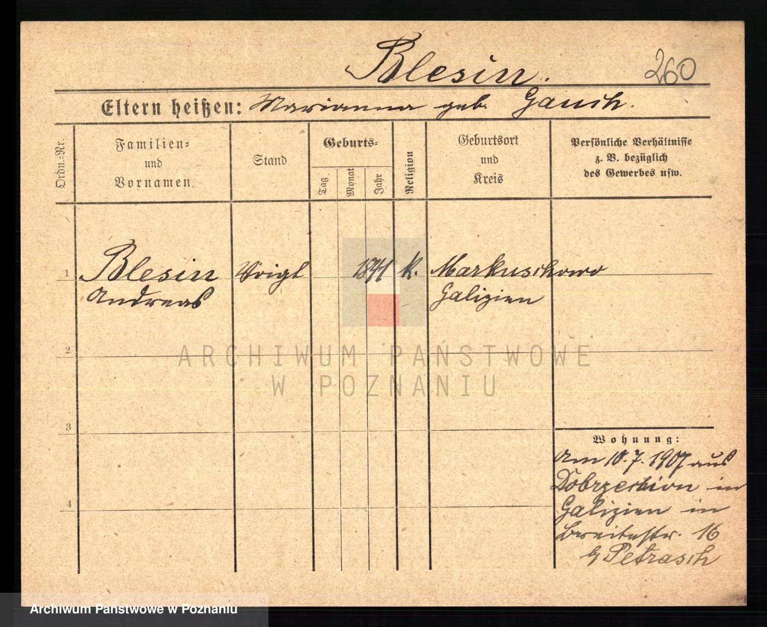 Podgląd karty osobowej dostępny jest po kliknięciu na nazwisko lub ikonkę karty. Można dokonywać powiększenia (ikony na górze) lub przechodzić między kolejnymi skanami (strzałki po bokach).
