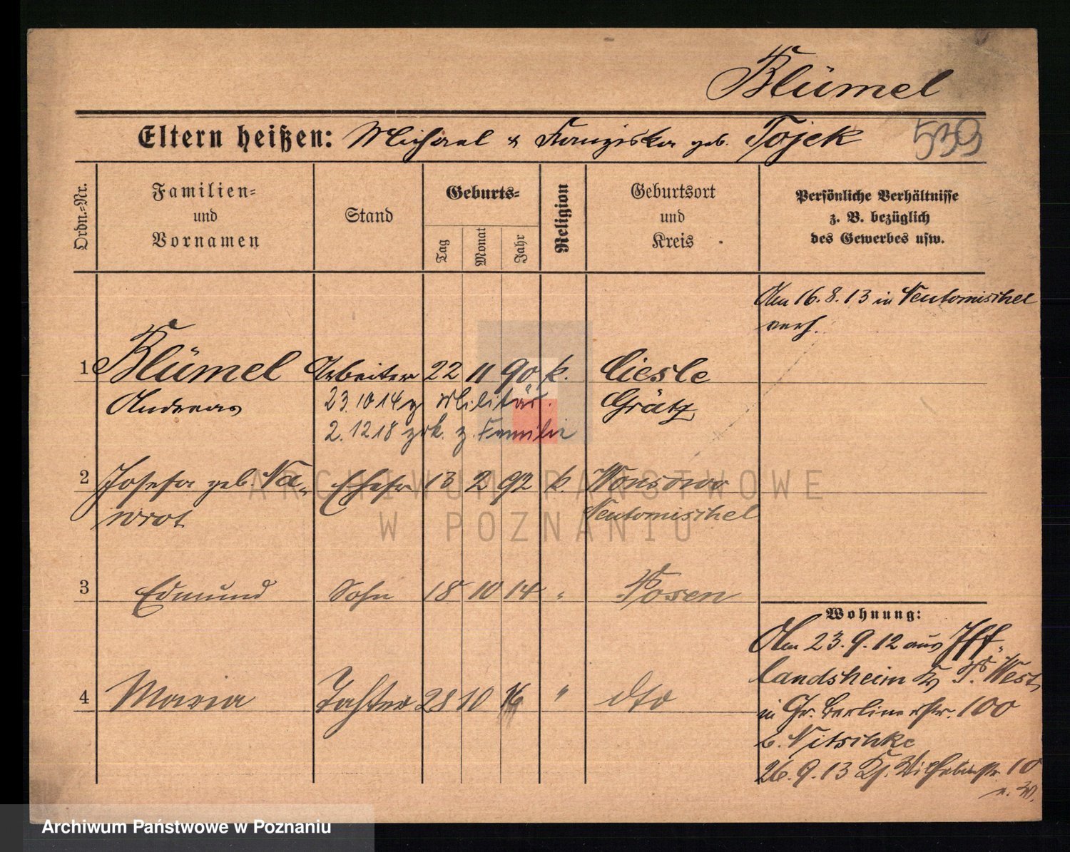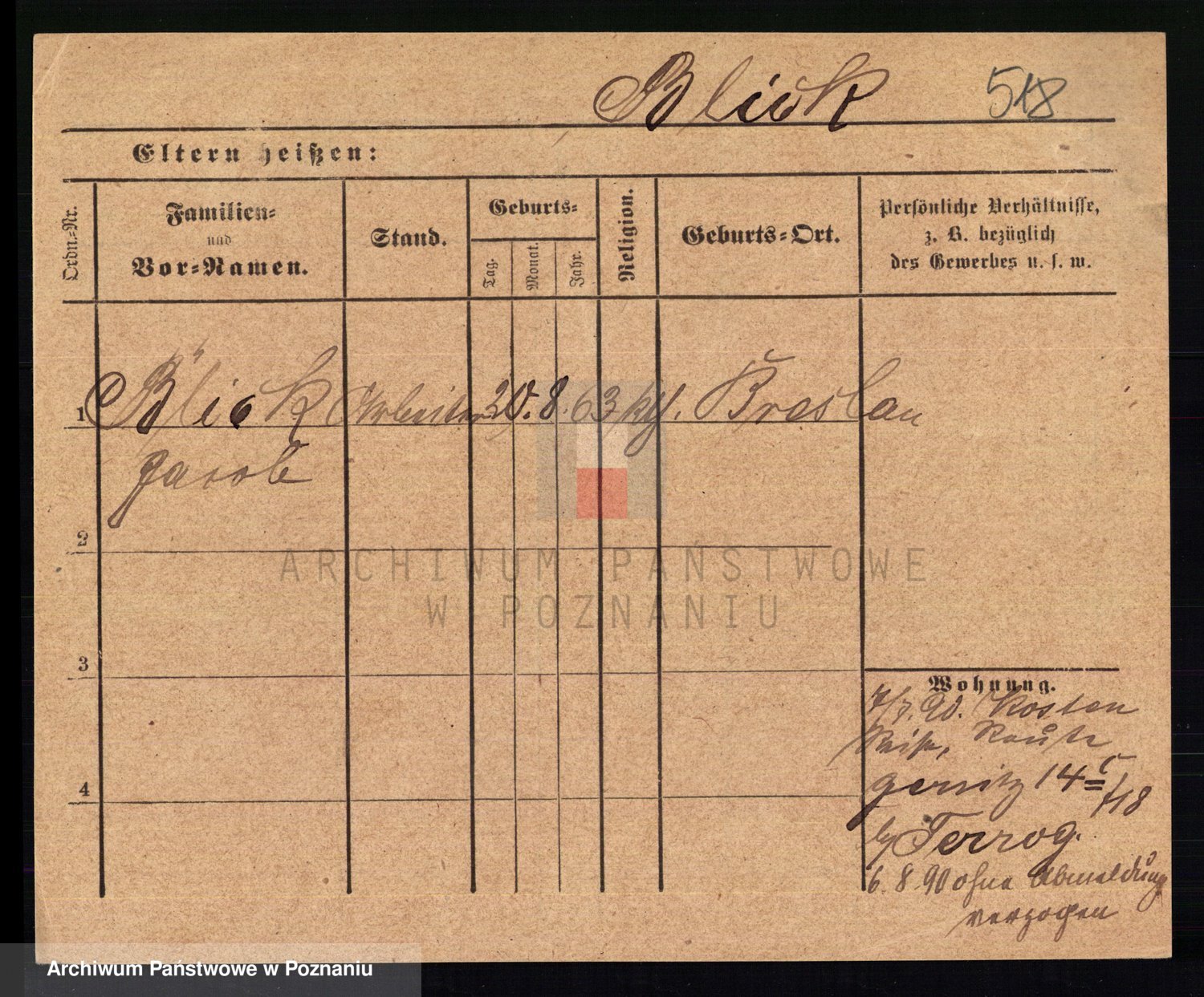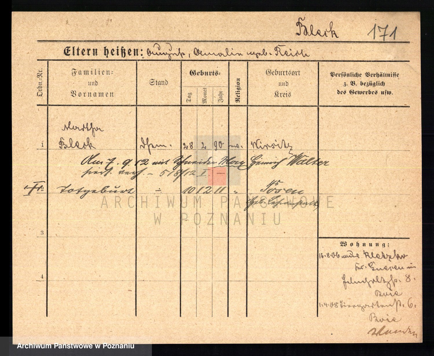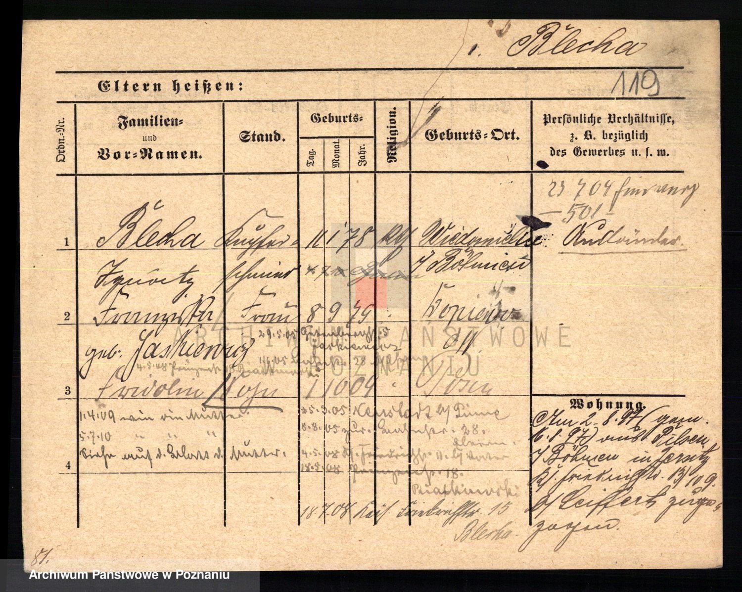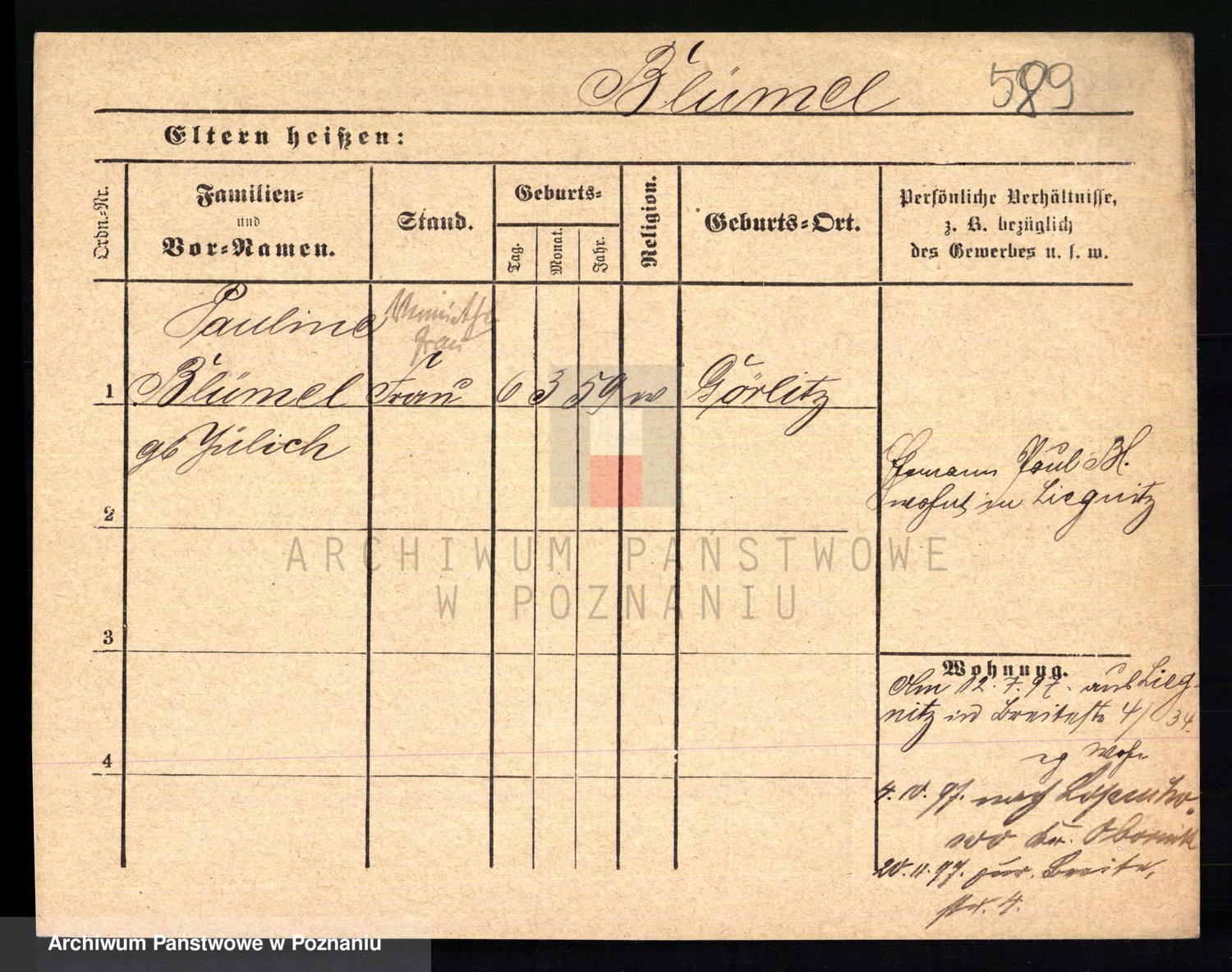 Podgląd karty osobowej dostępny jest po kliknięciu na nazwisko lub ikonkę karty. Można dokonywać powiększenia (ikony na górze) lub przechodzić między kolejnymi skanami (strzałki po bokach).