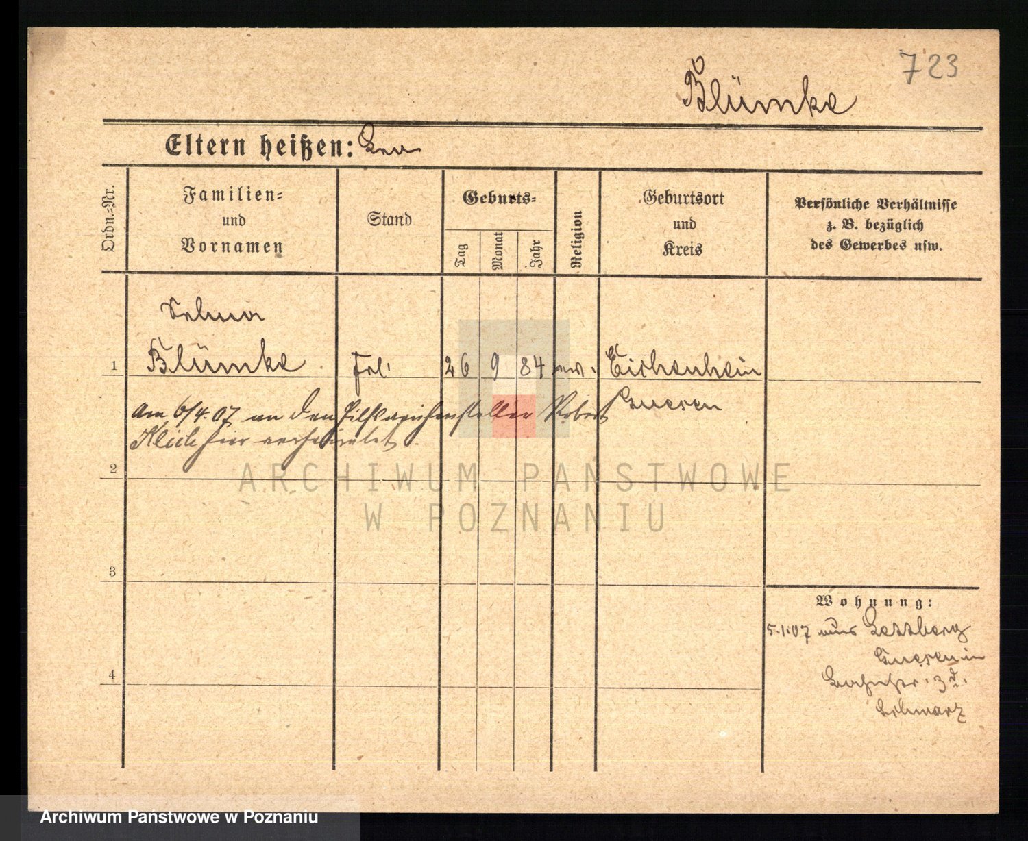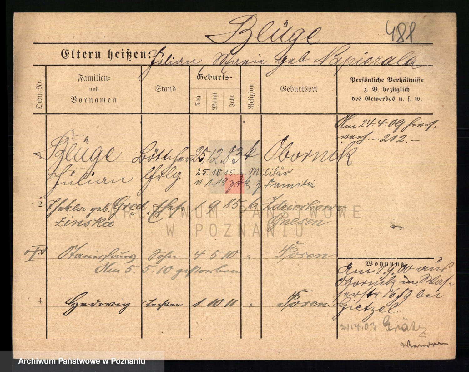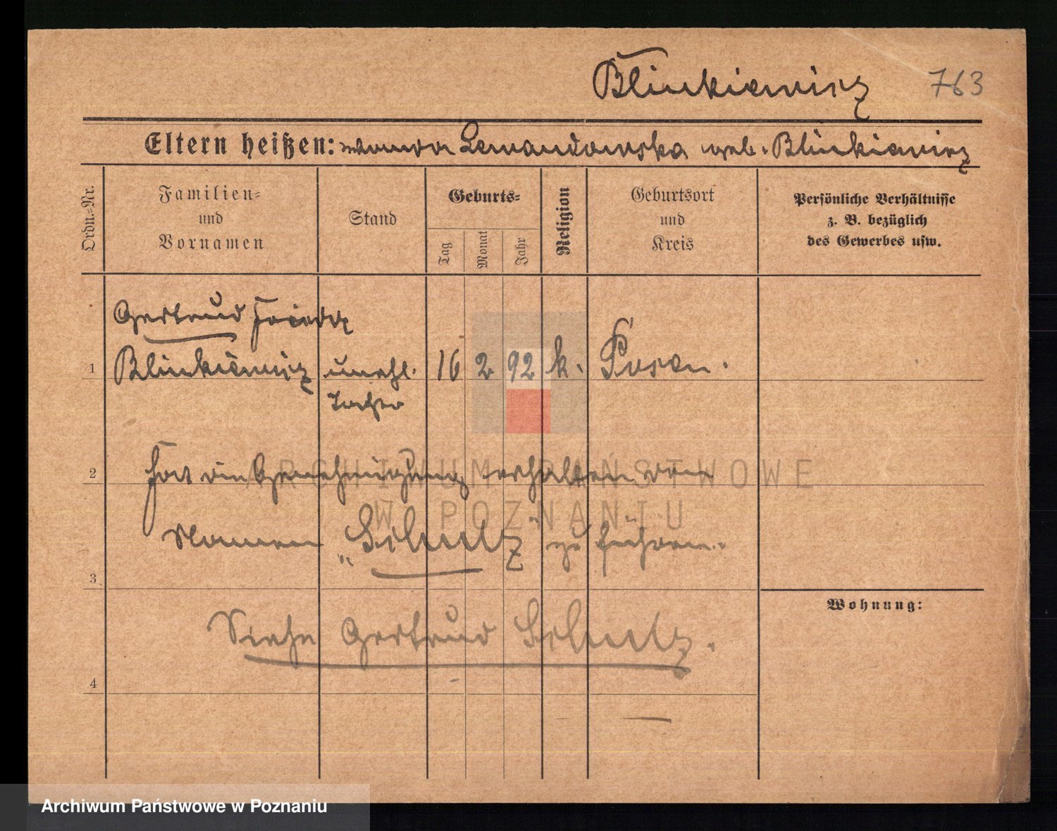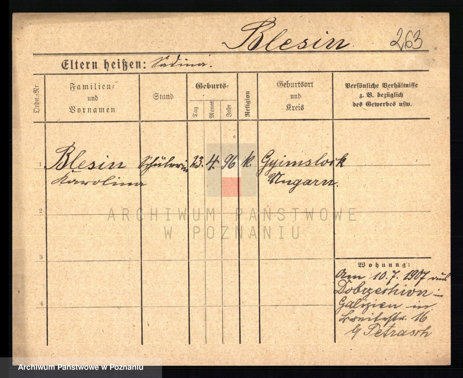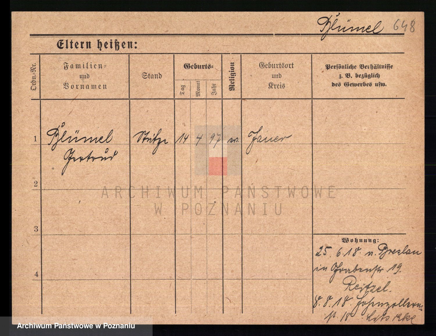 Podgląd karty osobowej dostępny jest po kliknięciu na nazwisko lub ikonkę karty. Można dokonywać powiększenia (ikony na górze) lub przechodzić między kolejnymi skanami (strzałki po bokach).