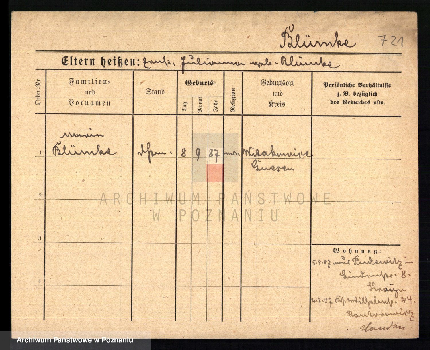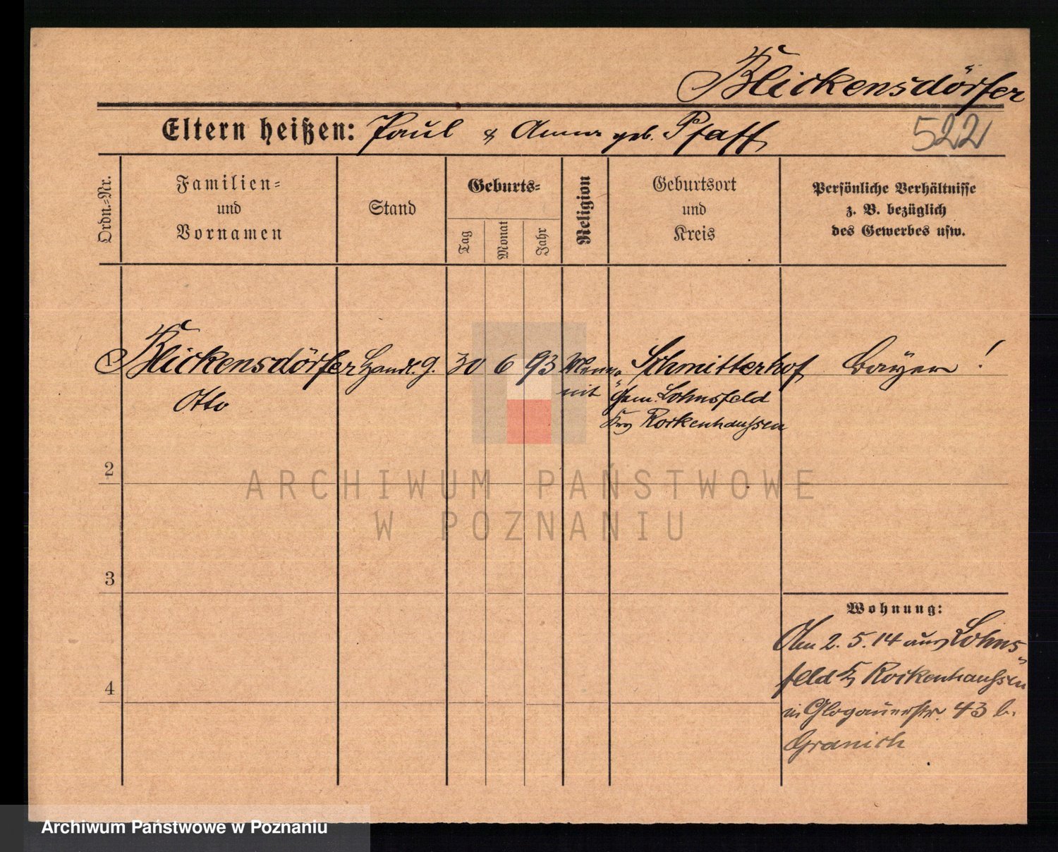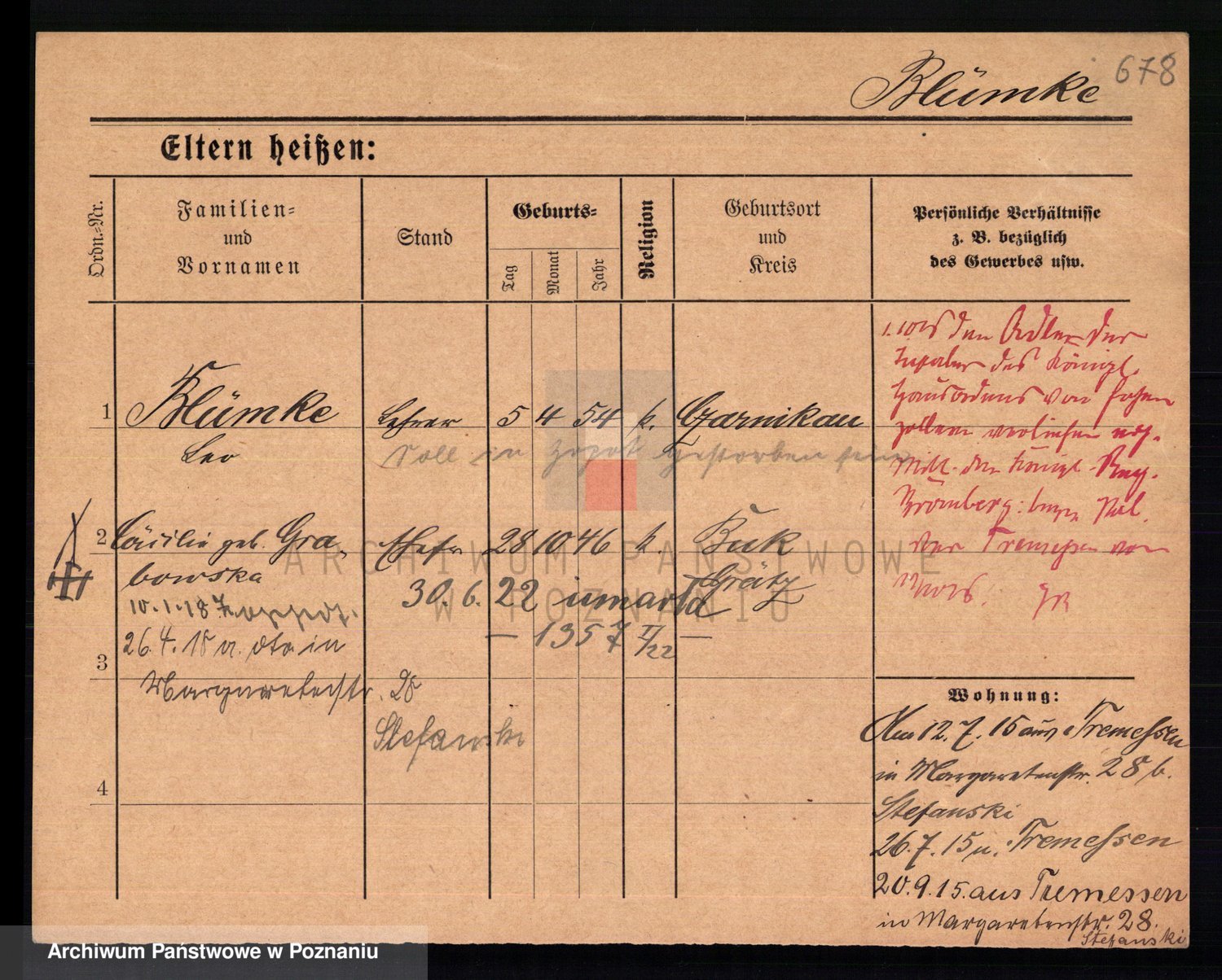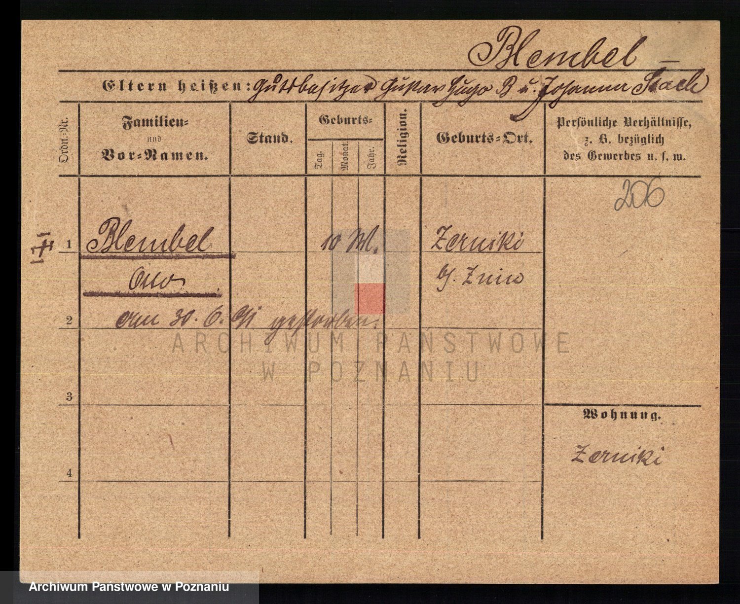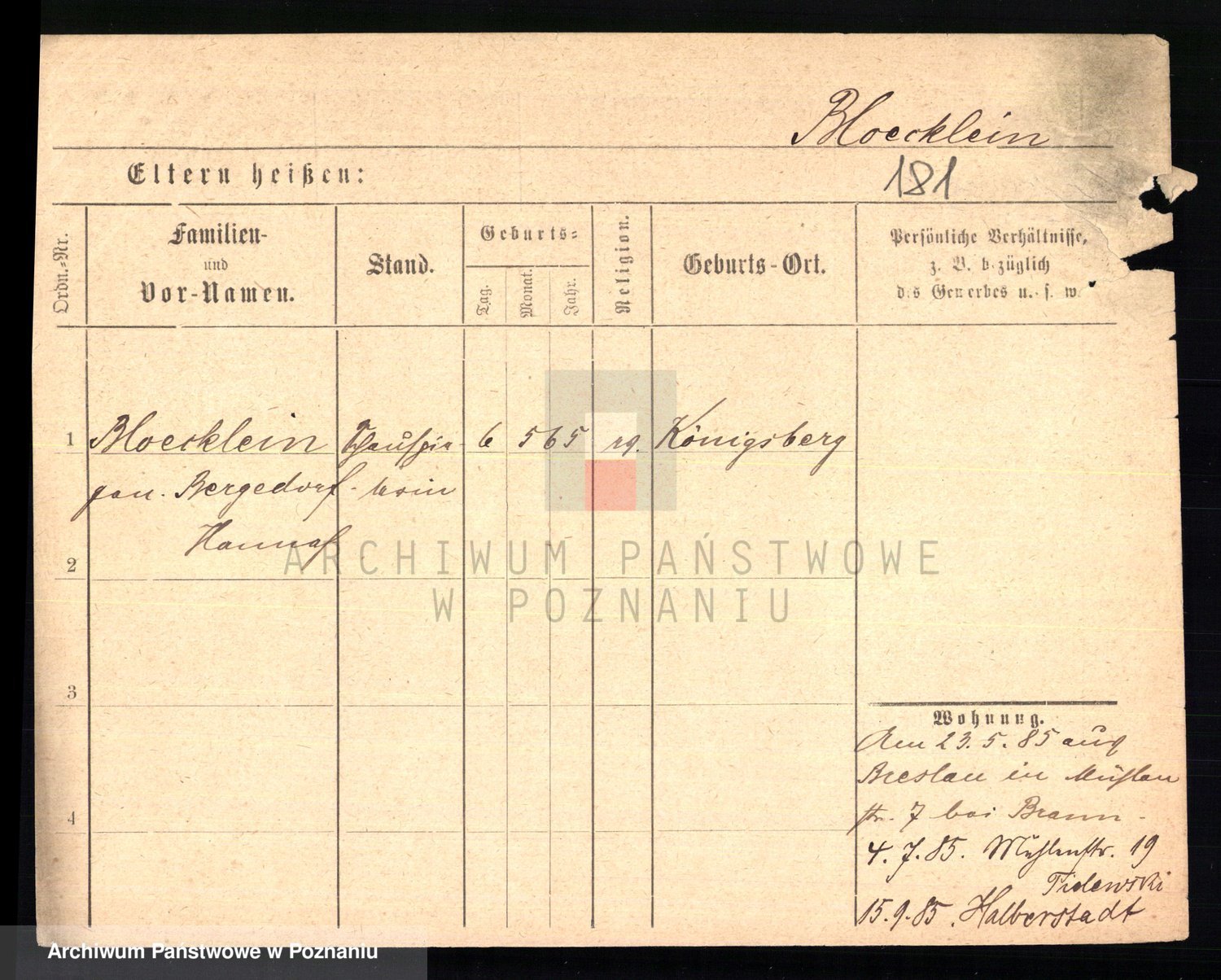 Podgląd karty osobowej dostępny jest po kliknięciu na nazwisko lub ikonkę karty. Można dokonywać powiększenia (ikony na górze) lub przechodzić między kolejnymi skanami (strzałki po bokach).