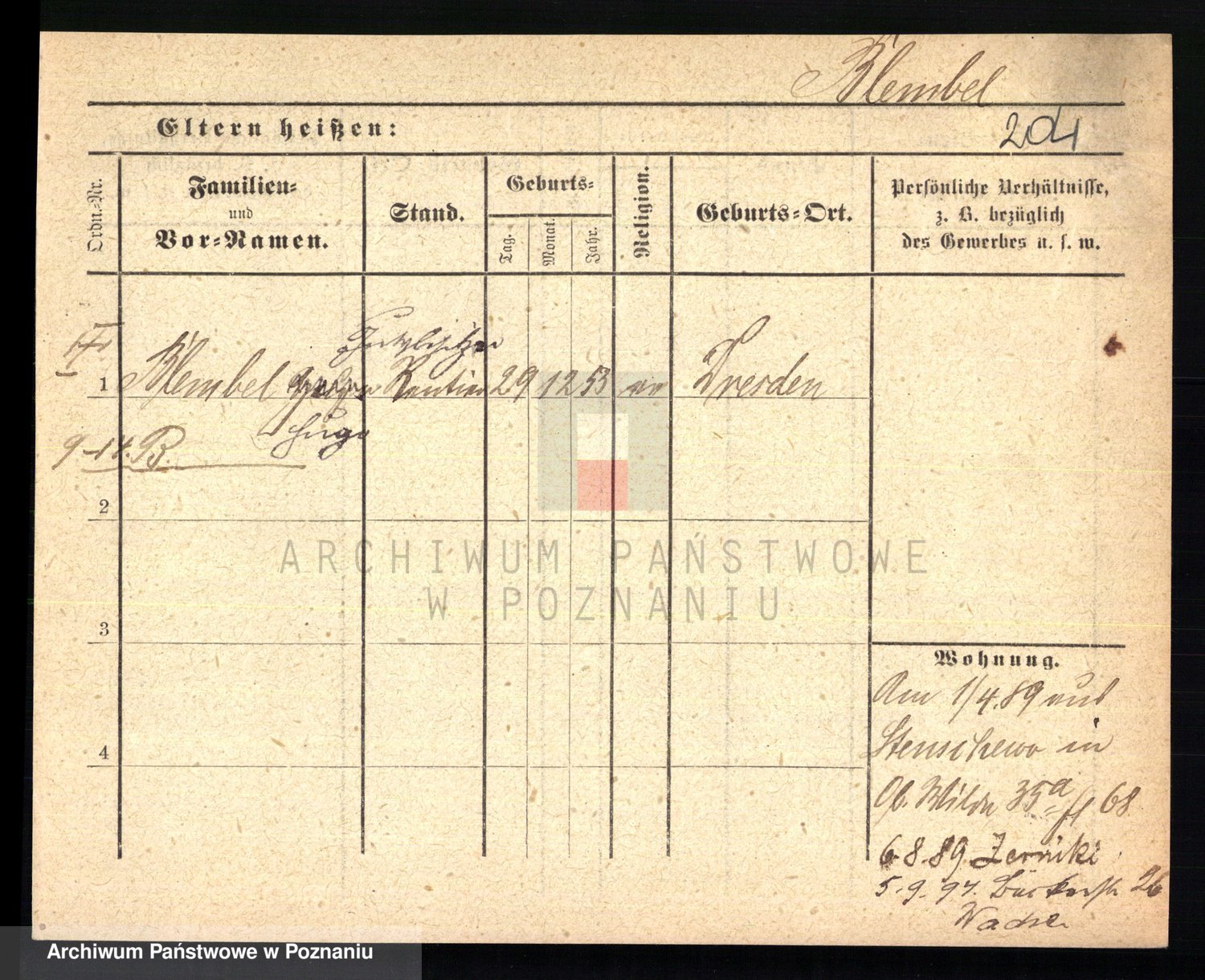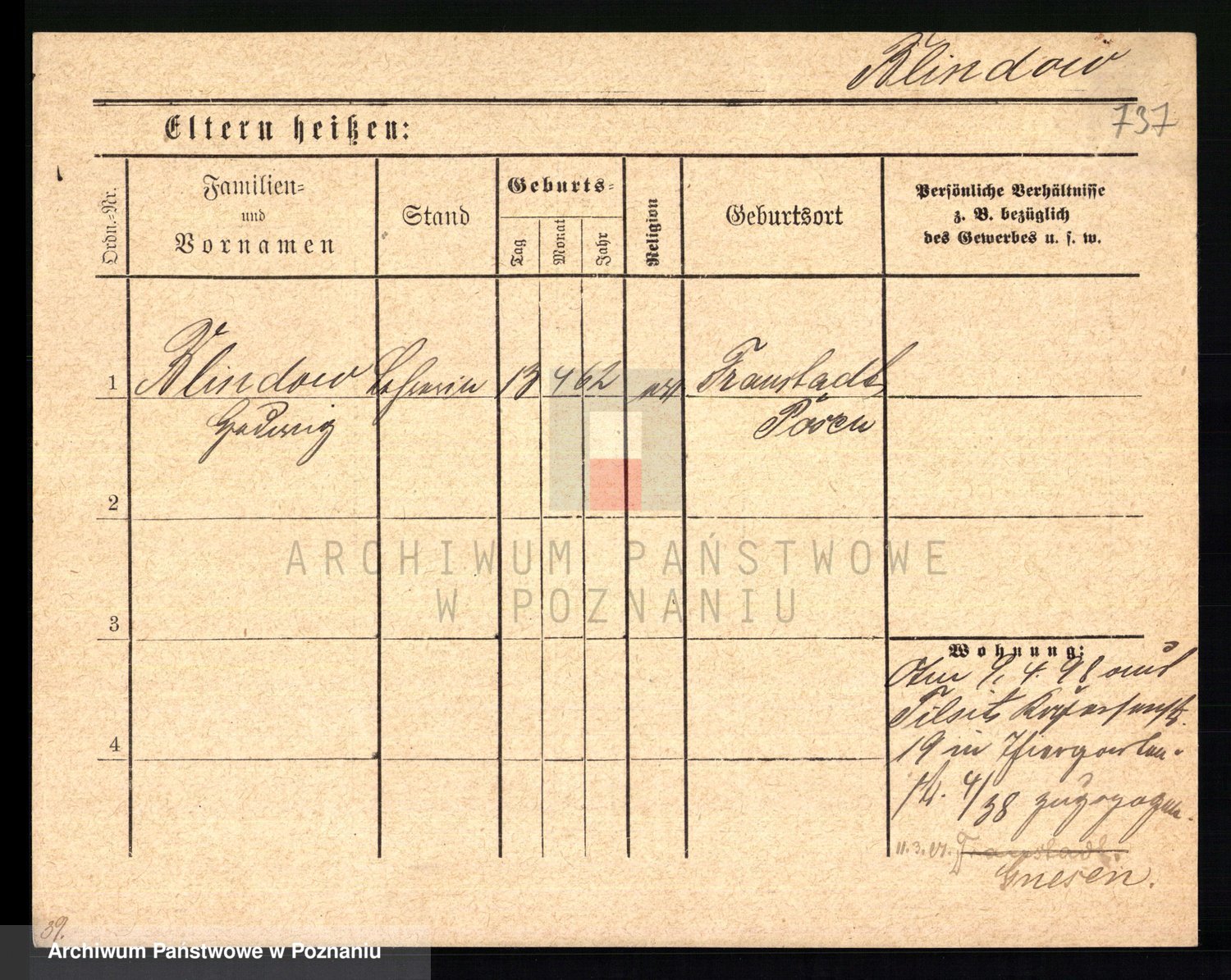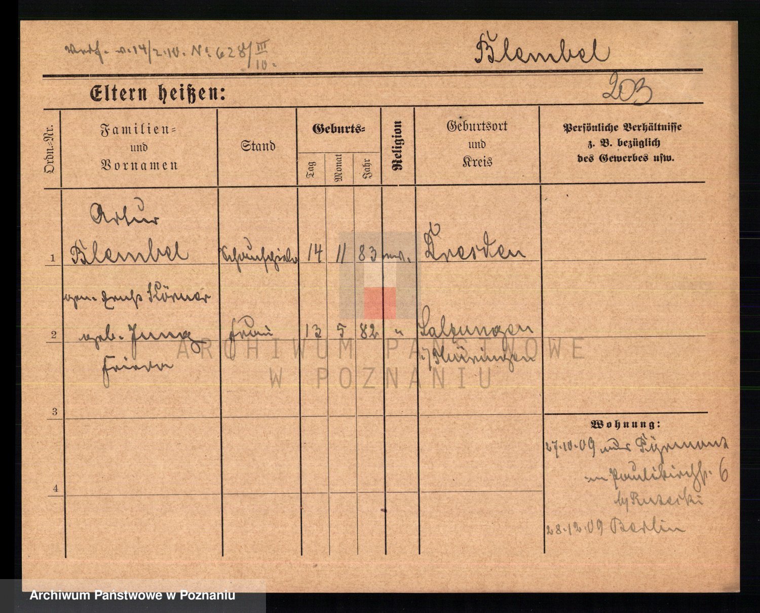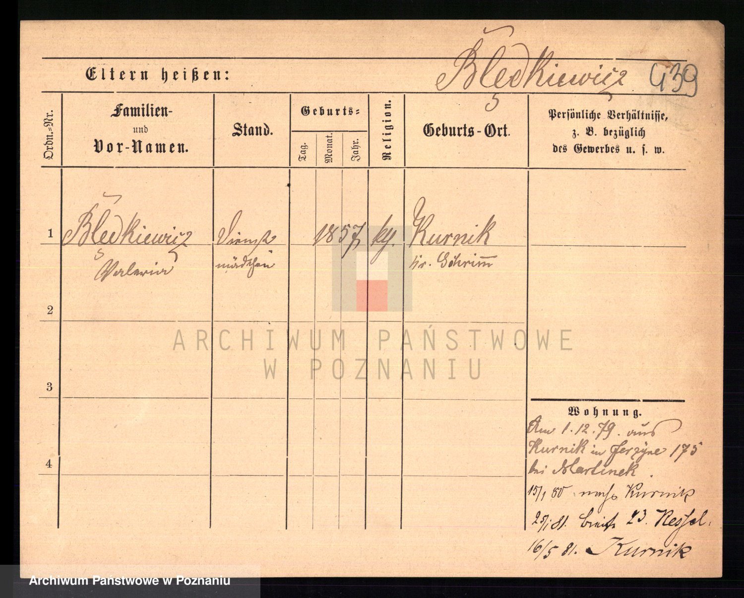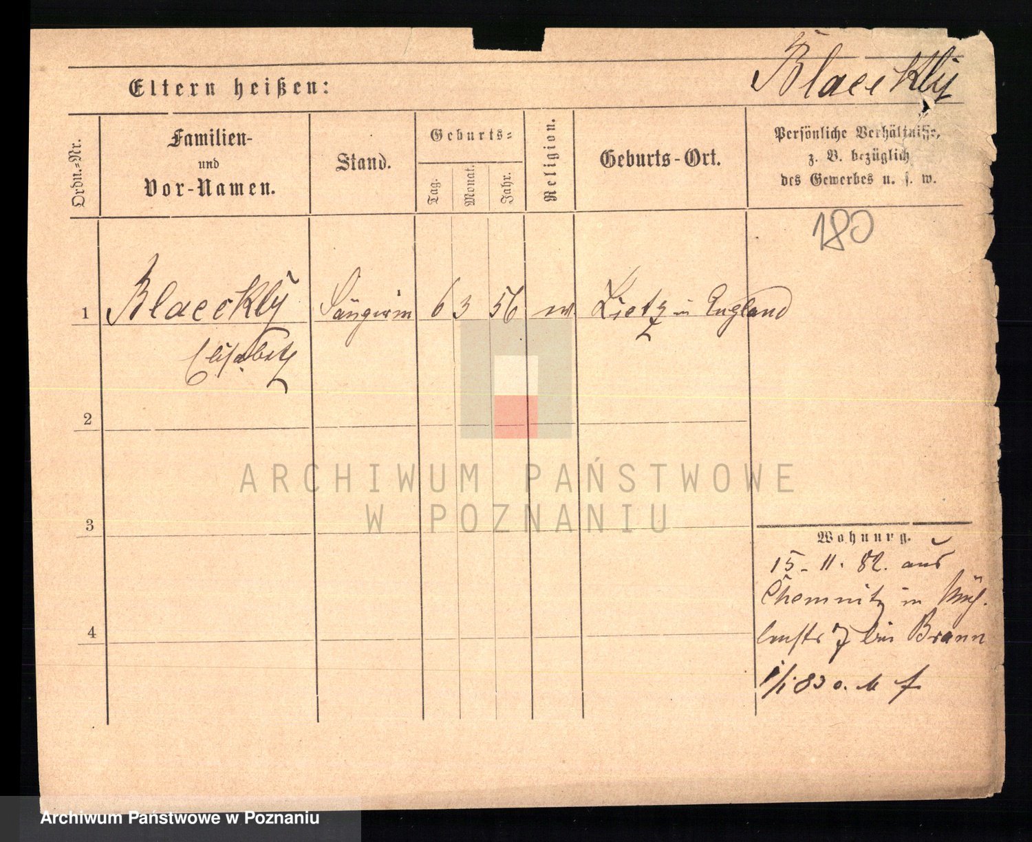 Podgląd karty osobowej dostępny jest po kliknięciu na nazwisko lub ikonkę karty. Można dokonywać powiększenia (ikony na górze) lub przechodzić między kolejnymi skanami (strzałki po bokach).