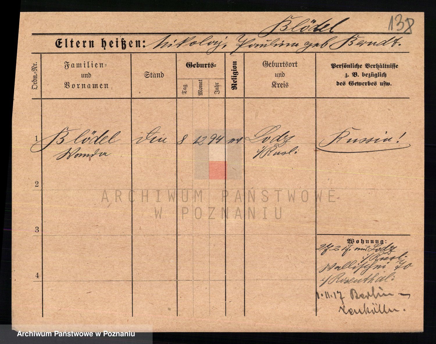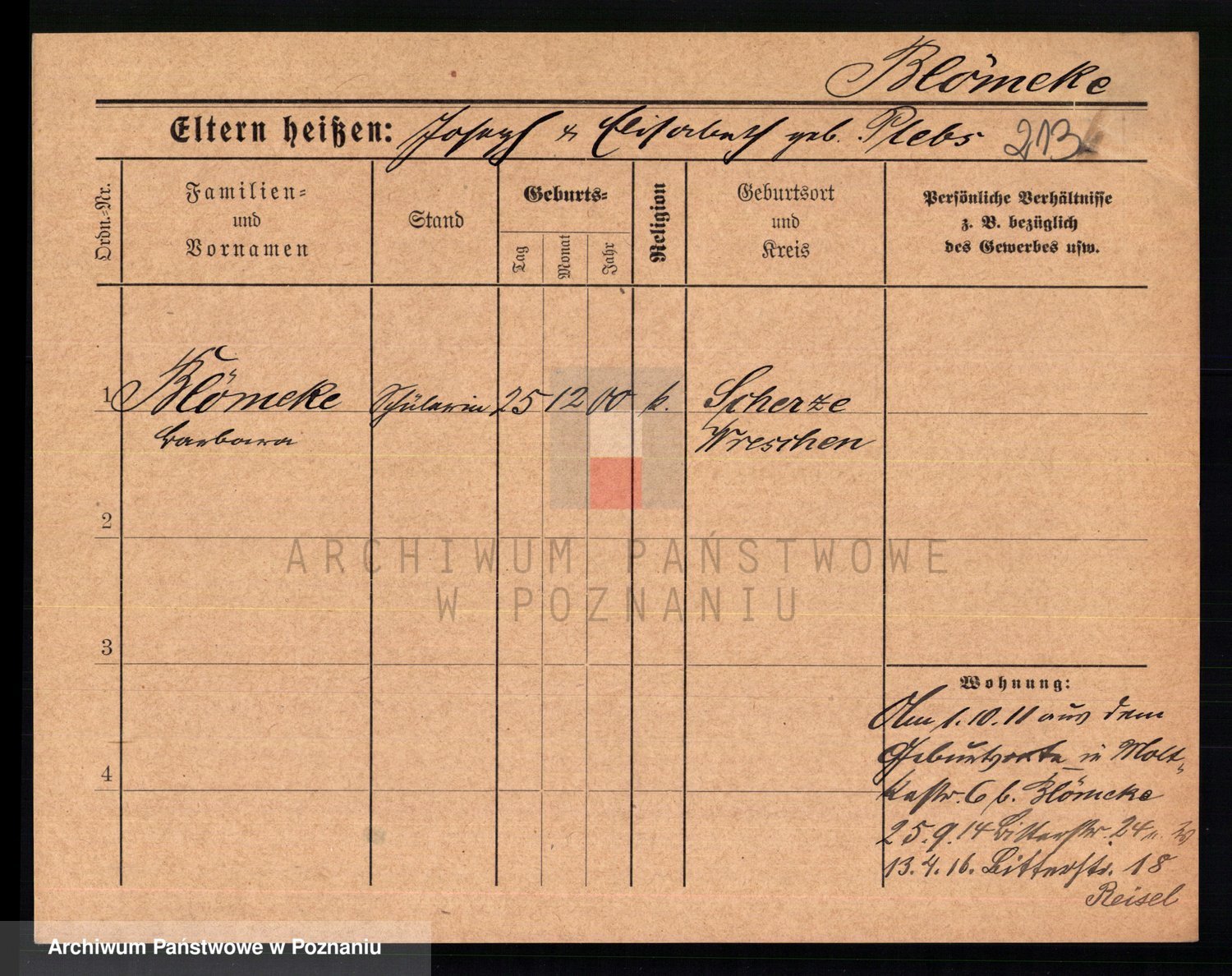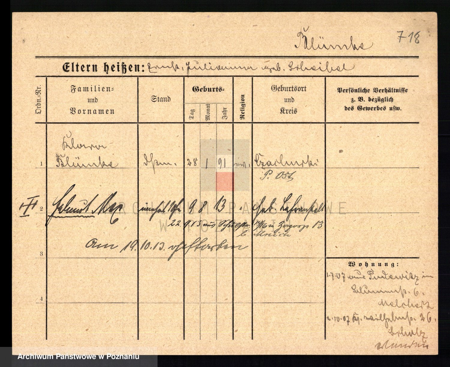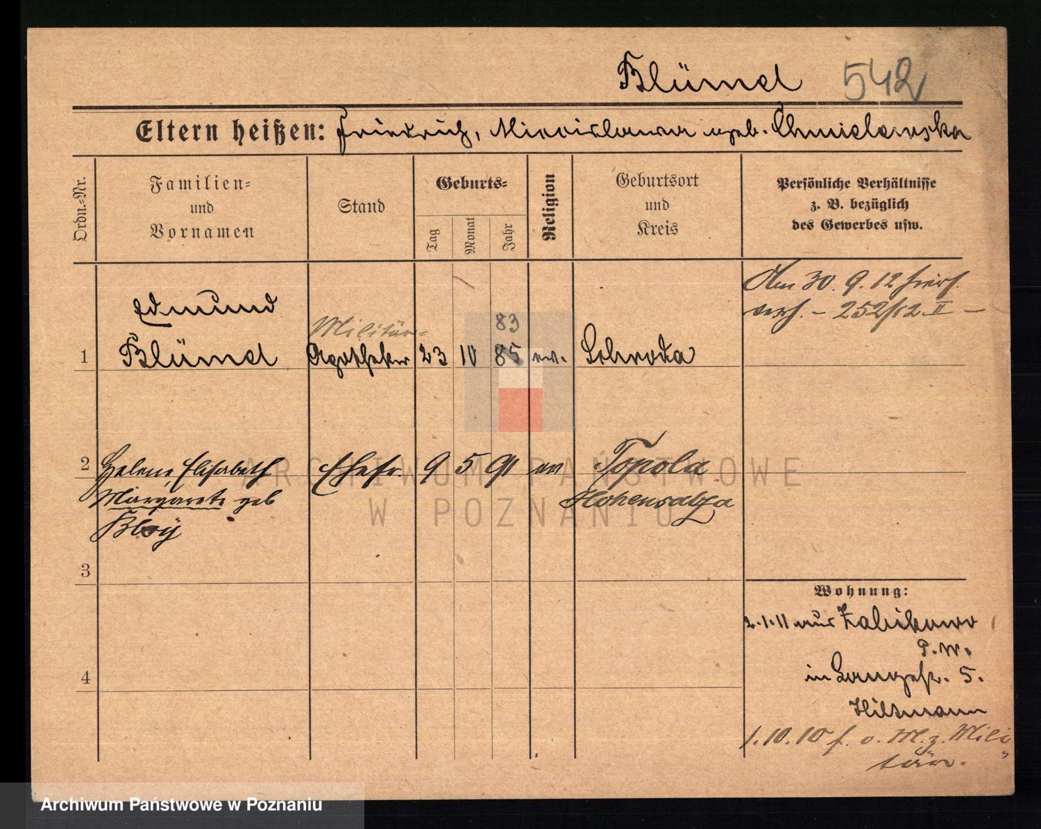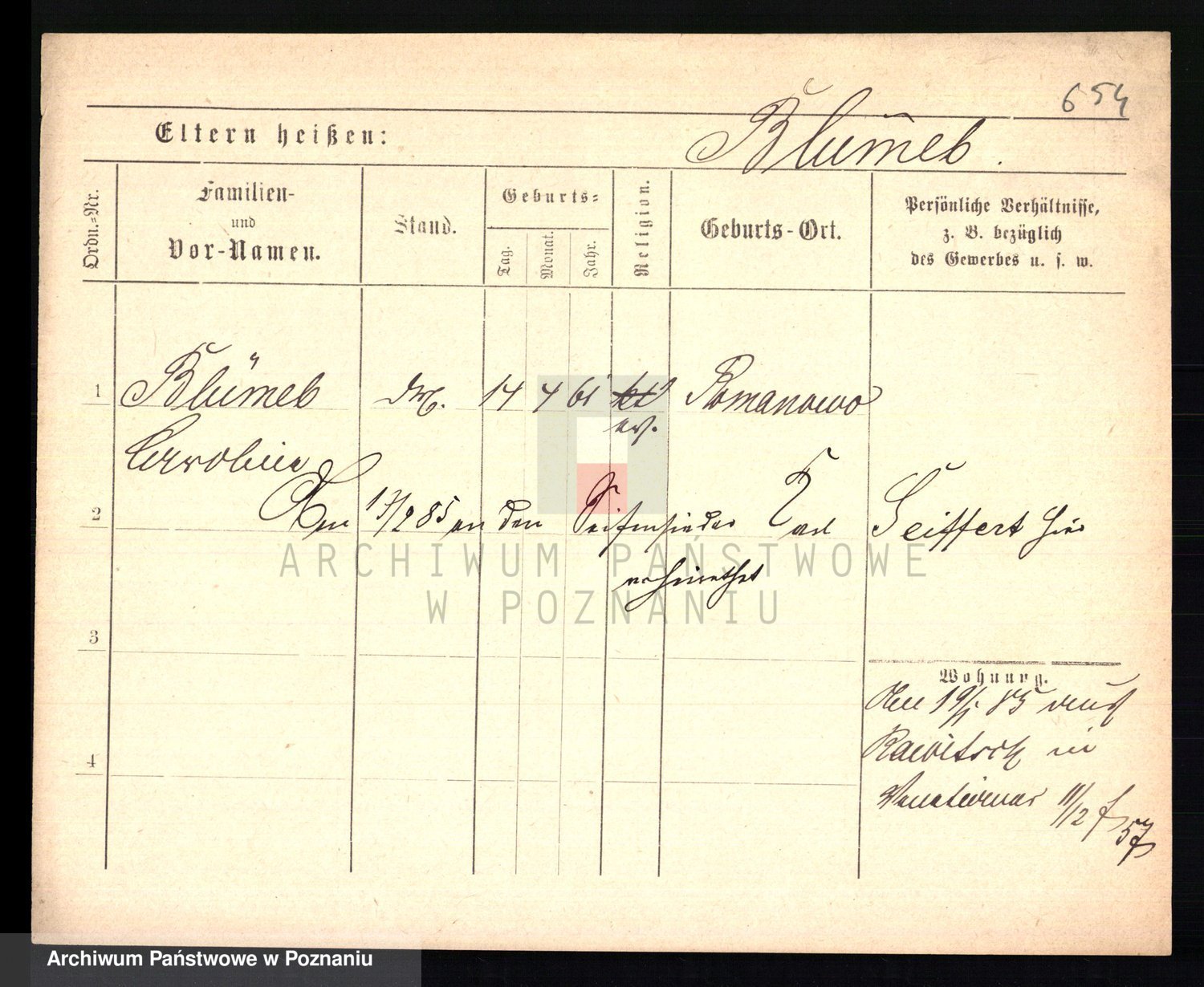 Podgląd karty osobowej dostępny jest po kliknięciu na nazwisko lub ikonkę karty. Można dokonywać powiększenia (ikony na górze) lub przechodzić między kolejnymi skanami (strzałki po bokach).