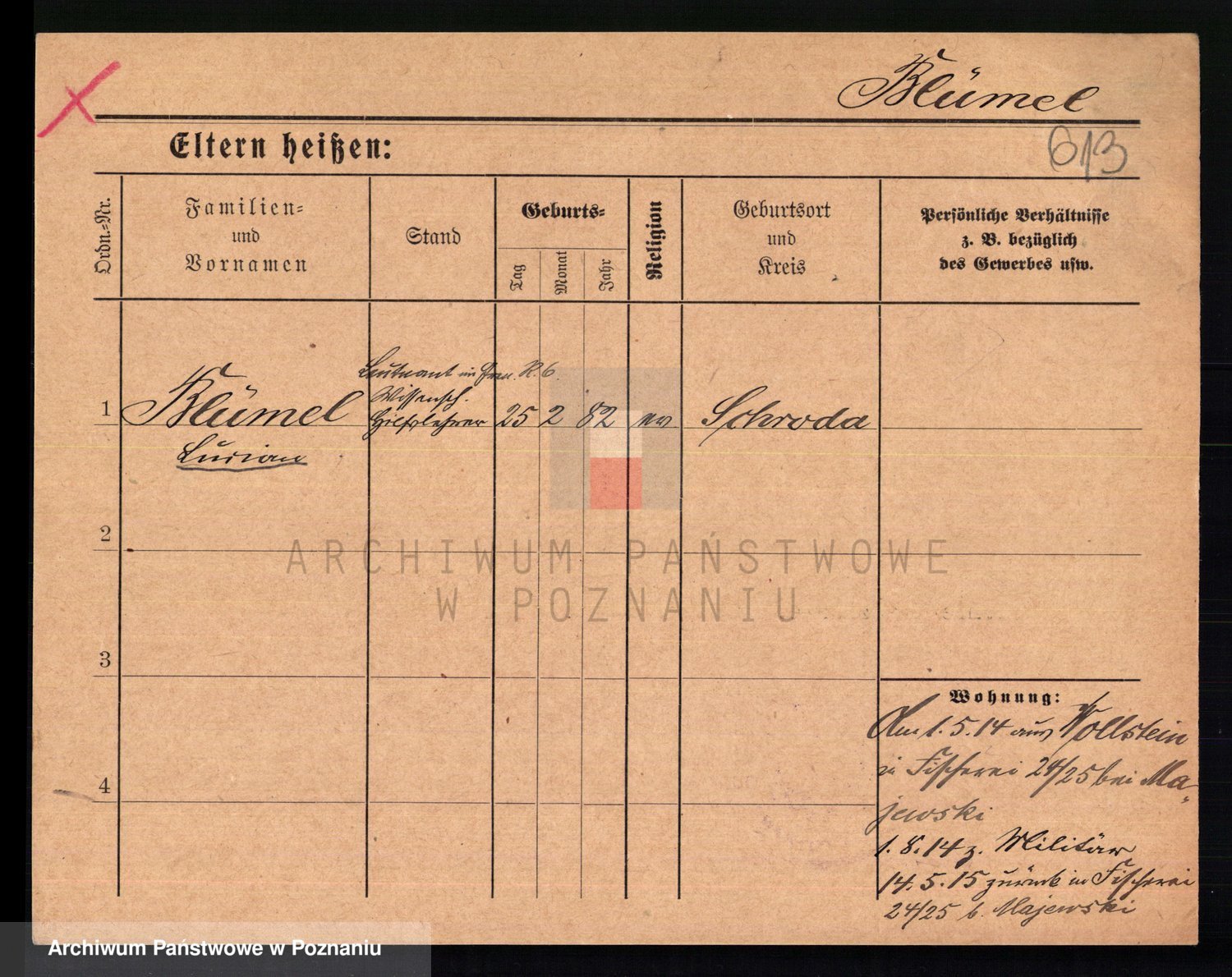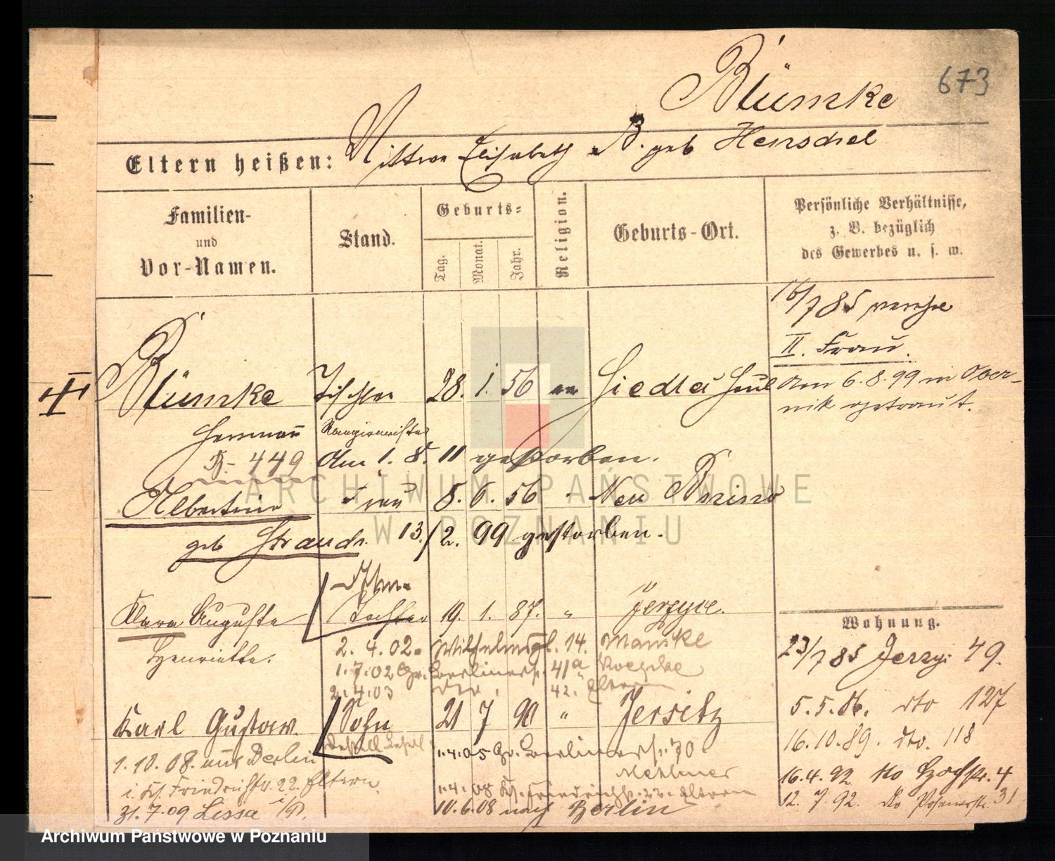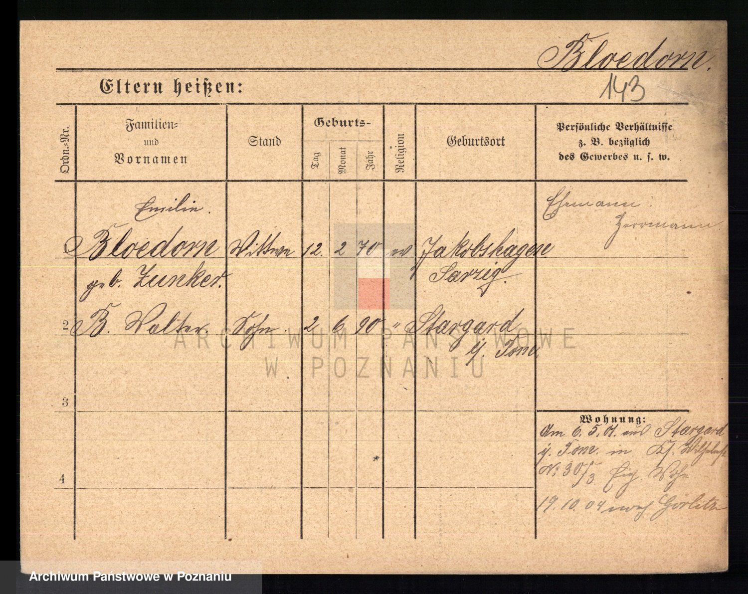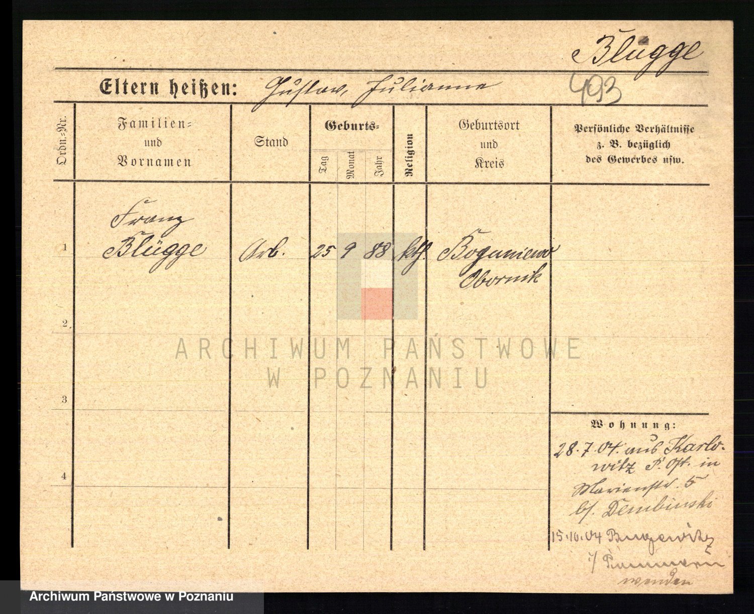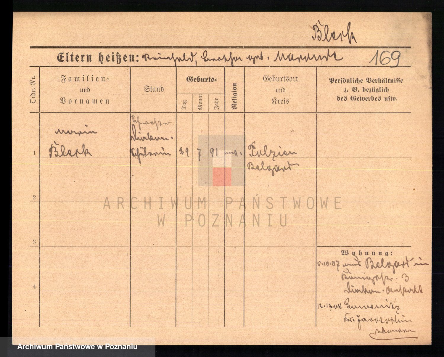 Podgląd karty osobowej dostępny jest po kliknięciu na nazwisko lub ikonkę karty. Można dokonywać powiększenia (ikony na górze) lub przechodzić między kolejnymi skanami (strzałki po bokach).