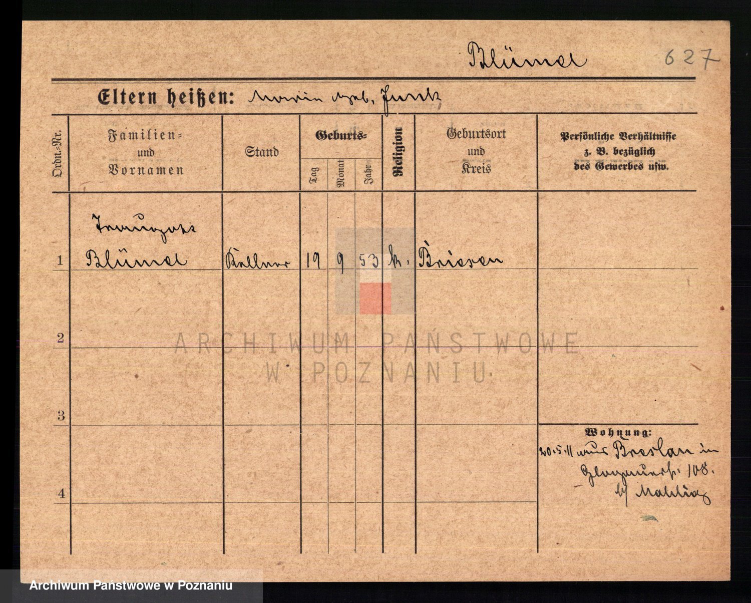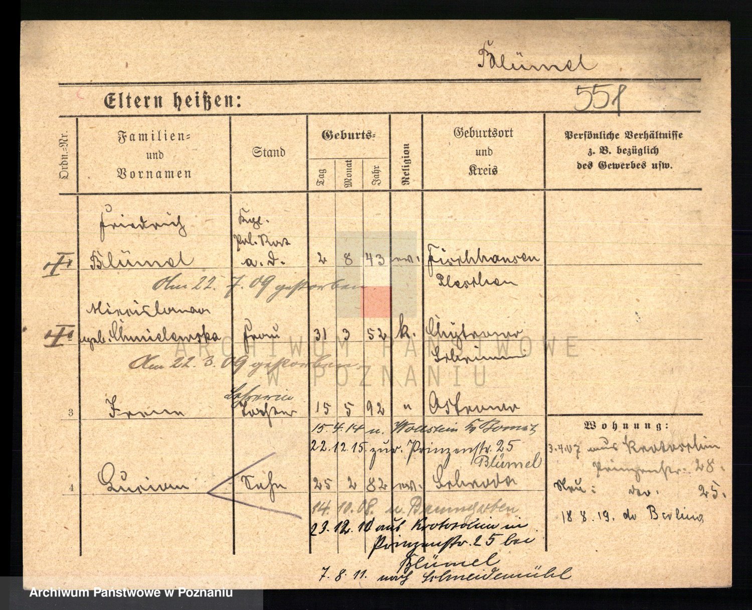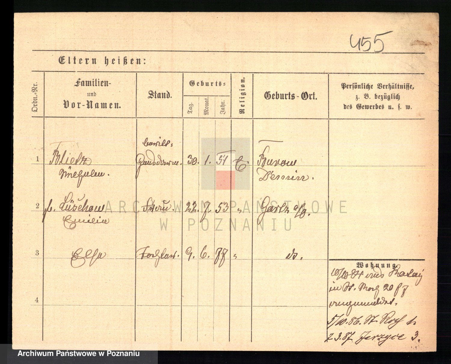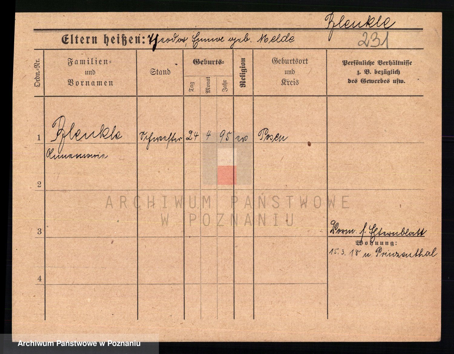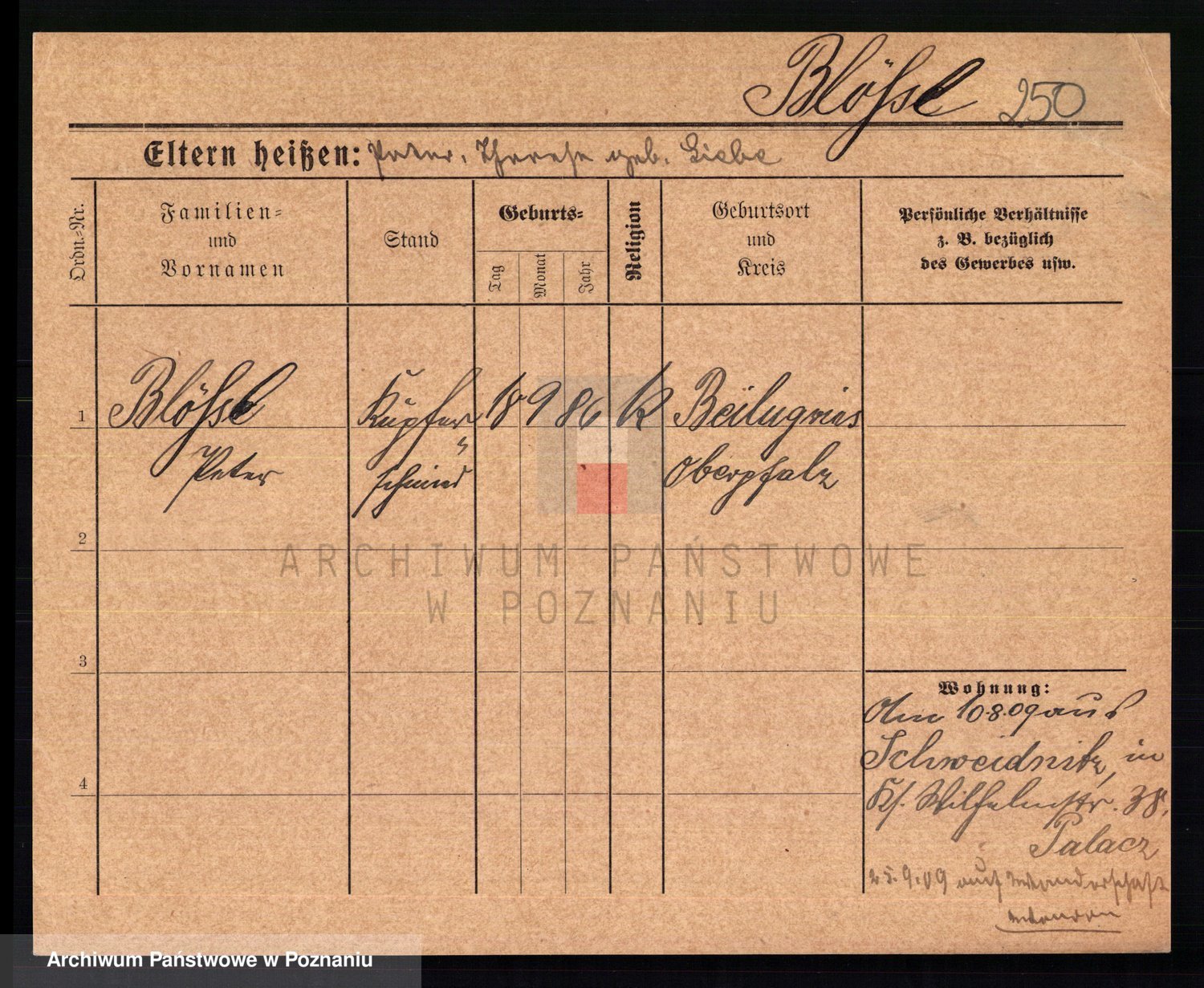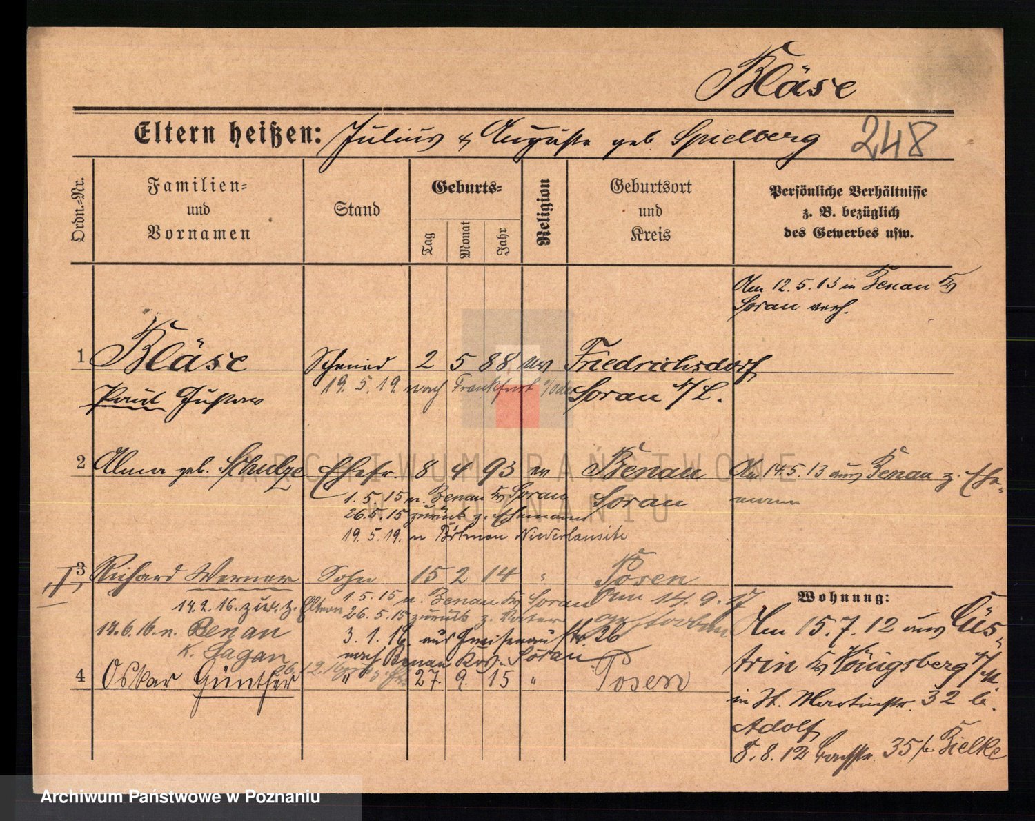 Podgląd karty osobowej dostępny jest po kliknięciu na nazwisko lub ikonkę karty. Można dokonywać powiększenia (ikony na górze) lub przechodzić między kolejnymi skanami (strzałki po bokach).