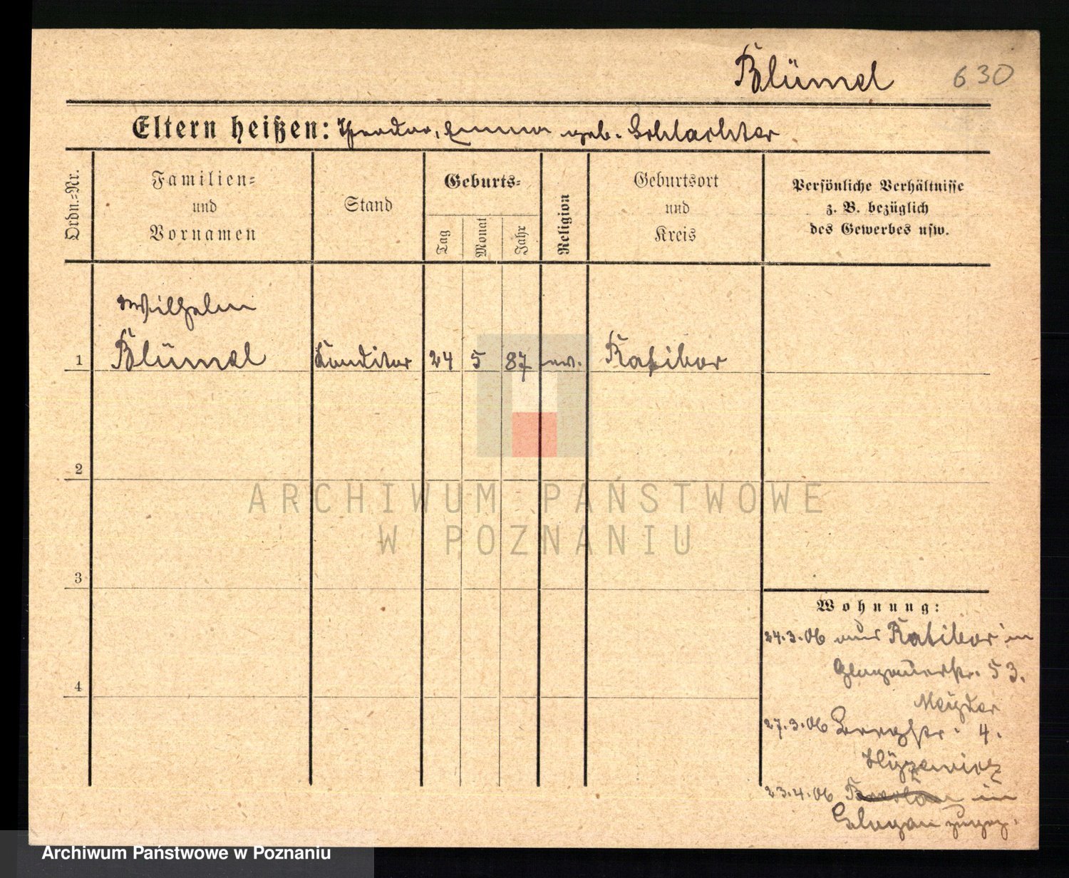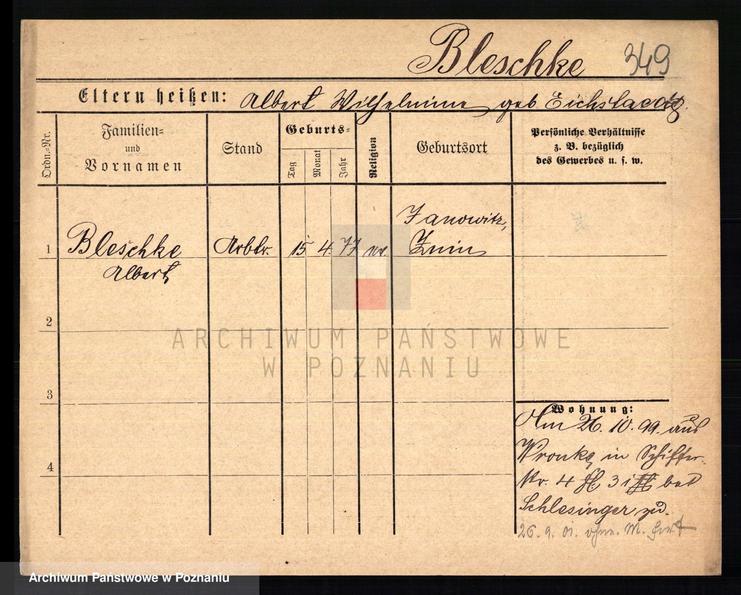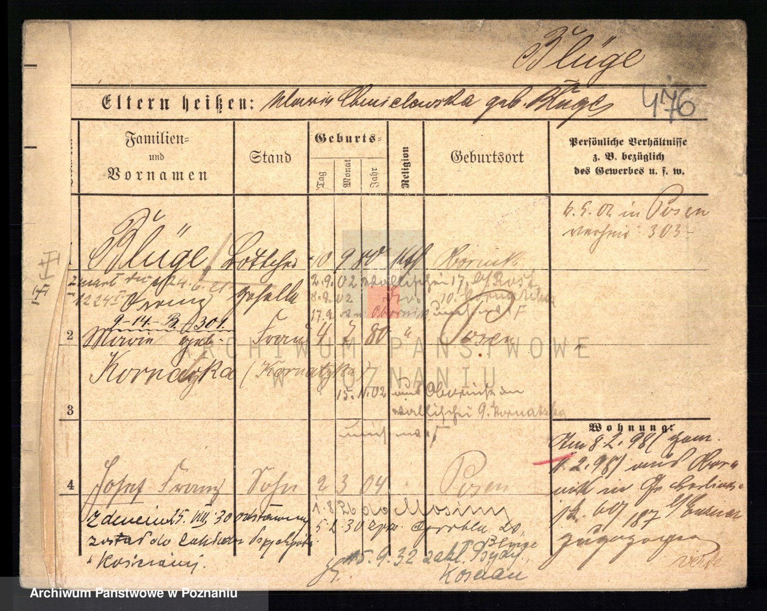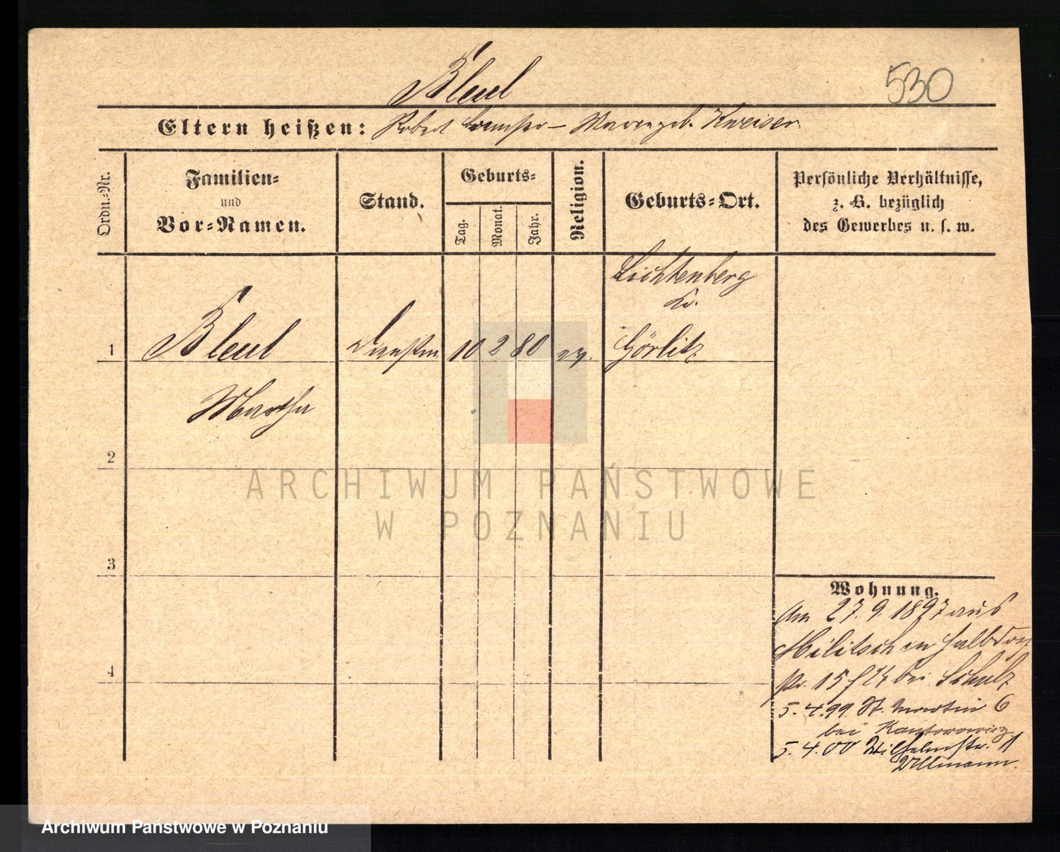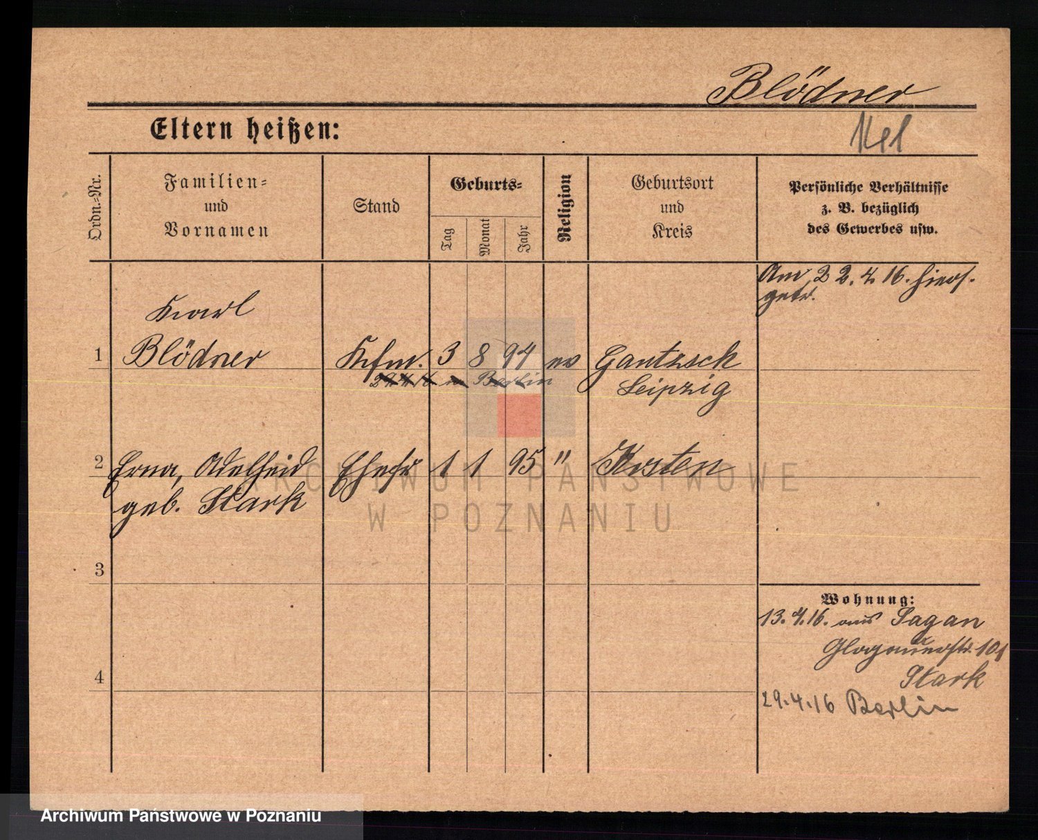 Podgląd karty osobowej dostępny jest po kliknięciu na nazwisko lub ikonkę karty. Można dokonywać powiększenia (ikony na górze) lub przechodzić między kolejnymi skanami (strzałki po bokach).