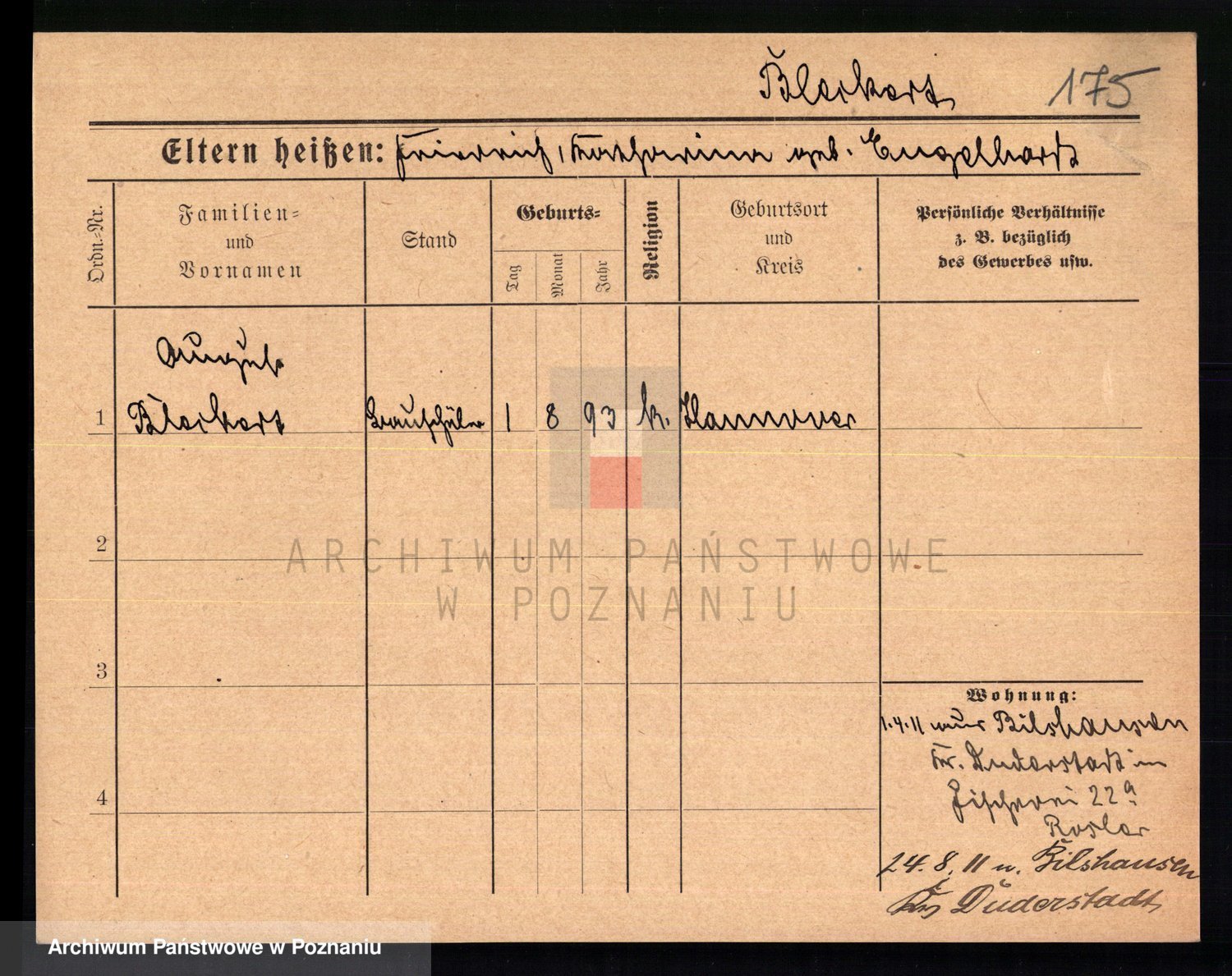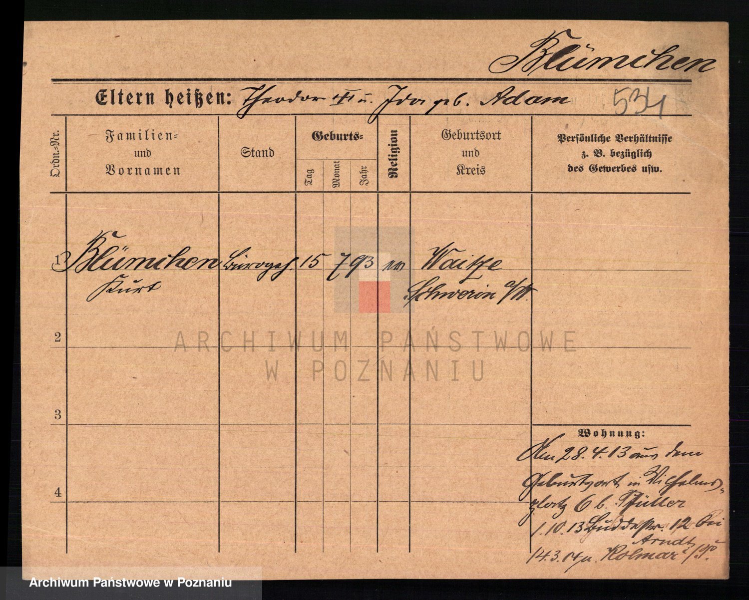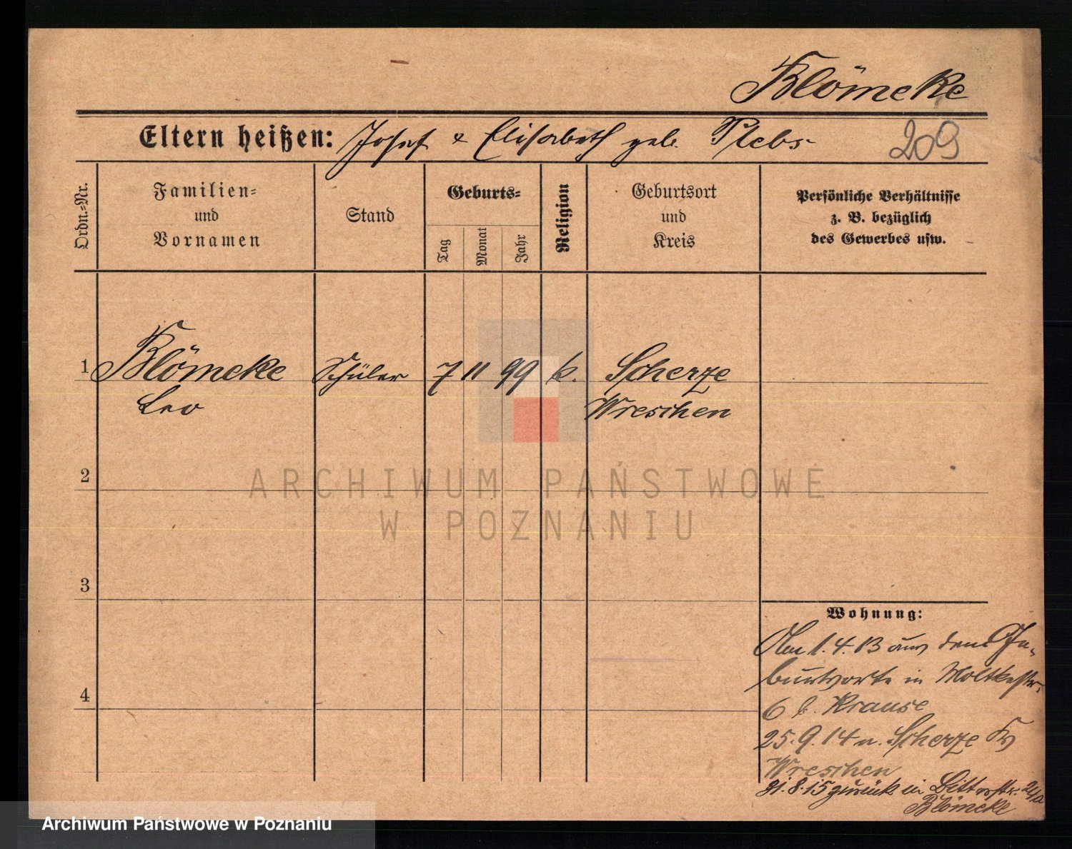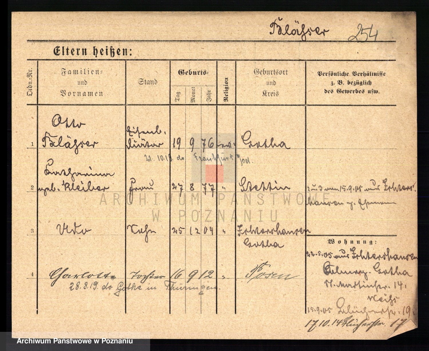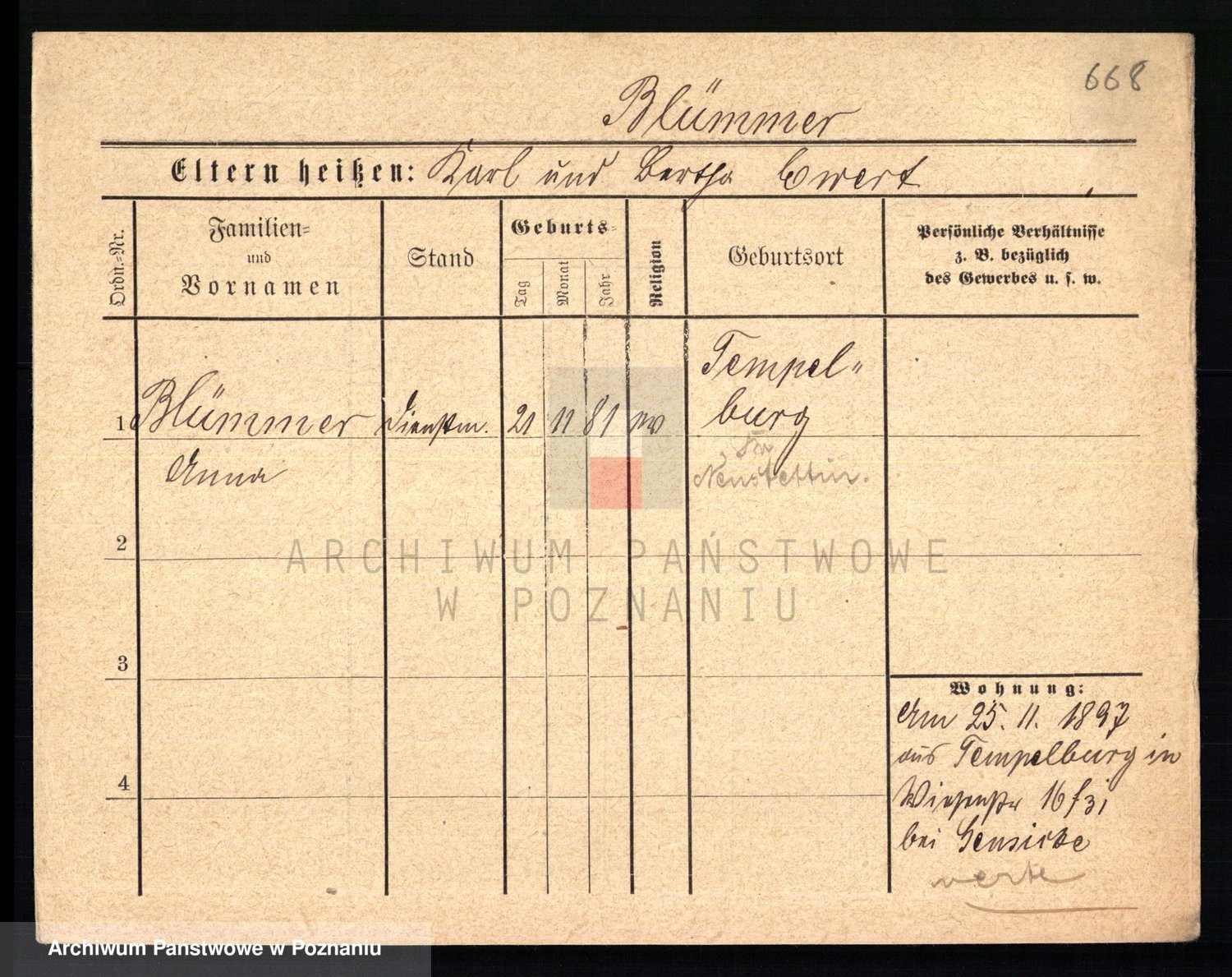 Podgląd karty osobowej dostępny jest po kliknięciu na nazwisko lub ikonkę karty. Można dokonywać powiększenia (ikony na górze) lub przechodzić między kolejnymi skanami (strzałki po bokach).