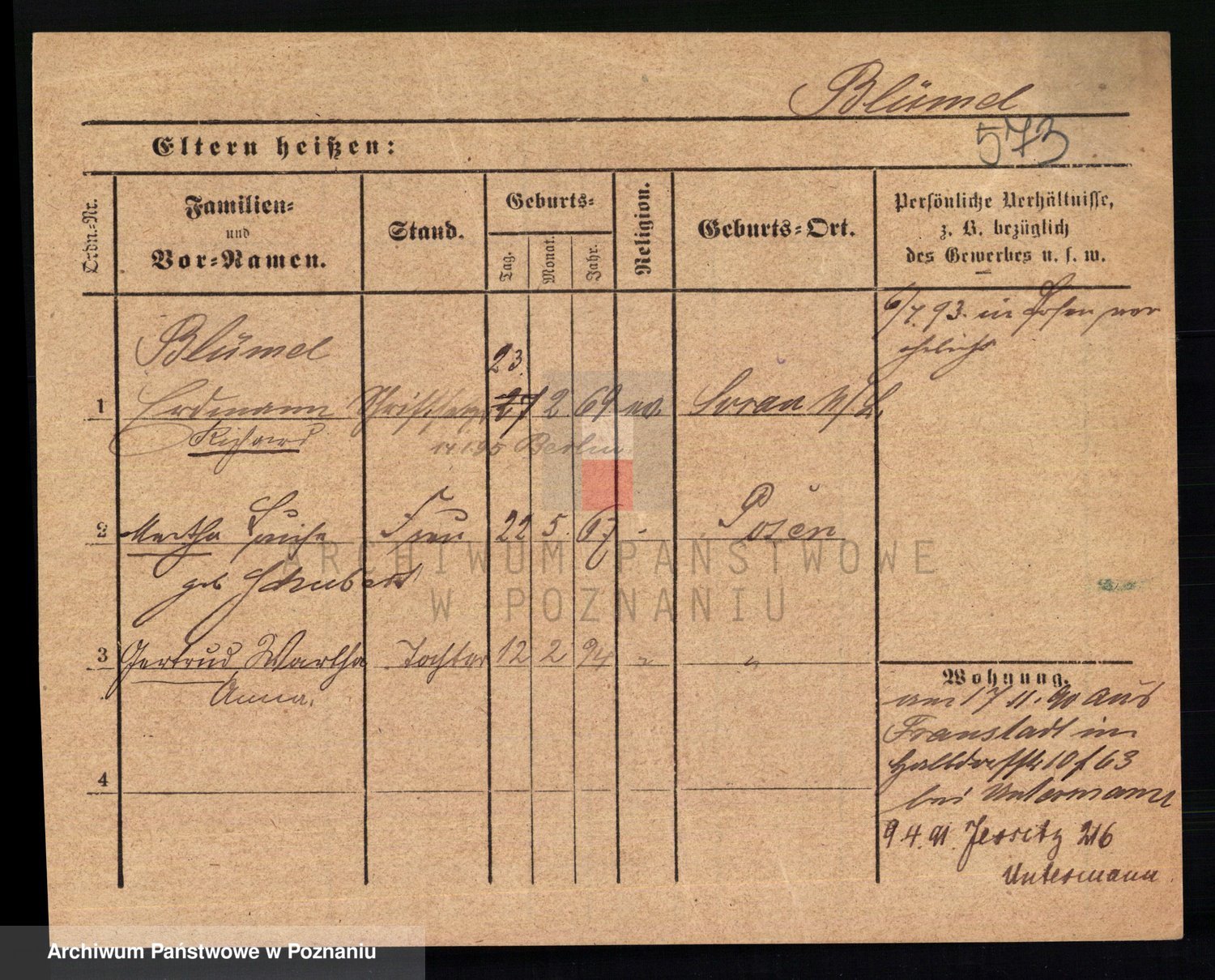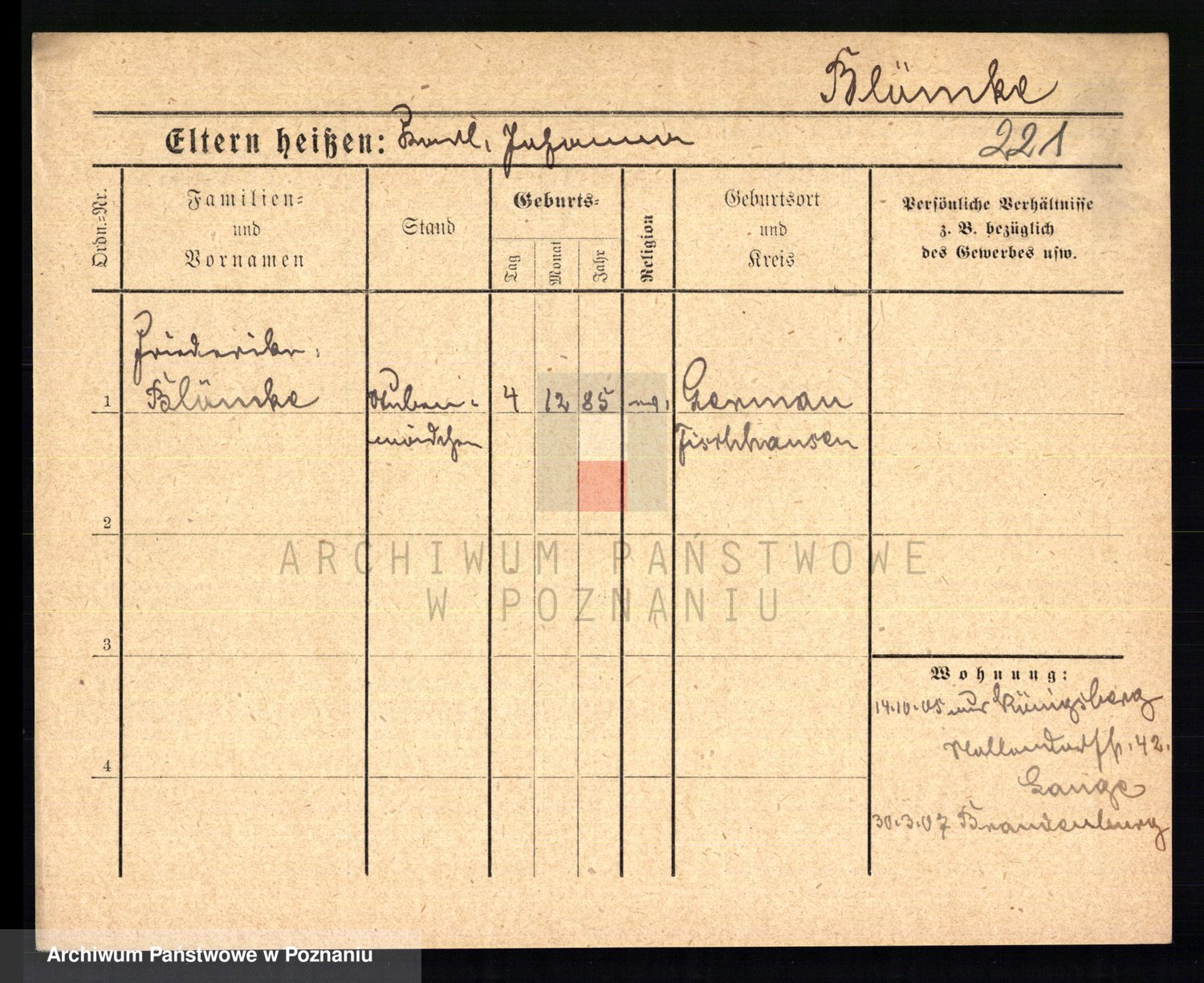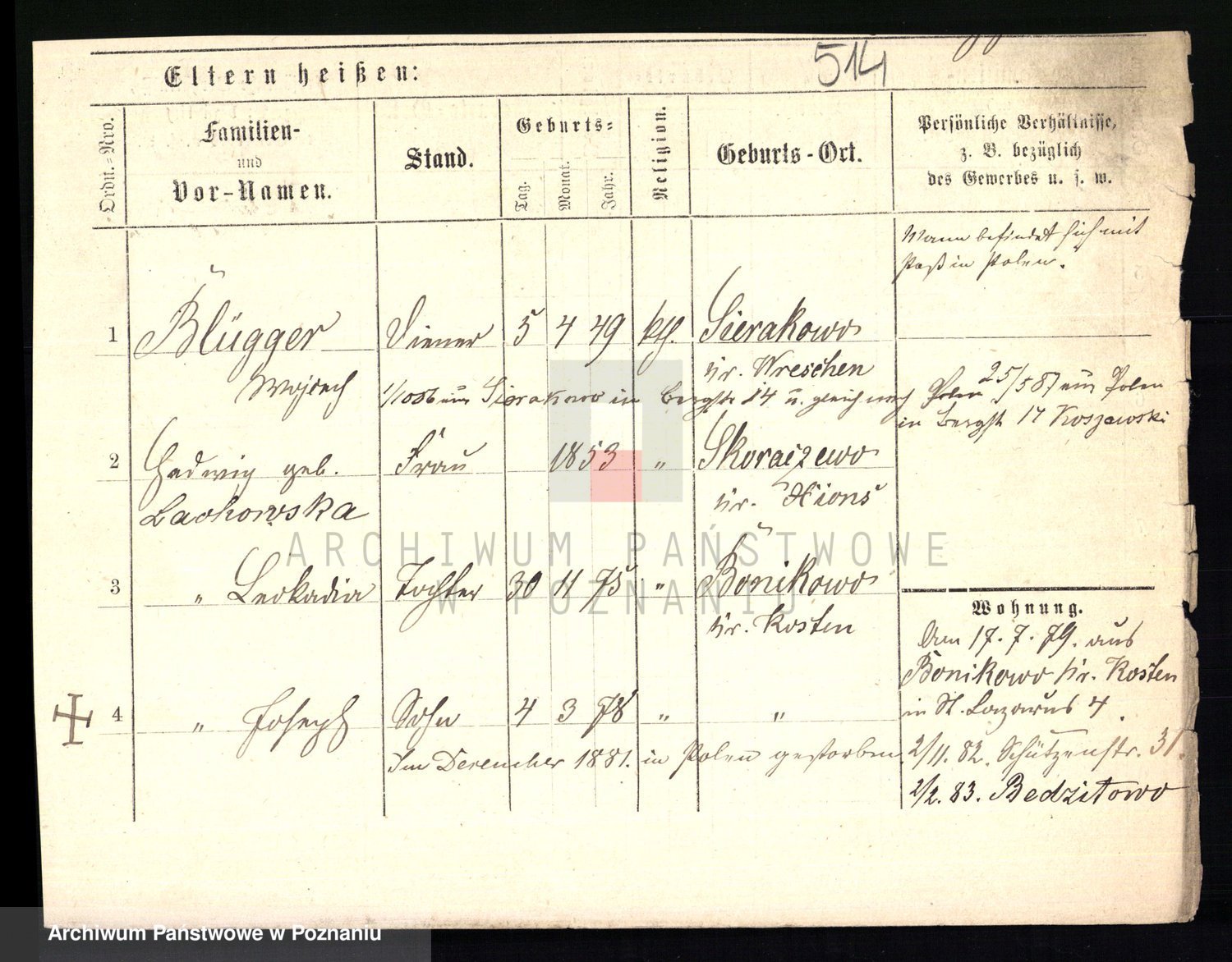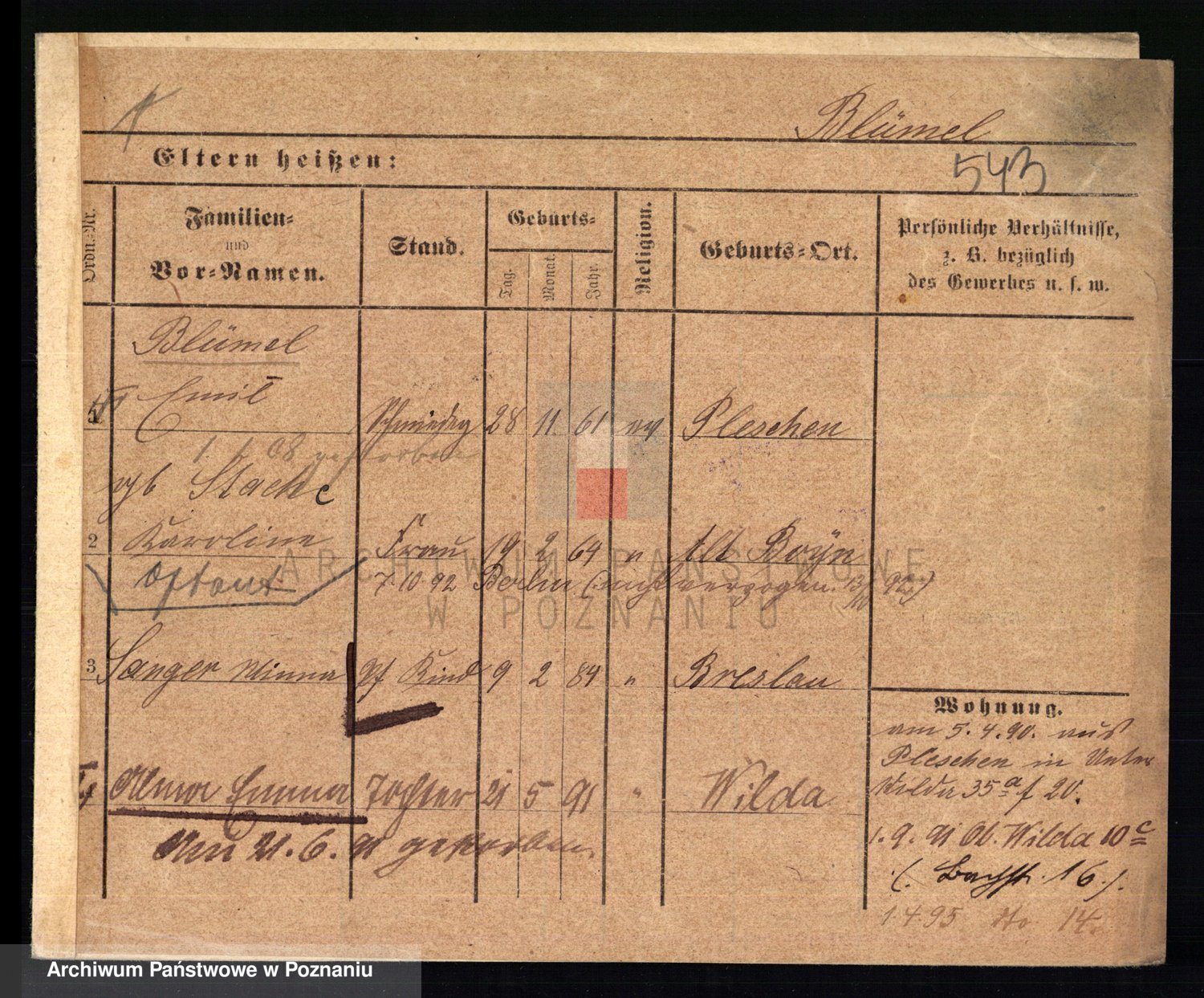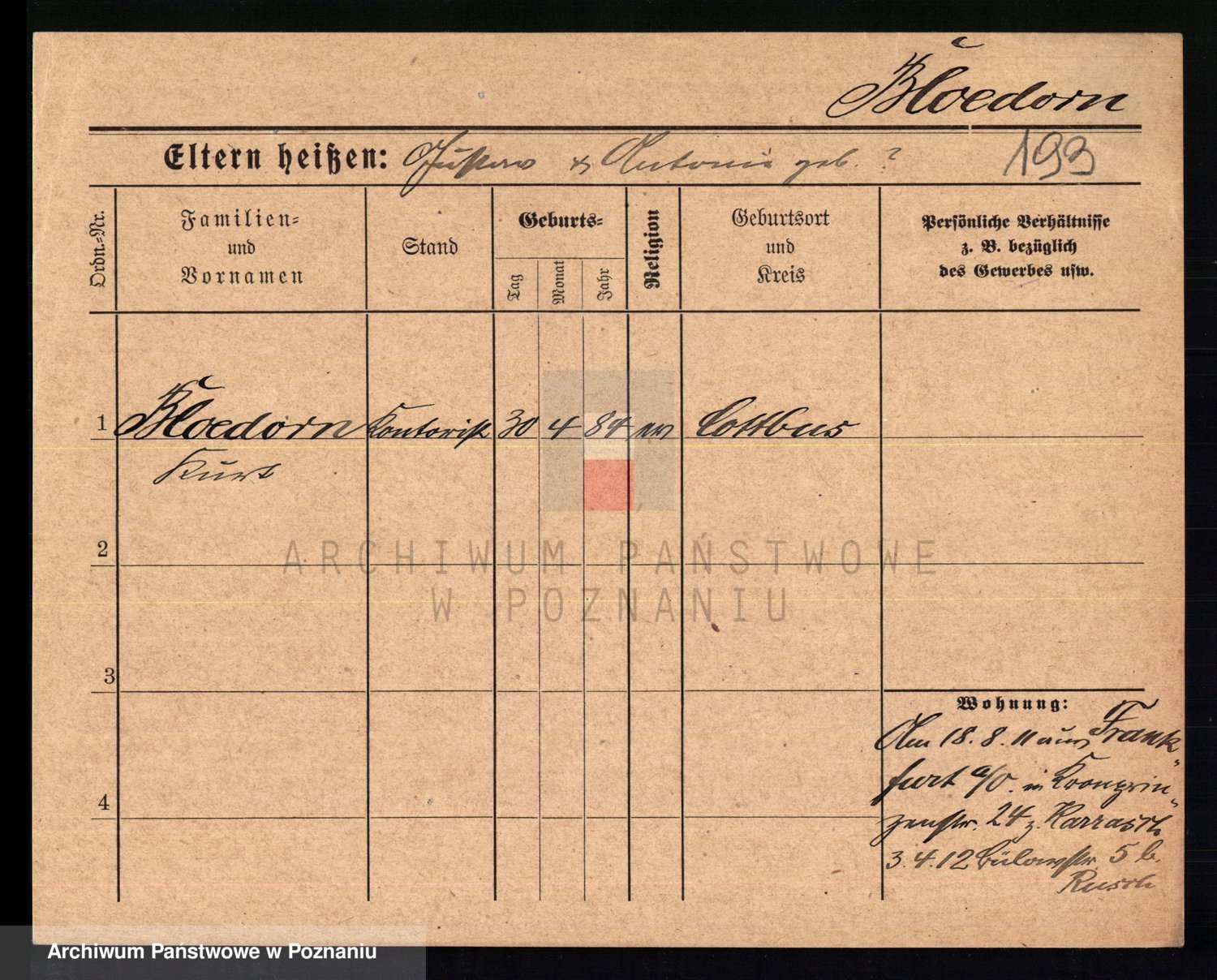 Podgląd karty osobowej dostępny jest po kliknięciu na nazwisko lub ikonkę karty. Można dokonywać powiększenia (ikony na górze) lub przechodzić między kolejnymi skanami (strzałki po bokach).