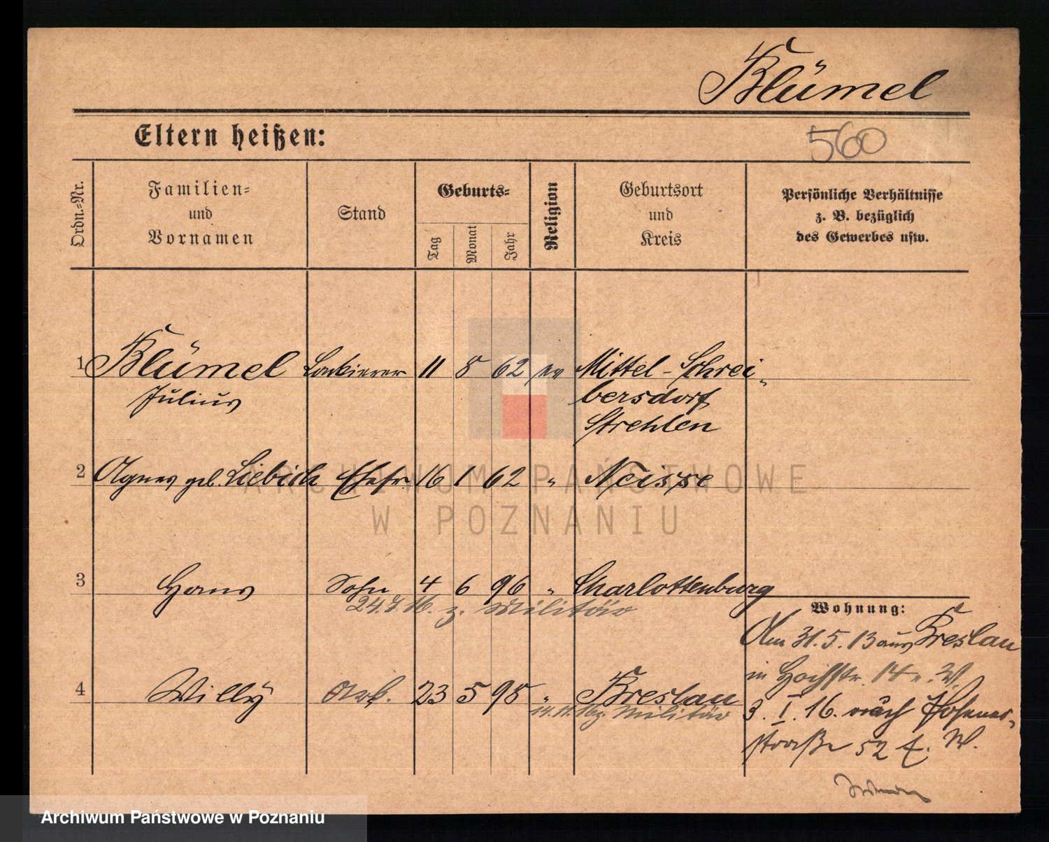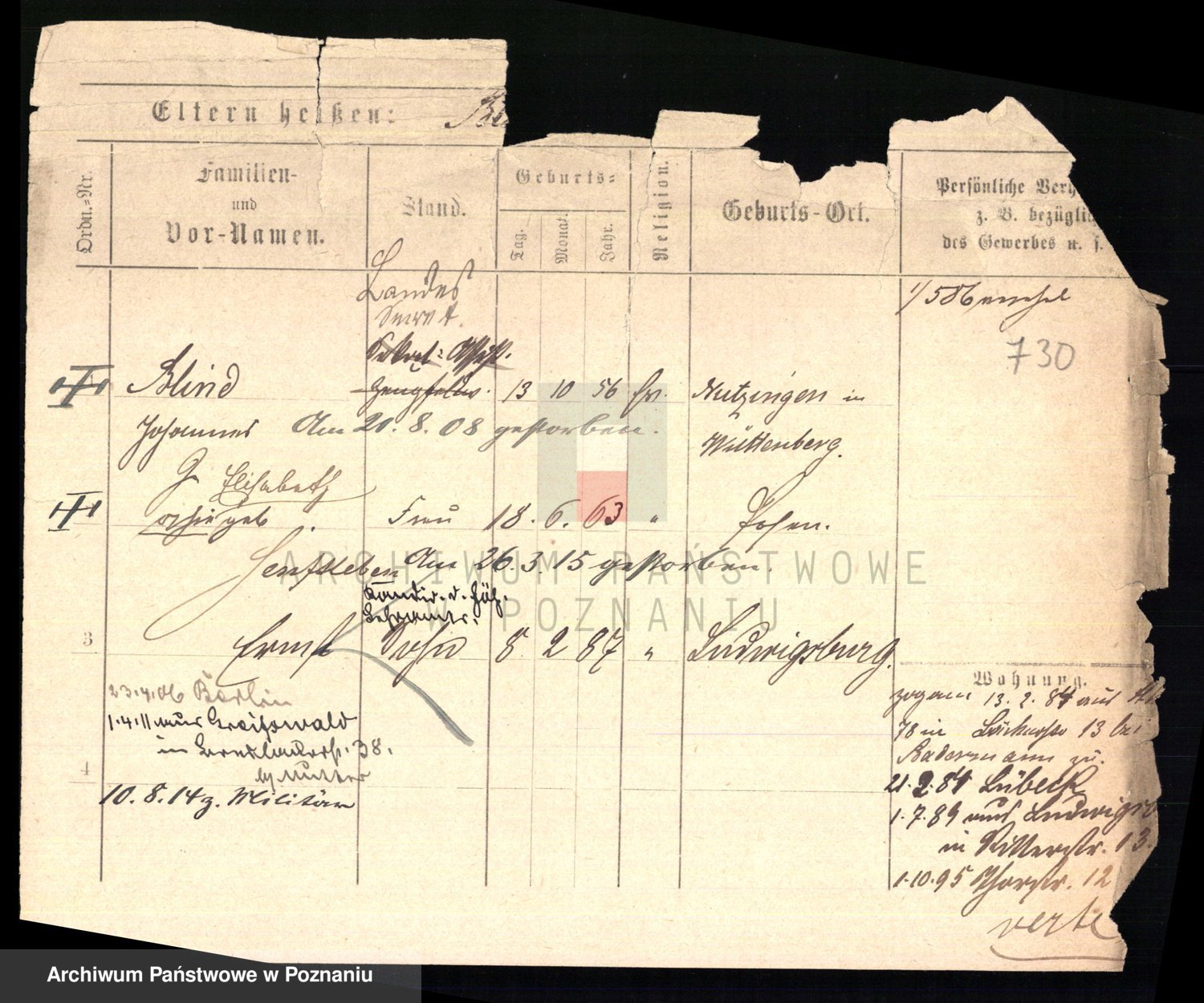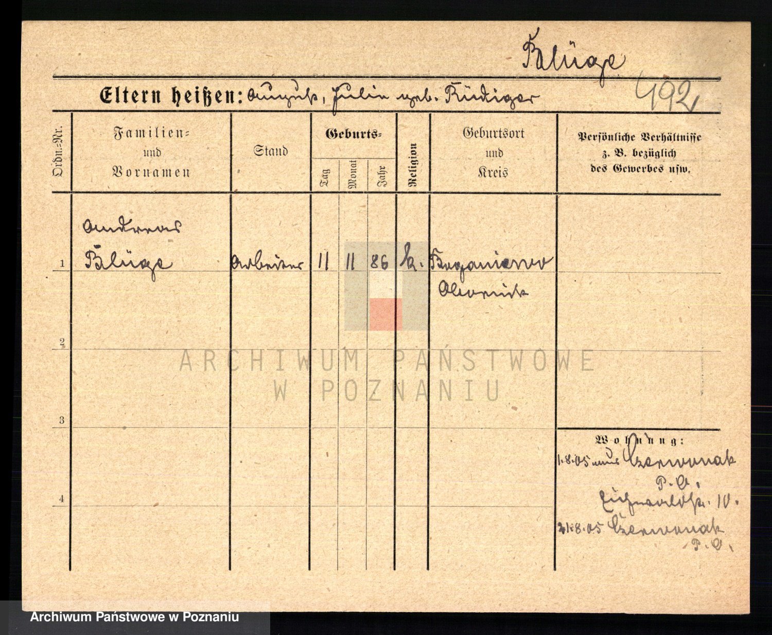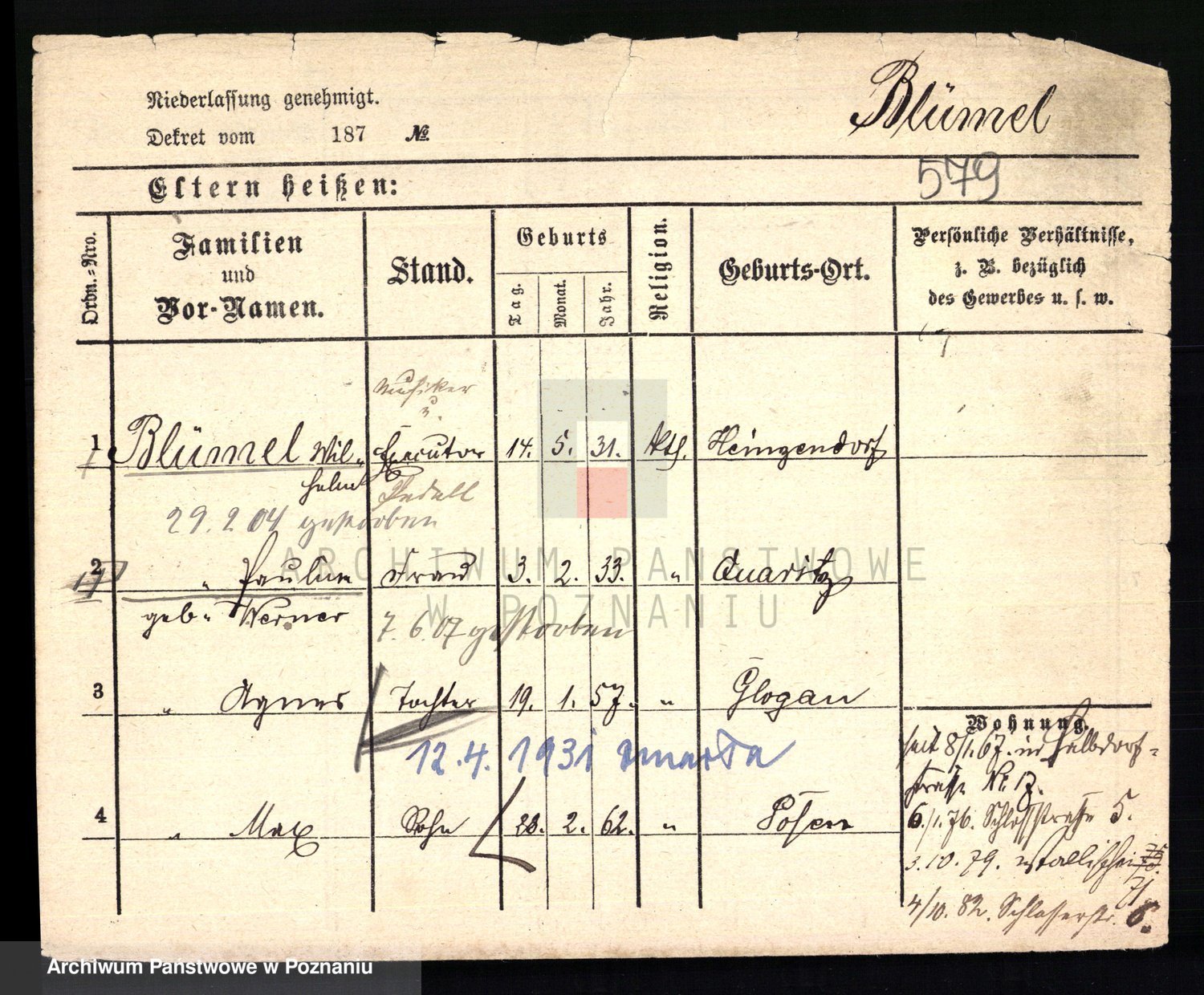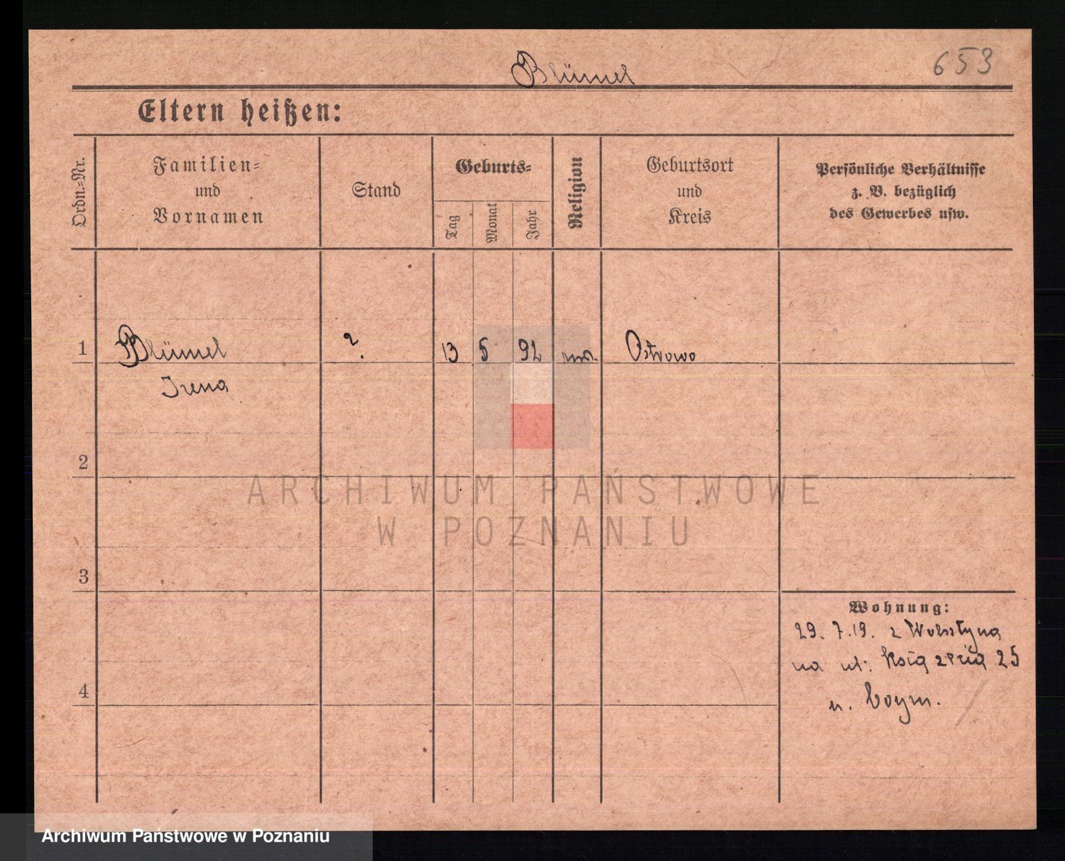 Podgląd karty osobowej dostępny jest po kliknięciu na nazwisko lub ikonkę karty. Można dokonywać powiększenia (ikony na górze) lub przechodzić między kolejnymi skanami (strzałki po bokach).