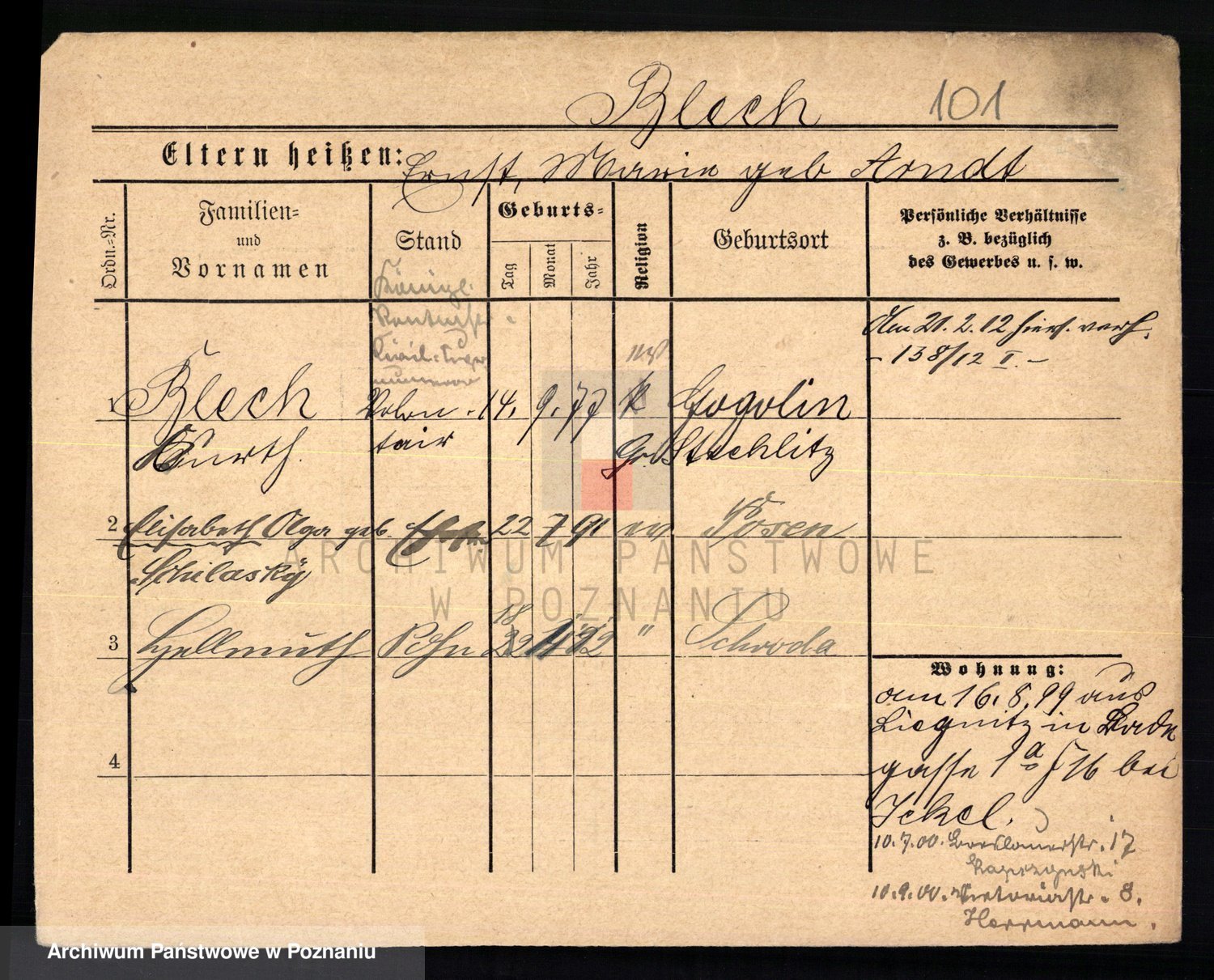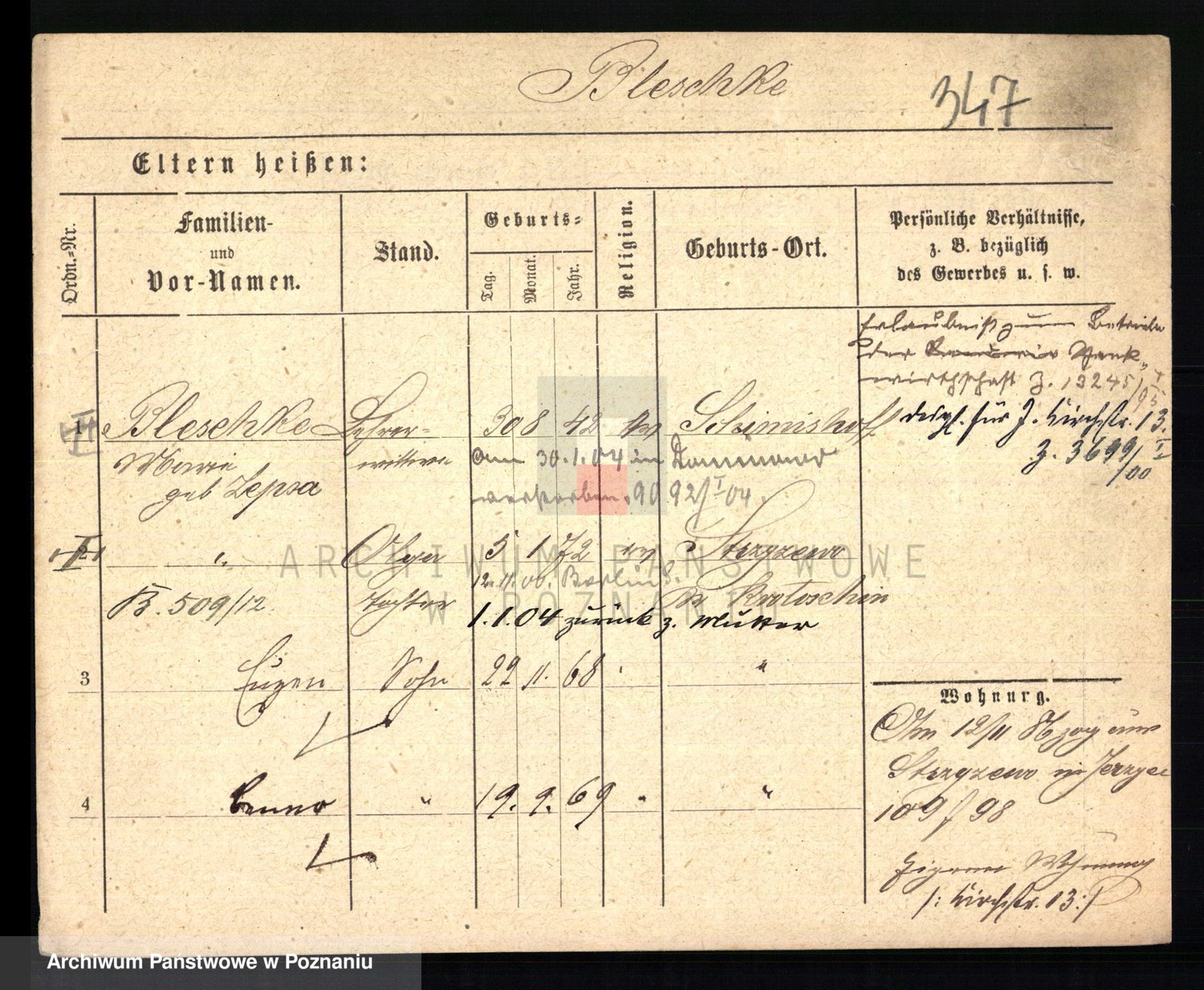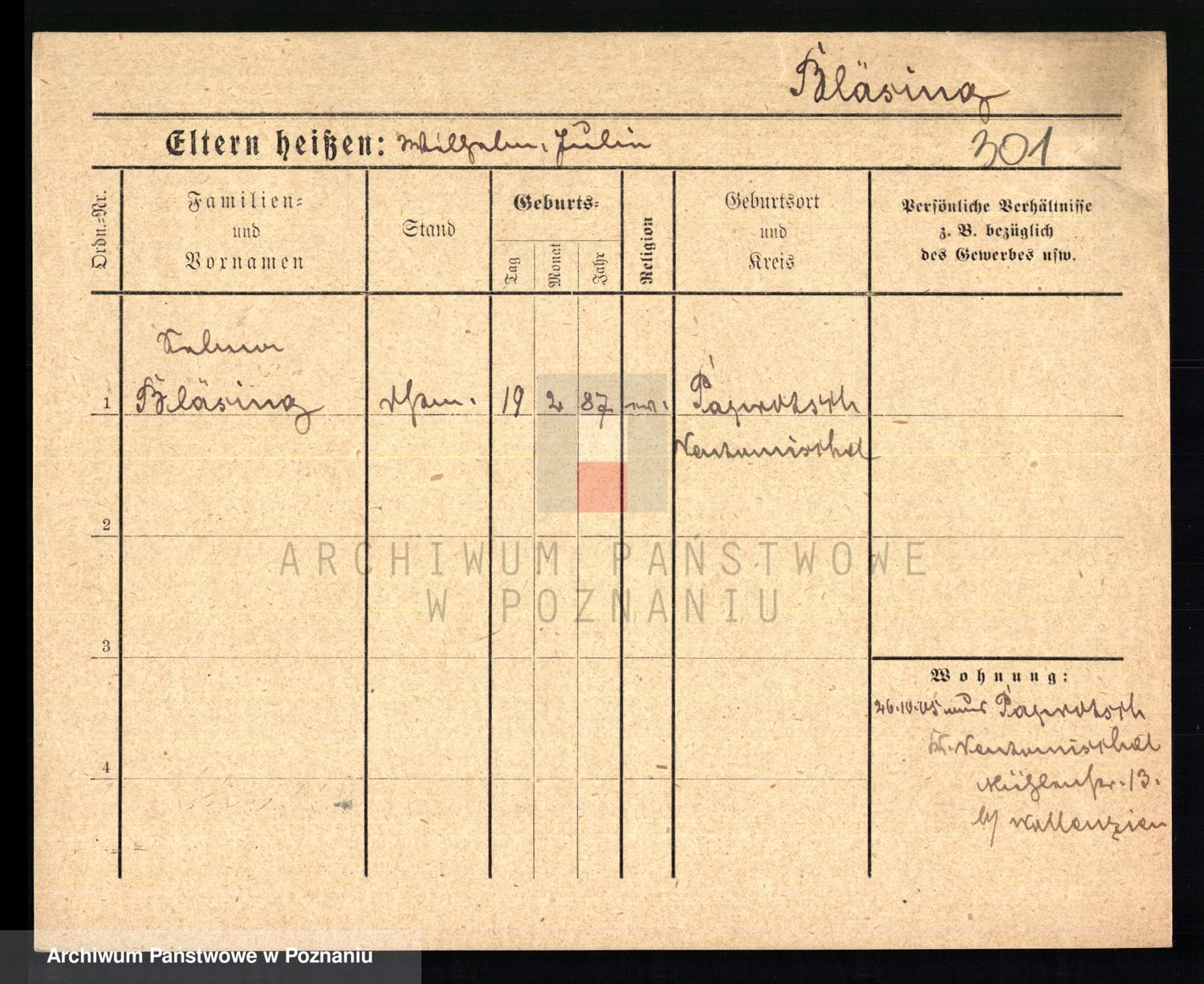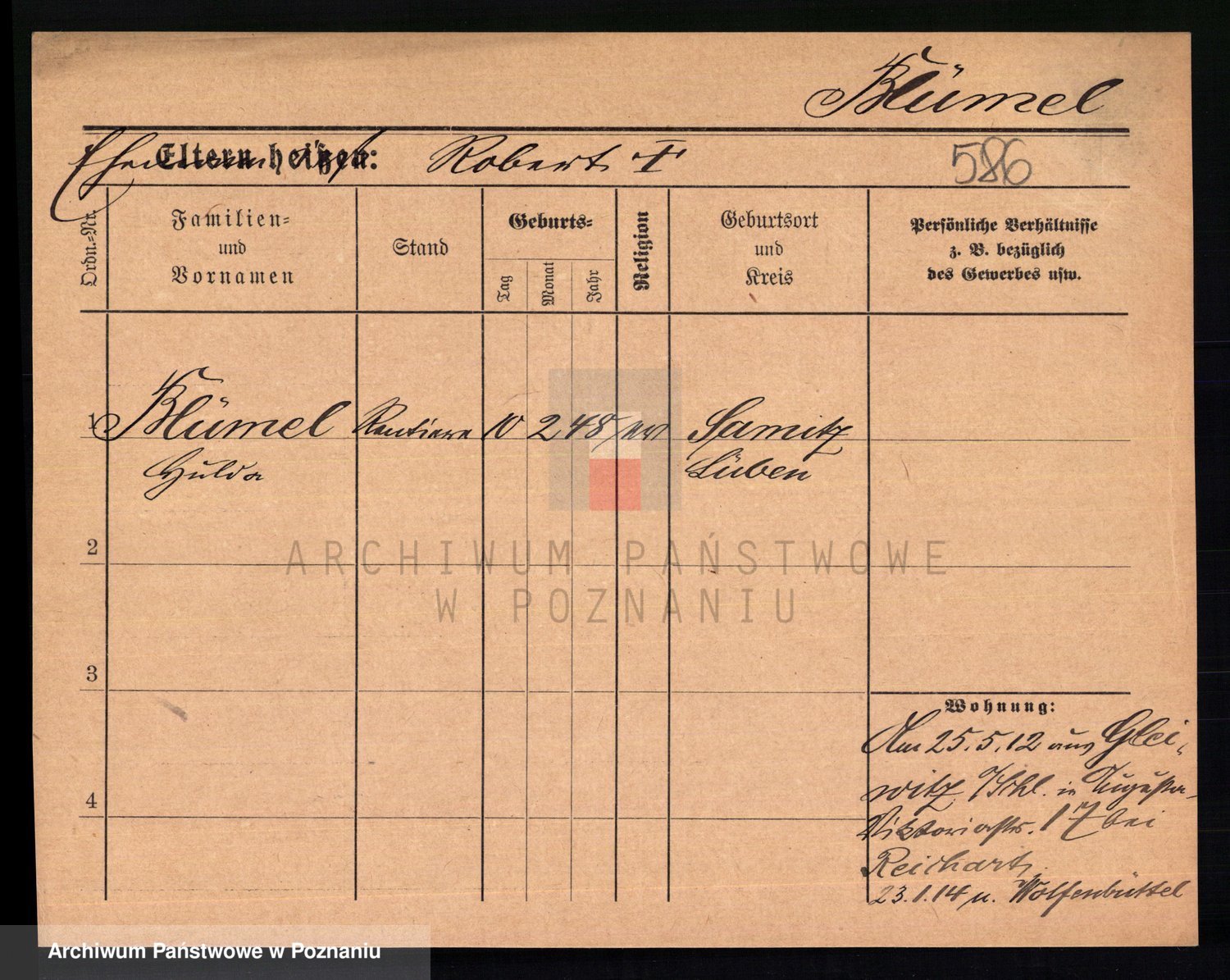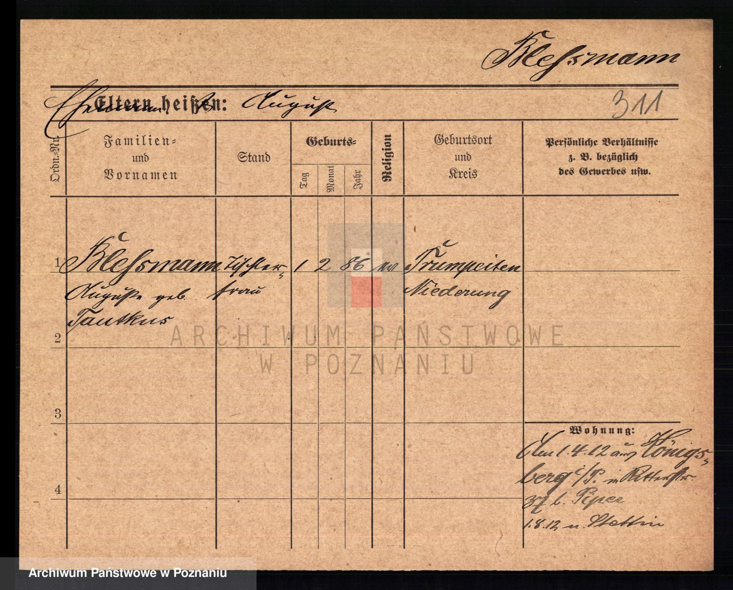Podgląd karty osobowej dostępny jest po kliknięciu na nazwisko lub ikonkę karty. Można dokonywać powiększenia (ikony na górze) lub przechodzić między kolejnymi skanami (strzałki po bokach).