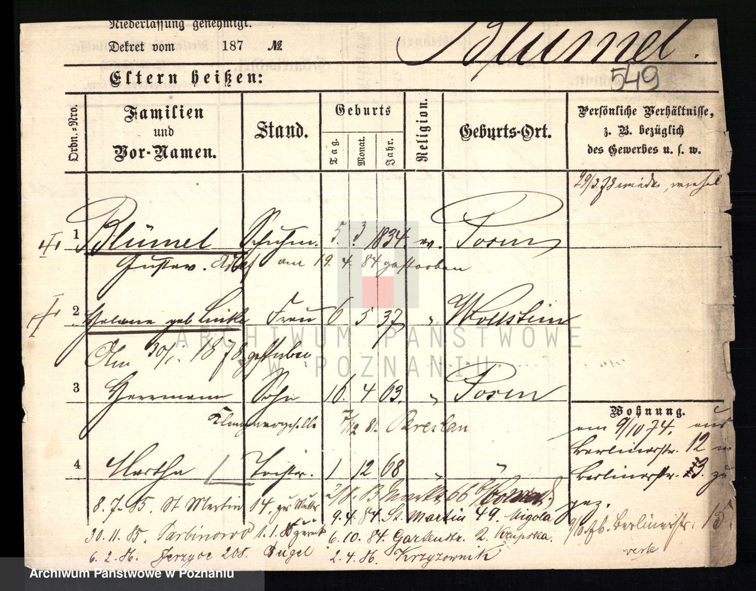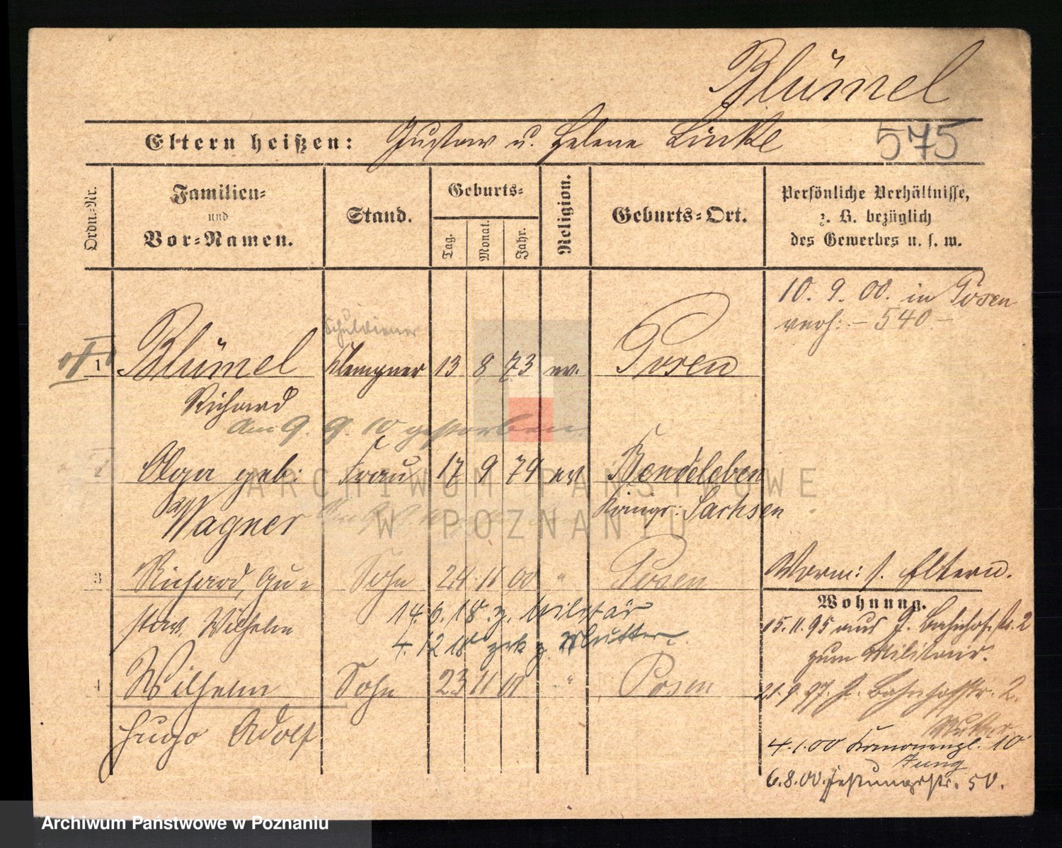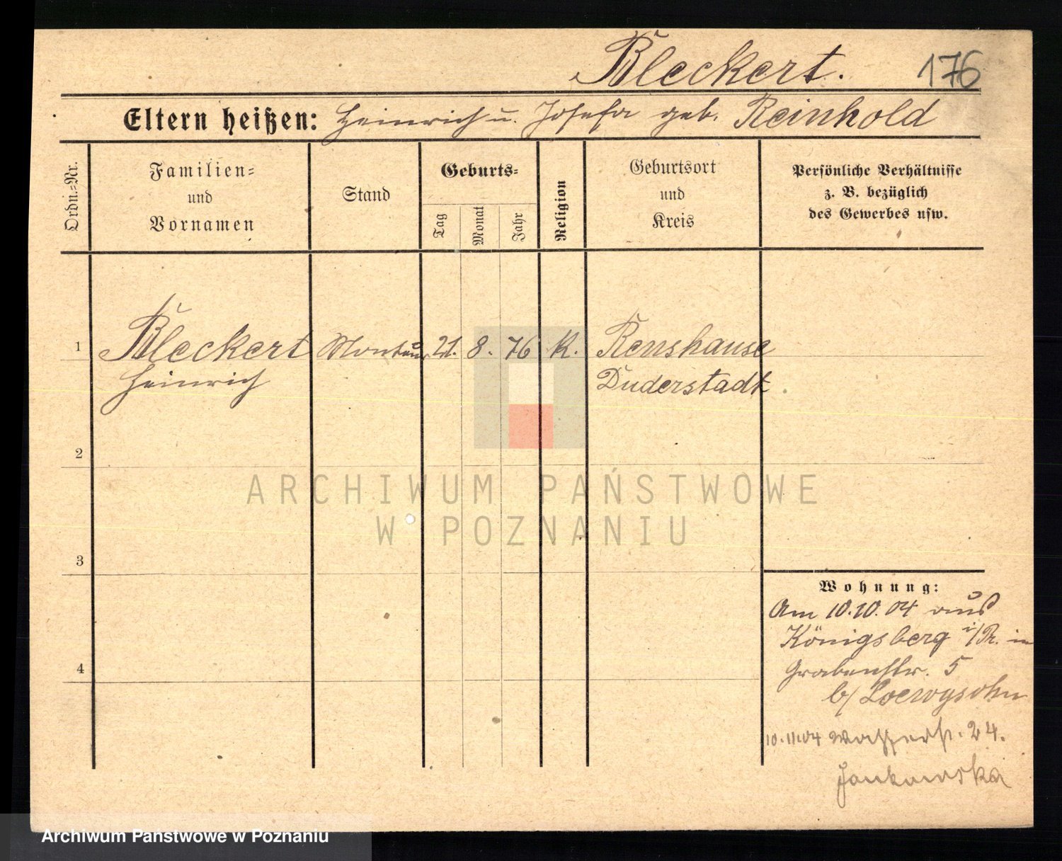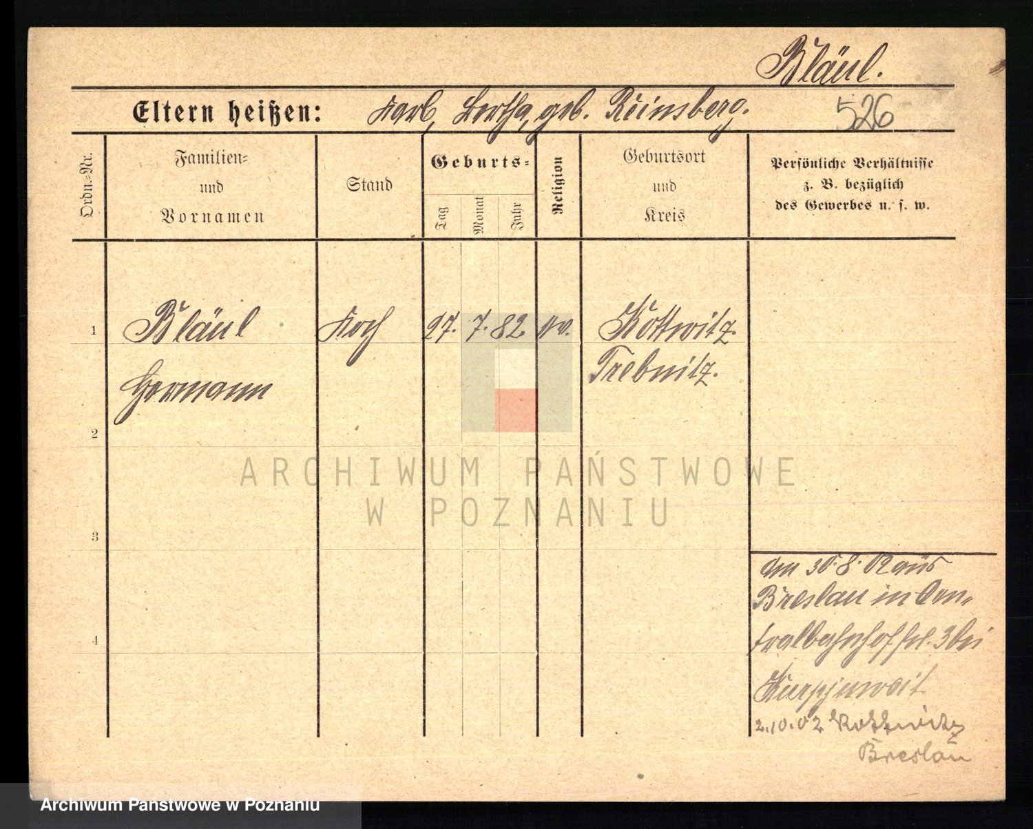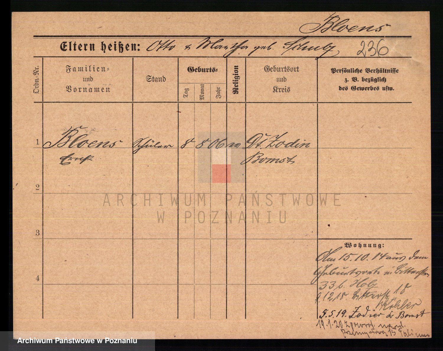 Podgląd karty osobowej dostępny jest po kliknięciu na nazwisko lub ikonkę karty. Można dokonywać powiększenia (ikony na górze) lub przechodzić między kolejnymi skanami (strzałki po bokach).