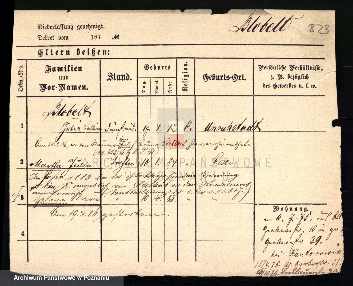 Blober z d. Mäderhold, Julie
