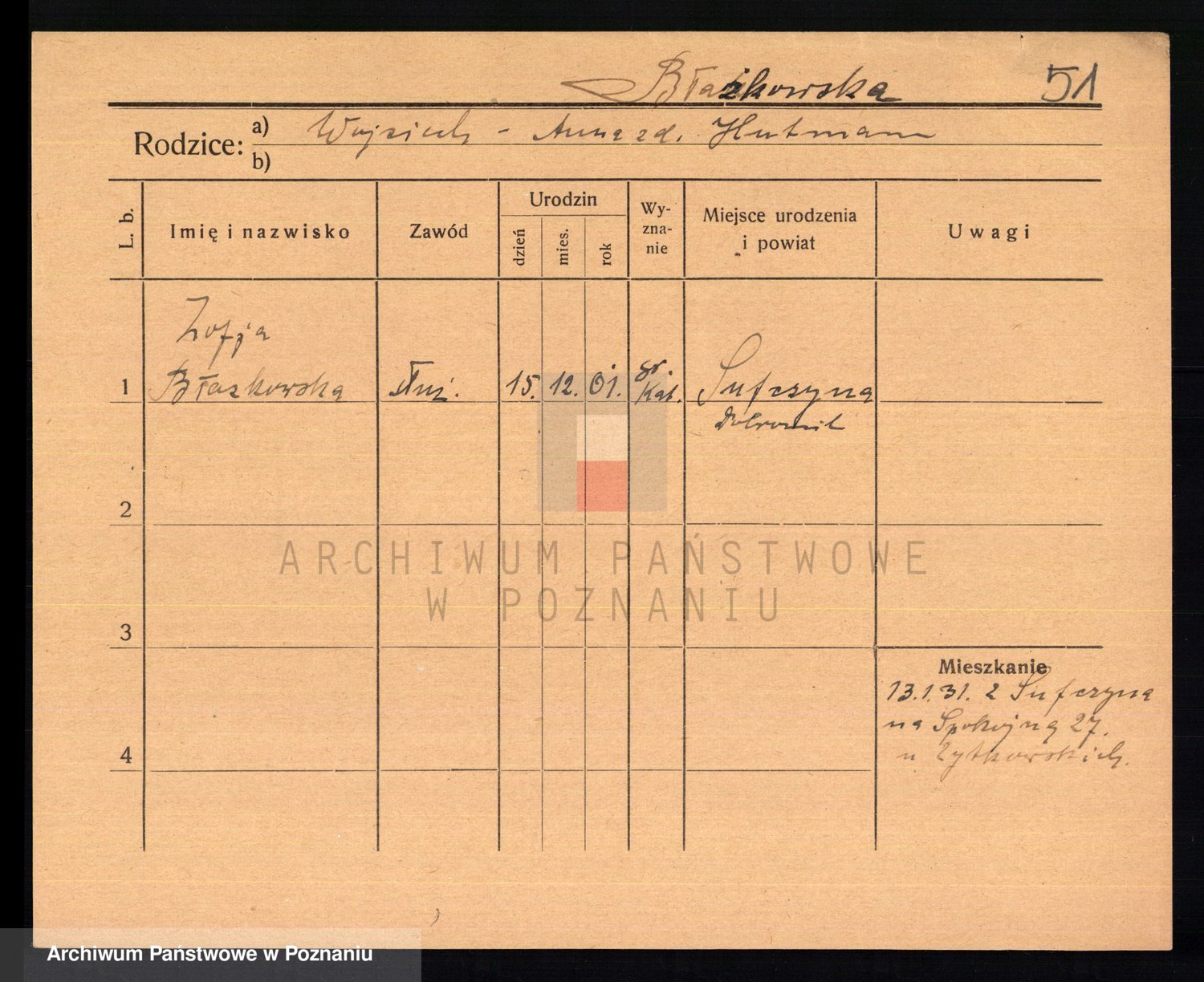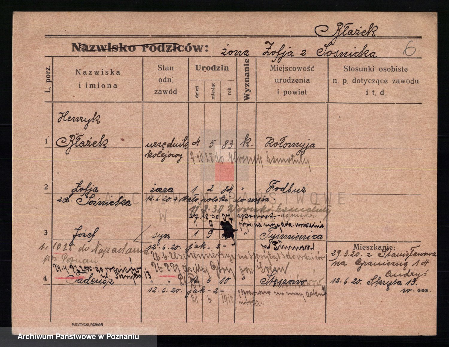 Błażek z d. Sośnicka, Zofja