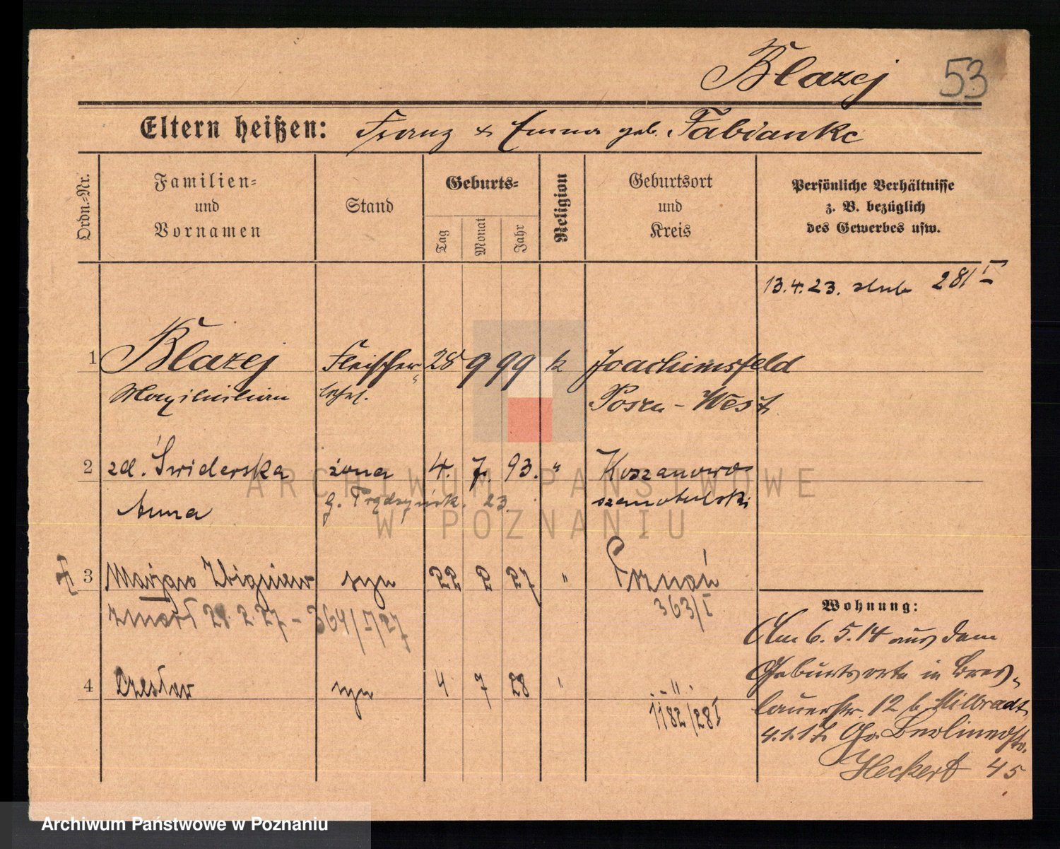 Blazewski z d. Kaczmarek i voto Maciączyk, Franziska