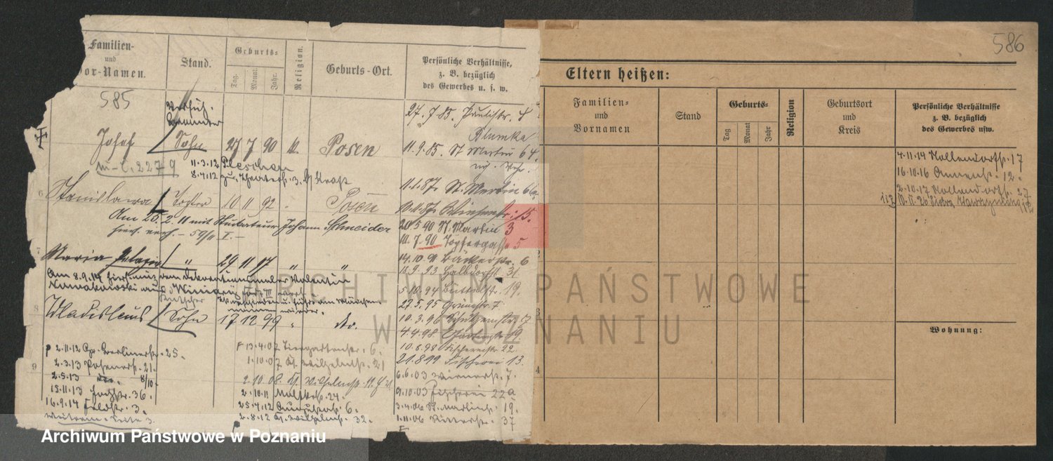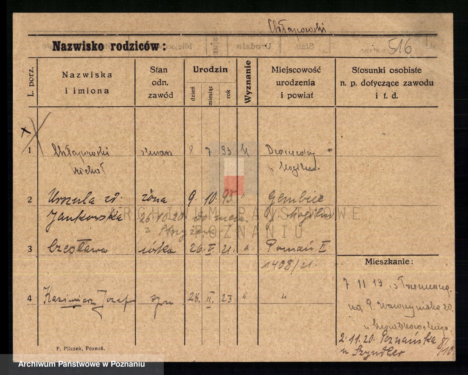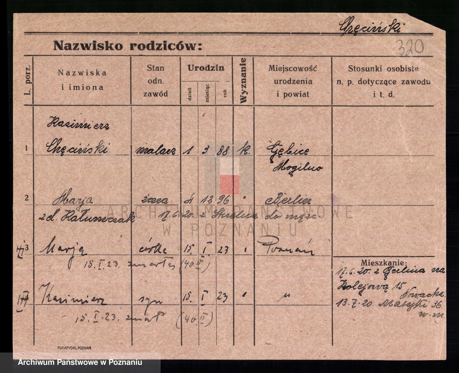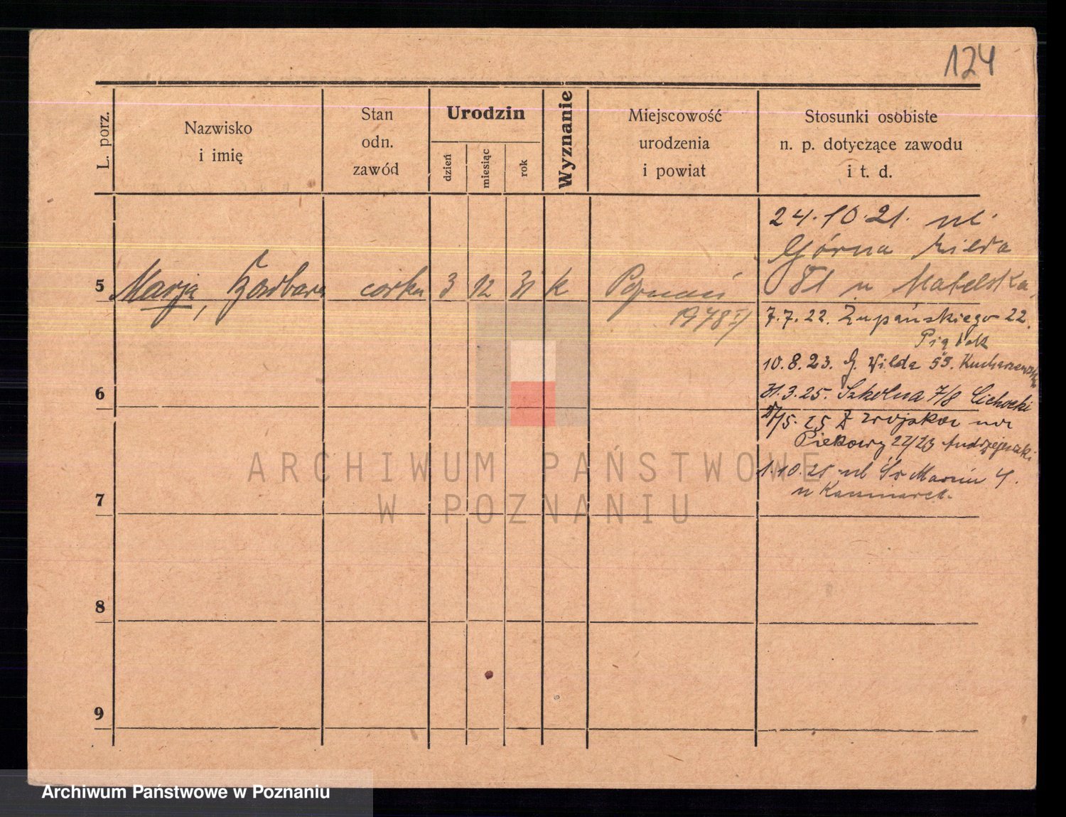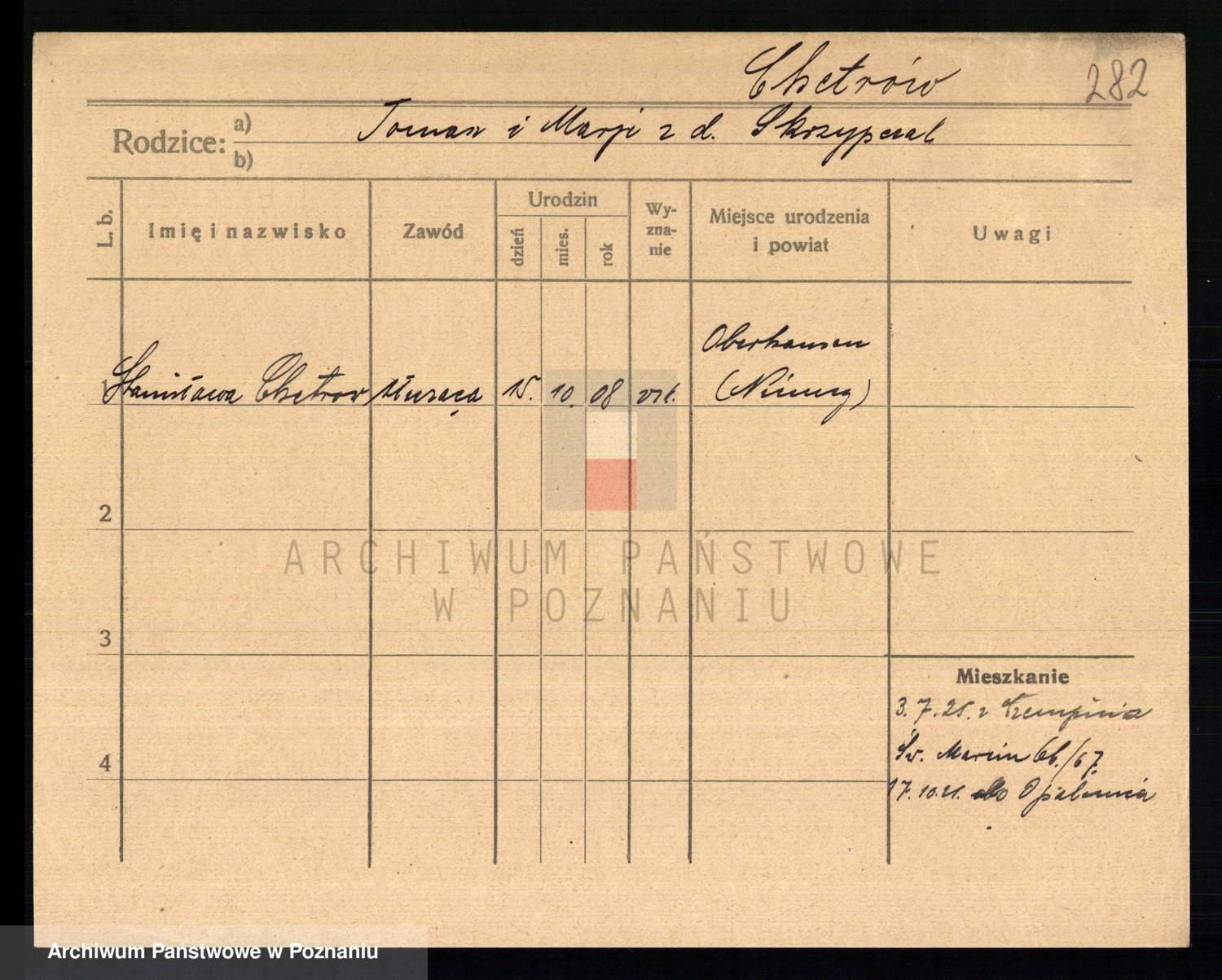 Podgląd karty osobowej dostępny jest po kliknięciu na nazwisko lub ikonkę karty. Można dokonywać powiększenia (ikony na górze) lub przechodzić między kolejnymi skanami (strzałki po bokach).