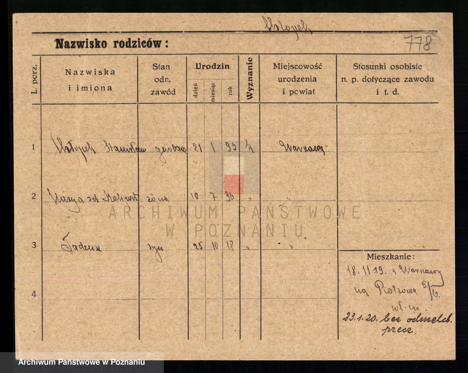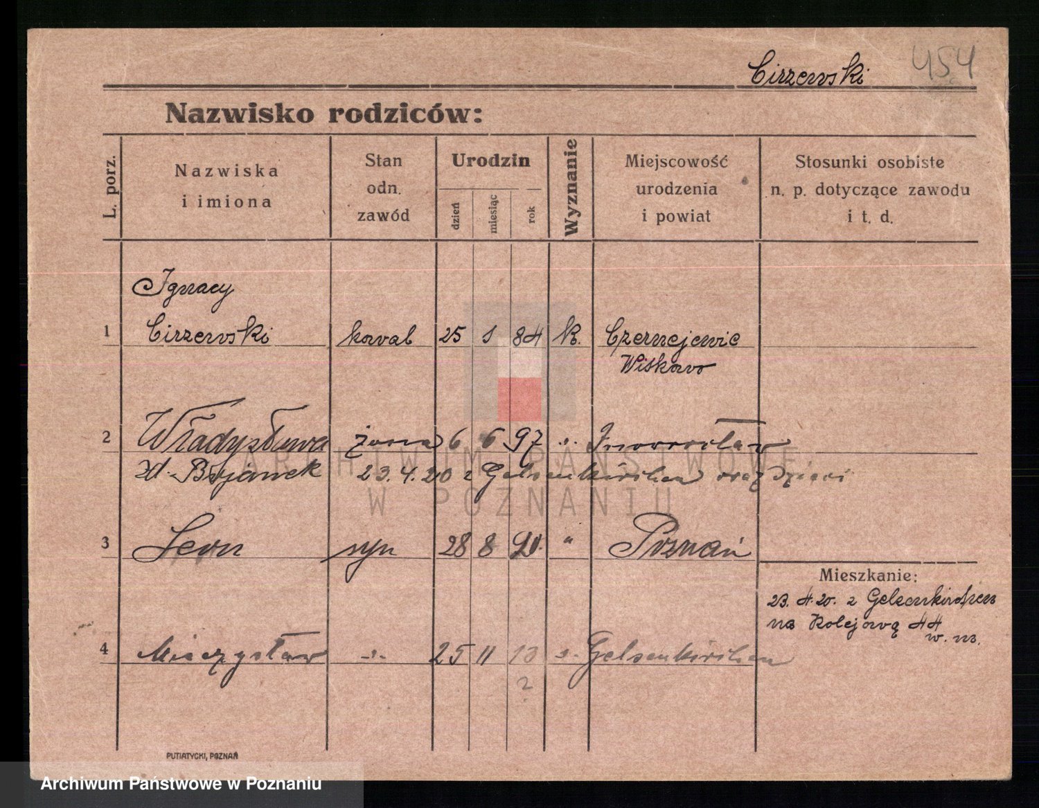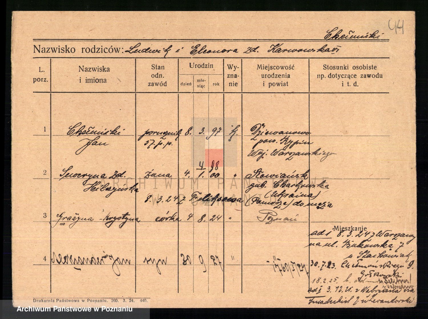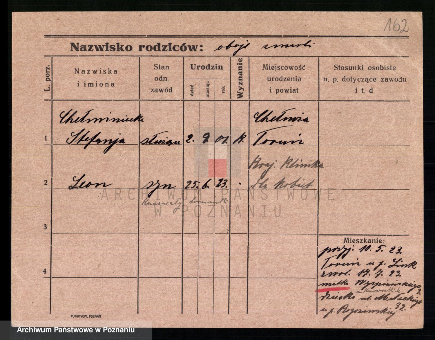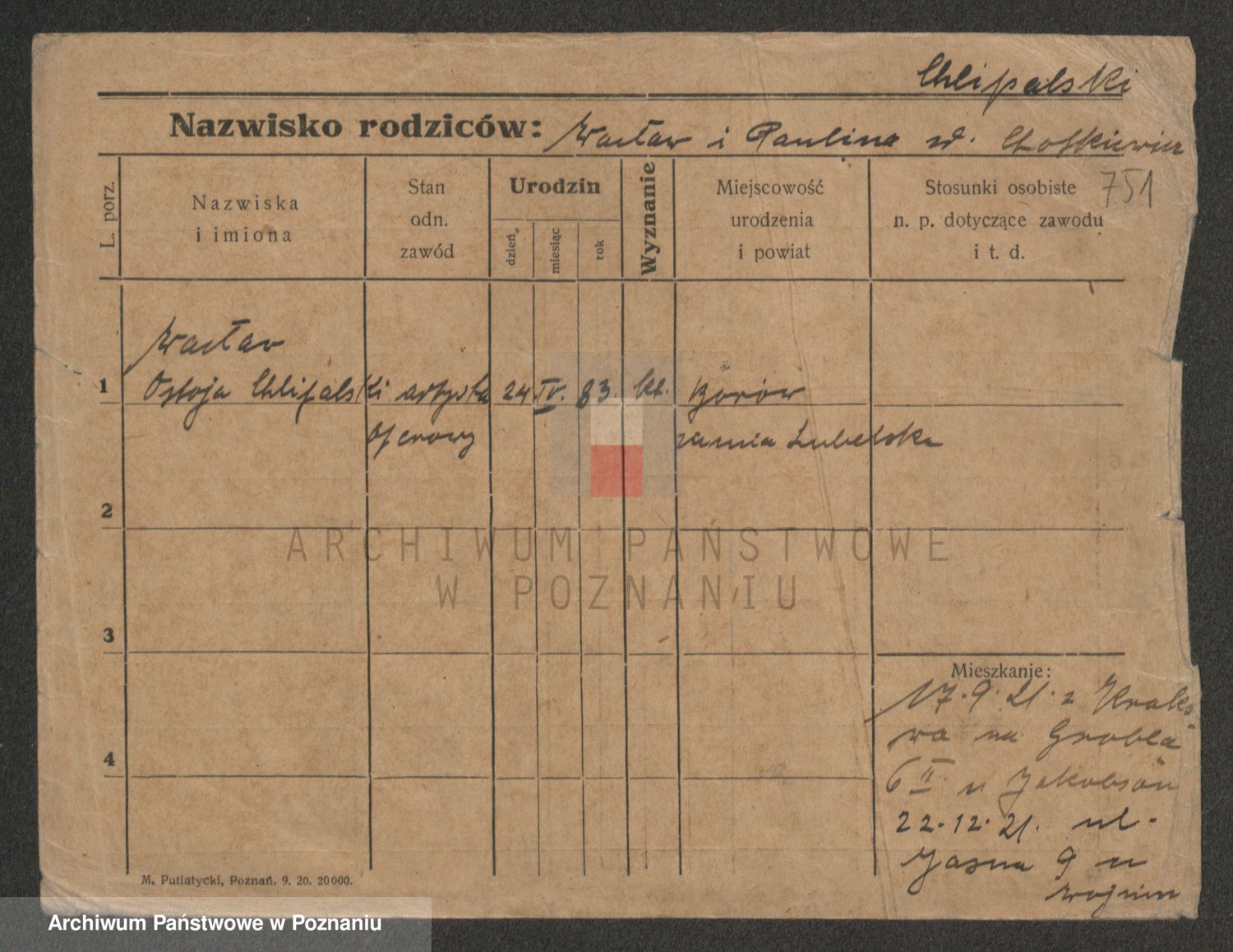 Podgląd karty osobowej dostępny jest po kliknięciu na nazwisko lub ikonkę karty. Można dokonywać powiększenia (ikony na górze) lub przechodzić między kolejnymi skanami (strzałki po bokach).