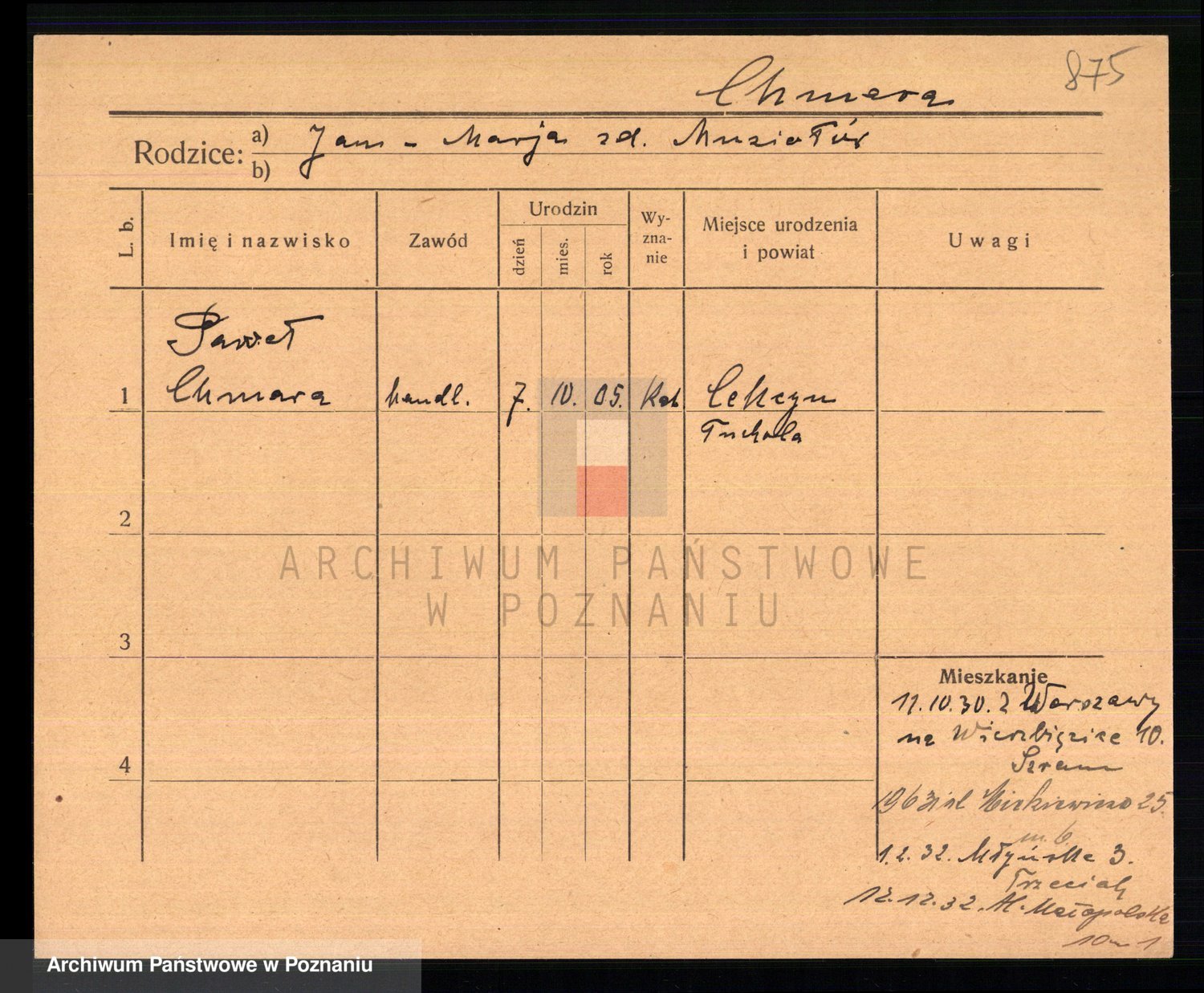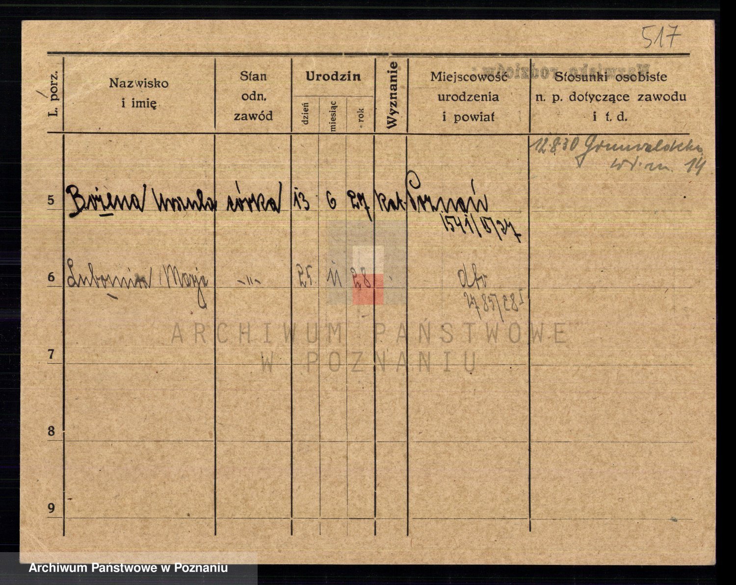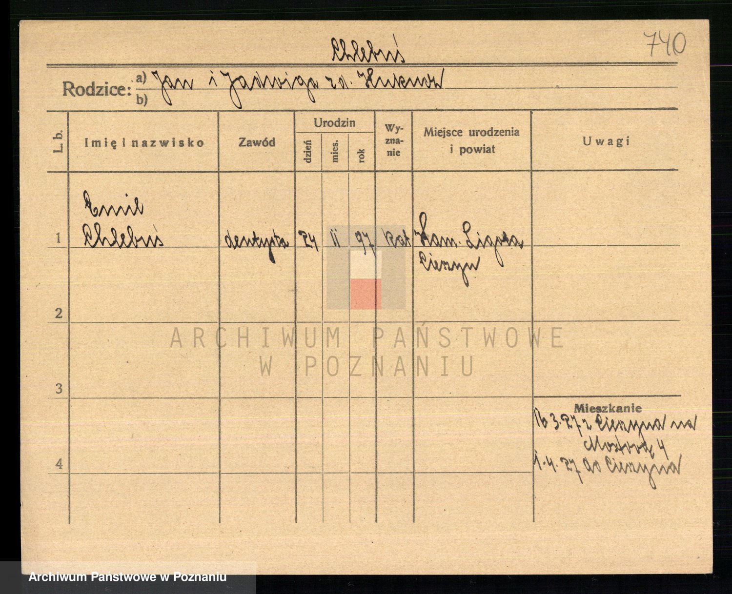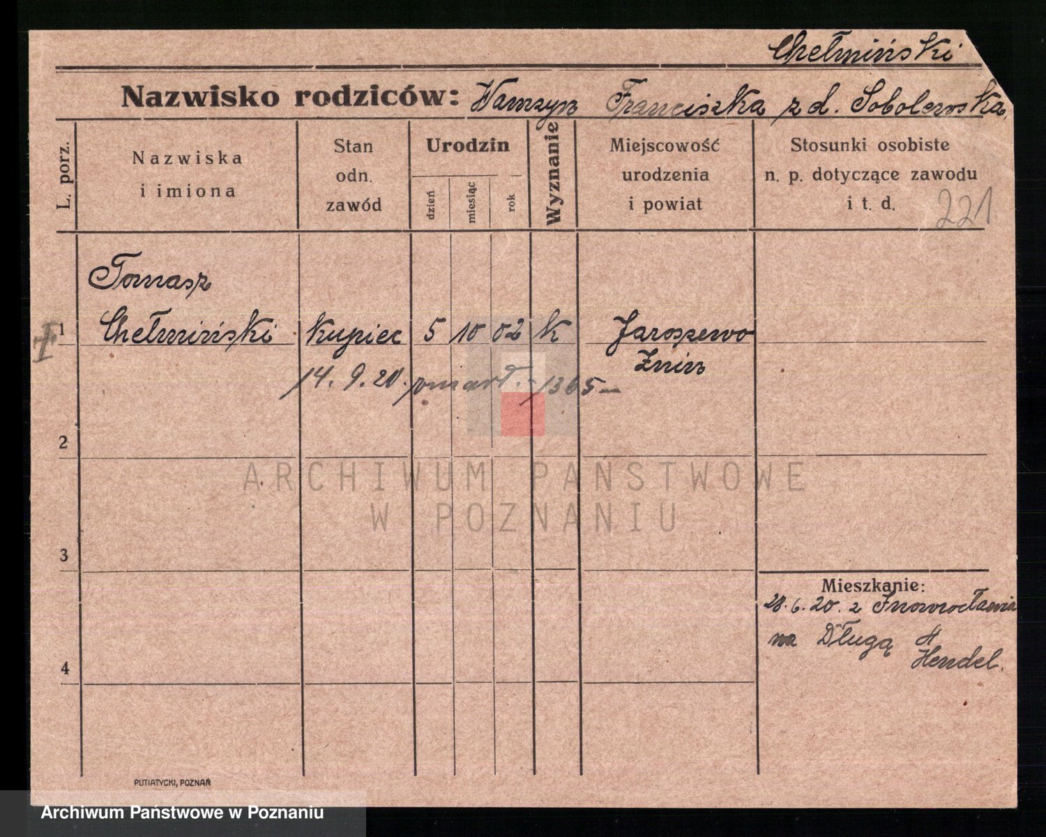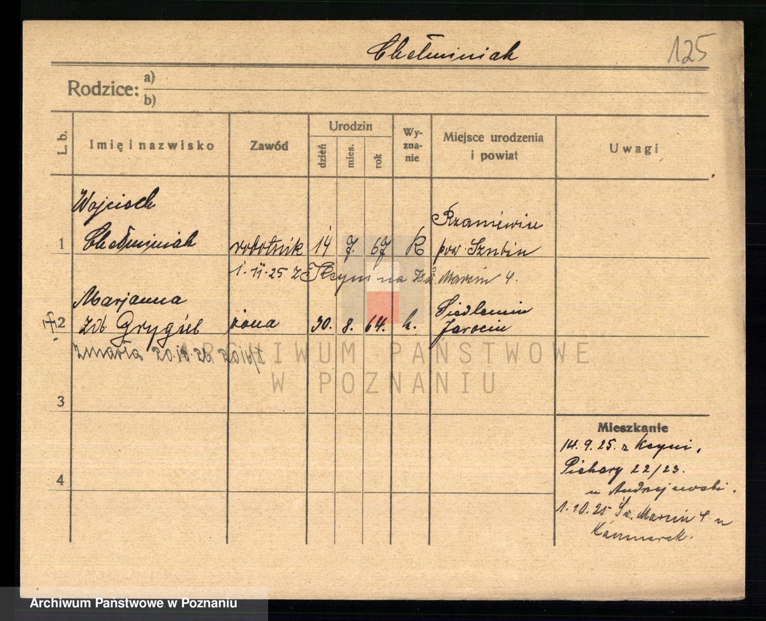 Podgląd karty osobowej dostępny jest po kliknięciu na nazwisko lub ikonkę karty. Można dokonywać powiększenia (ikony na górze) lub przechodzić między kolejnymi skanami (strzałki po bokach).