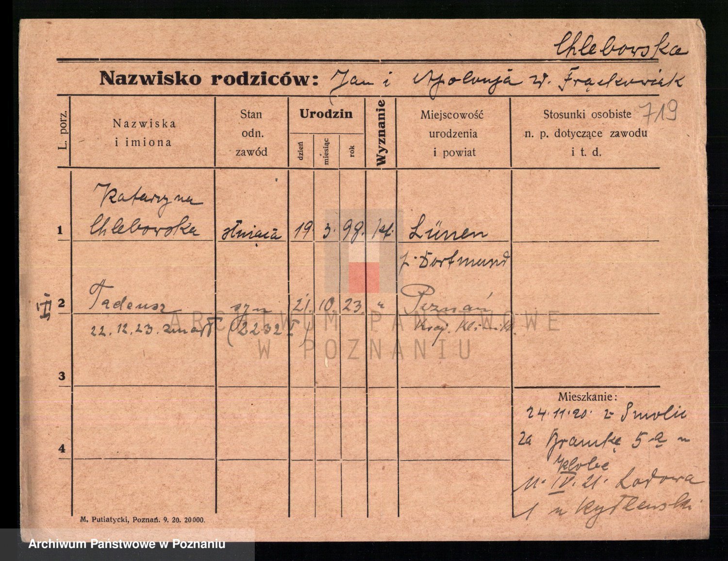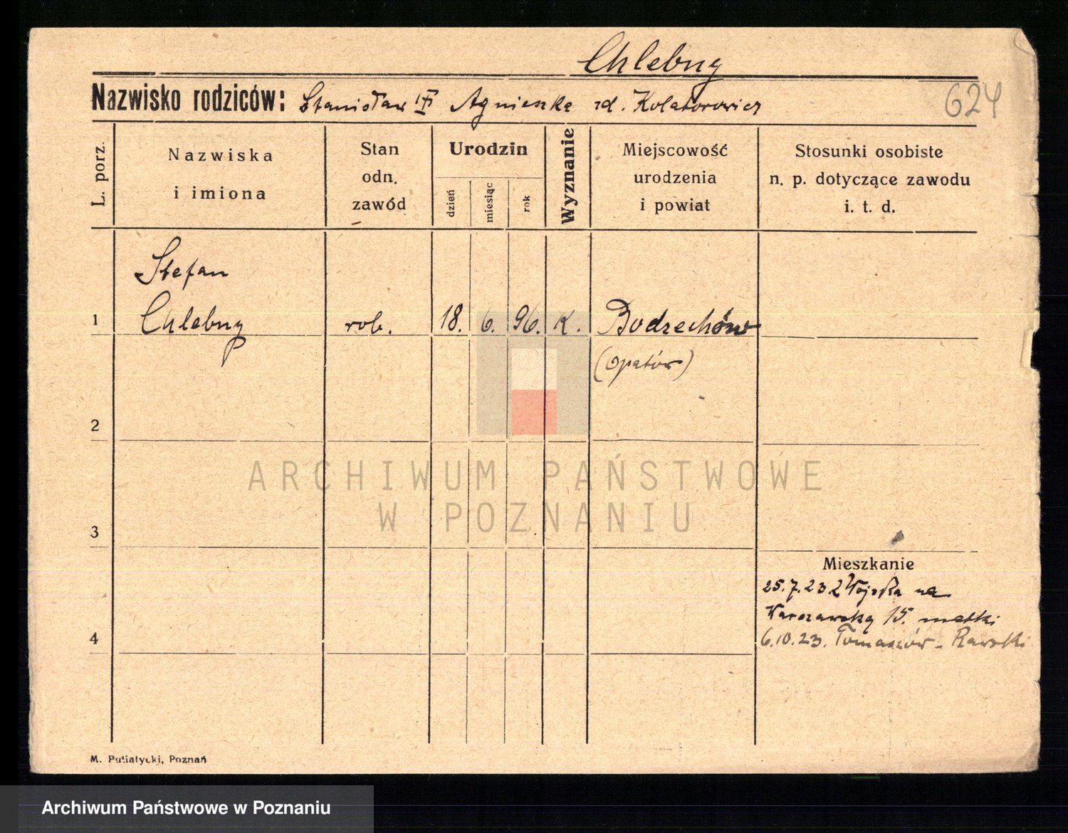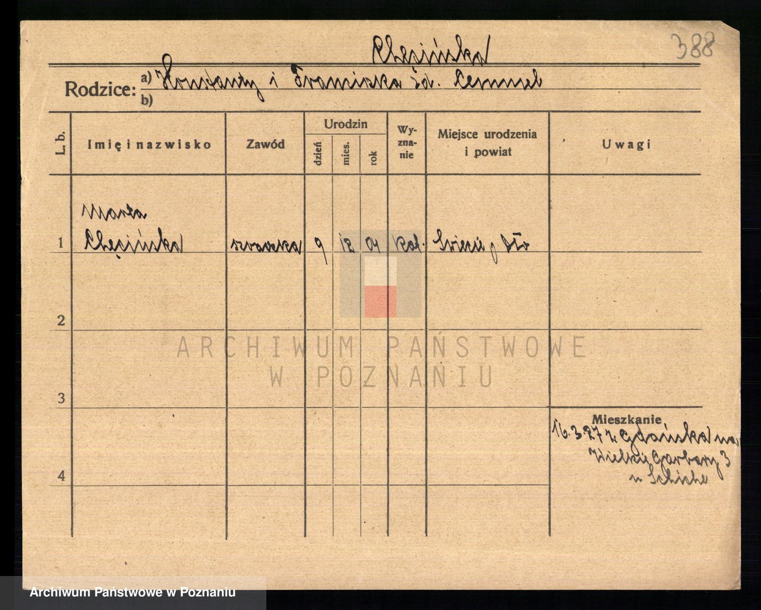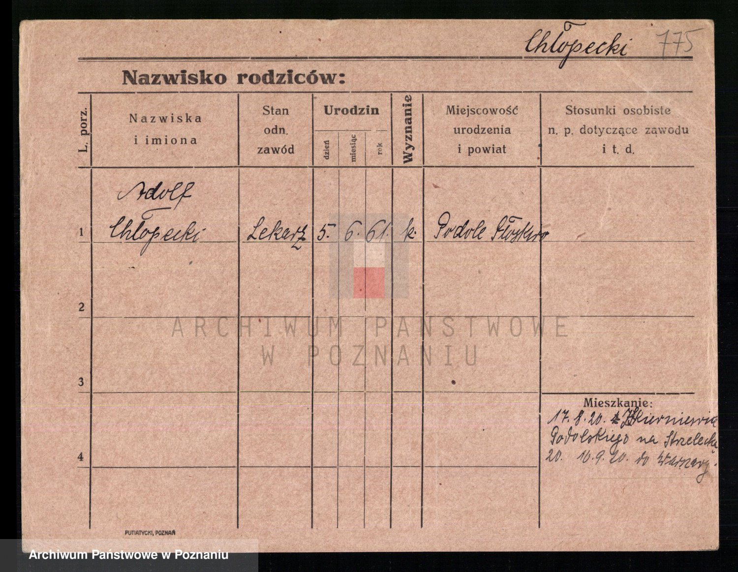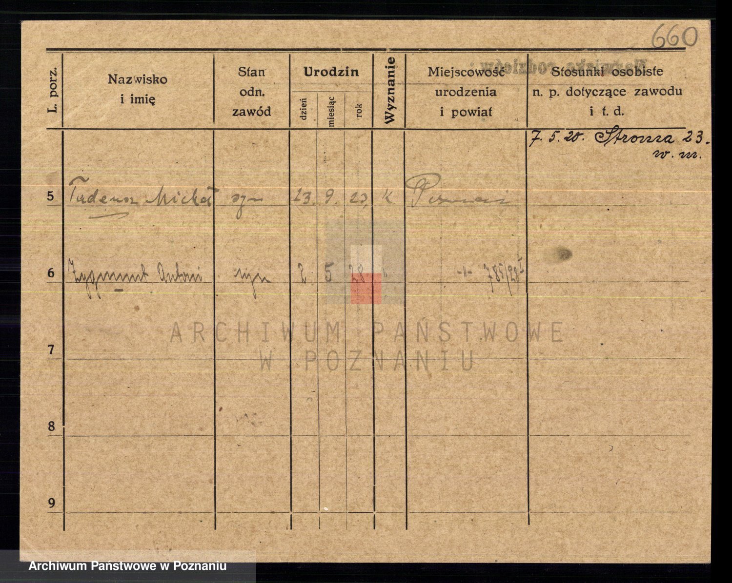 Podgląd karty osobowej dostępny jest po kliknięciu na nazwisko lub ikonkę karty. Można dokonywać powiększenia (ikony na górze) lub przechodzić między kolejnymi skanami (strzałki po bokach).