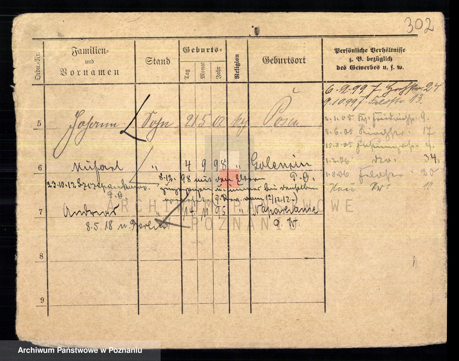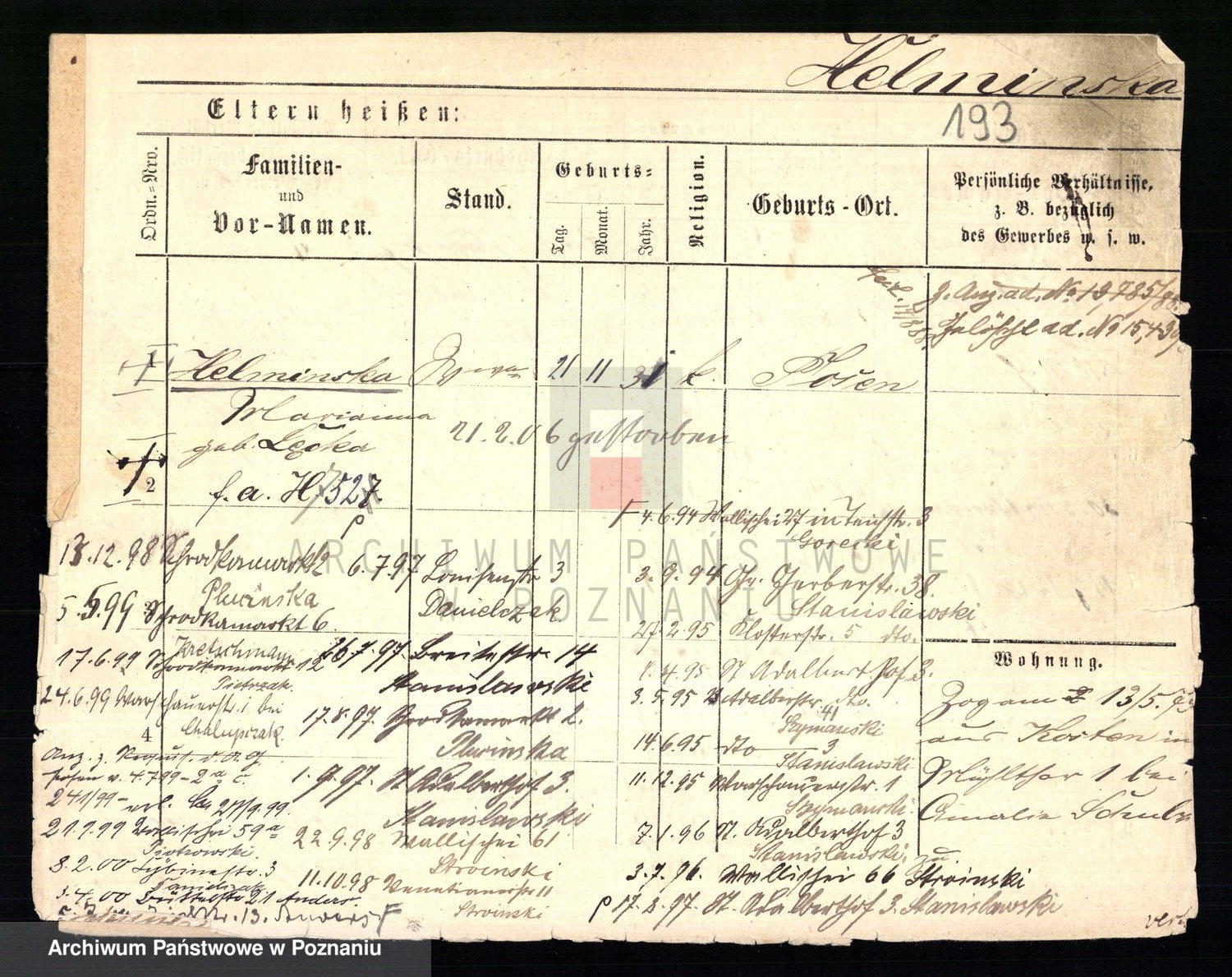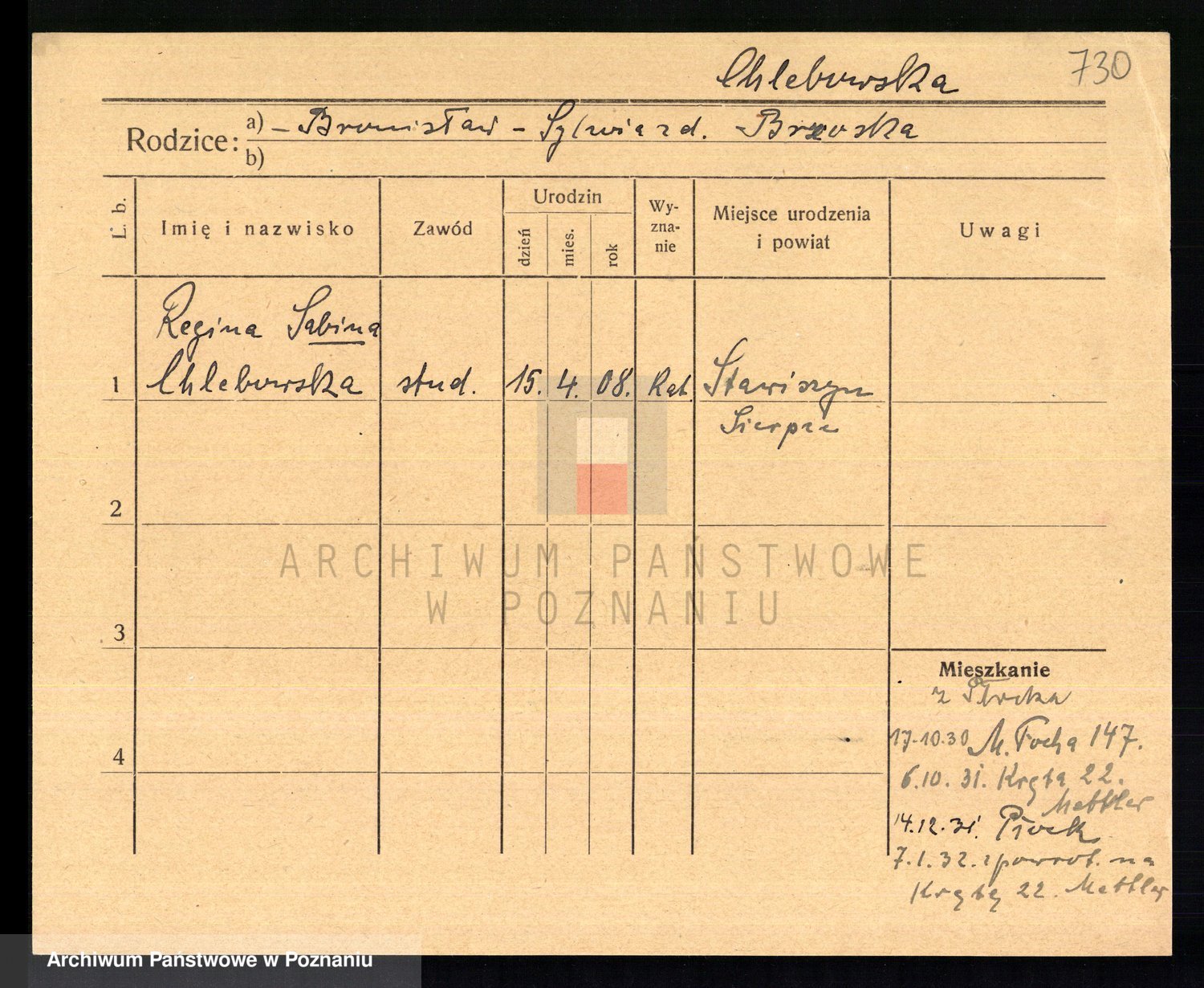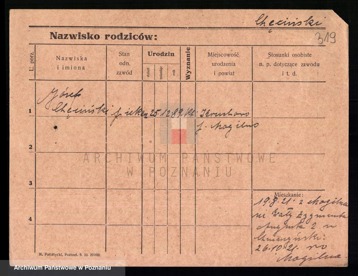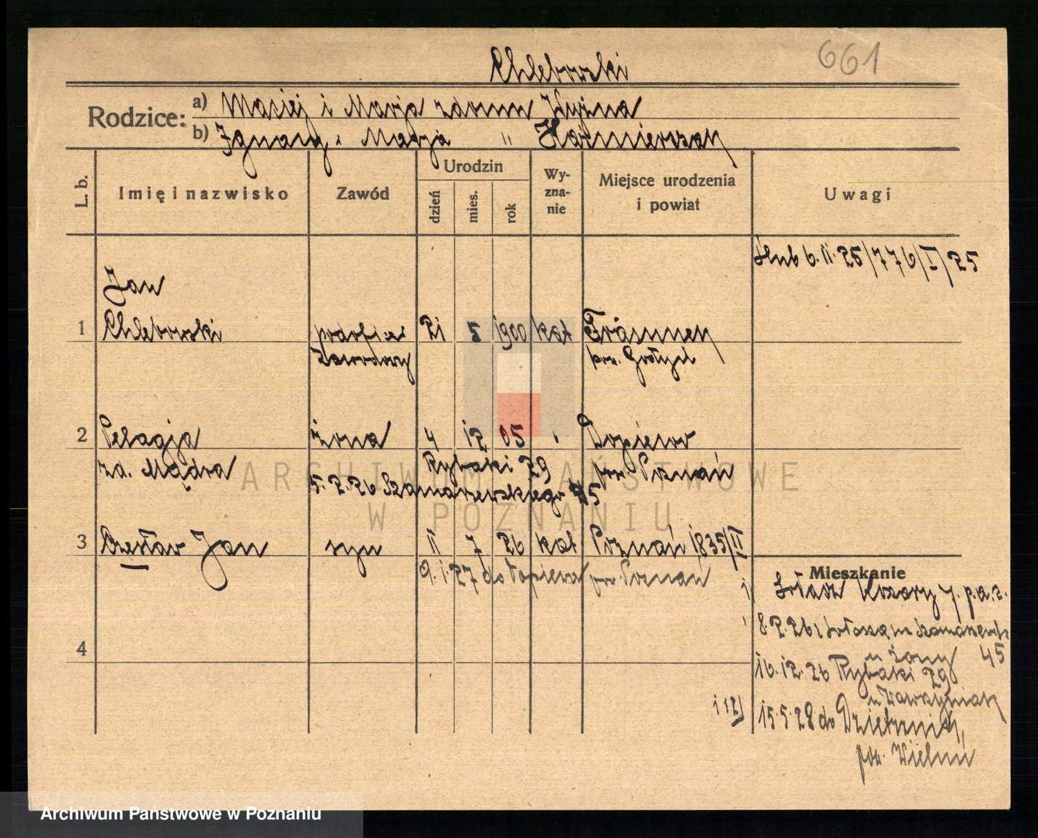 Podgląd karty osobowej dostępny jest po kliknięciu na nazwisko lub ikonkę karty. Można dokonywać powiększenia (ikony na górze) lub przechodzić między kolejnymi skanami (strzałki po bokach).