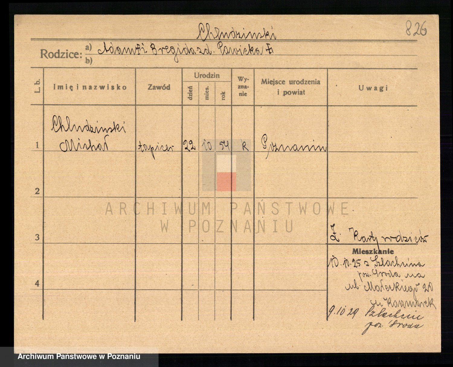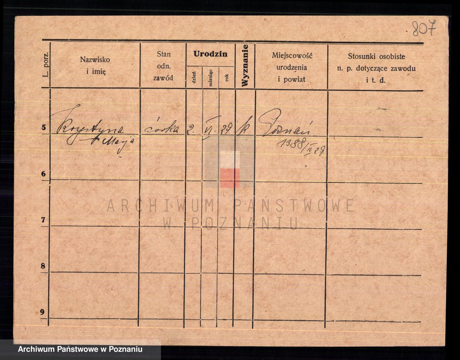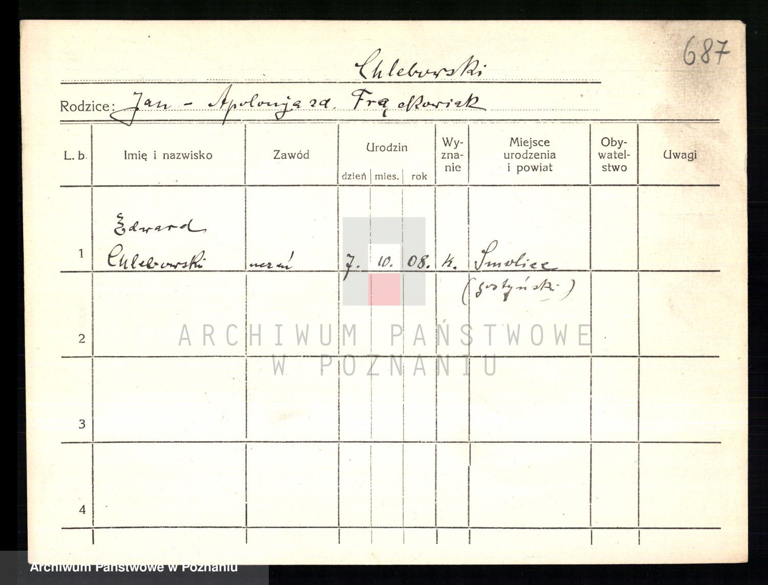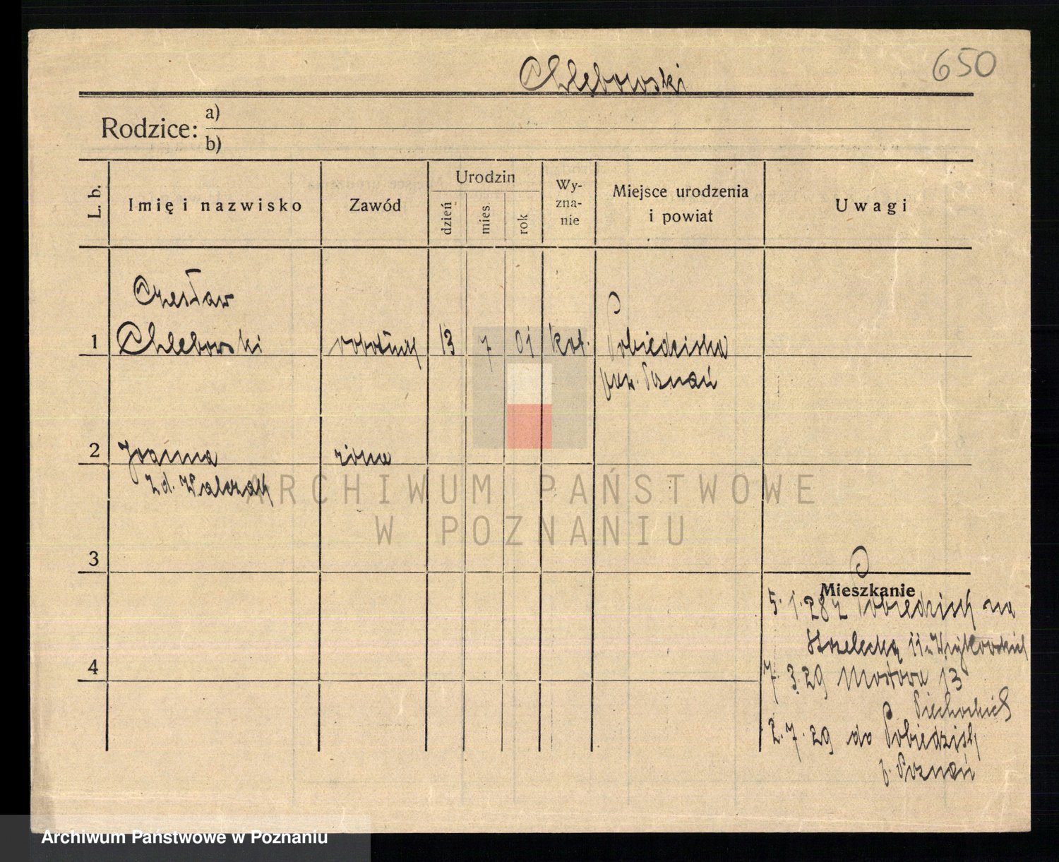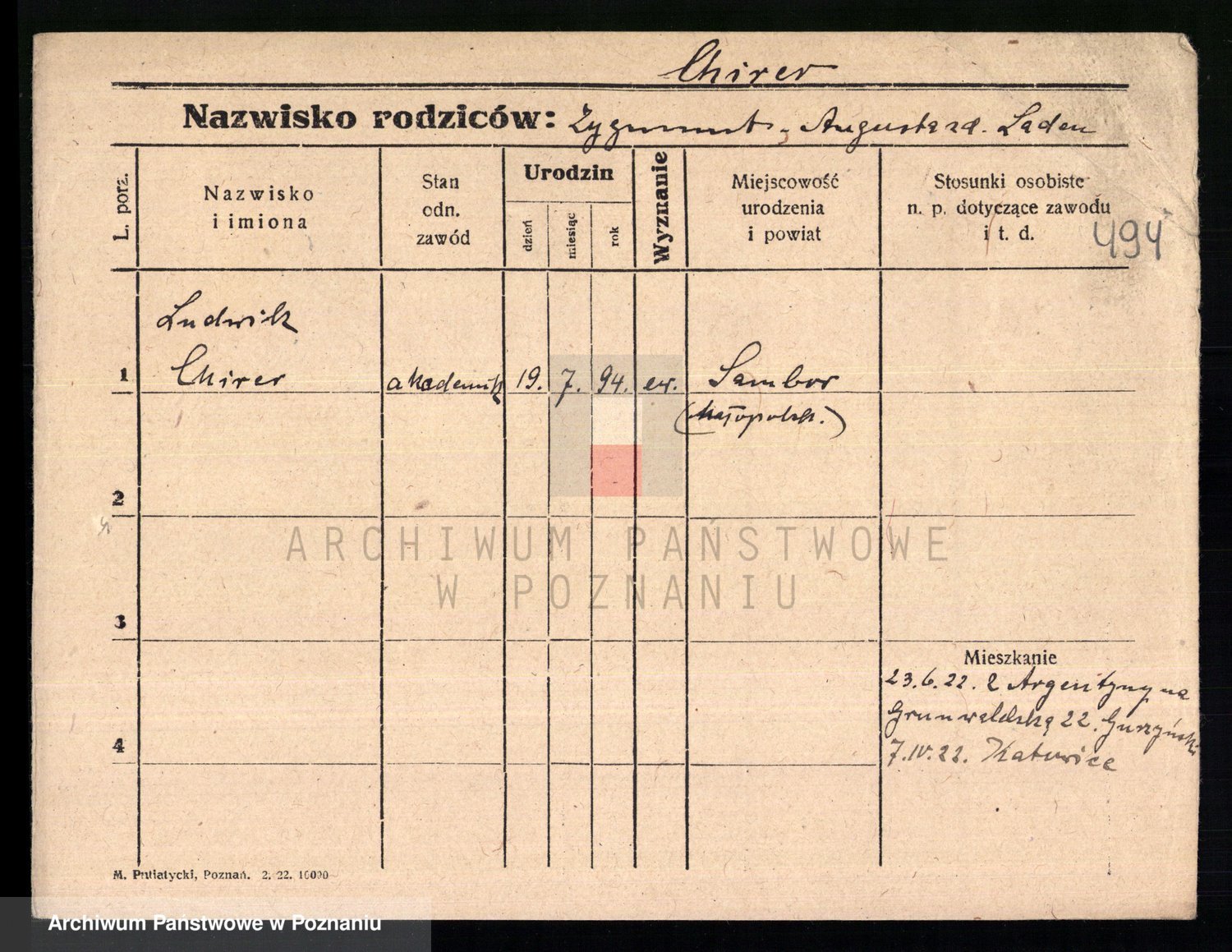 Podgląd karty osobowej dostępny jest po kliknięciu na nazwisko lub ikonkę karty. Można dokonywać powiększenia (ikony na górze) lub przechodzić między kolejnymi skanami (strzałki po bokach).