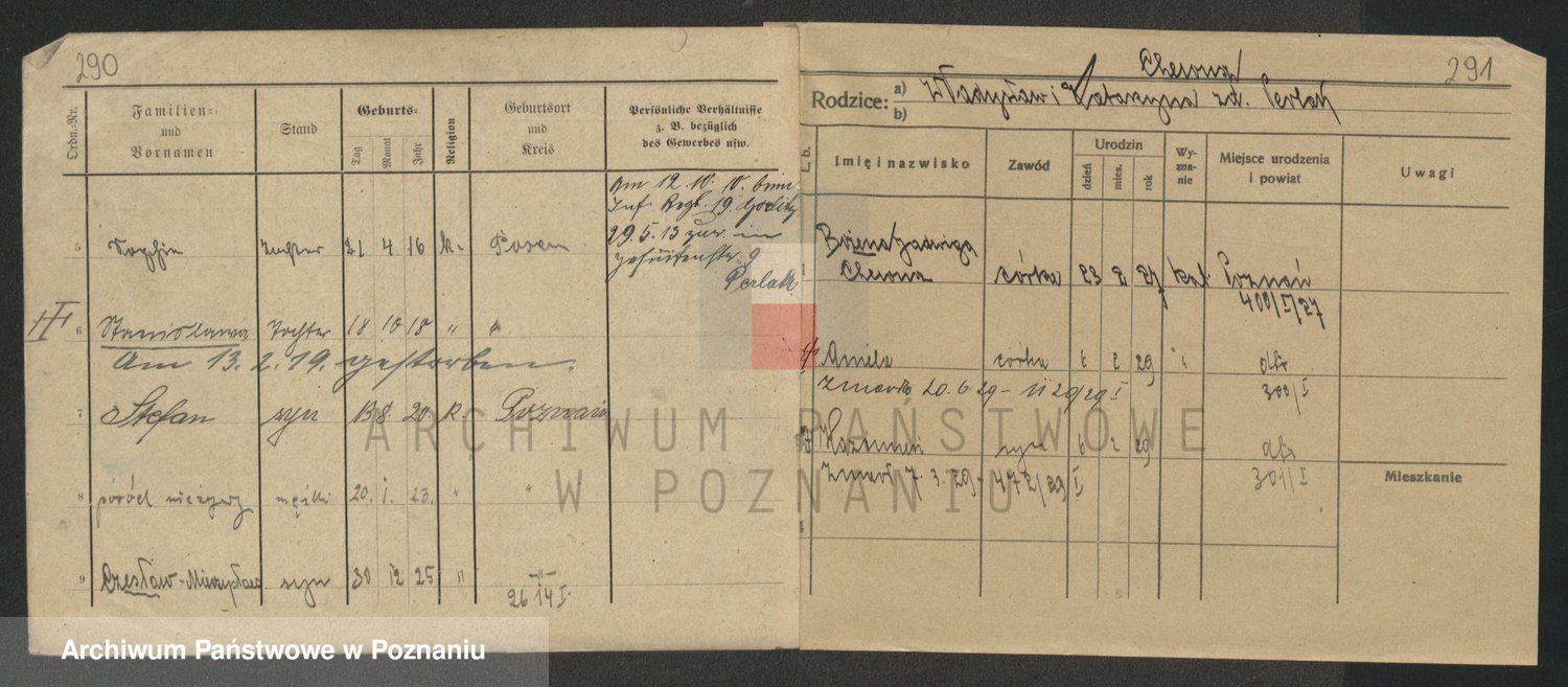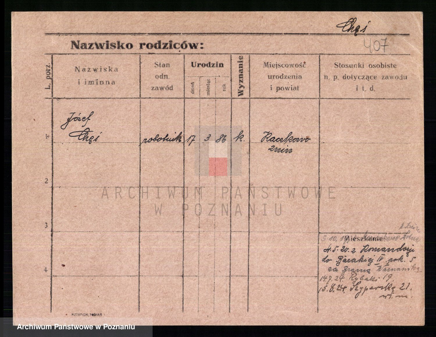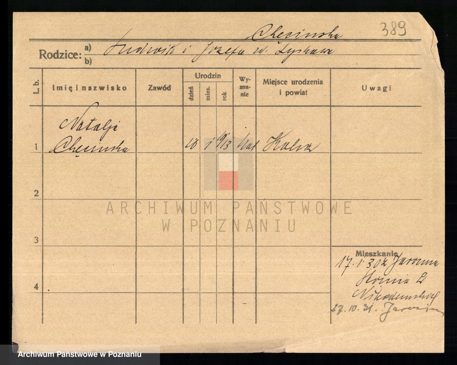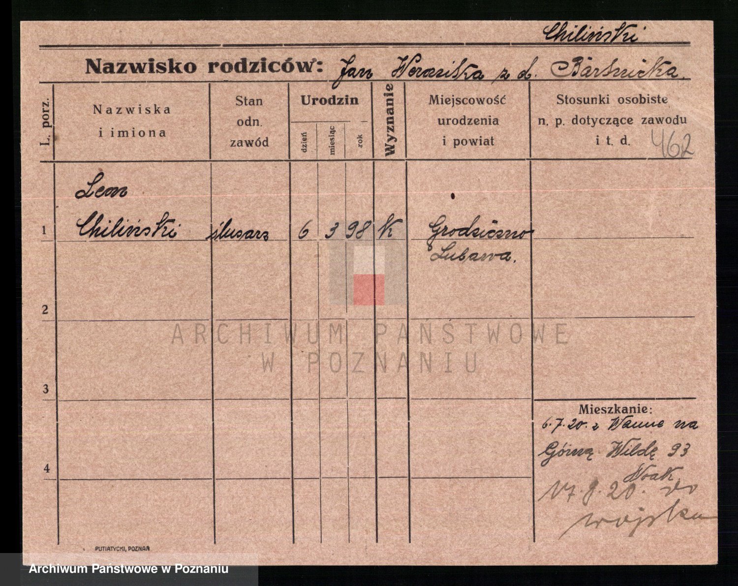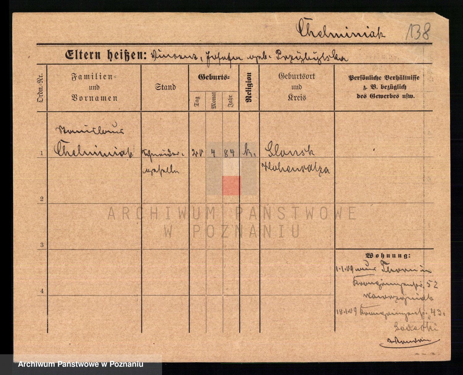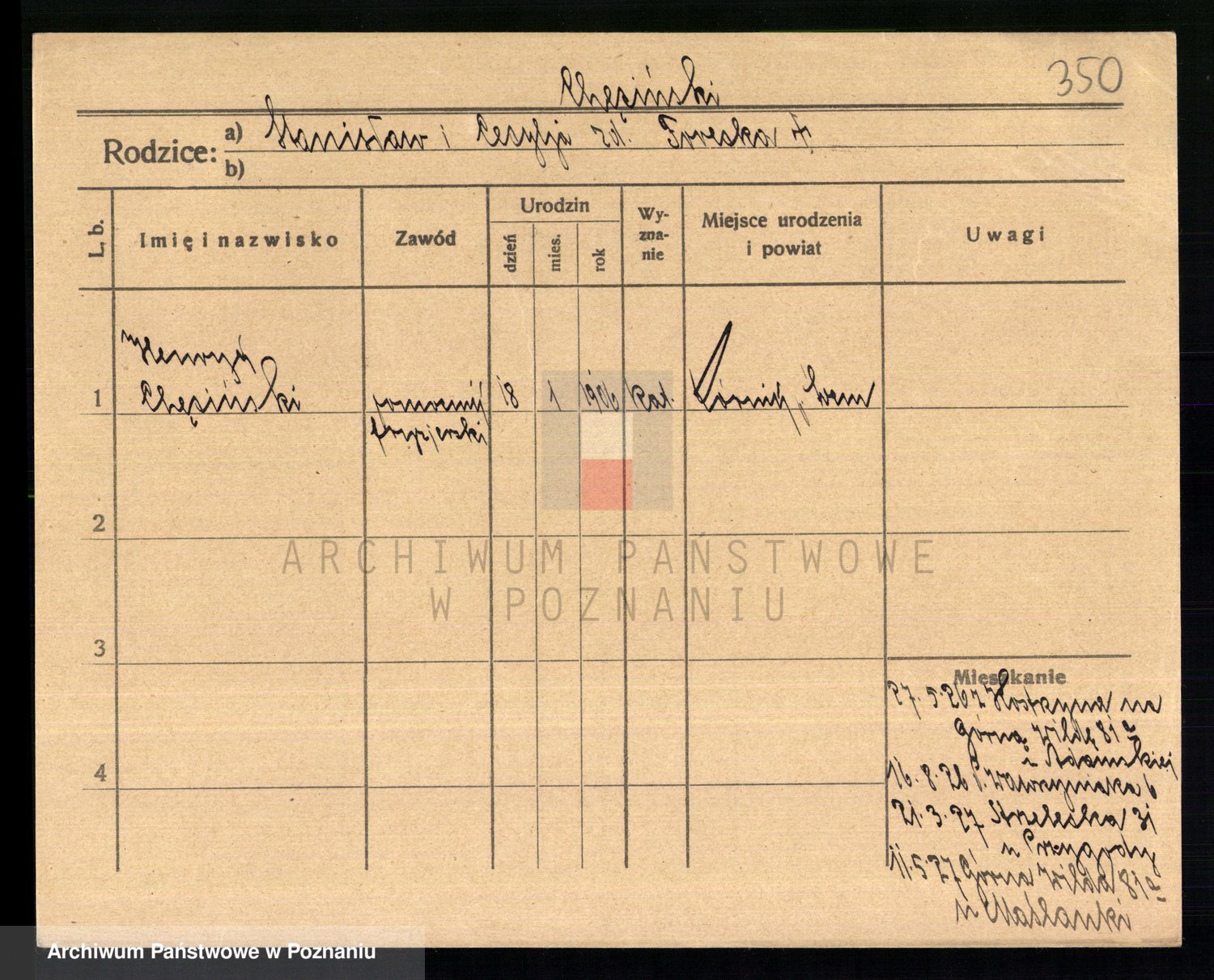 Podgląd karty osobowej dostępny jest po kliknięciu na nazwisko lub ikonkę karty. Można dokonywać powiększenia (ikony na górze) lub przechodzić między kolejnymi skanami (strzałki po bokach).