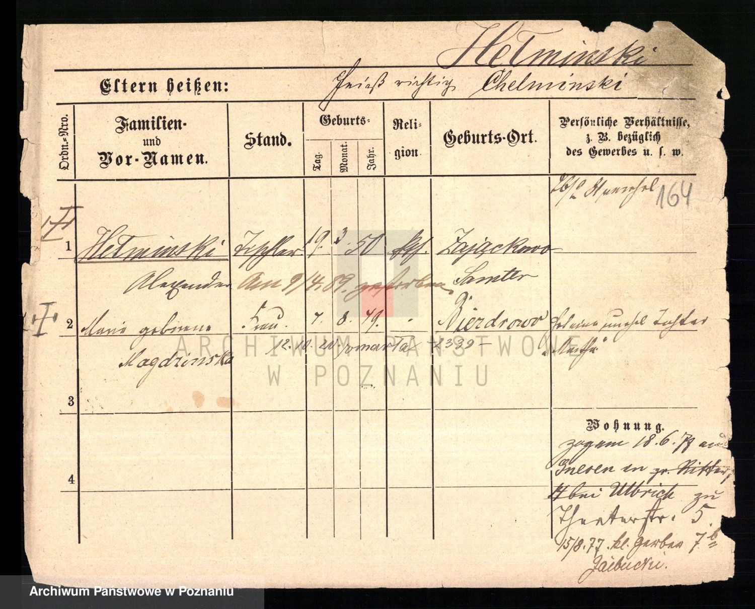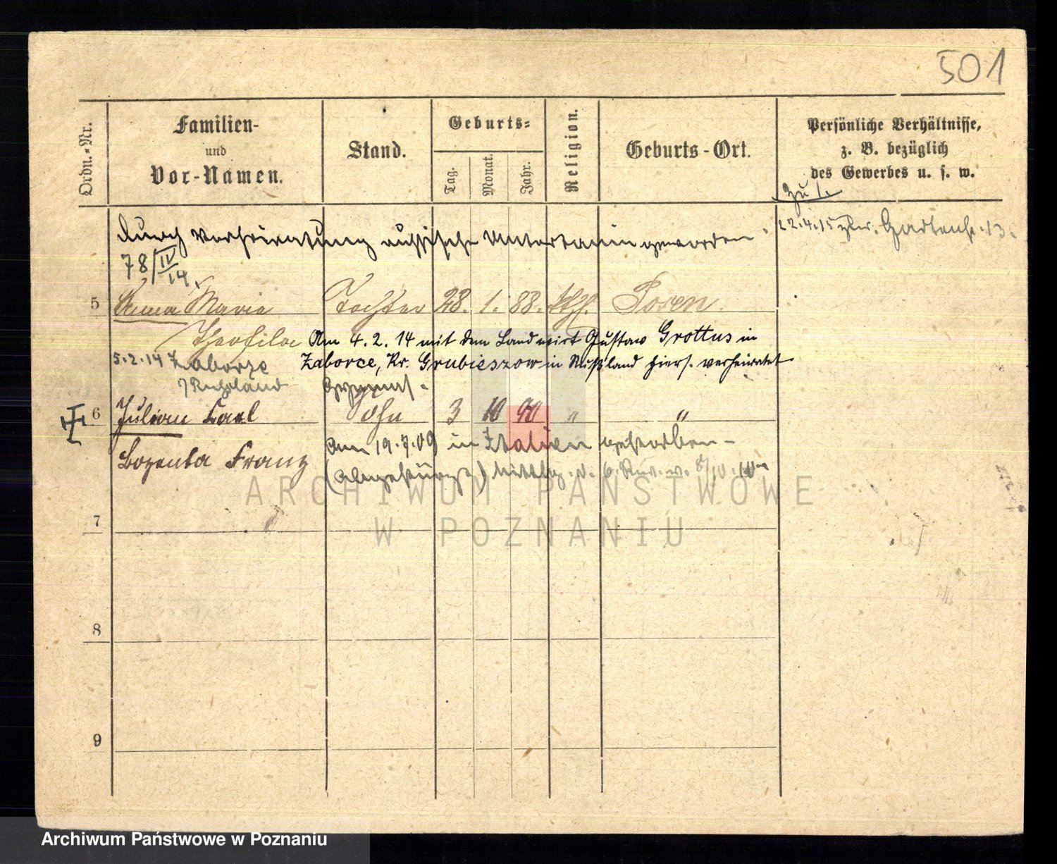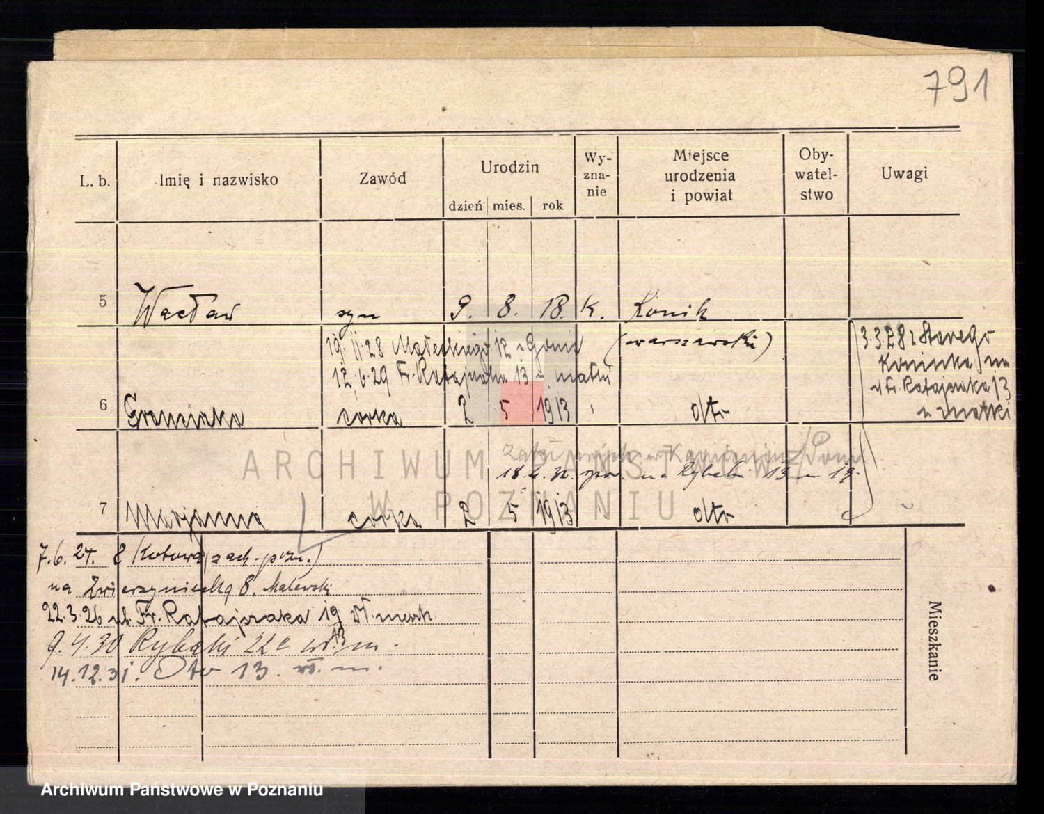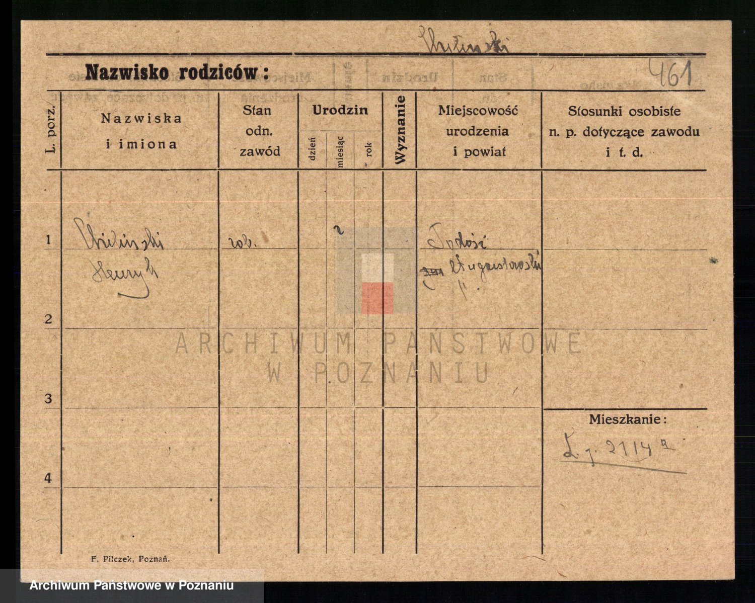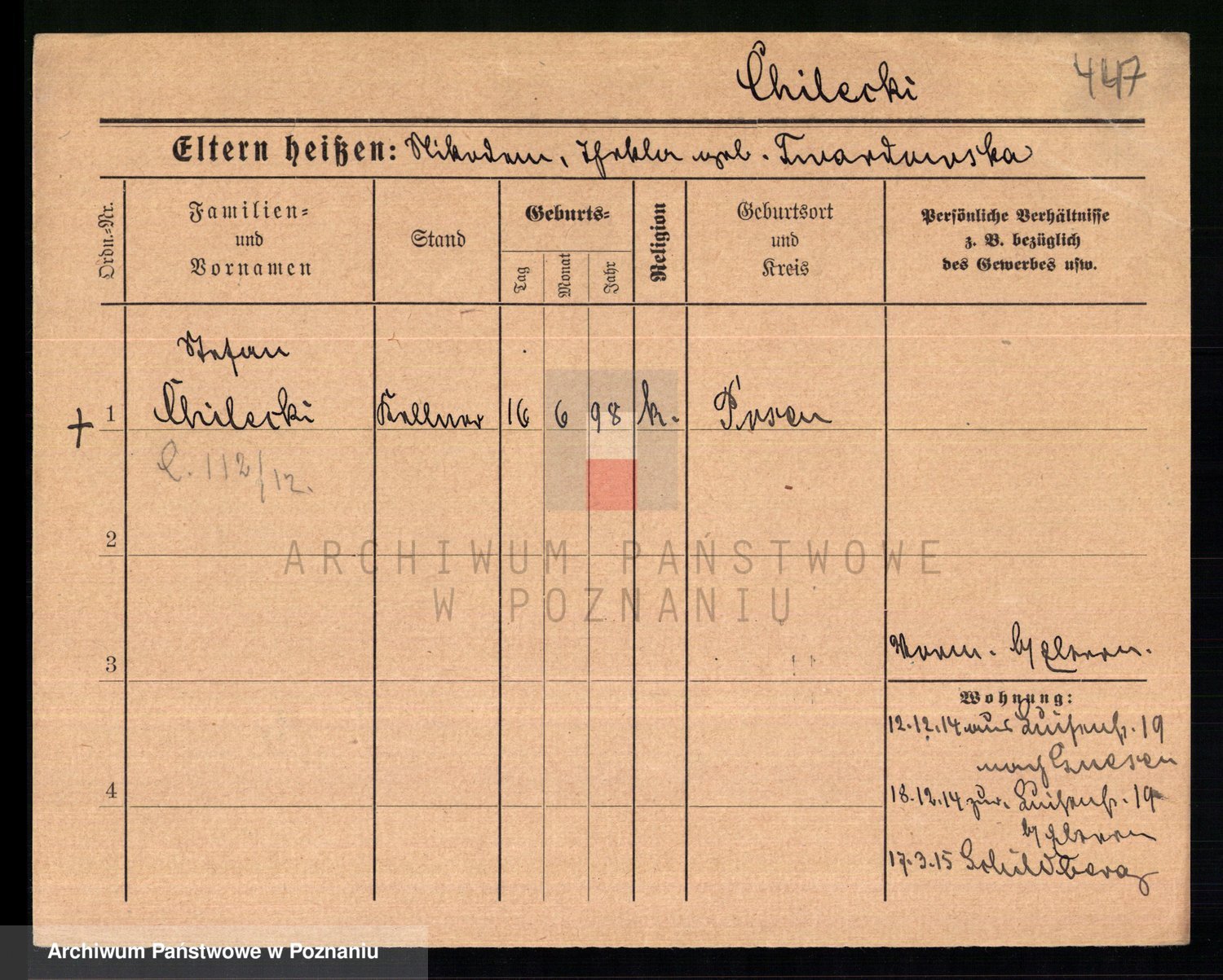 Podgląd karty osobowej dostępny jest po kliknięciu na nazwisko lub ikonkę karty. Można dokonywać powiększenia (ikony na górze) lub przechodzić między kolejnymi skanami (strzałki po bokach).