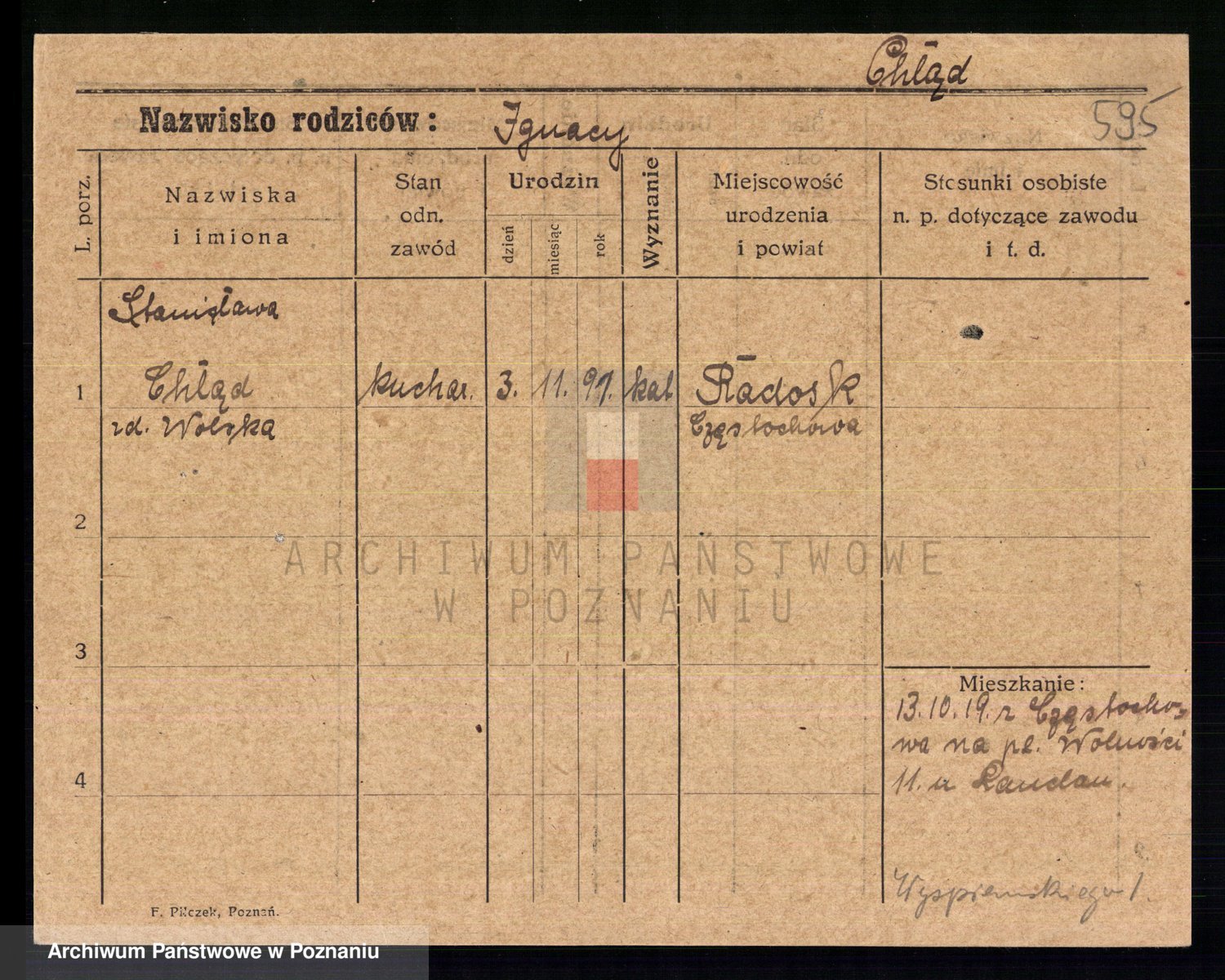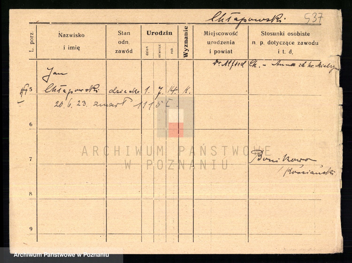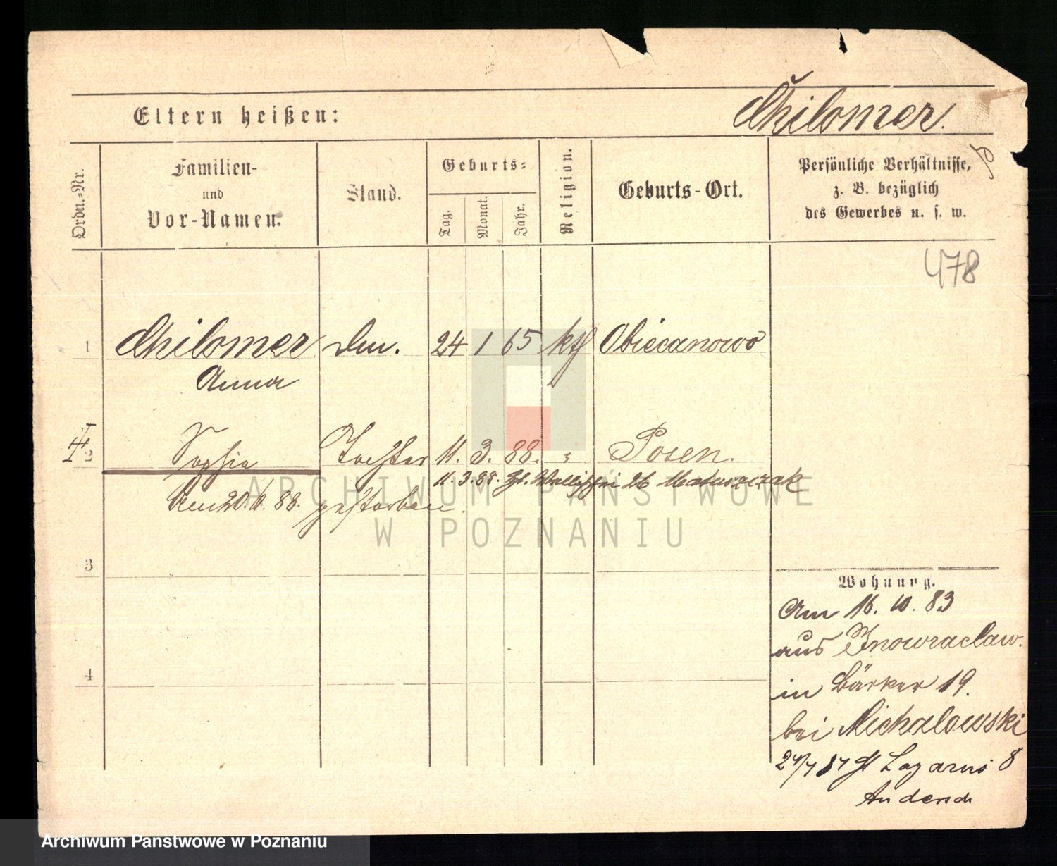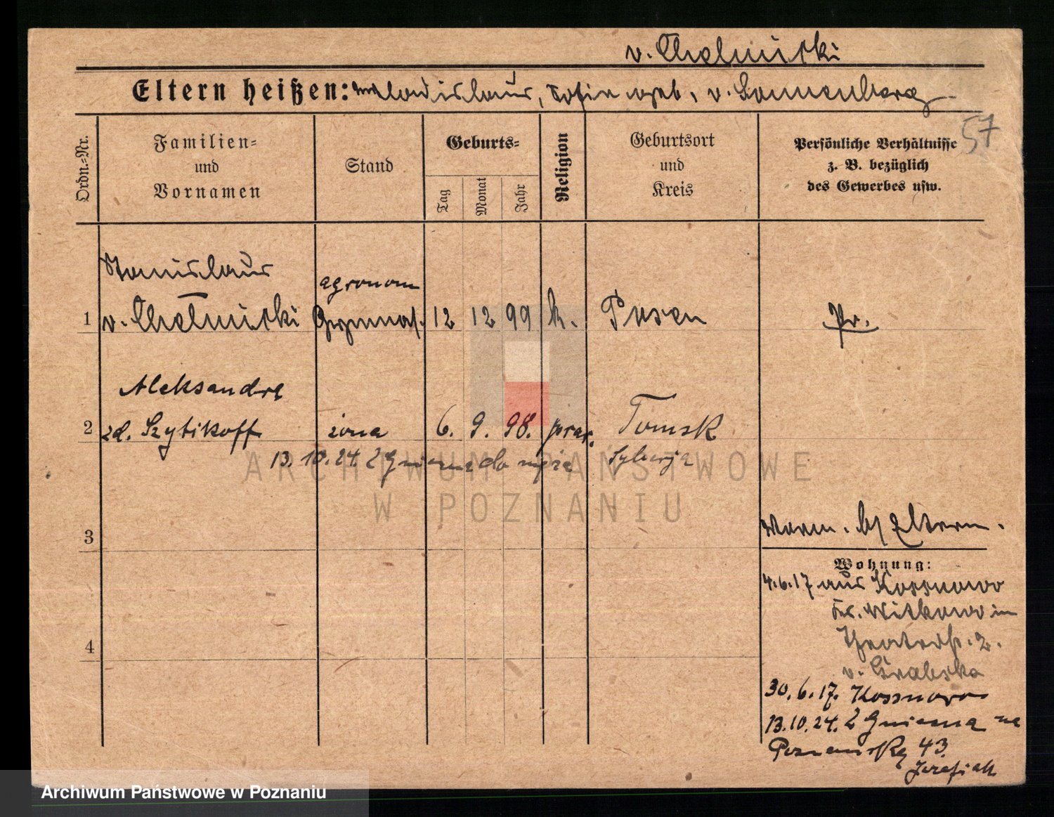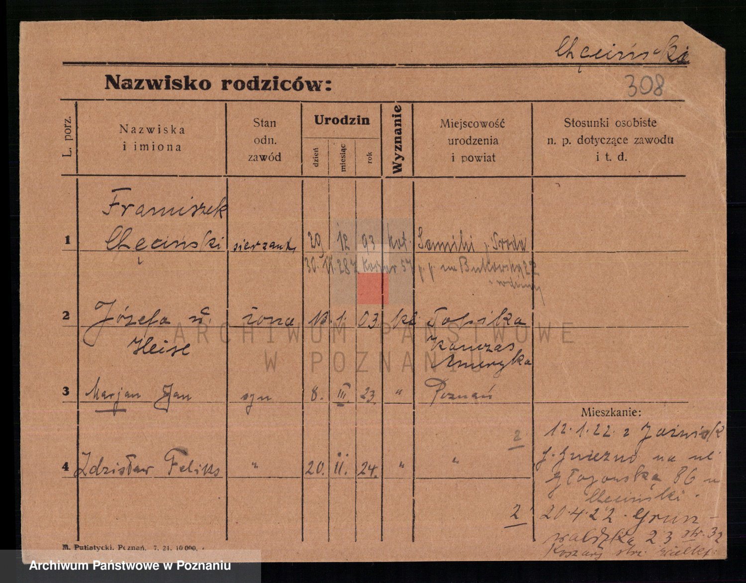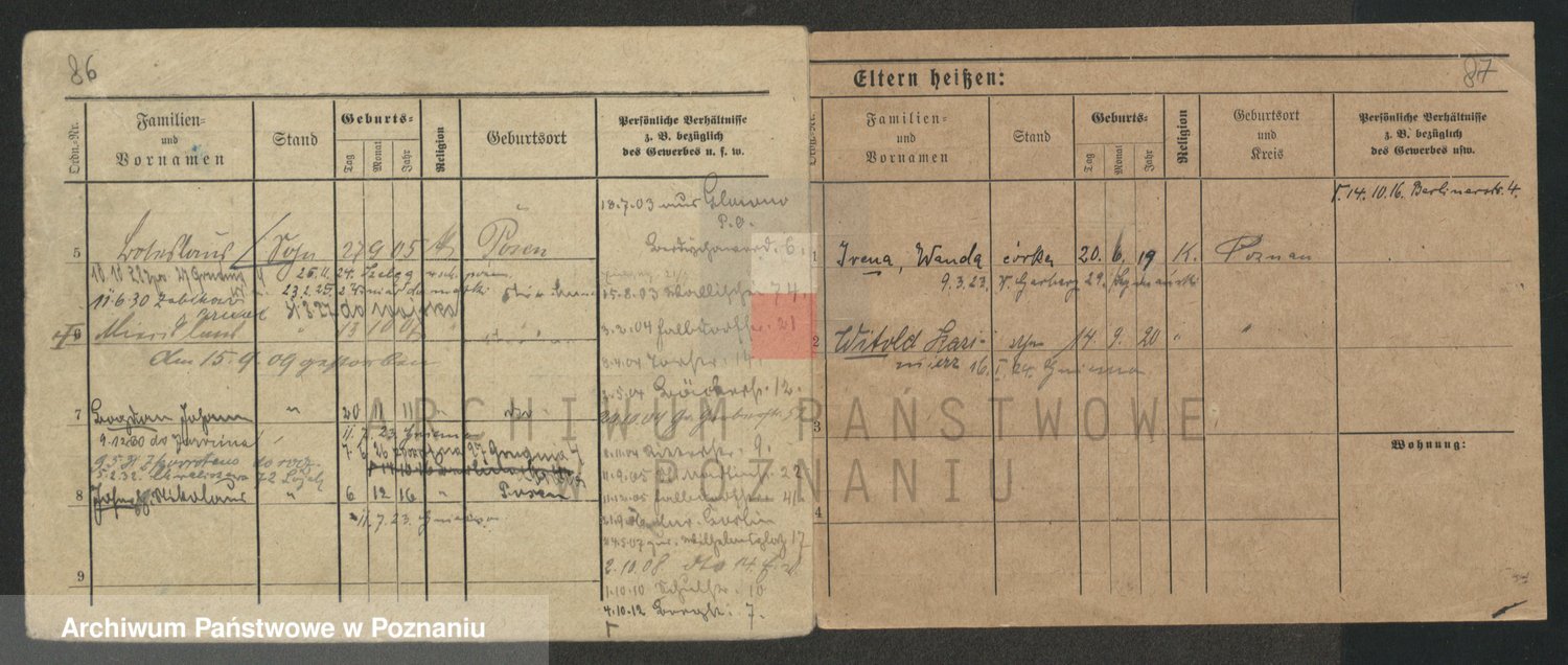 Podgląd karty osobowej dostępny jest po kliknięciu na nazwisko lub ikonkę karty. Można dokonywać powiększenia (ikony na górze) lub przechodzić między kolejnymi skanami (strzałki po bokach).