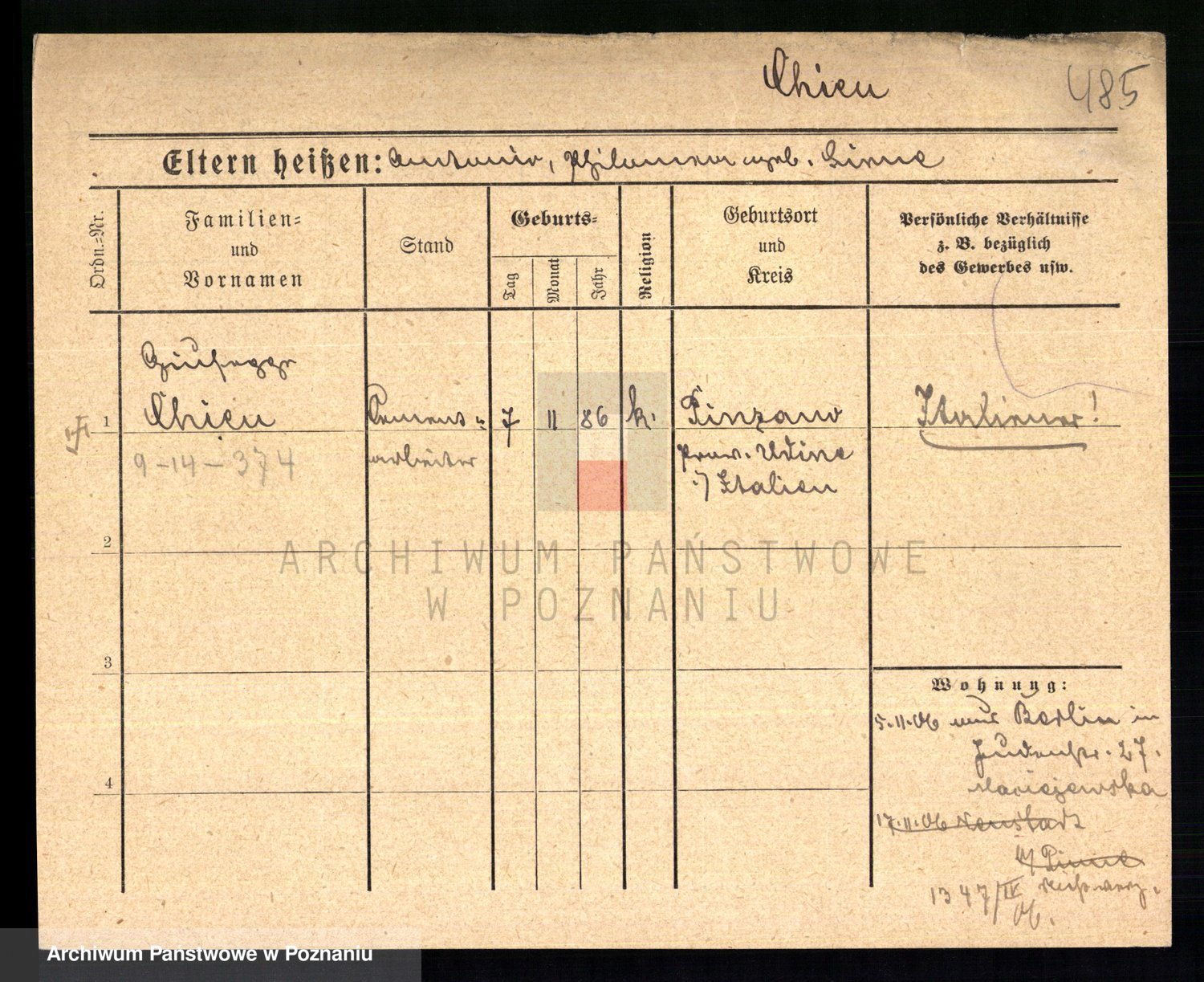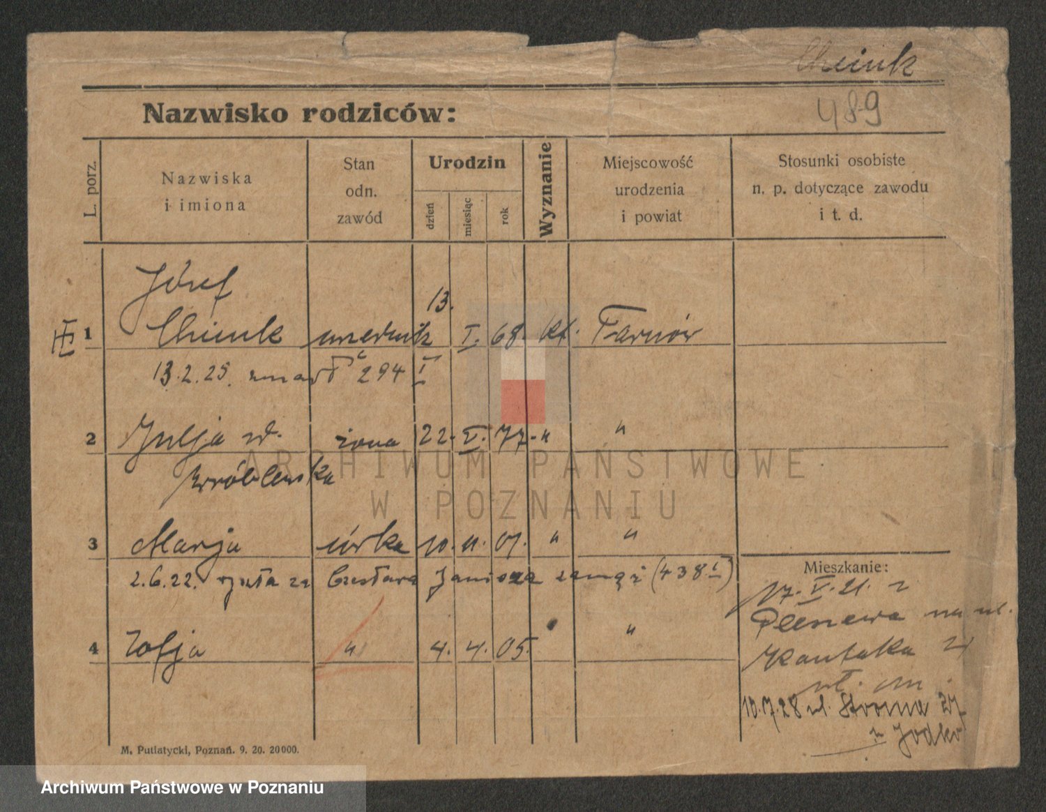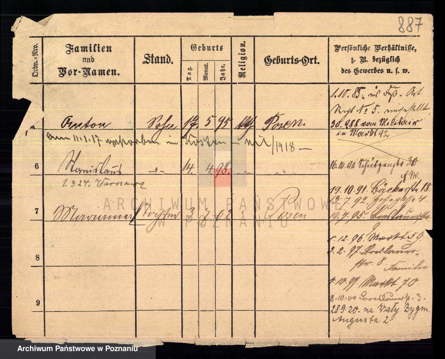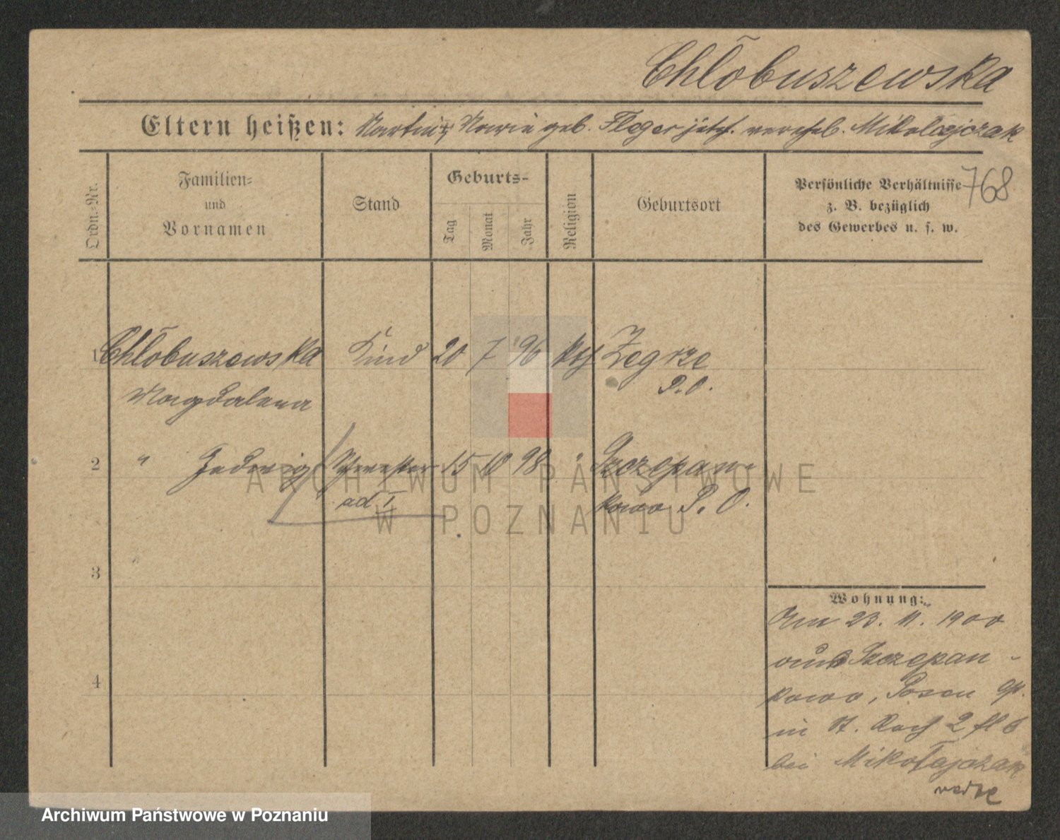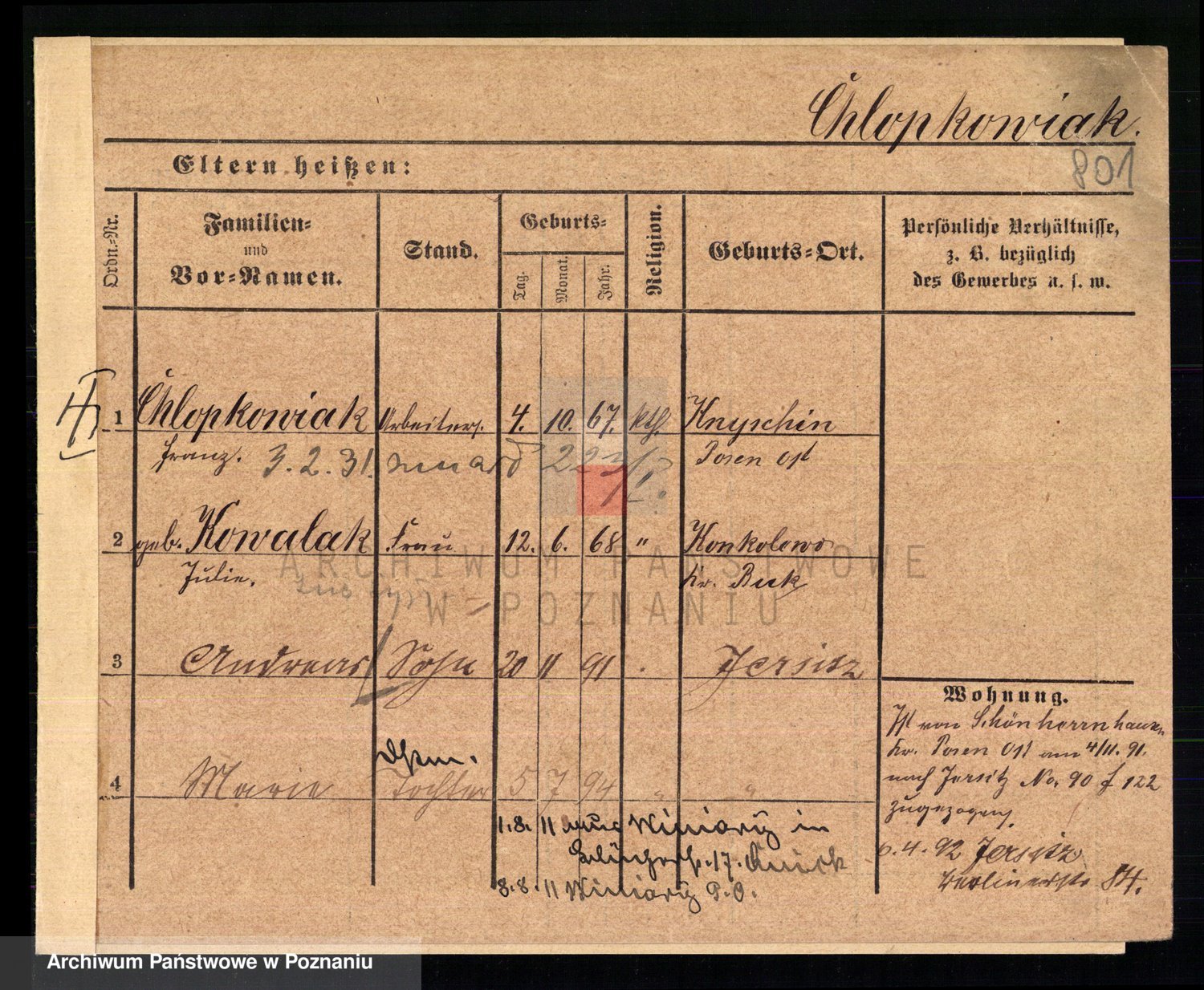 Podgląd karty osobowej dostępny jest po kliknięciu na nazwisko lub ikonkę karty. Można dokonywać powiększenia (ikony na górze) lub przechodzić między kolejnymi skanami (strzałki po bokach).
