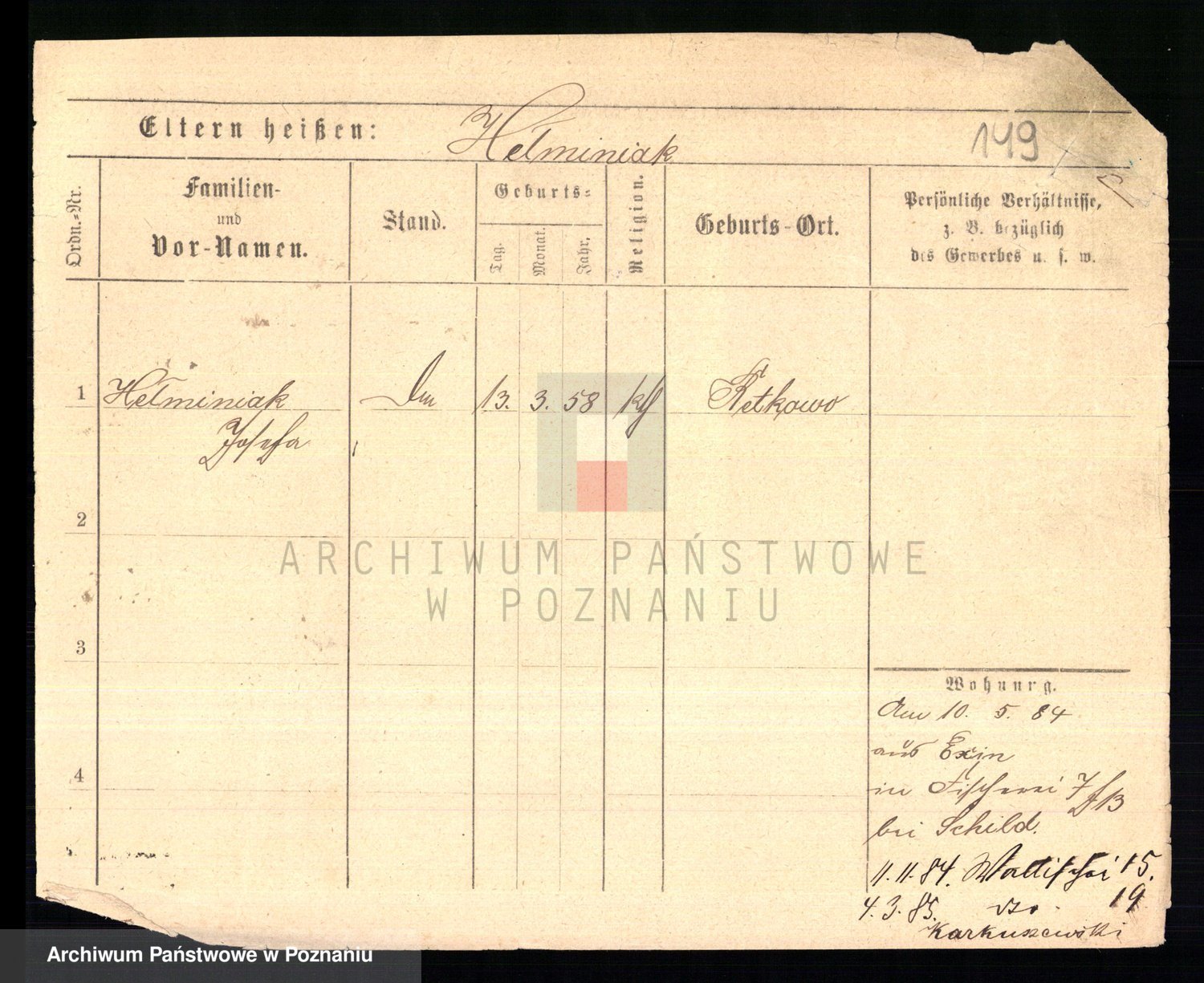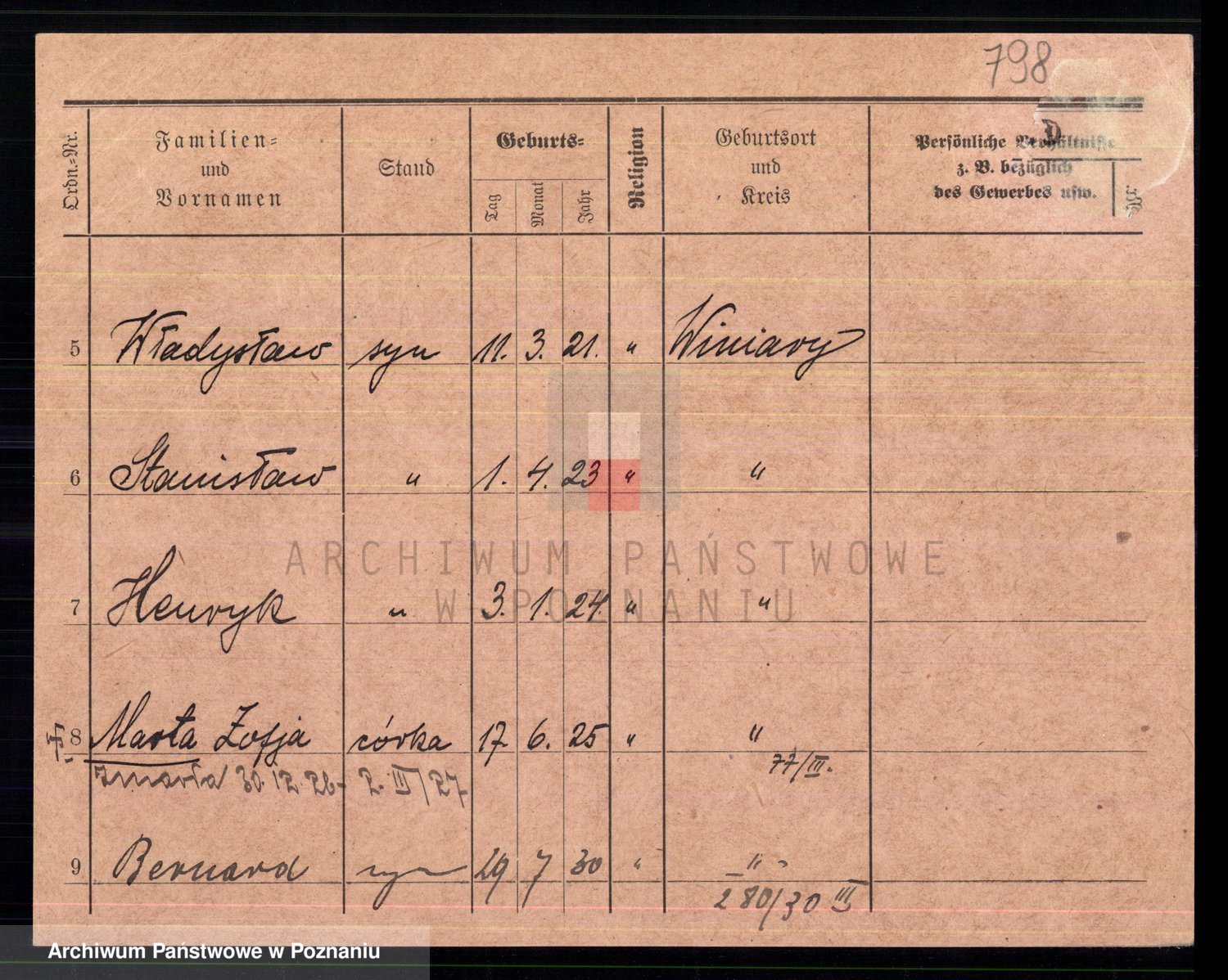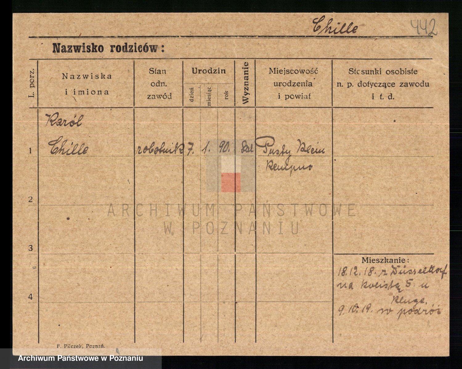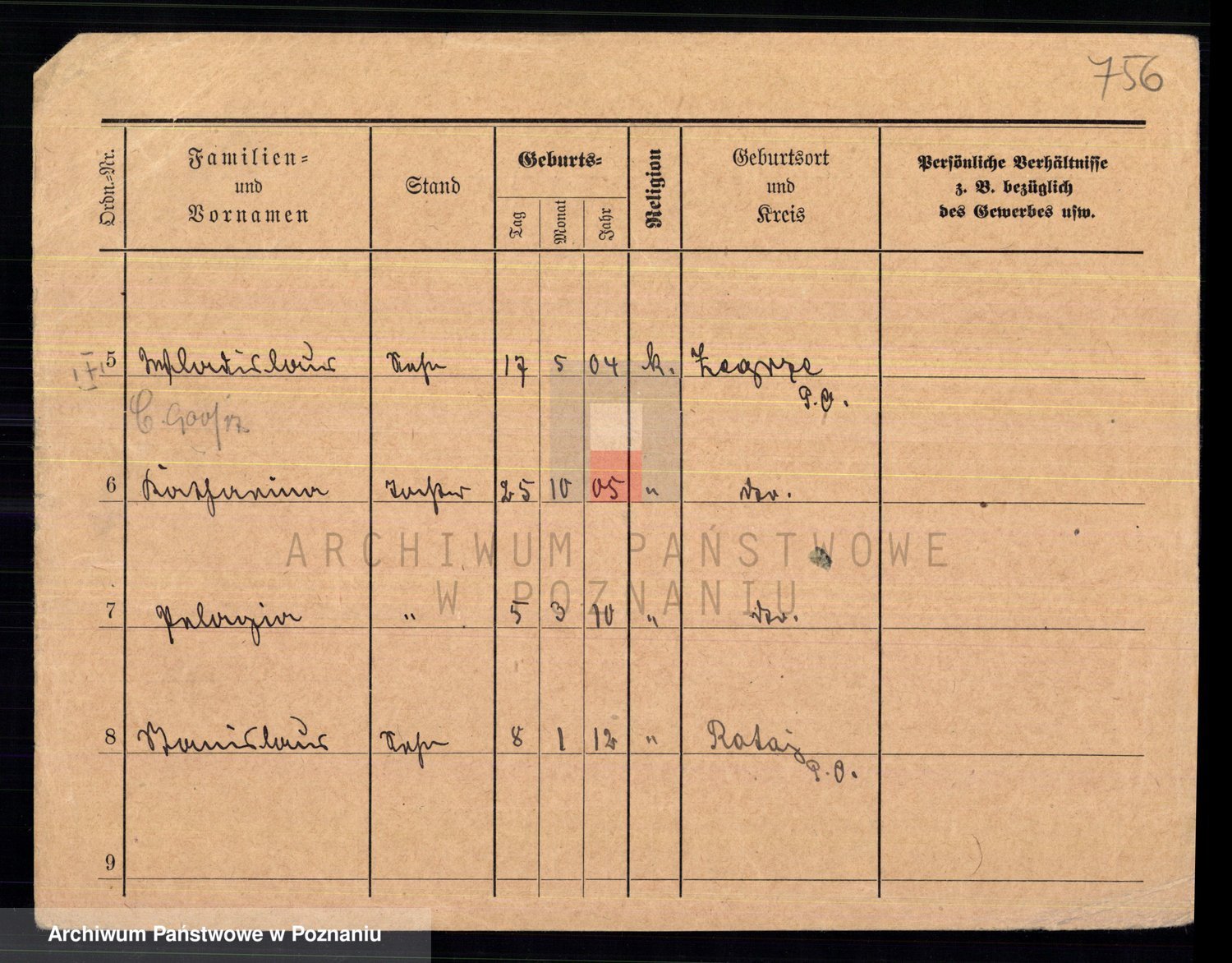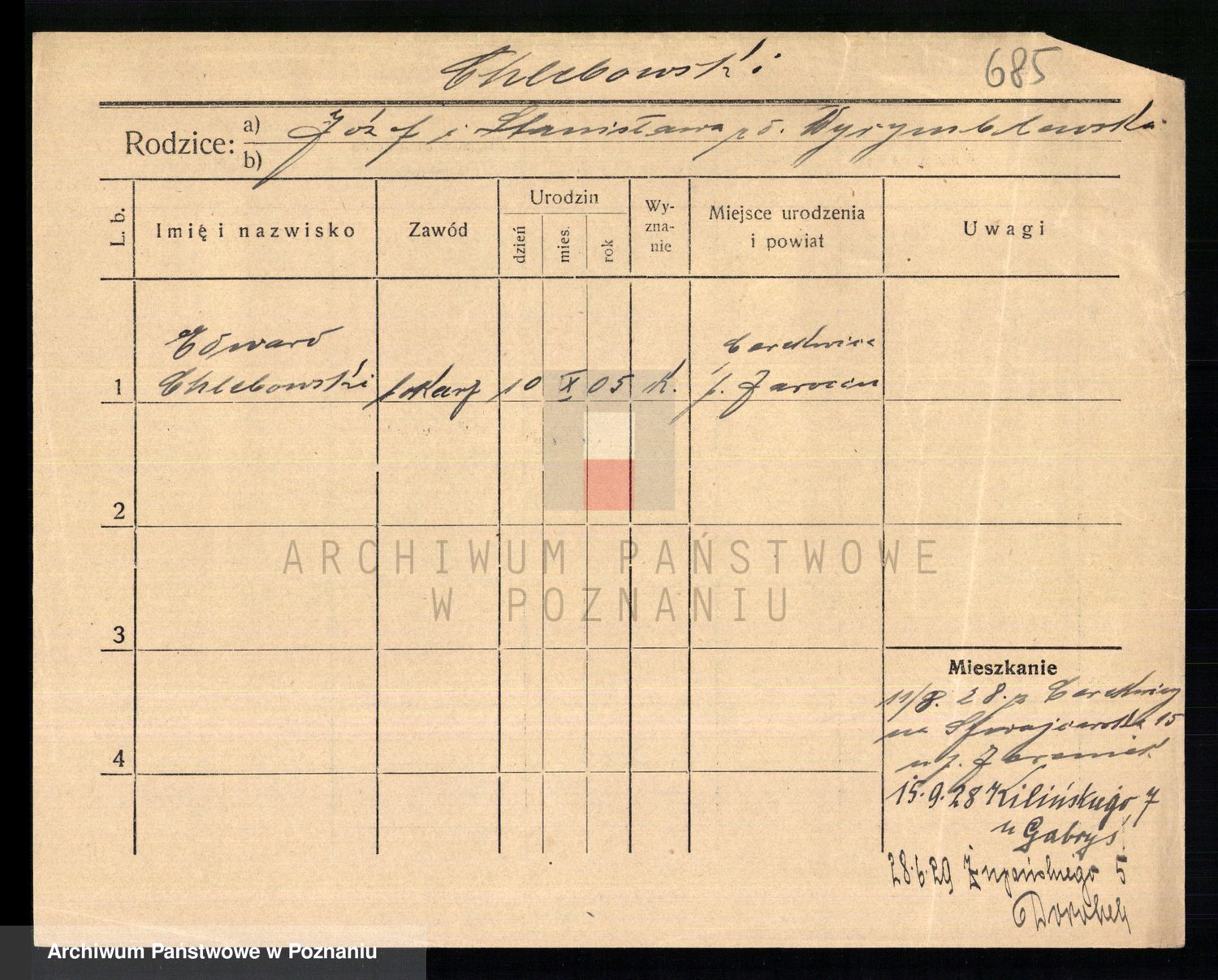 Podgląd karty osobowej dostępny jest po kliknięciu na nazwisko lub ikonkę karty. Można dokonywać powiększenia (ikony na górze) lub przechodzić między kolejnymi skanami (strzałki po bokach).