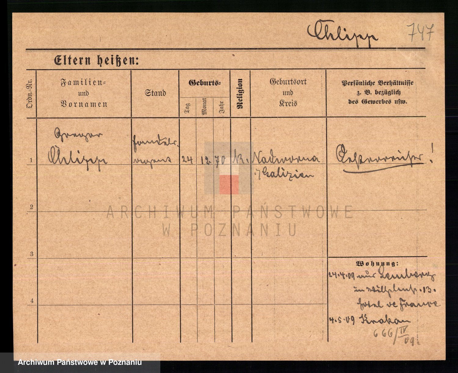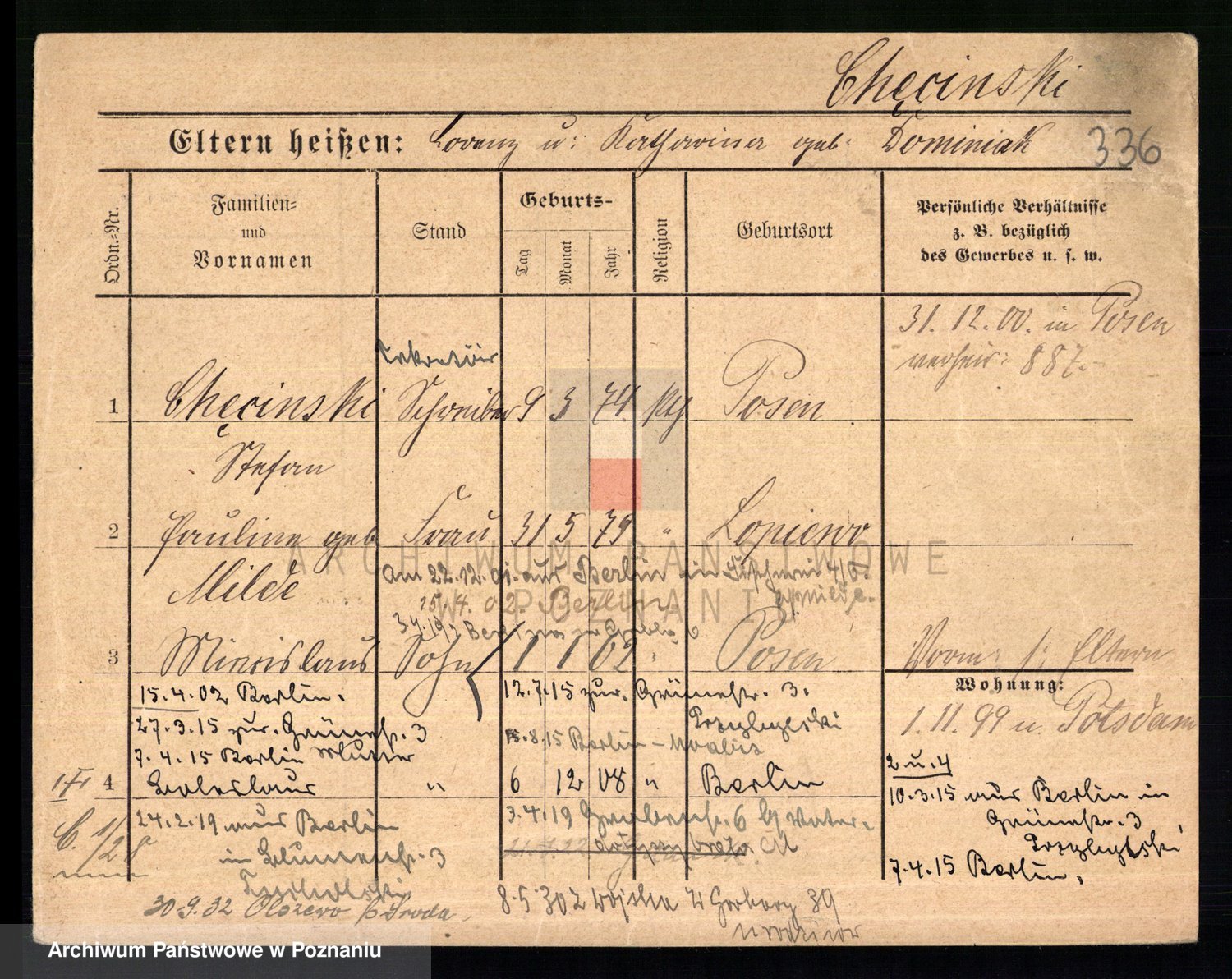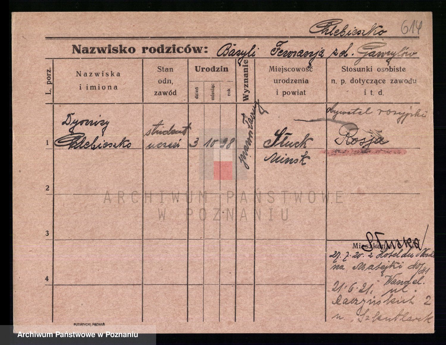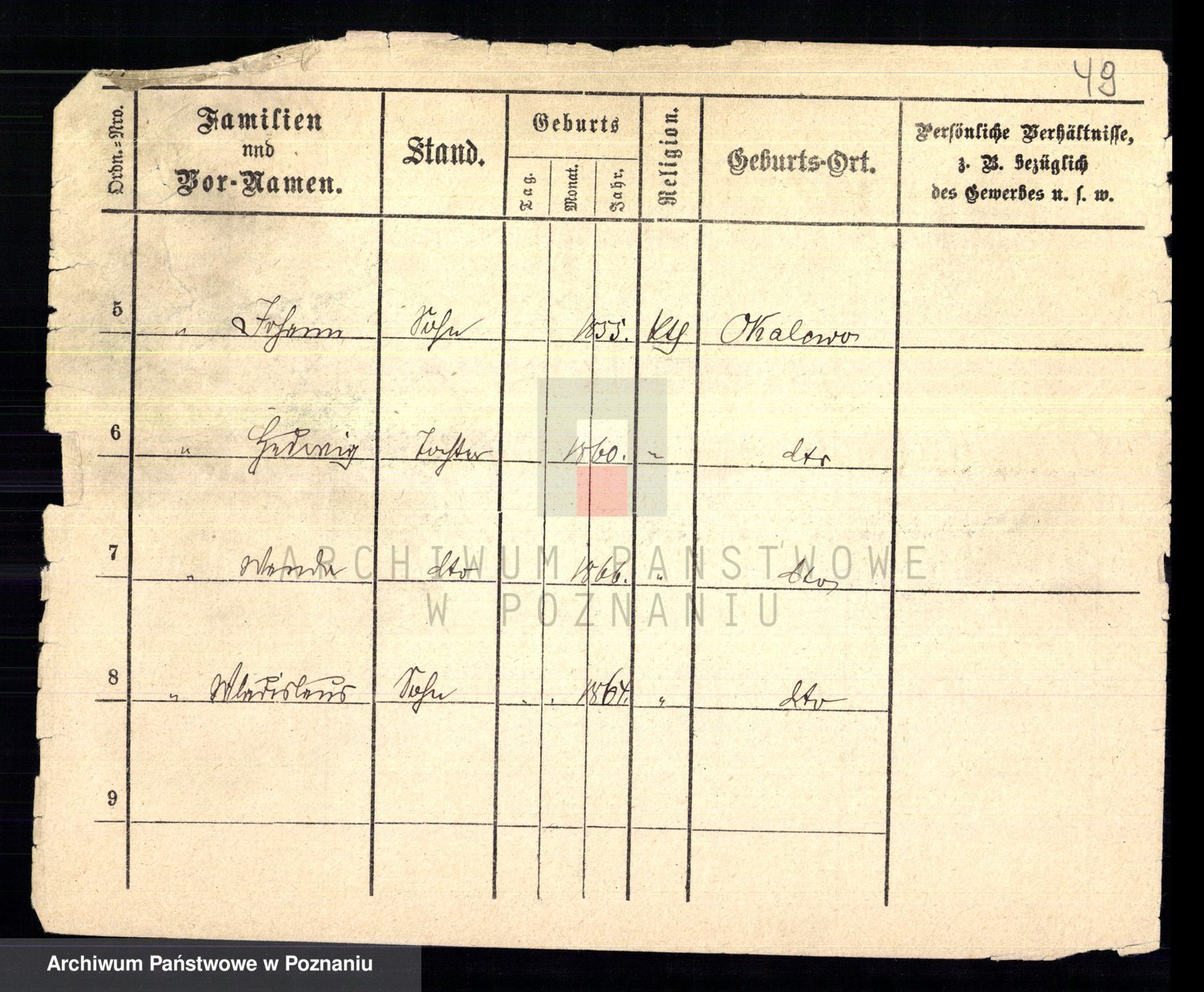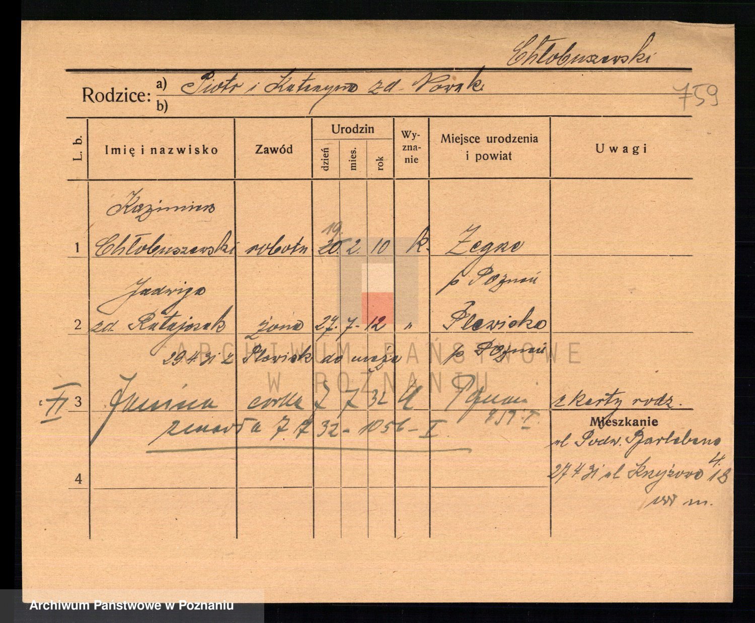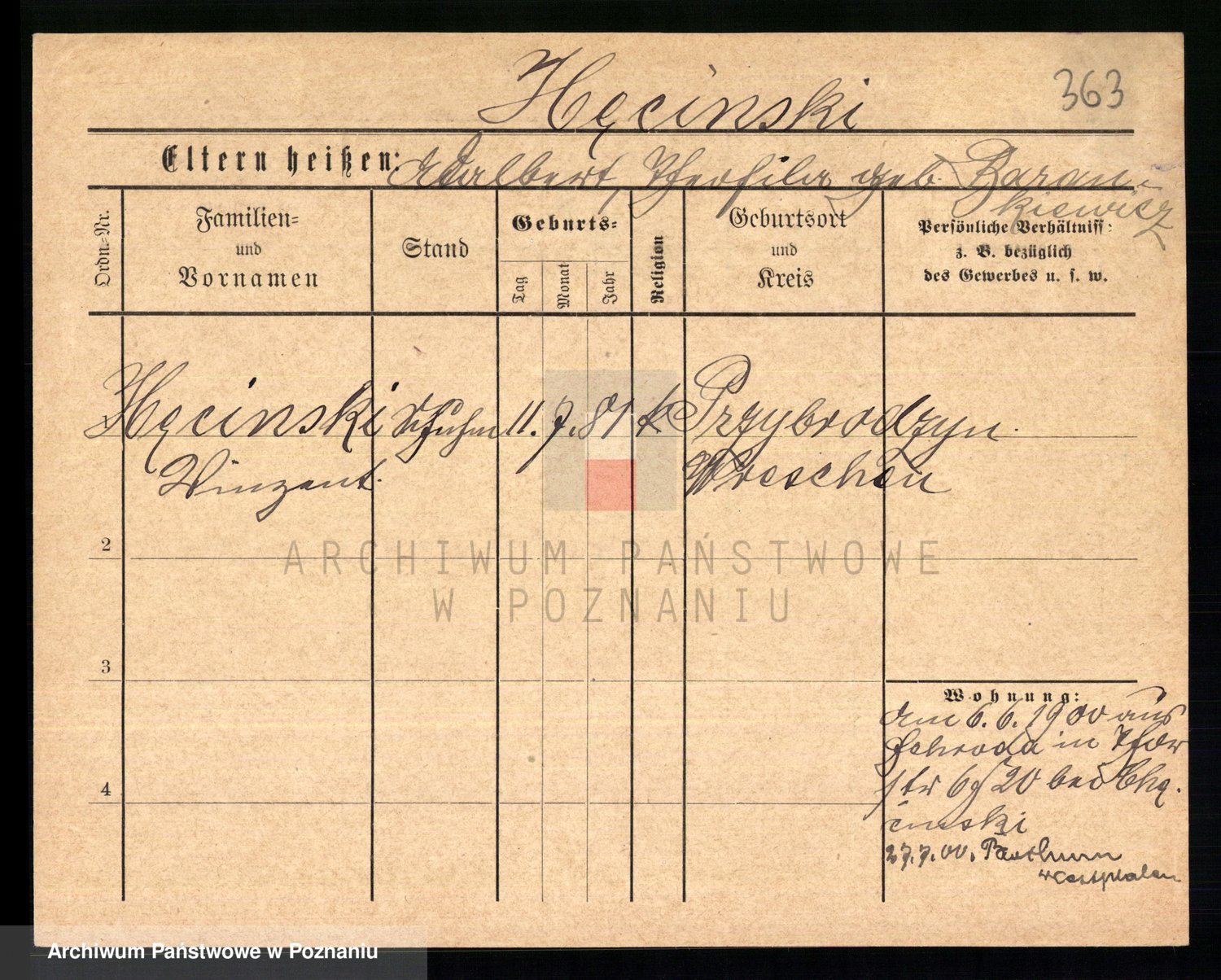 Podgląd karty osobowej dostępny jest po kliknięciu na nazwisko lub ikonkę karty. Można dokonywać powiększenia (ikony na górze) lub przechodzić między kolejnymi skanami (strzałki po bokach).