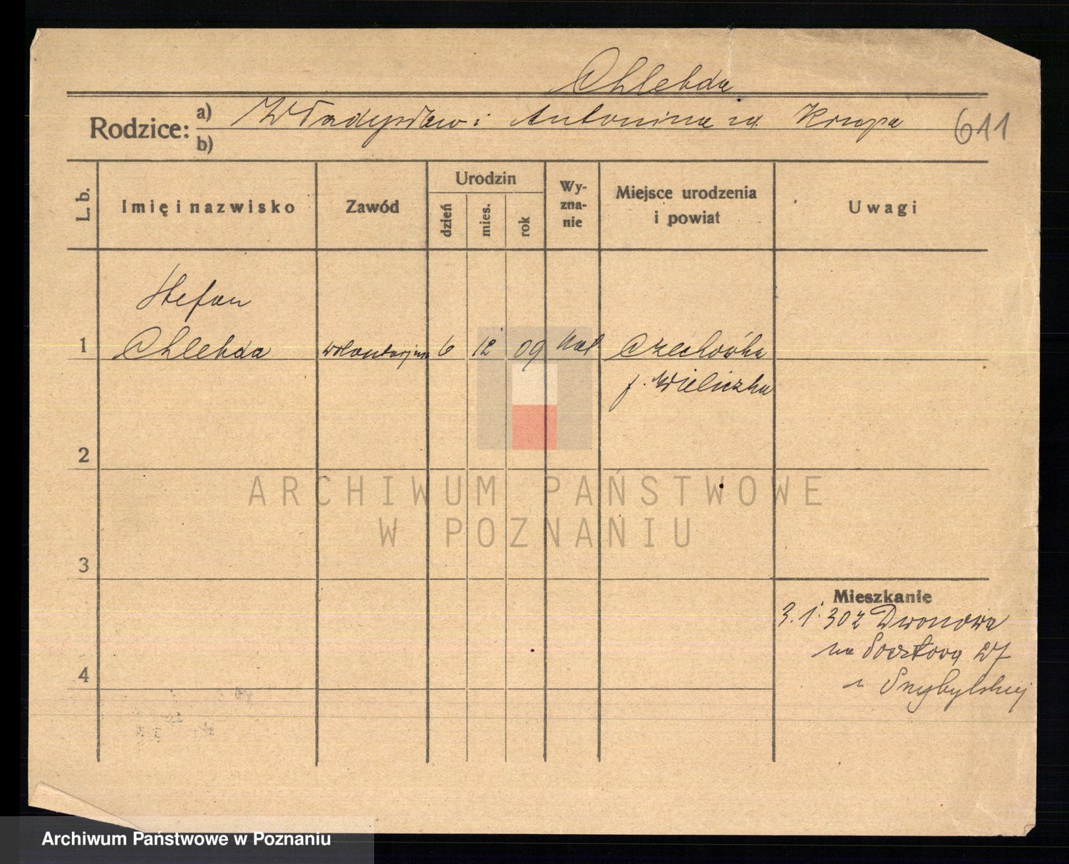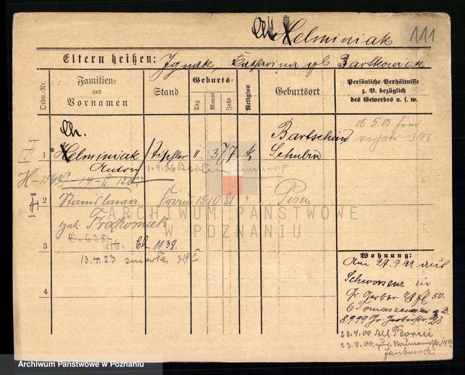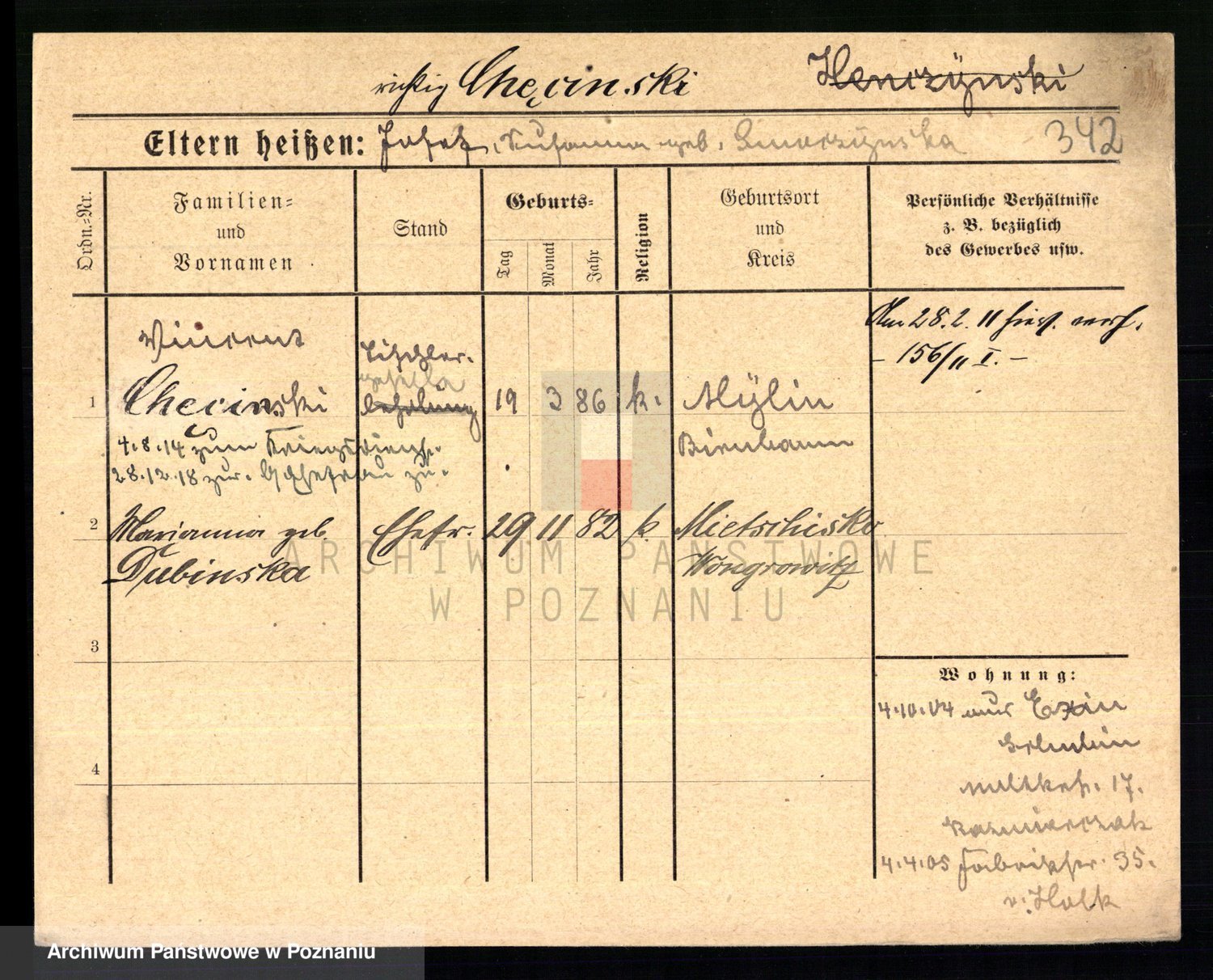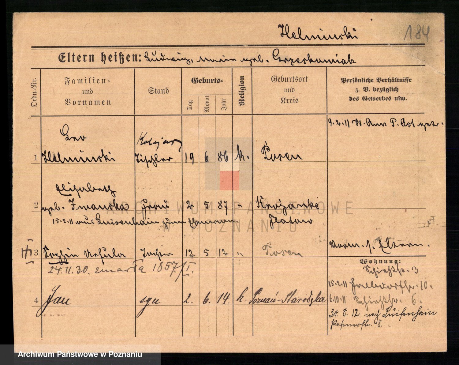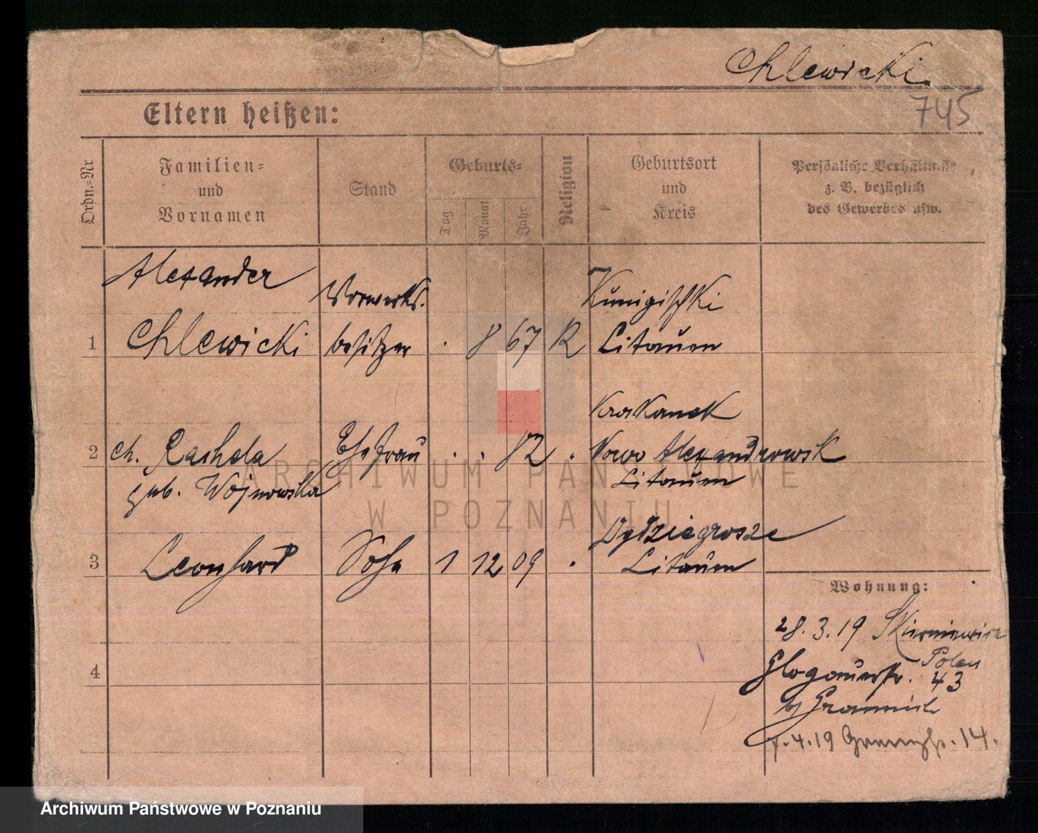 Podgląd karty osobowej dostępny jest po kliknięciu na nazwisko lub ikonkę karty. Można dokonywać powiększenia (ikony na górze) lub przechodzić między kolejnymi skanami (strzałki po bokach).