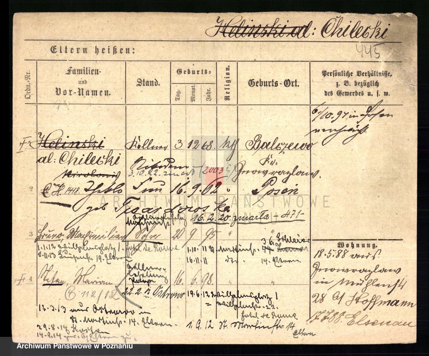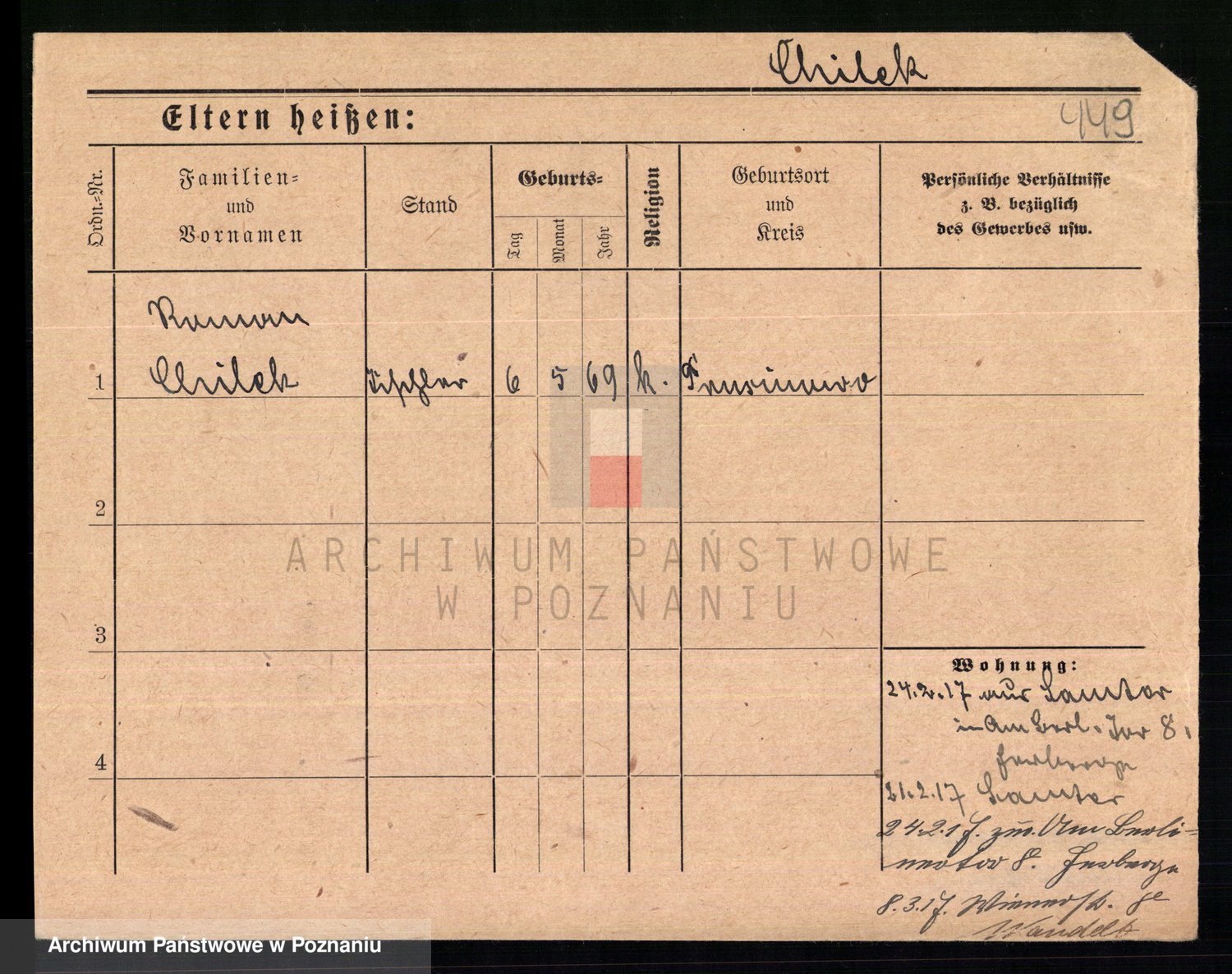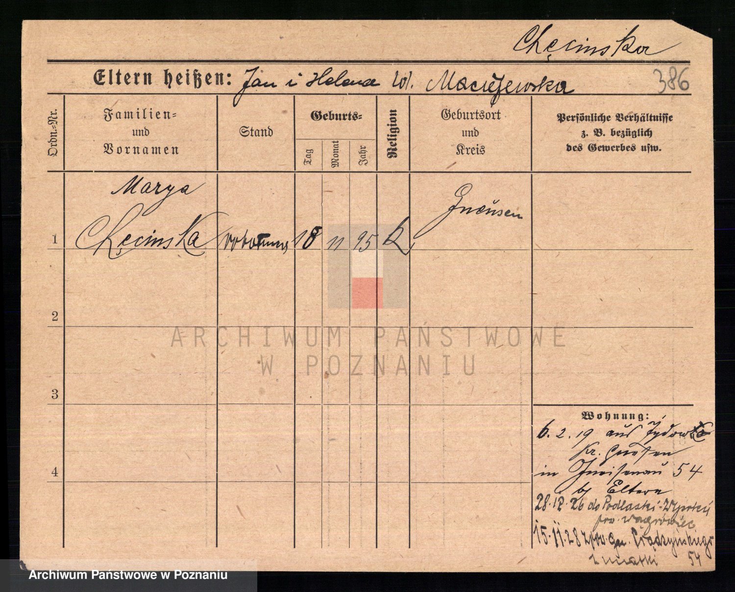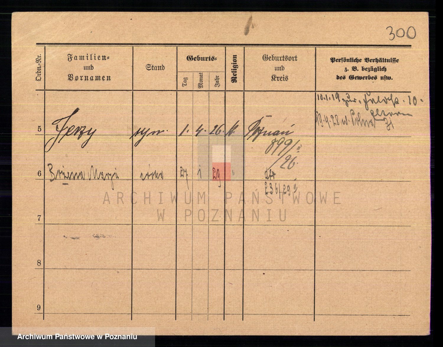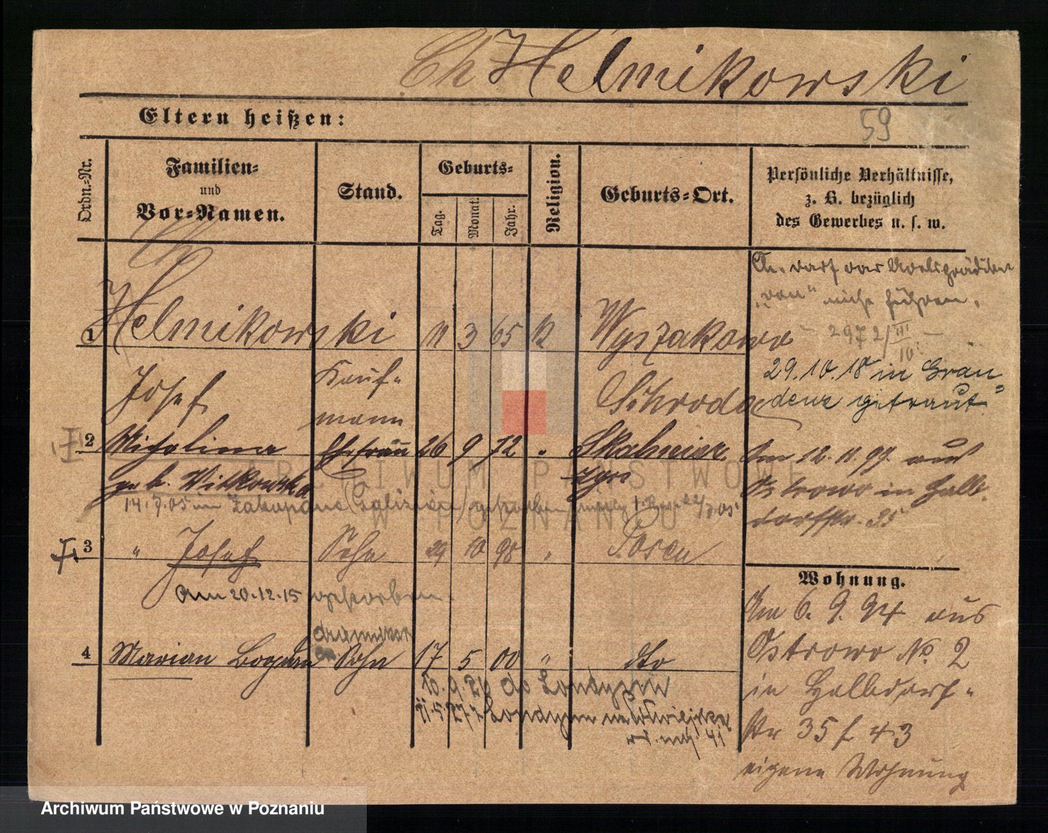 Podgląd karty osobowej dostępny jest po kliknięciu na nazwisko lub ikonkę karty. Można dokonywać powiększenia (ikony na górze) lub przechodzić między kolejnymi skanami (strzałki po bokach).