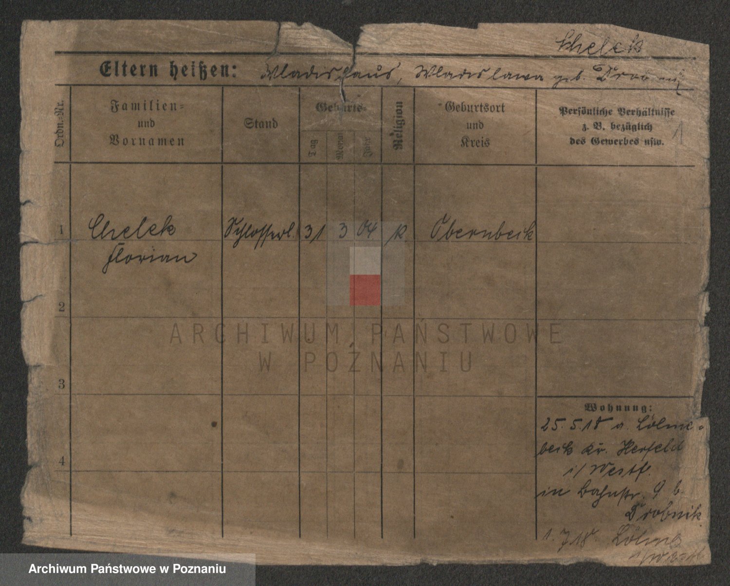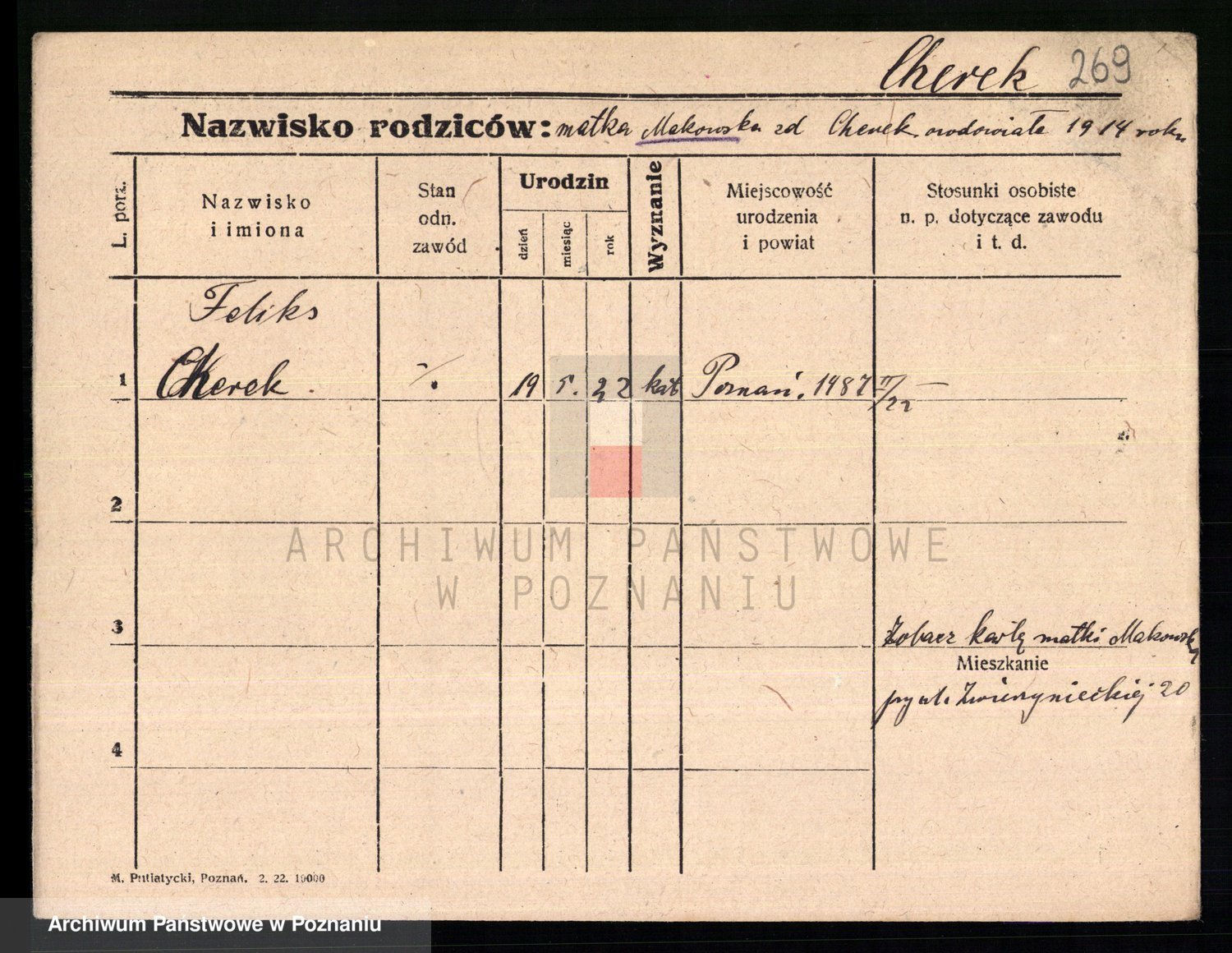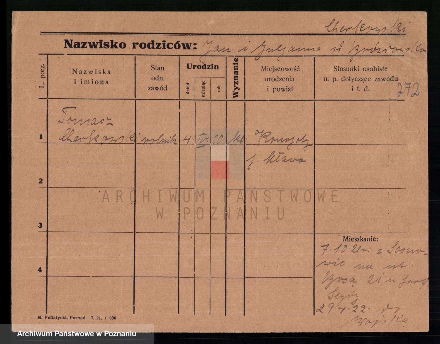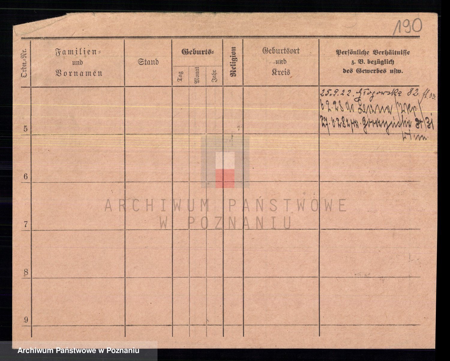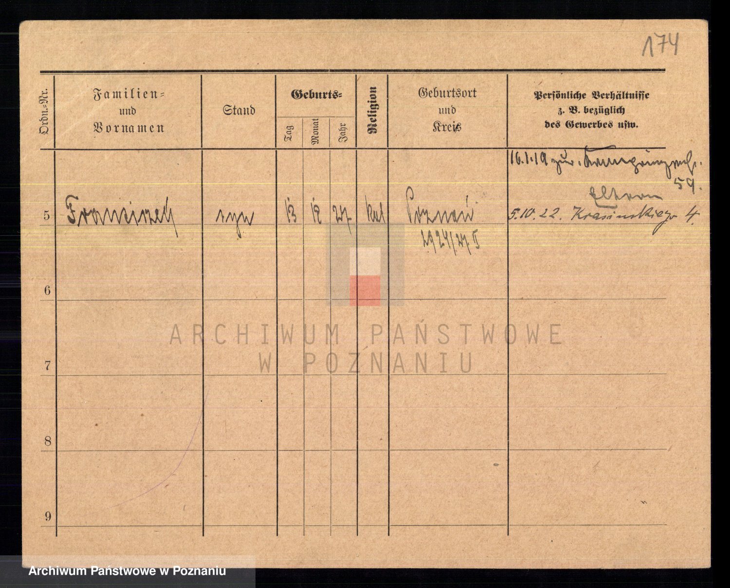 Podgląd karty osobowej dostępny jest po kliknięciu na nazwisko lub ikonkę karty. Można dokonywać powiększenia (ikony na górze) lub przechodzić między kolejnymi skanami (strzałki po bokach).