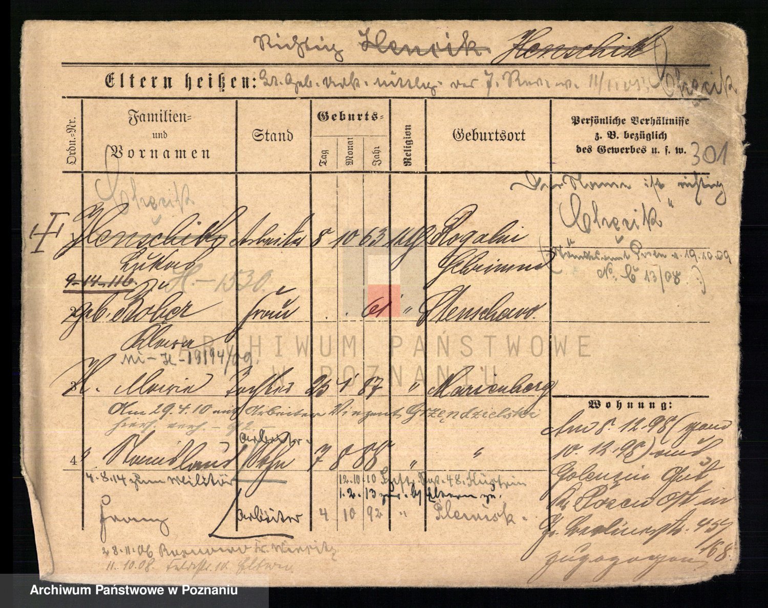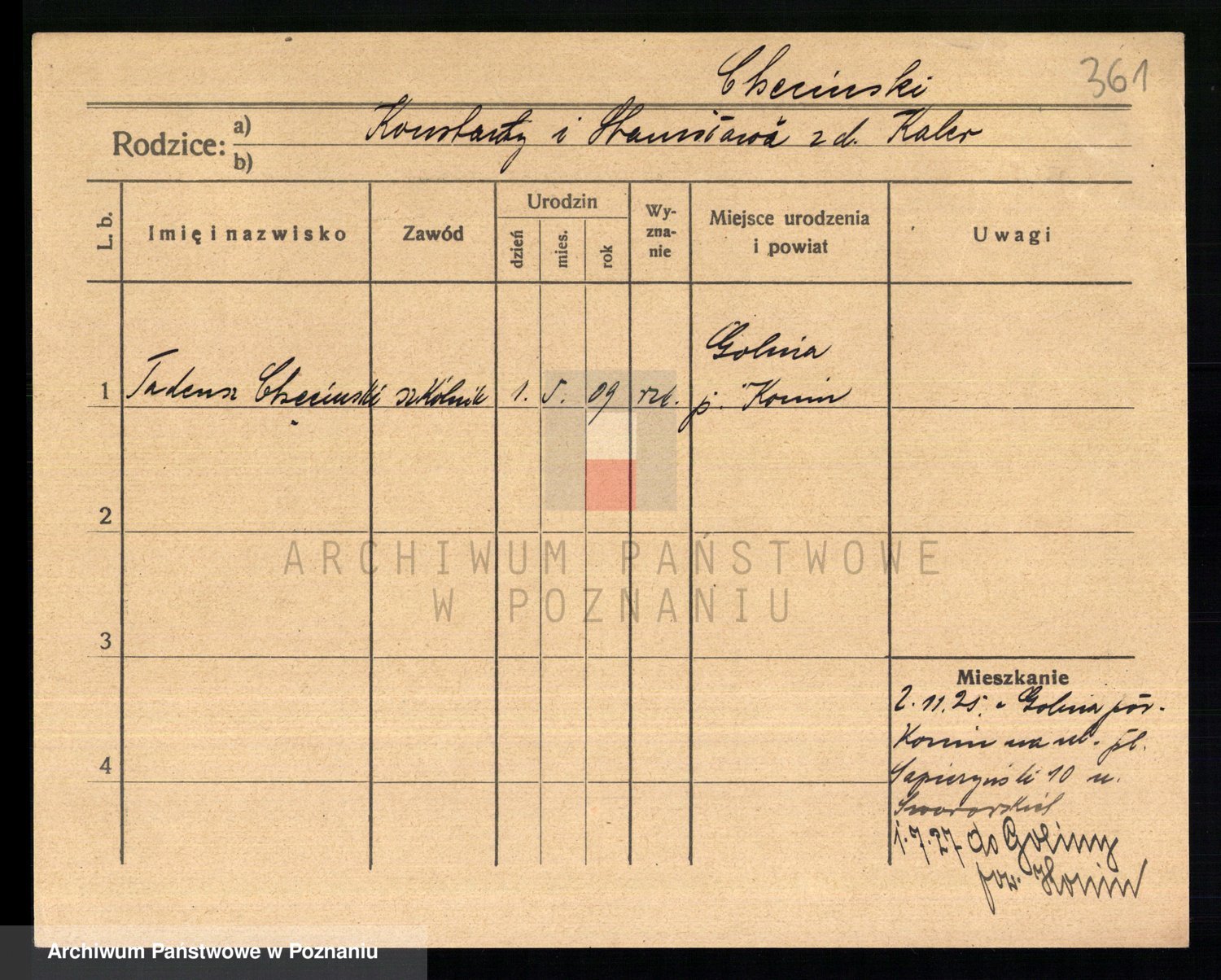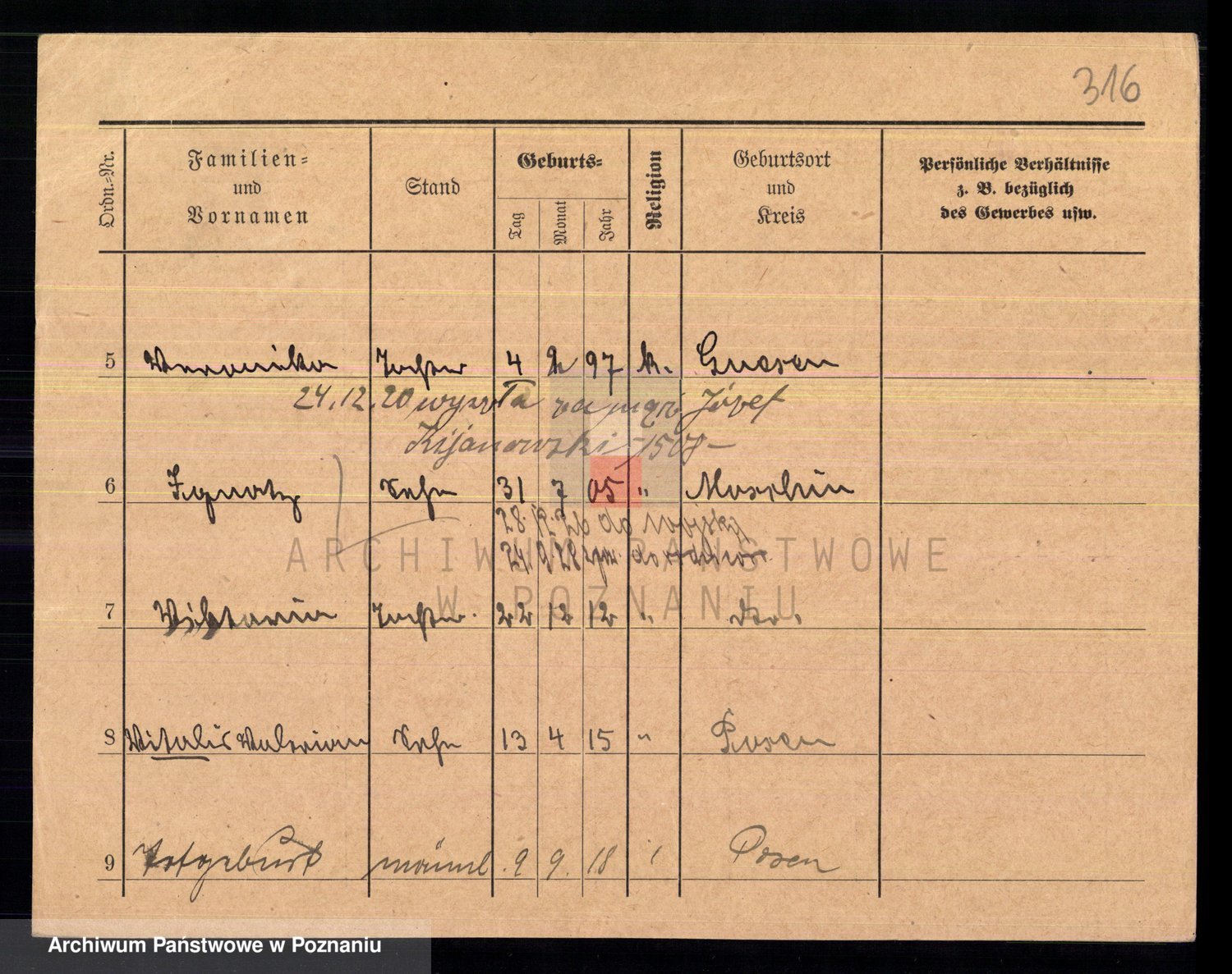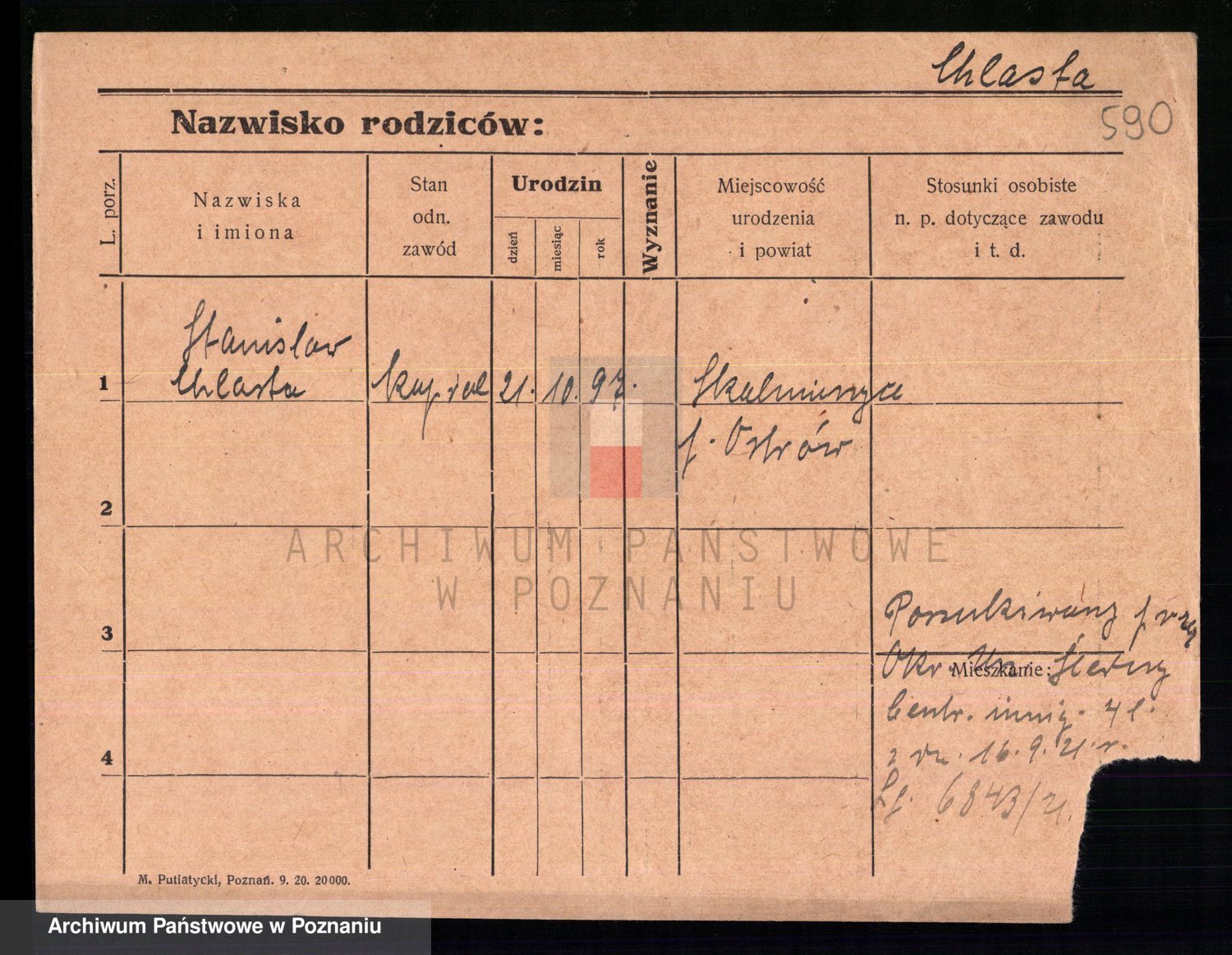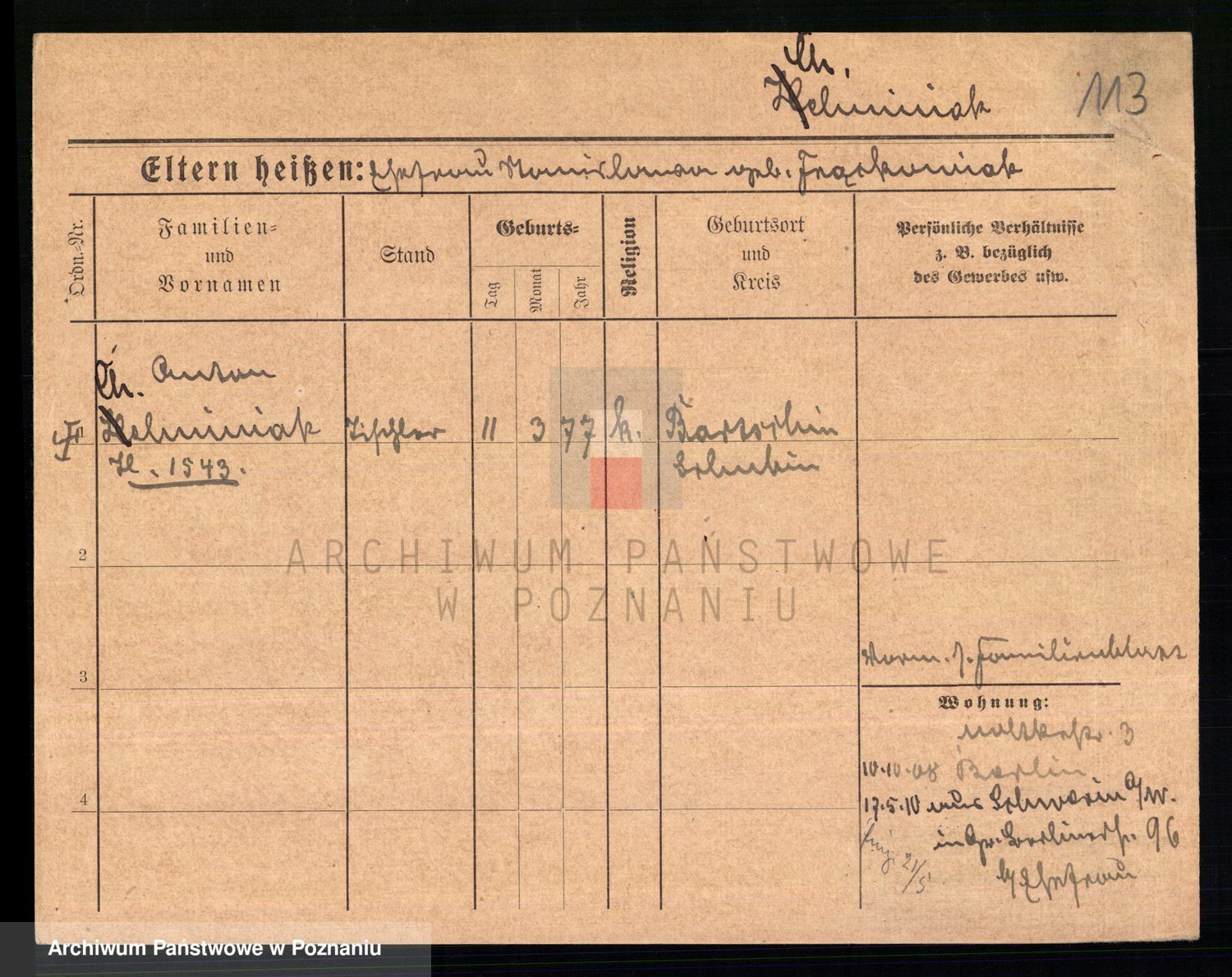 Podgląd karty osobowej dostępny jest po kliknięciu na nazwisko lub ikonkę karty. Można dokonywać powiększenia (ikony na górze) lub przechodzić między kolejnymi skanami (strzałki po bokach).