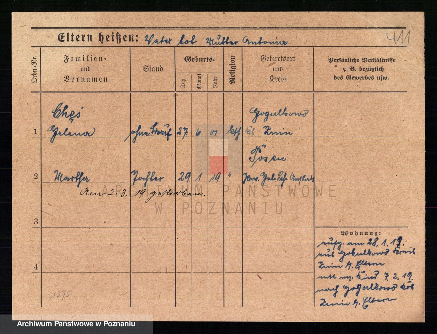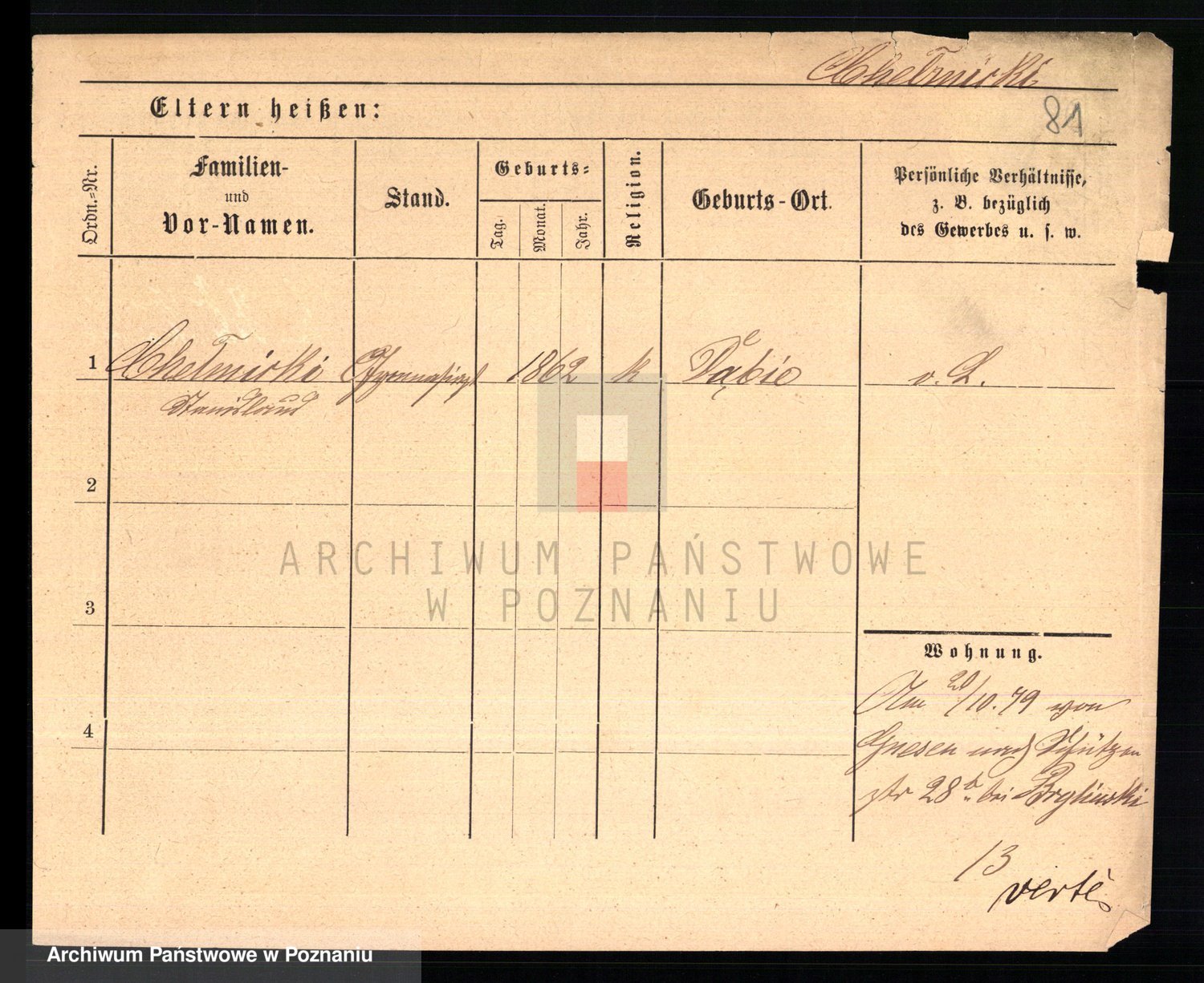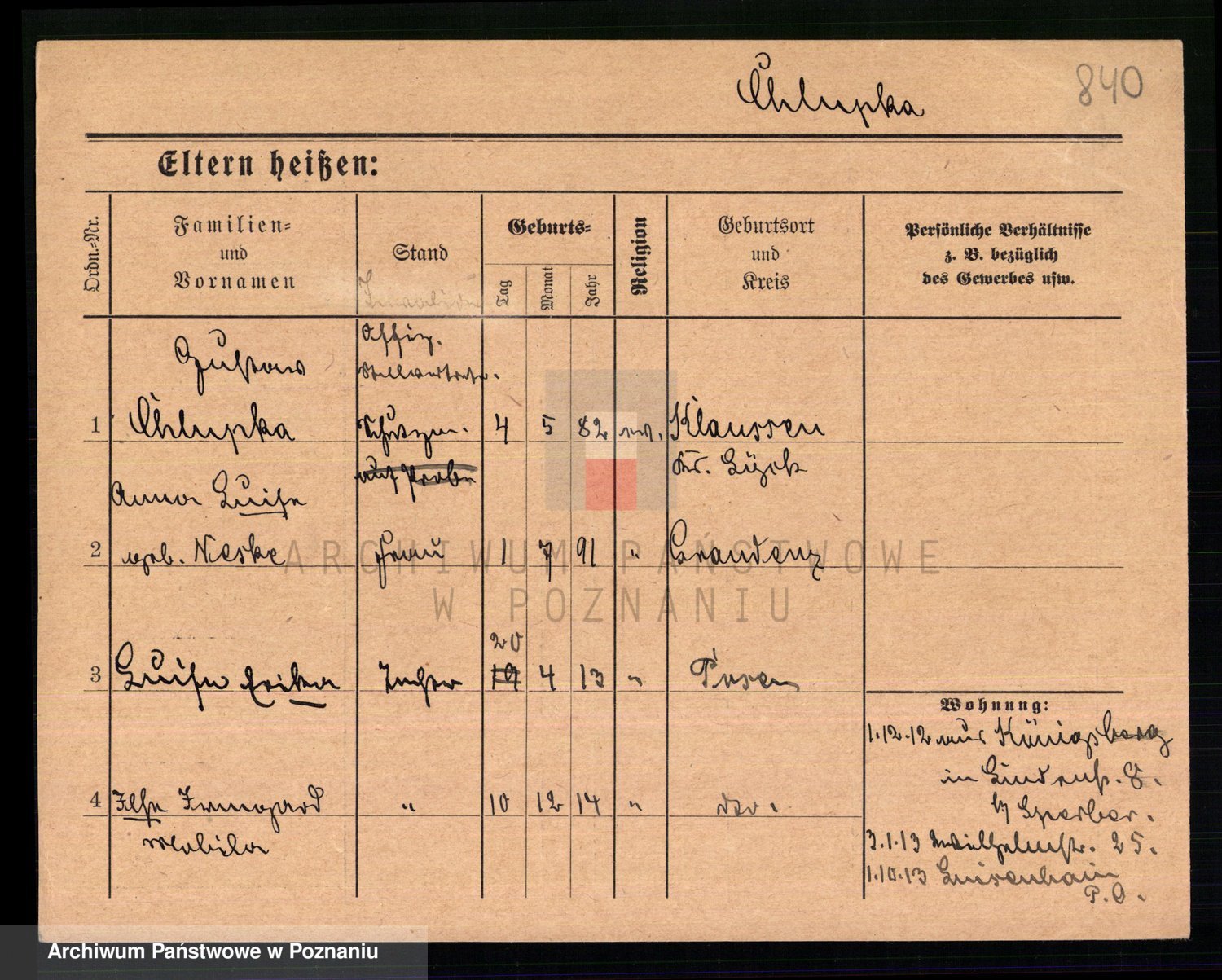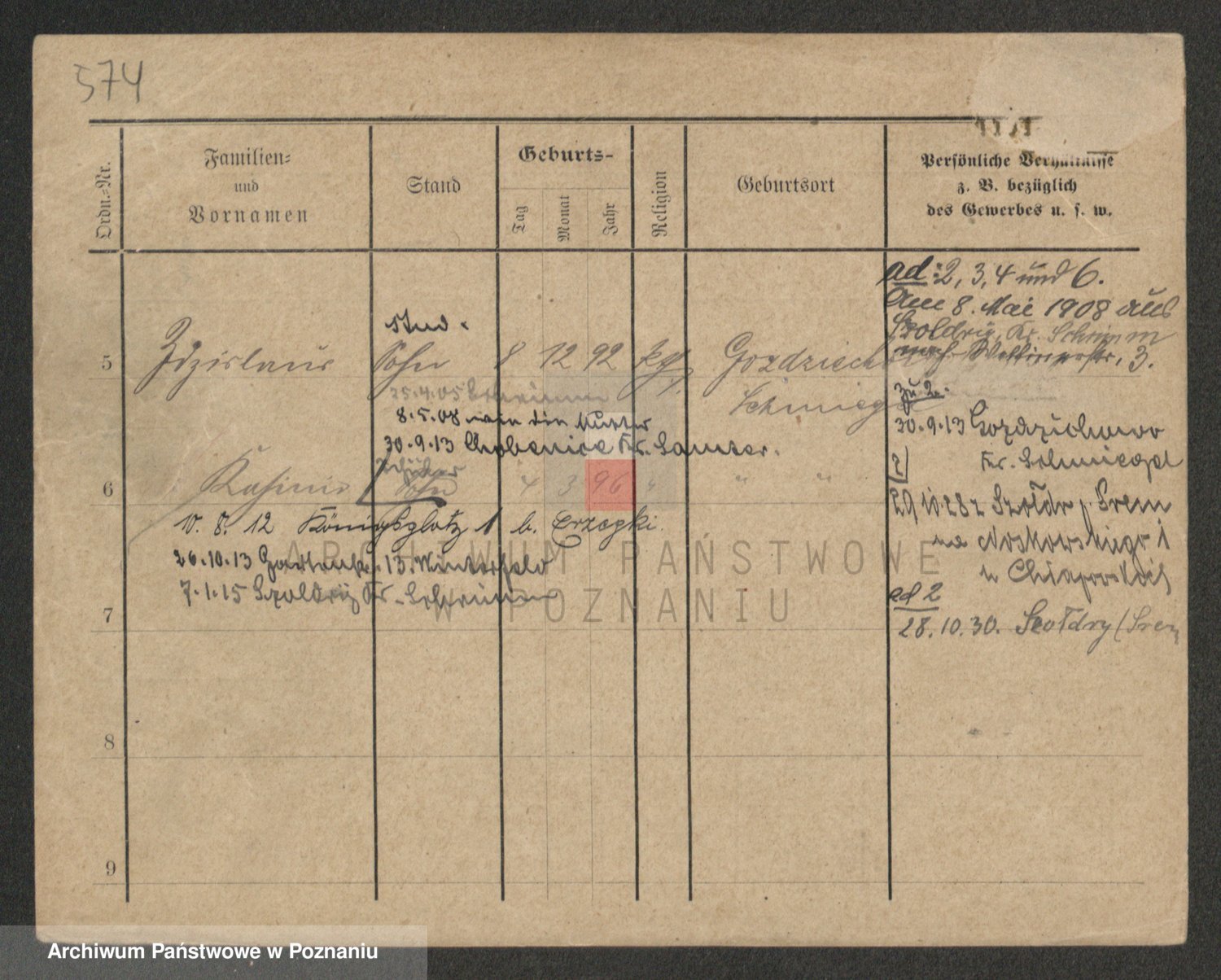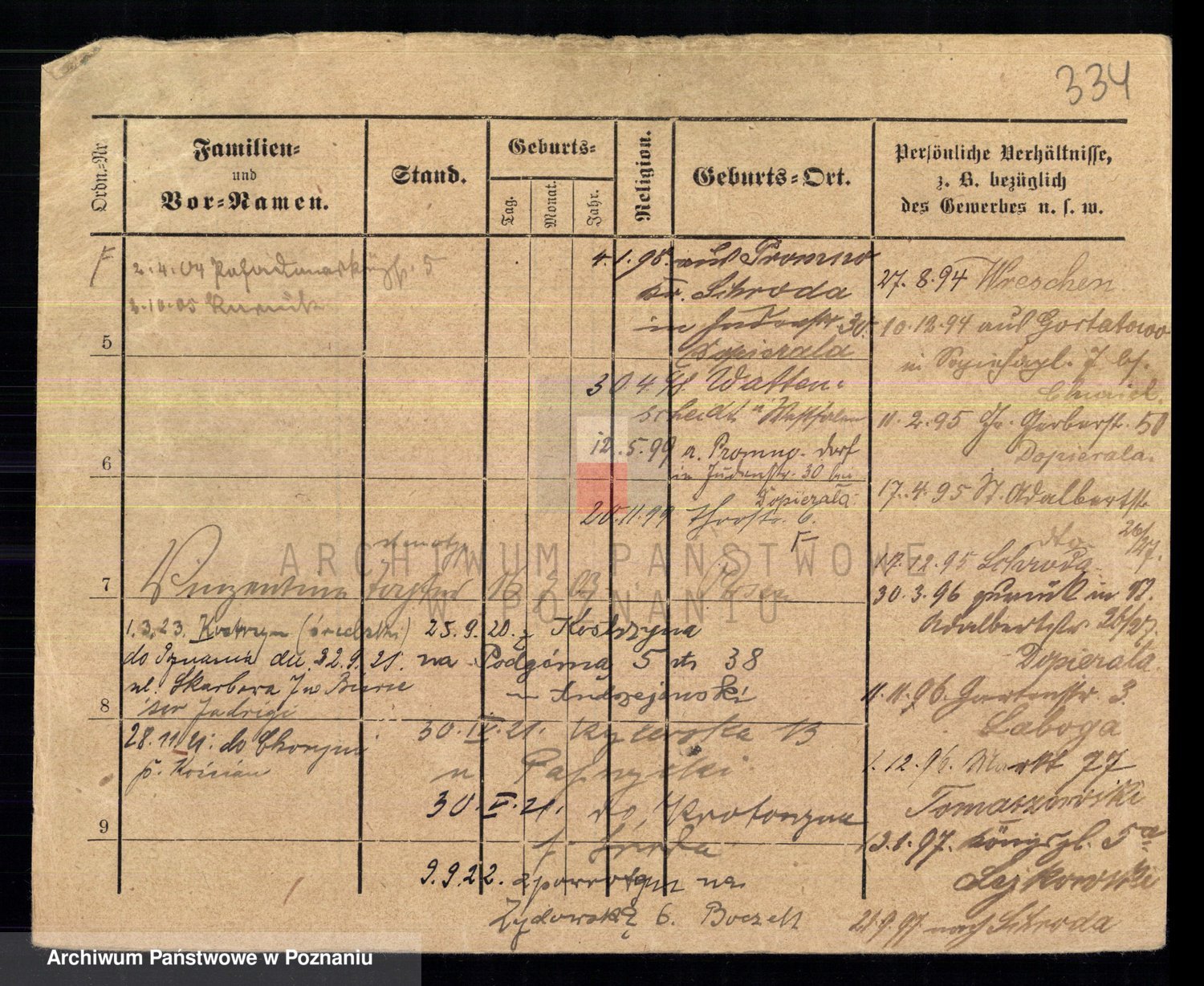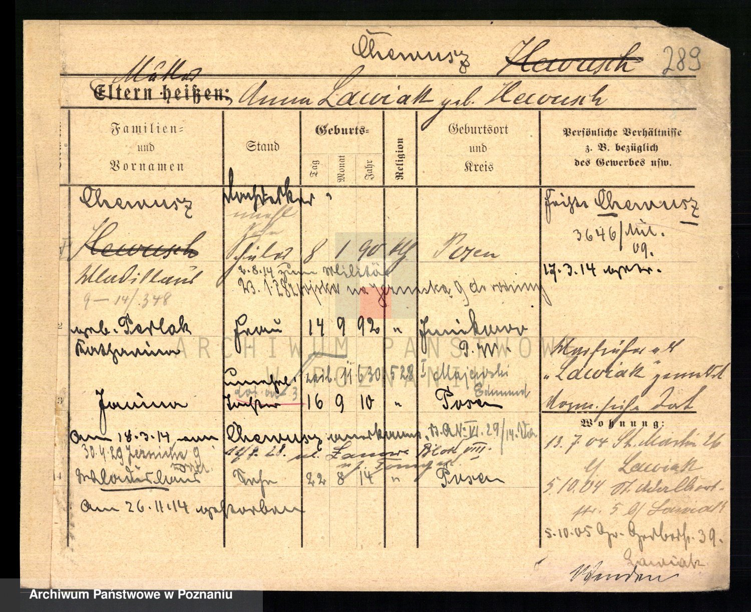 Podgląd karty osobowej dostępny jest po kliknięciu na nazwisko lub ikonkę karty. Można dokonywać powiększenia (ikony na górze) lub przechodzić między kolejnymi skanami (strzałki po bokach).