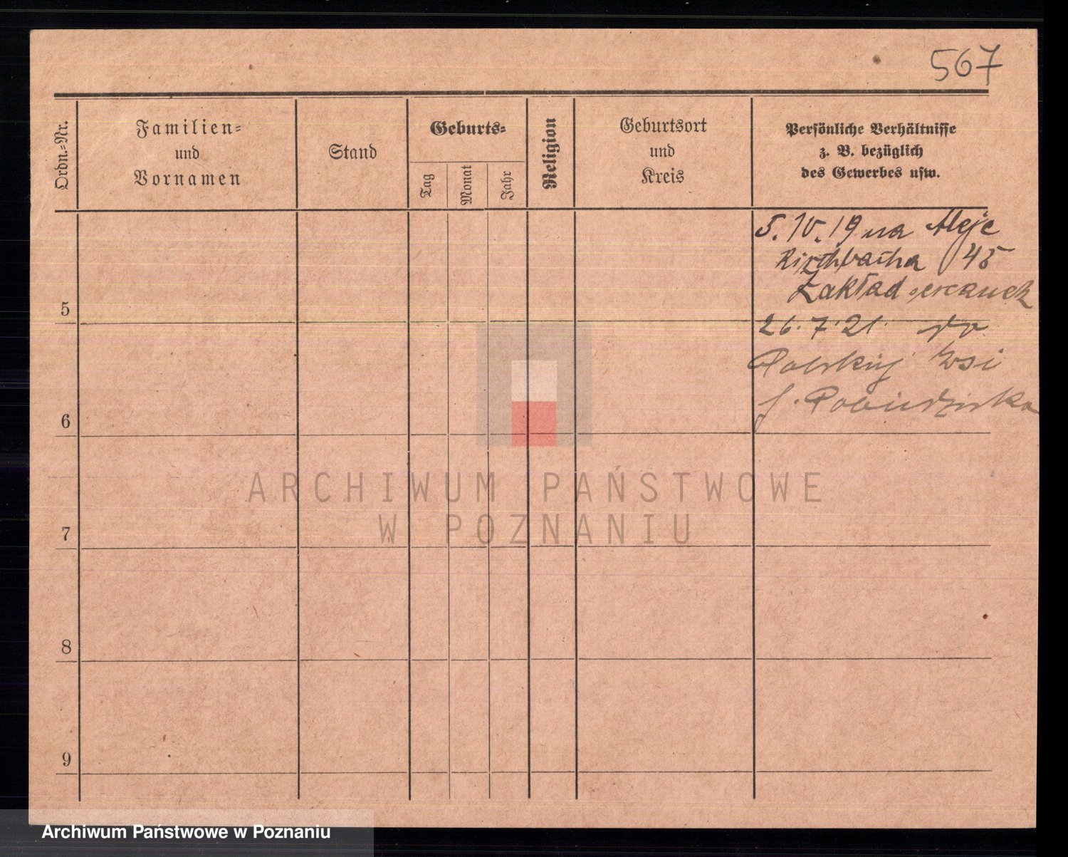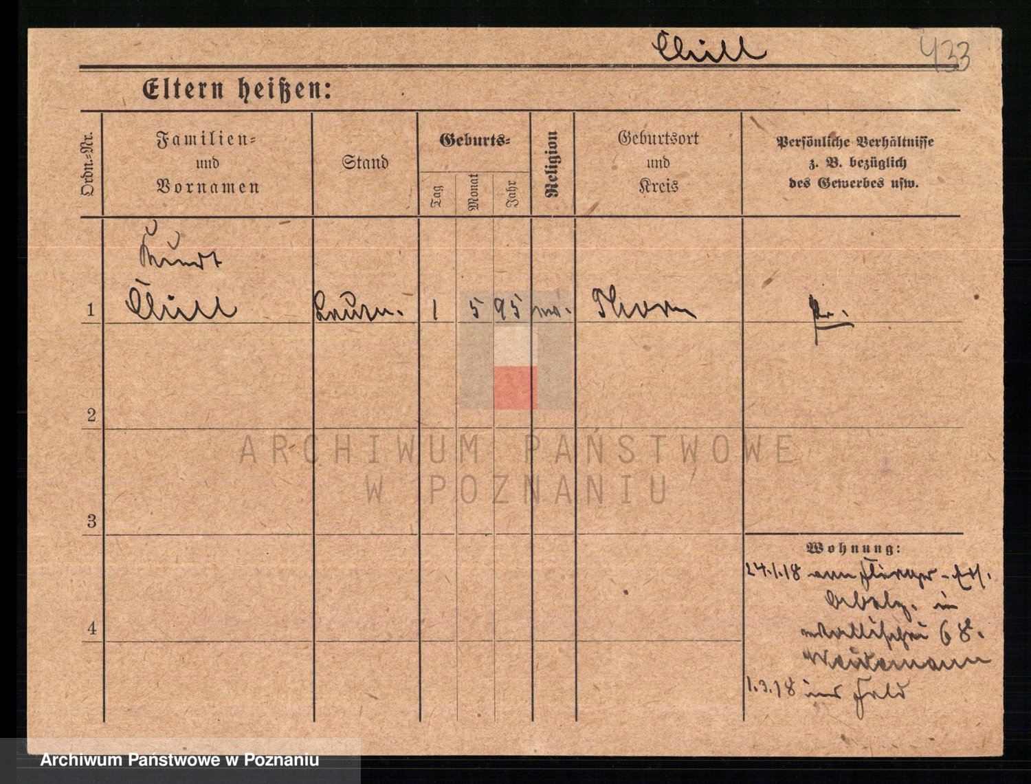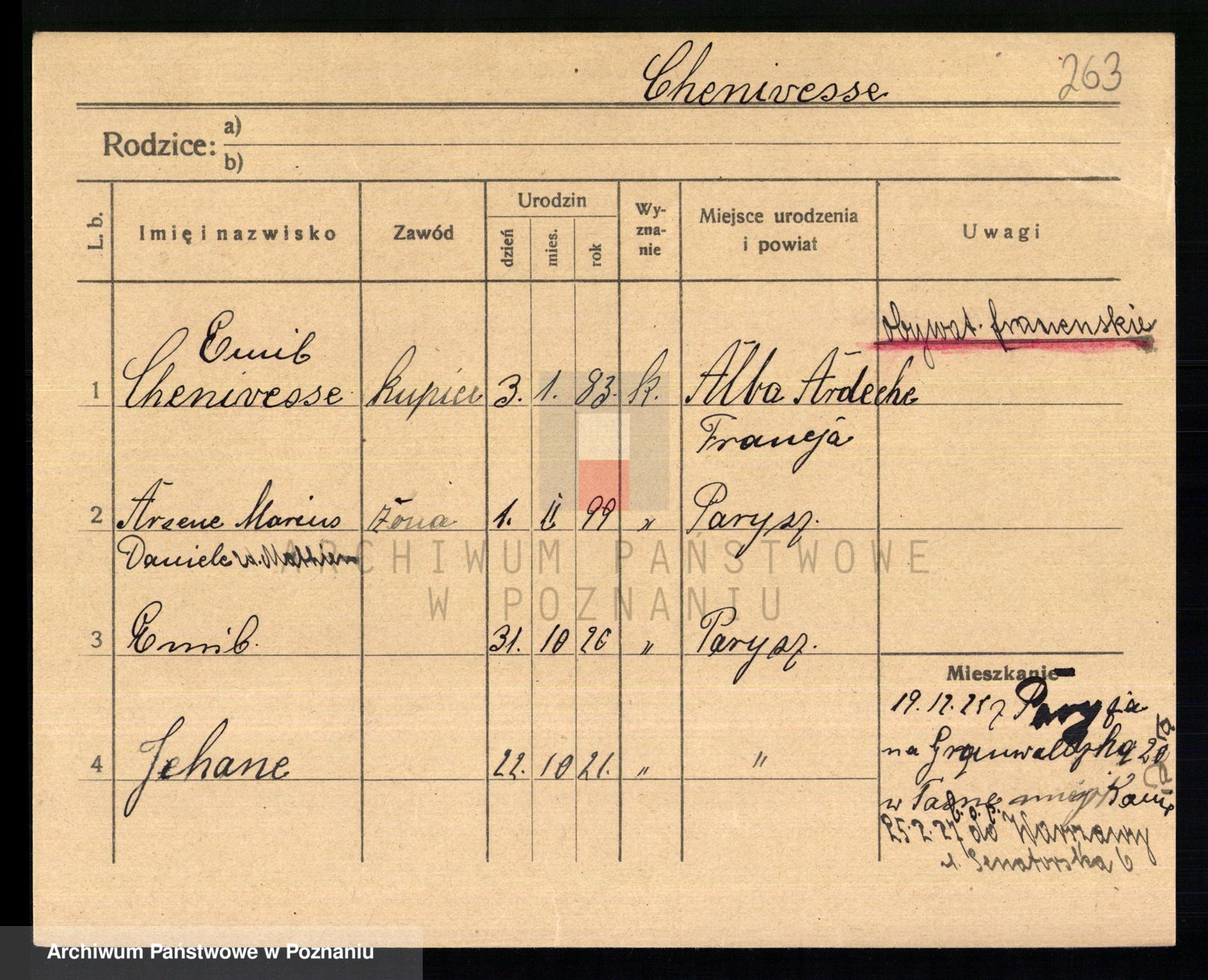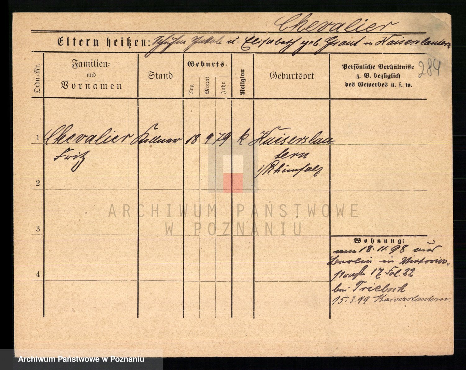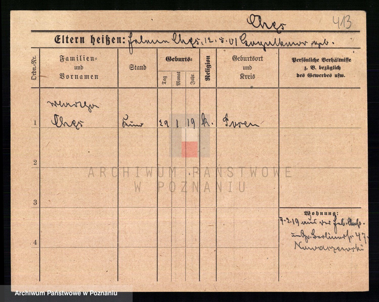 Podgląd karty osobowej dostępny jest po kliknięciu na nazwisko lub ikonkę karty. Można dokonywać powiększenia (ikony na górze) lub przechodzić między kolejnymi skanami (strzałki po bokach).