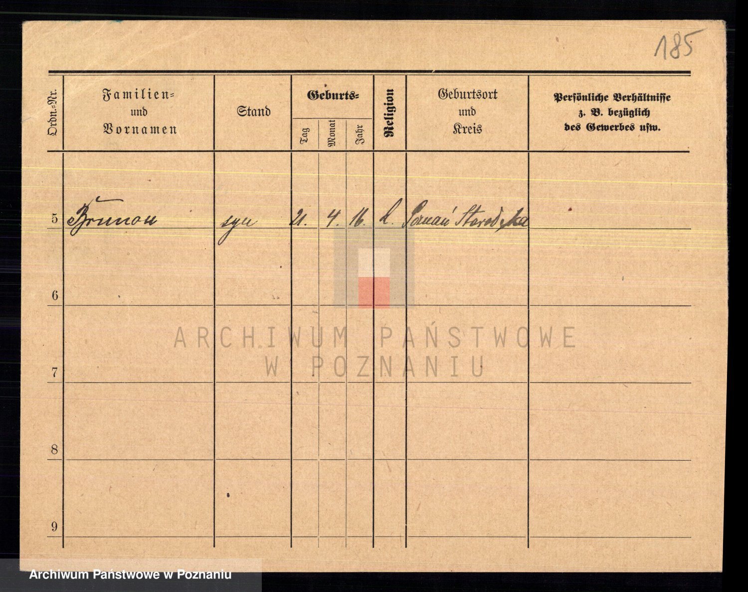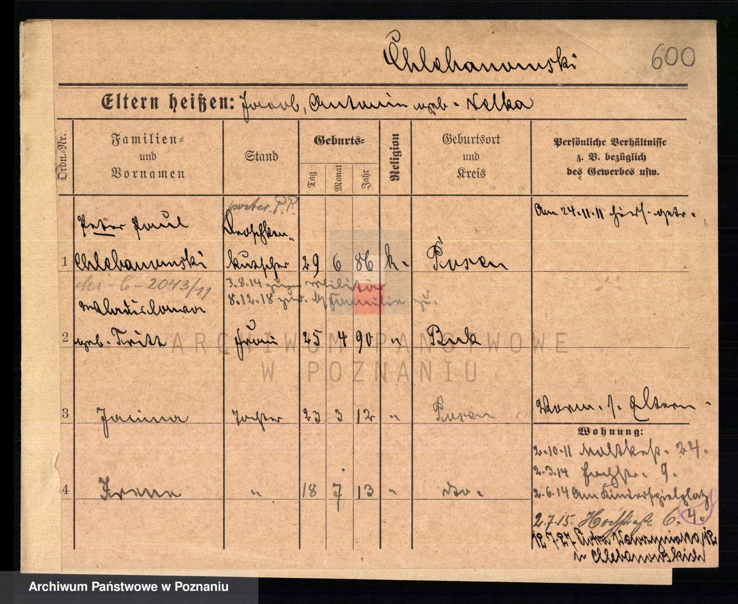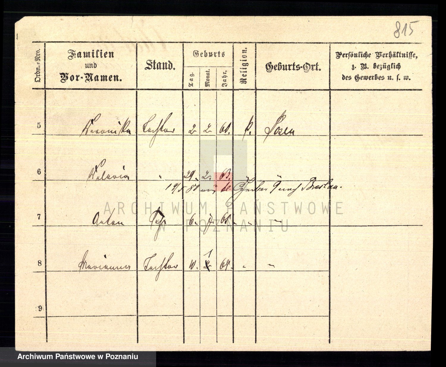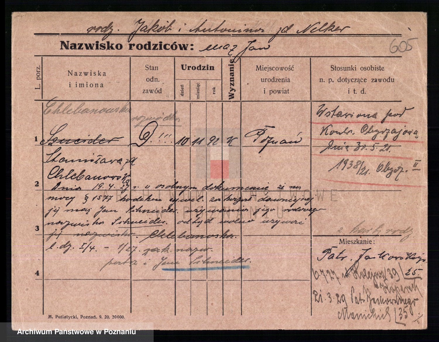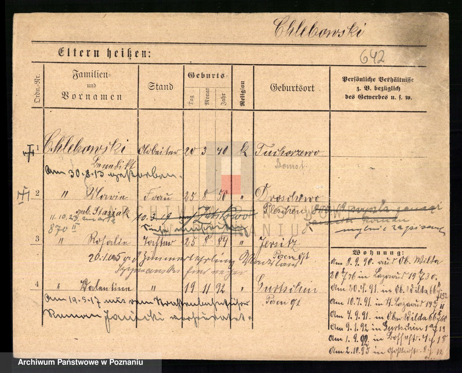 Podgląd karty osobowej dostępny jest po kliknięciu na nazwisko lub ikonkę karty. Można dokonywać powiększenia (ikony na górze) lub przechodzić między kolejnymi skanami (strzałki po bokach).