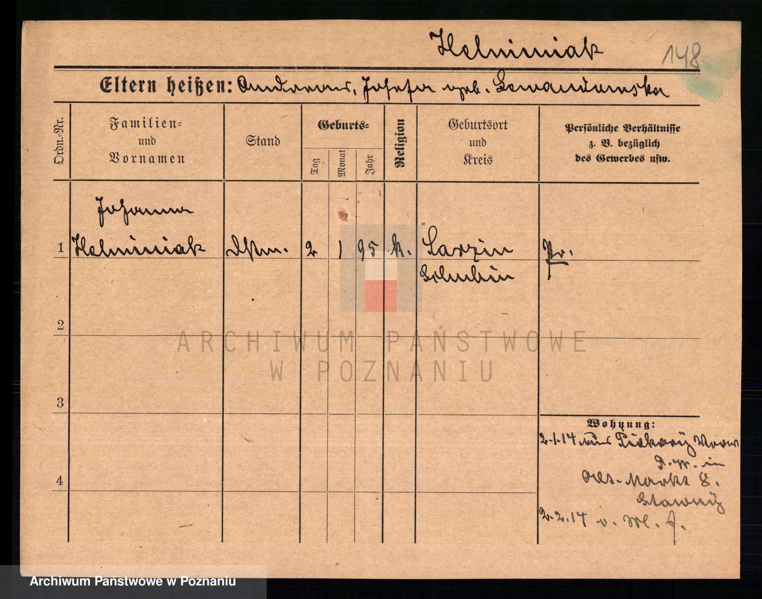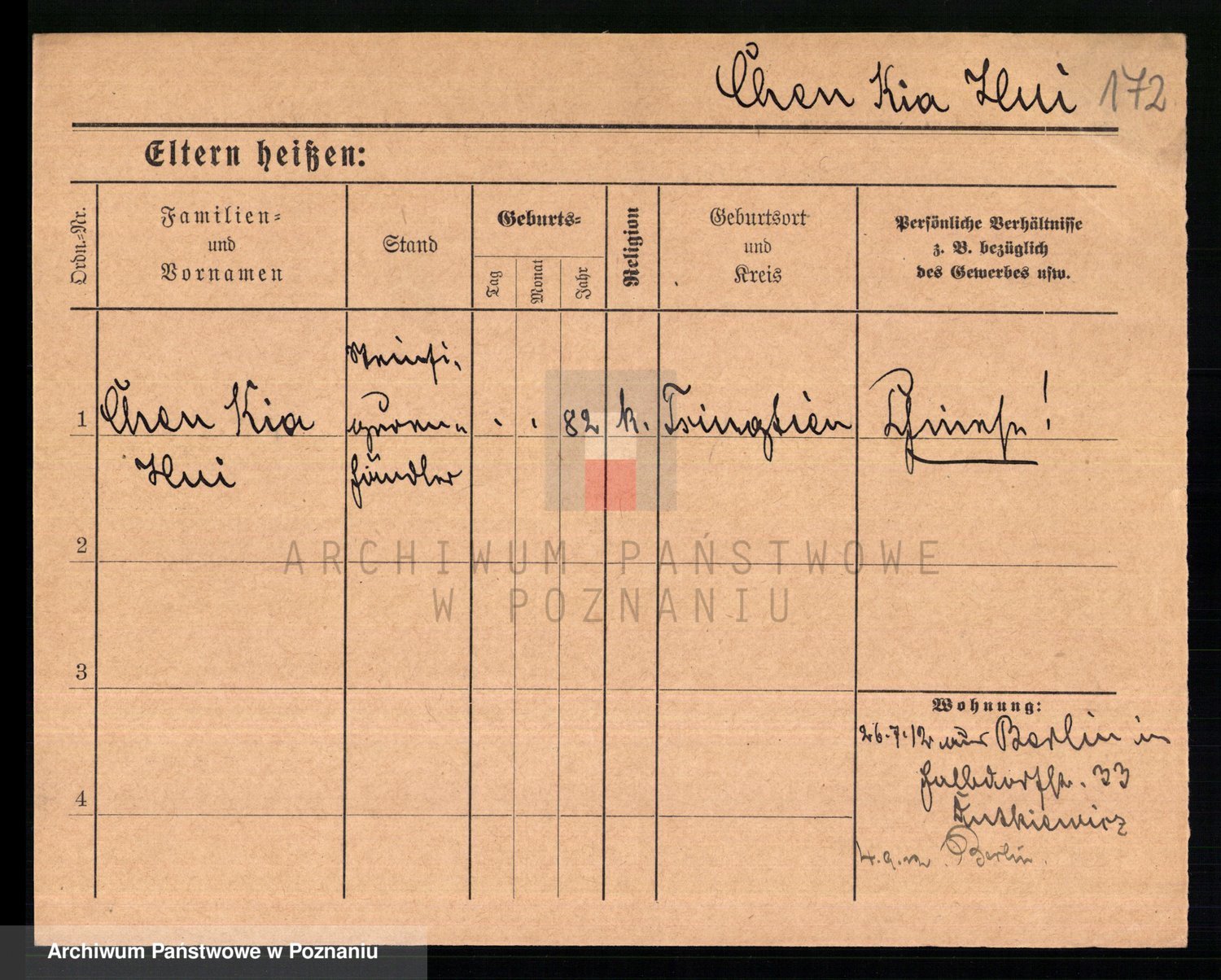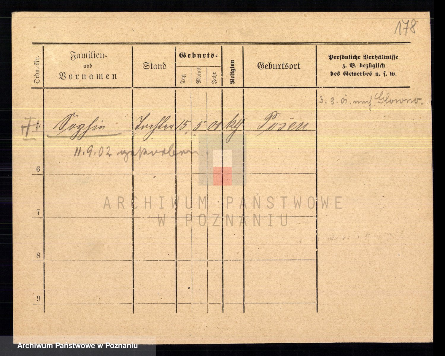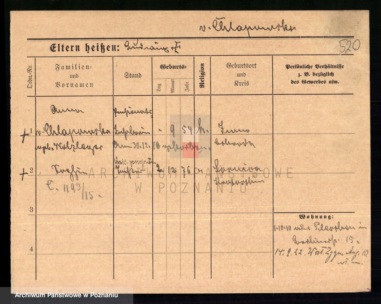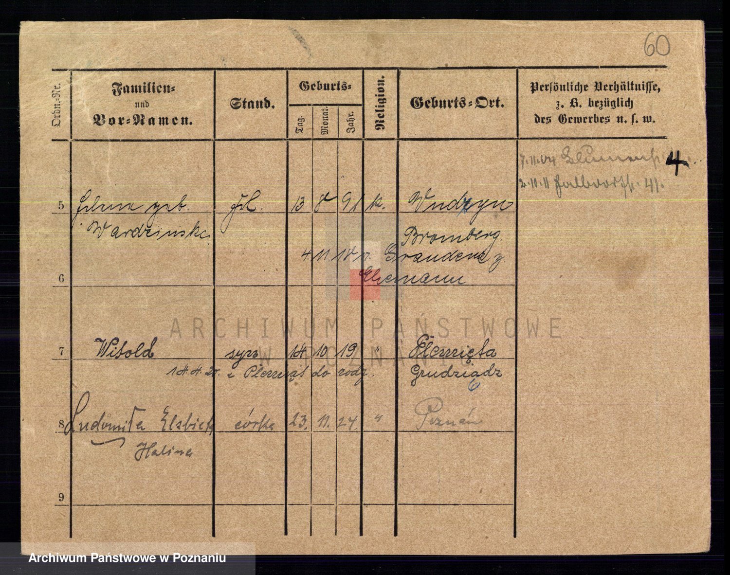 Podgląd karty osobowej dostępny jest po kliknięciu na nazwisko lub ikonkę karty. Można dokonywać powiększenia (ikony na górze) lub przechodzić między kolejnymi skanami (strzałki po bokach).