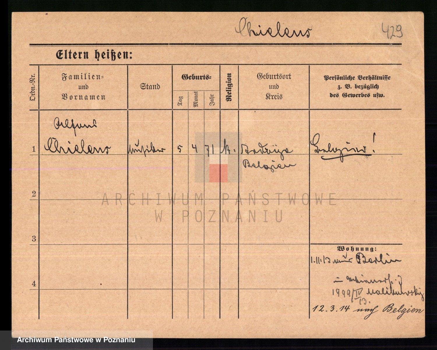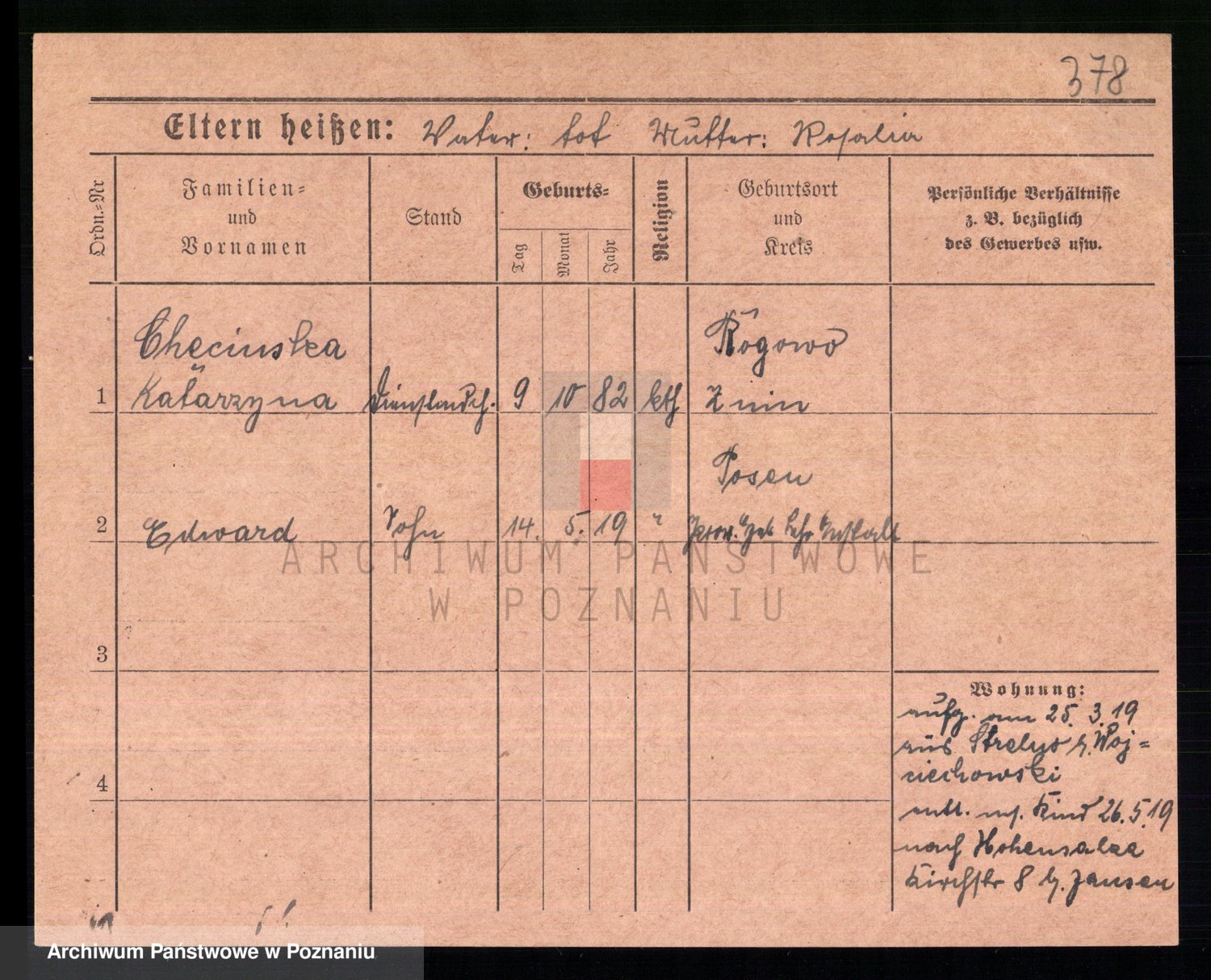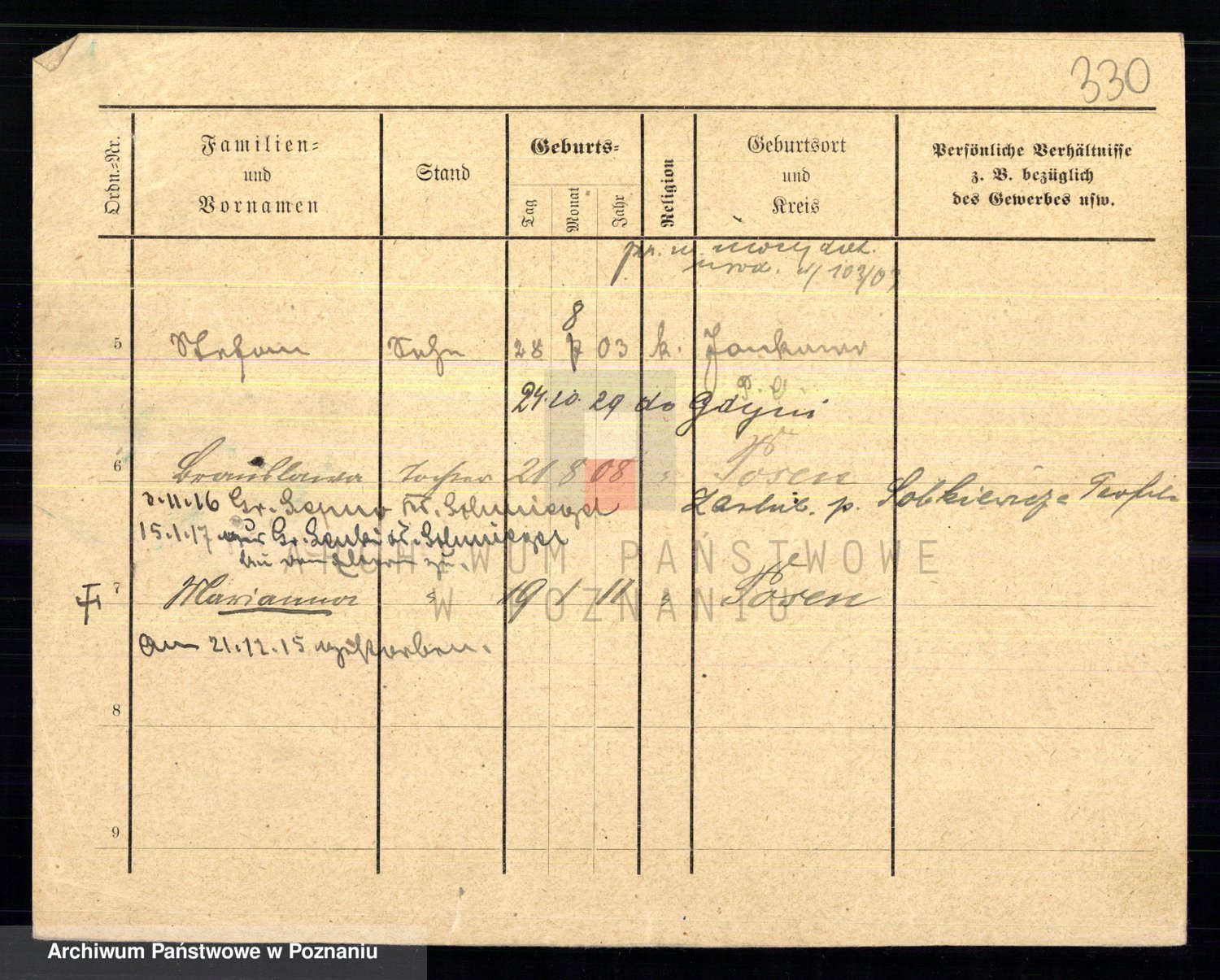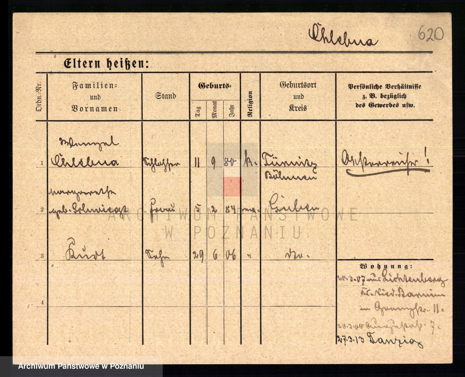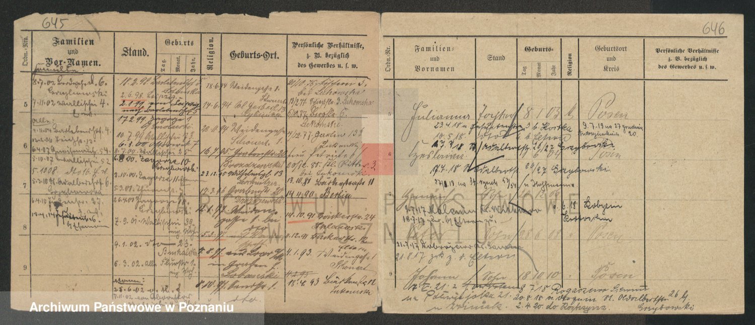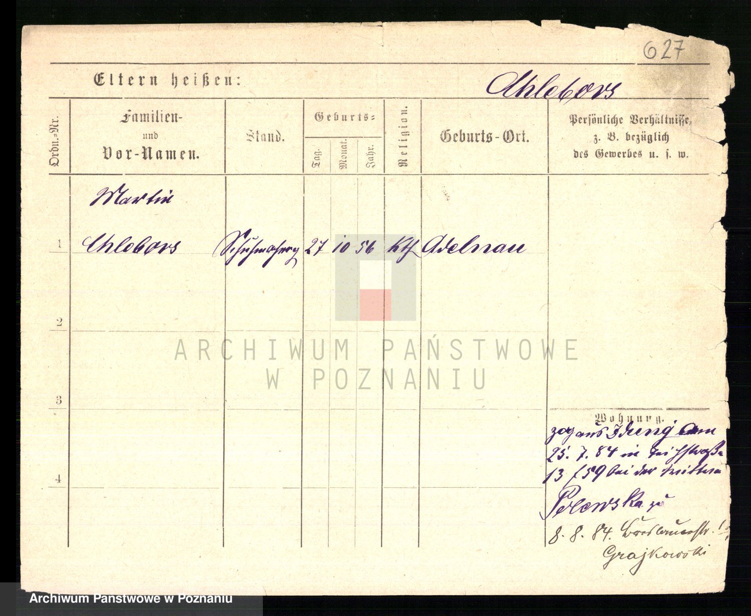 Podgląd karty osobowej dostępny jest po kliknięciu na nazwisko lub ikonkę karty. Można dokonywać powiększenia (ikony na górze) lub przechodzić między kolejnymi skanami (strzałki po bokach).