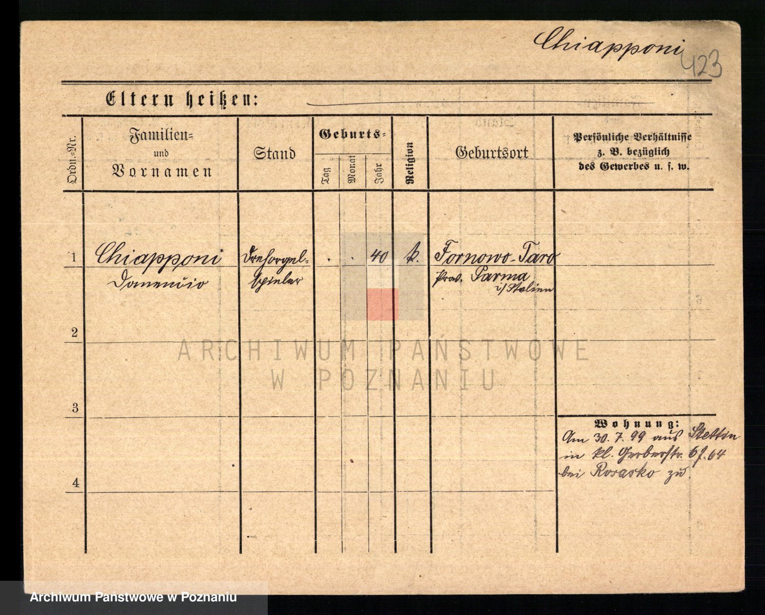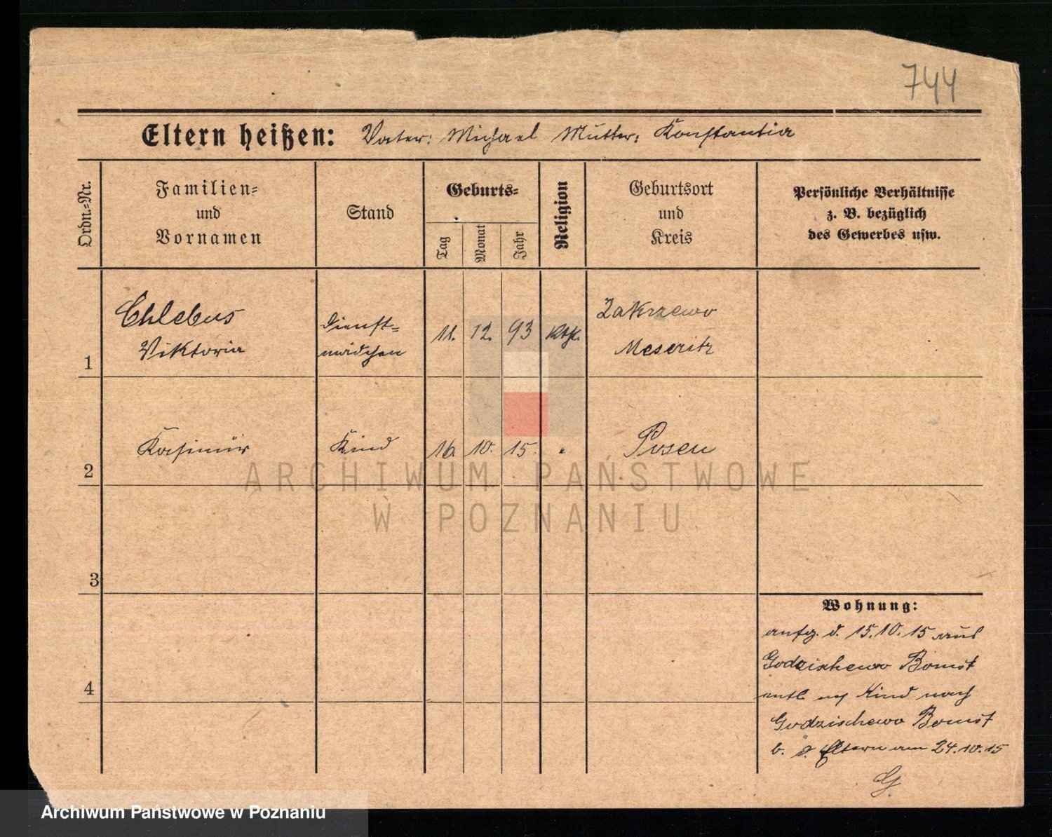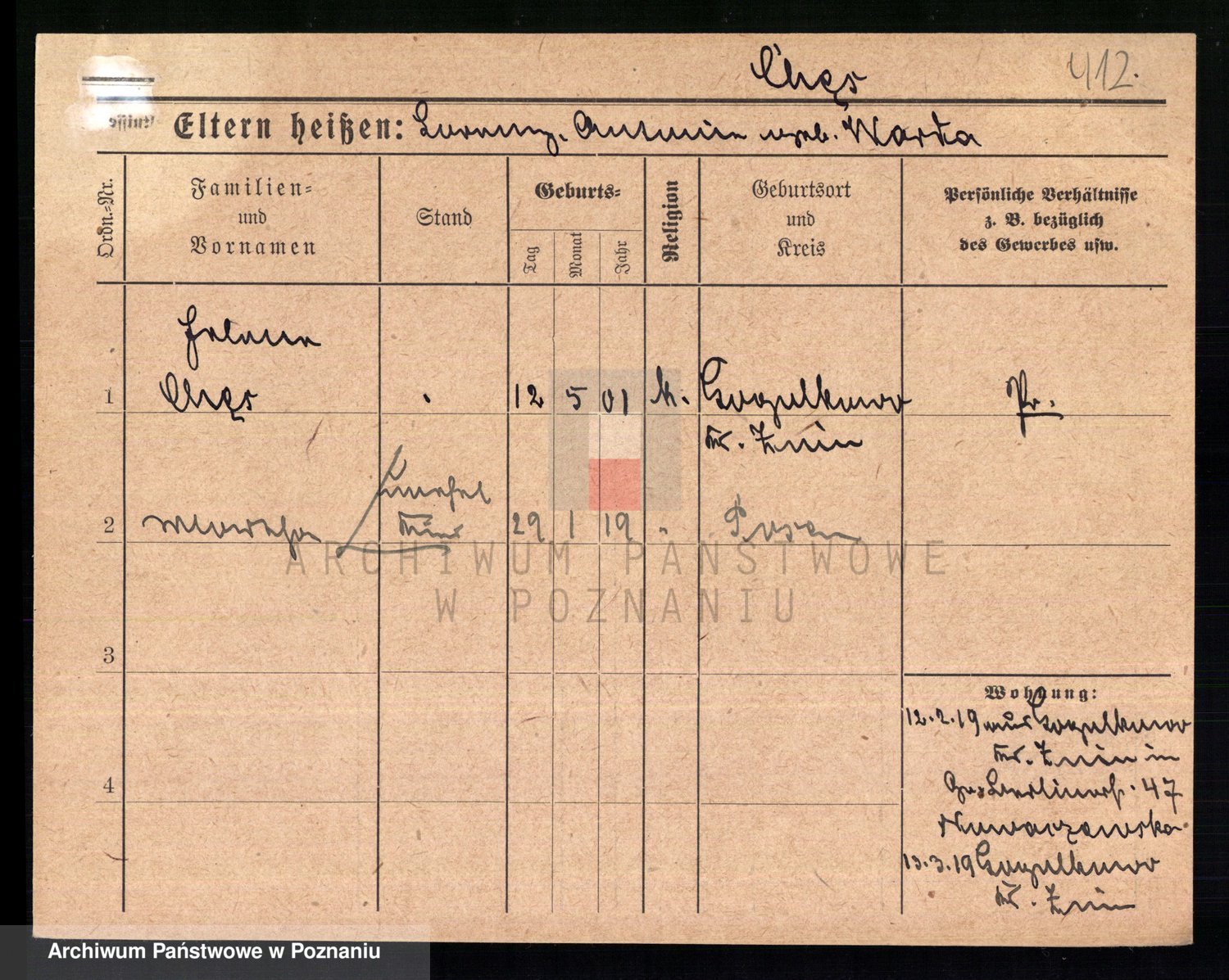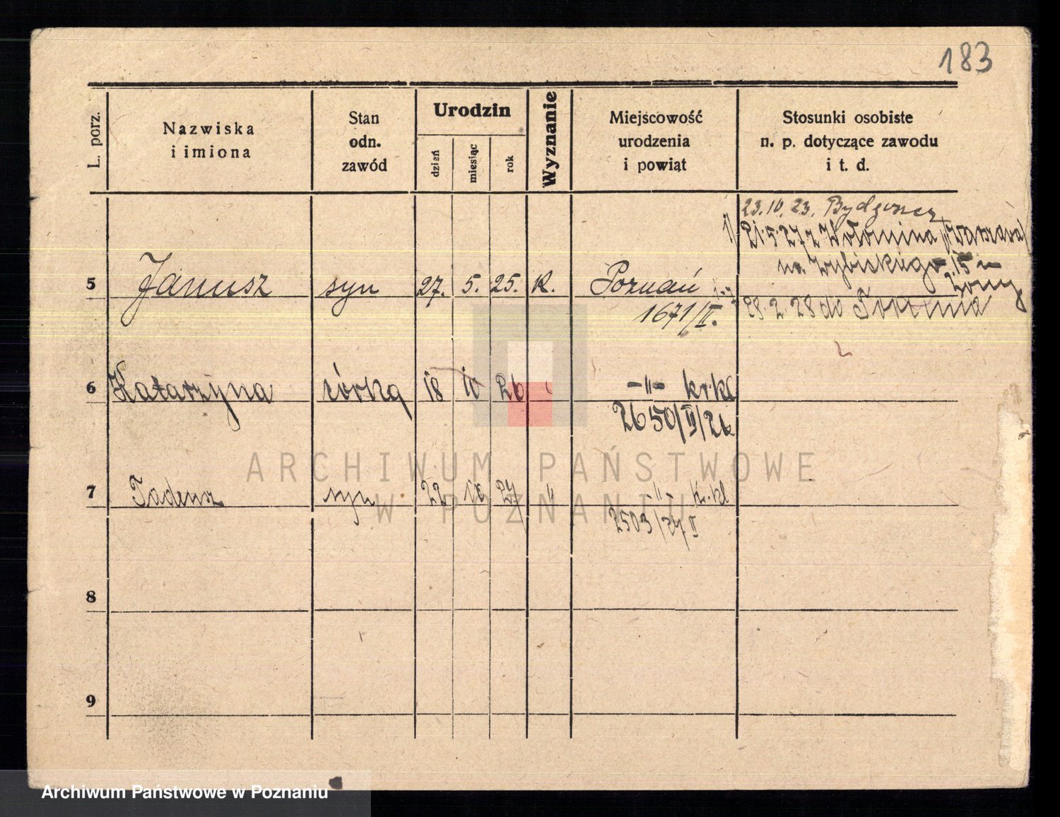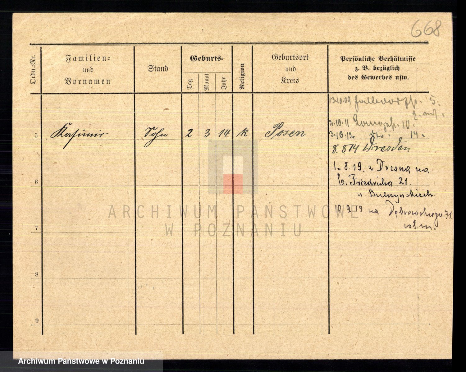 Podgląd karty osobowej dostępny jest po kliknięciu na nazwisko lub ikonkę karty. Można dokonywać powiększenia (ikony na górze) lub przechodzić między kolejnymi skanami (strzałki po bokach).